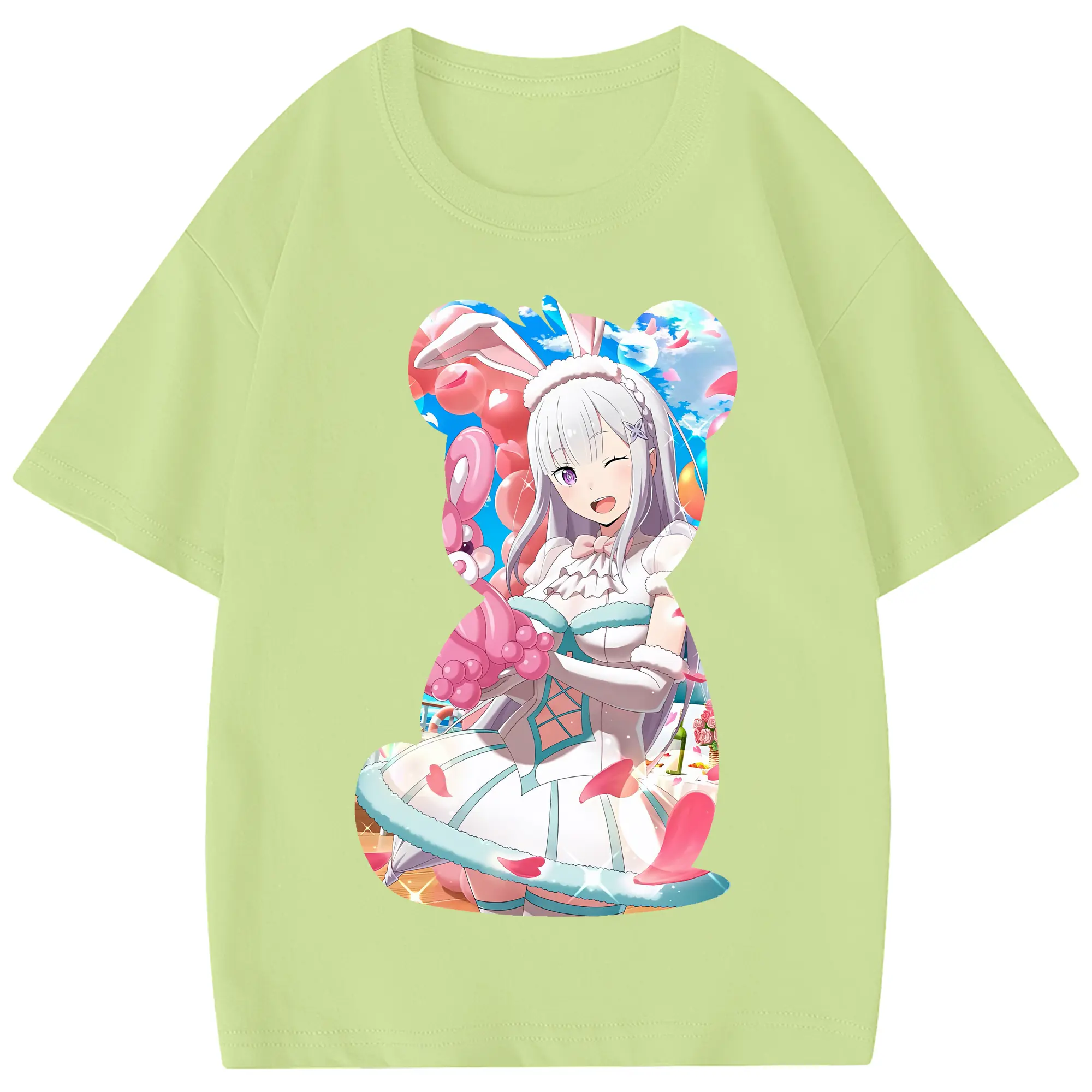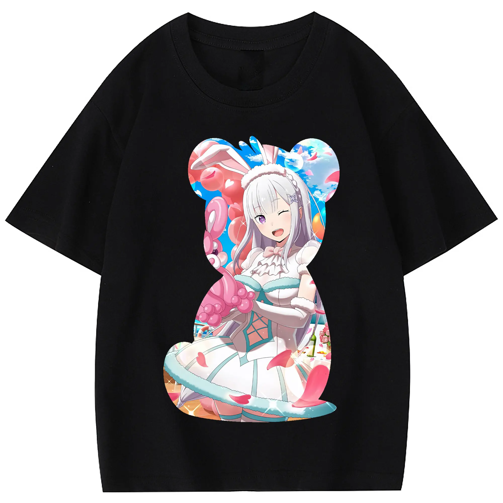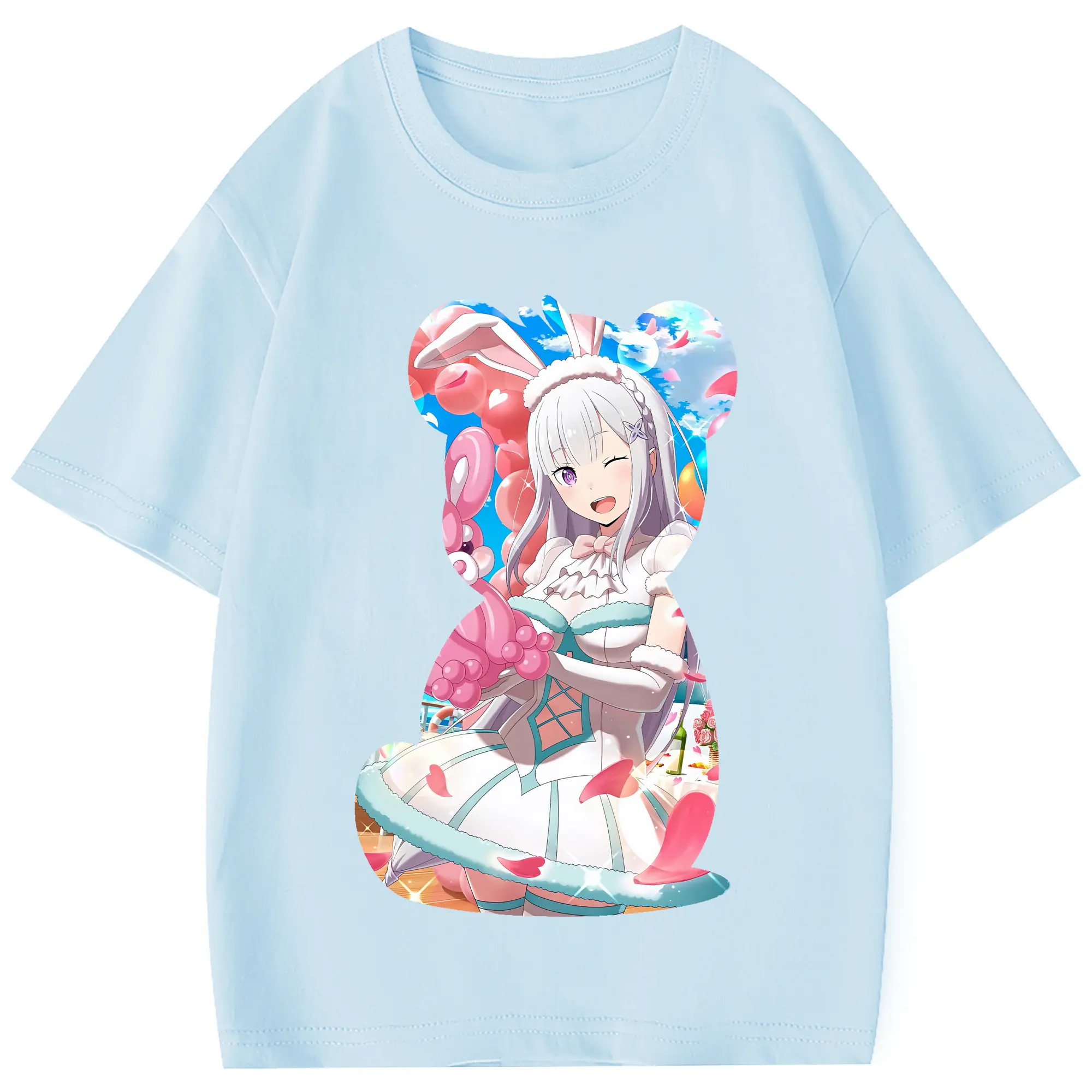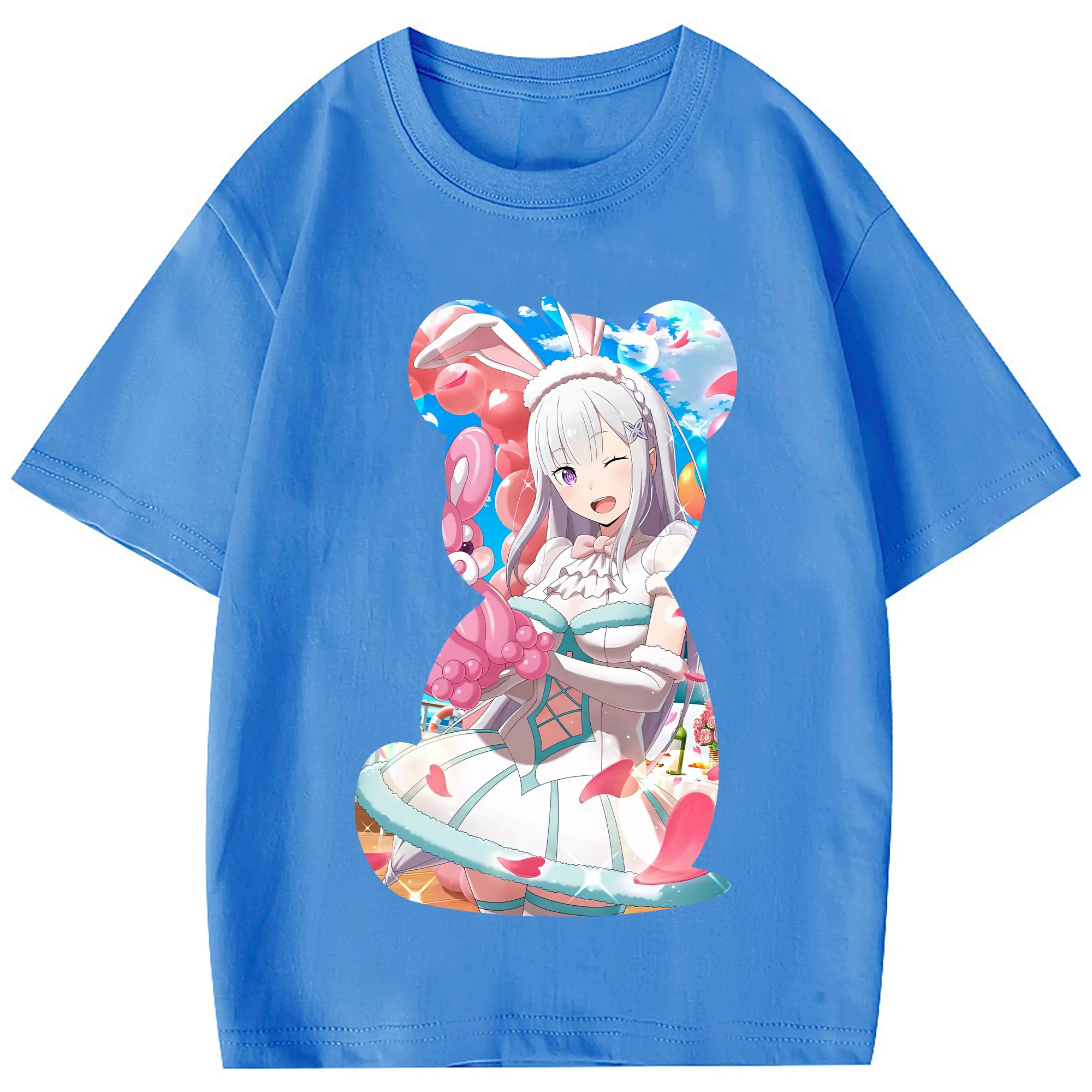 リゼロ グッズ エミリア - 綿100% 半袖Tシャツ ・ フロントプリント ・ 快適 通気性 ・ 日常使い 散歩 スポーツ用