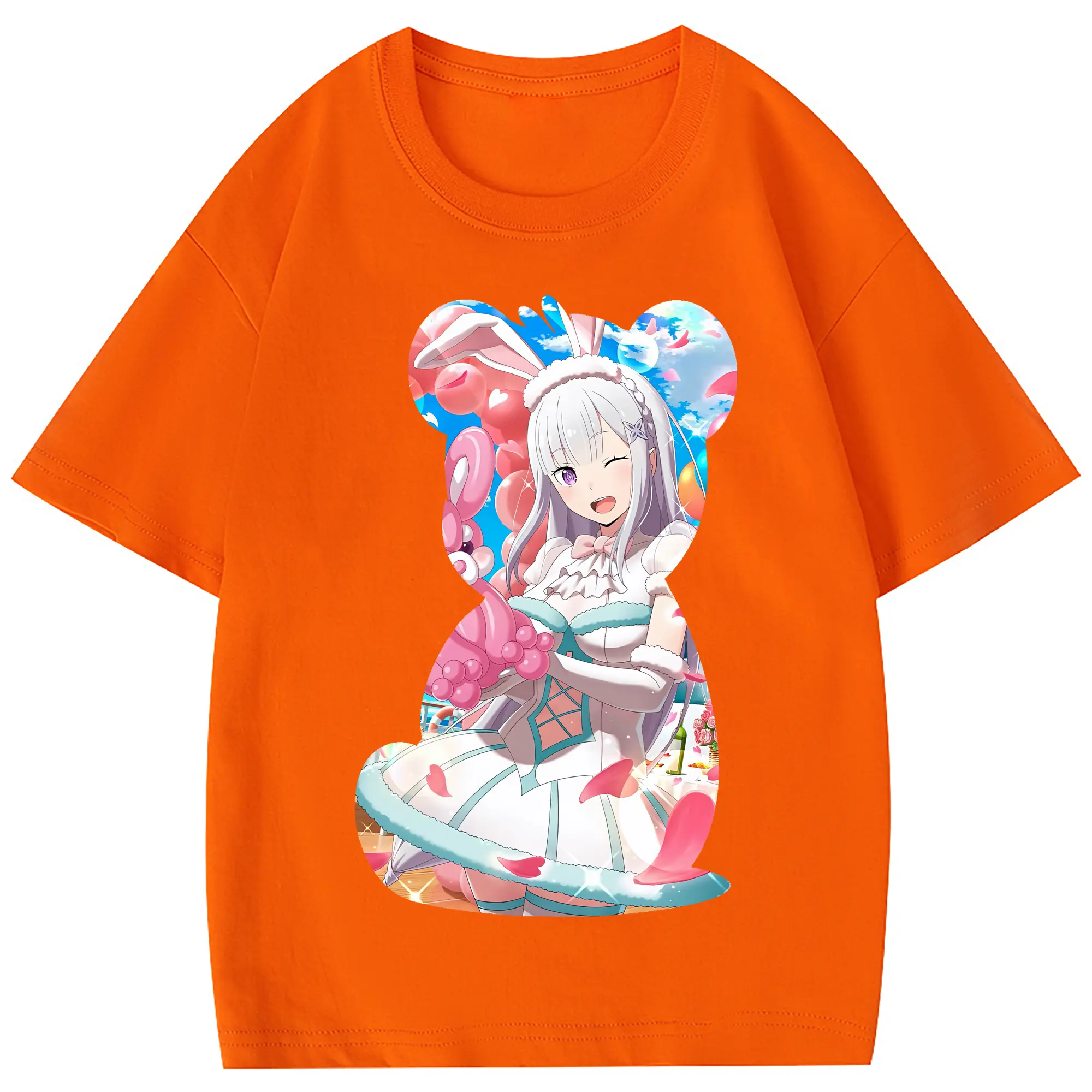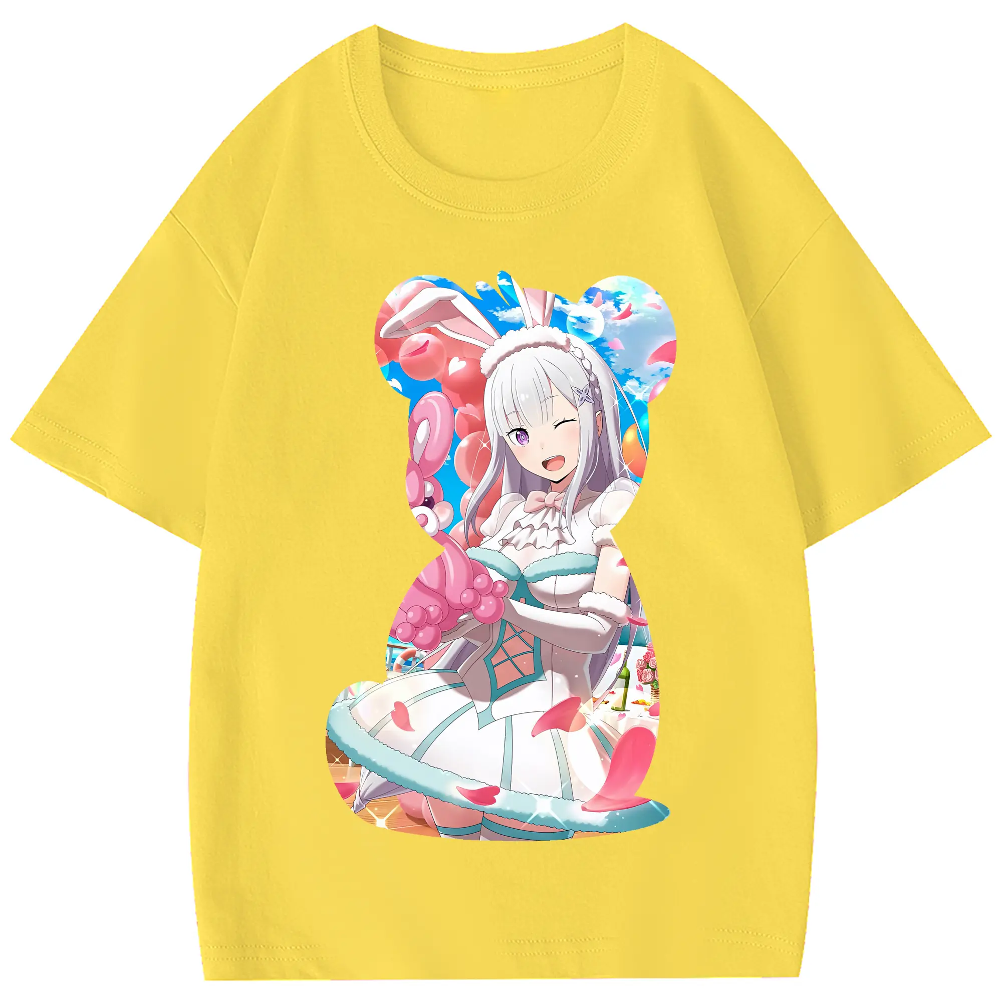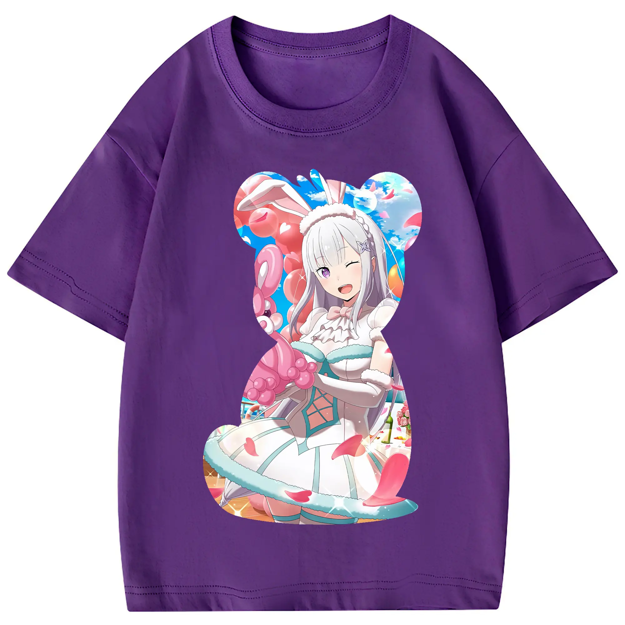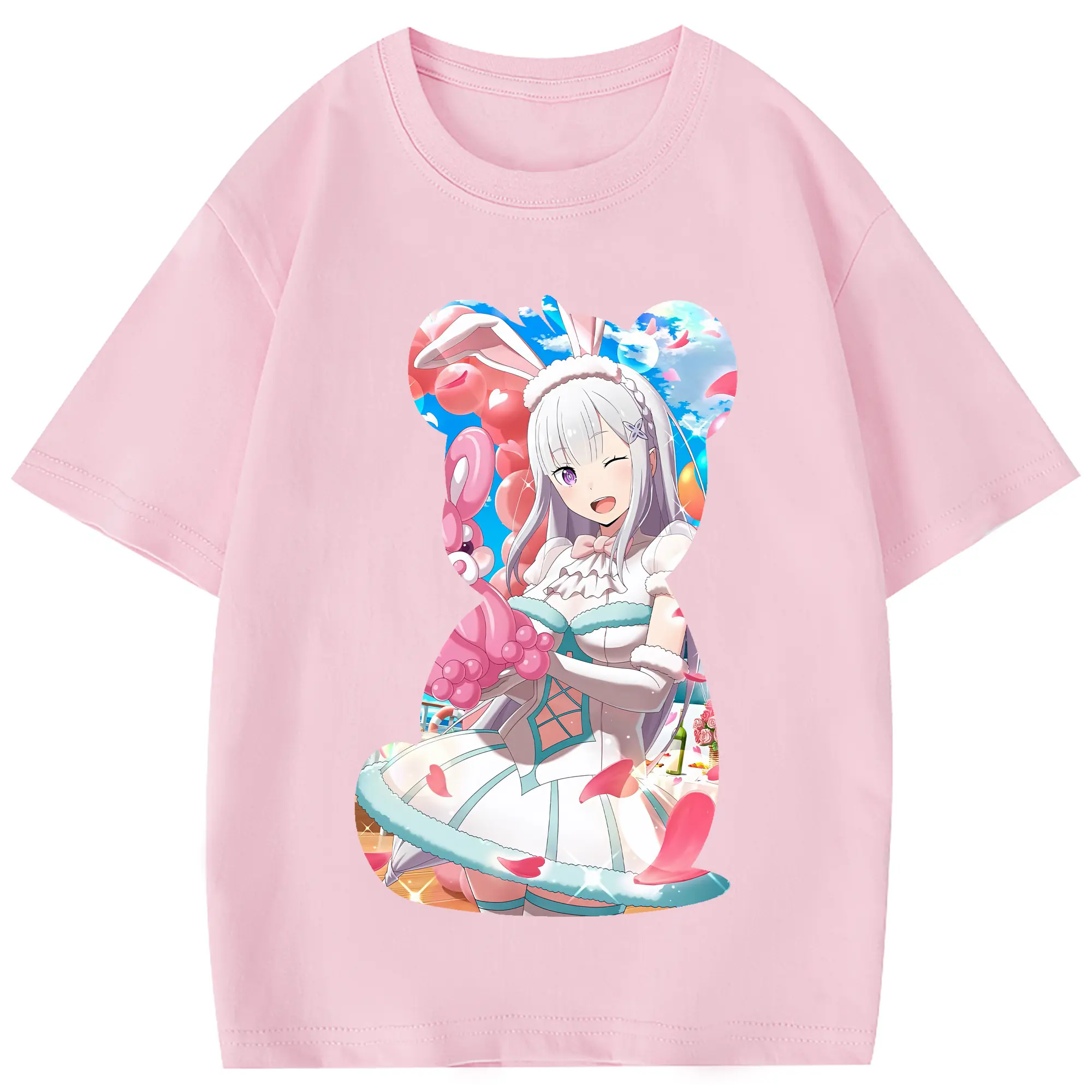 リゼロ グッズ エミリア - 綿100% 半袖Tシャツ ・ フロントプリント ・ 快適 通気性 ・ 日常使い 散歩 スポーツ用