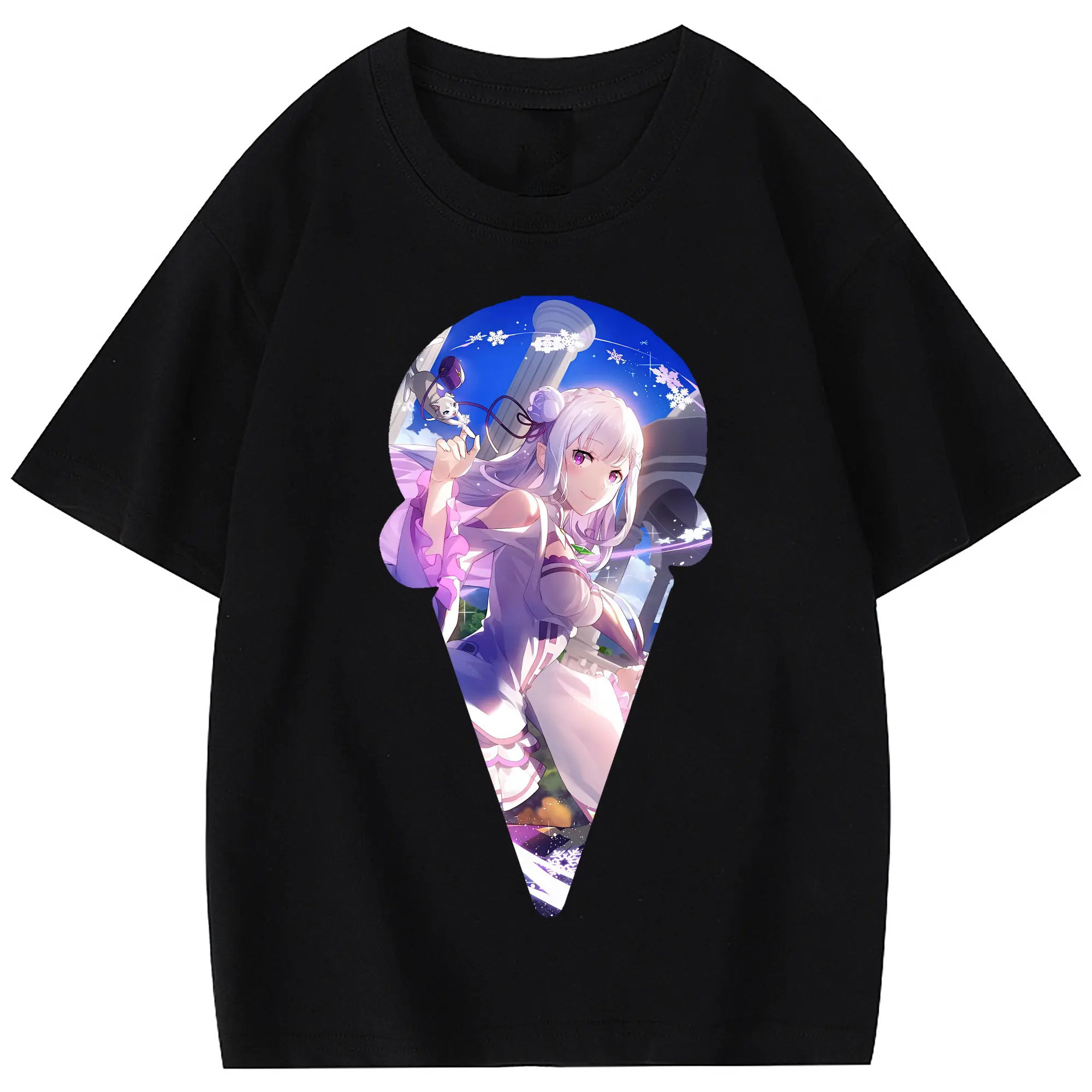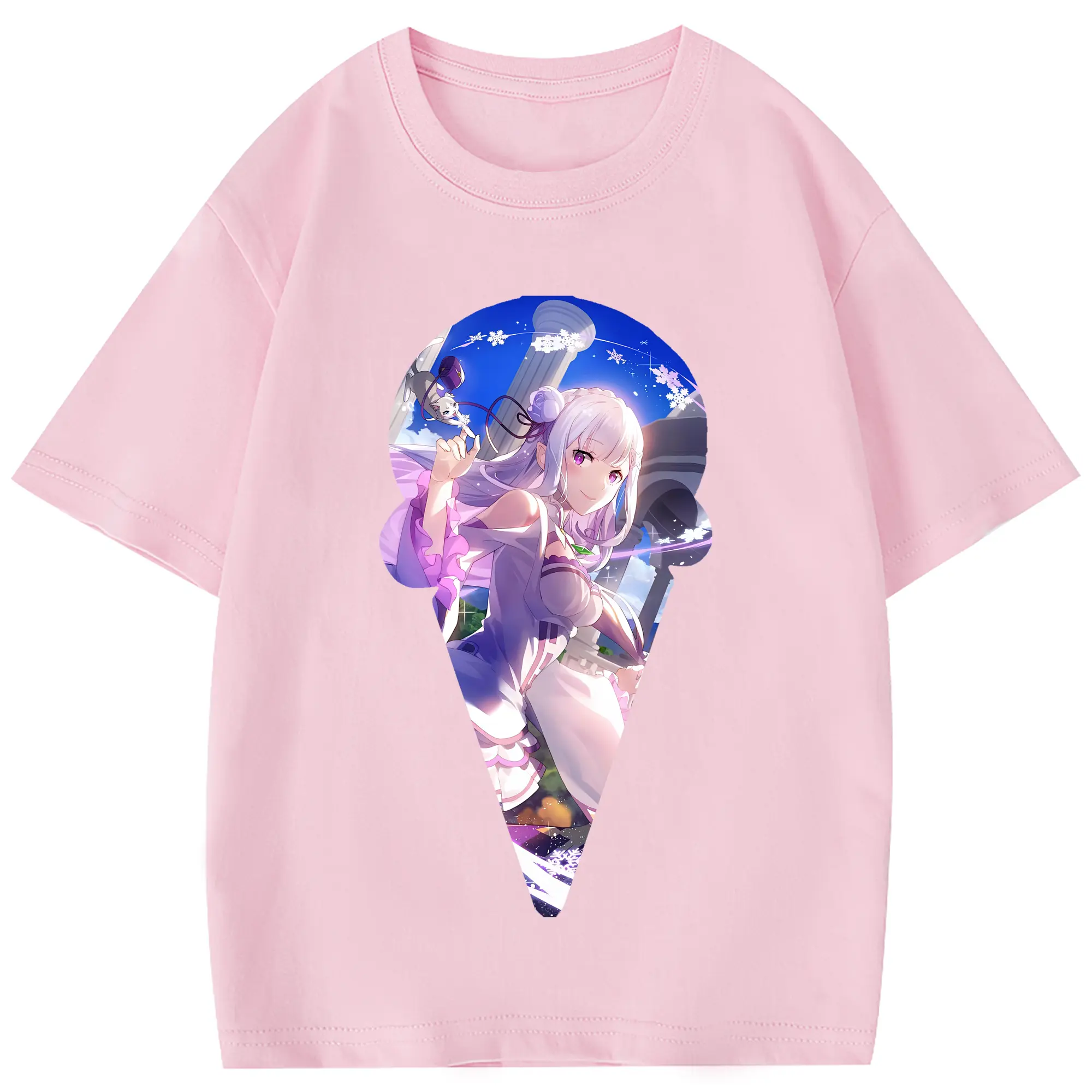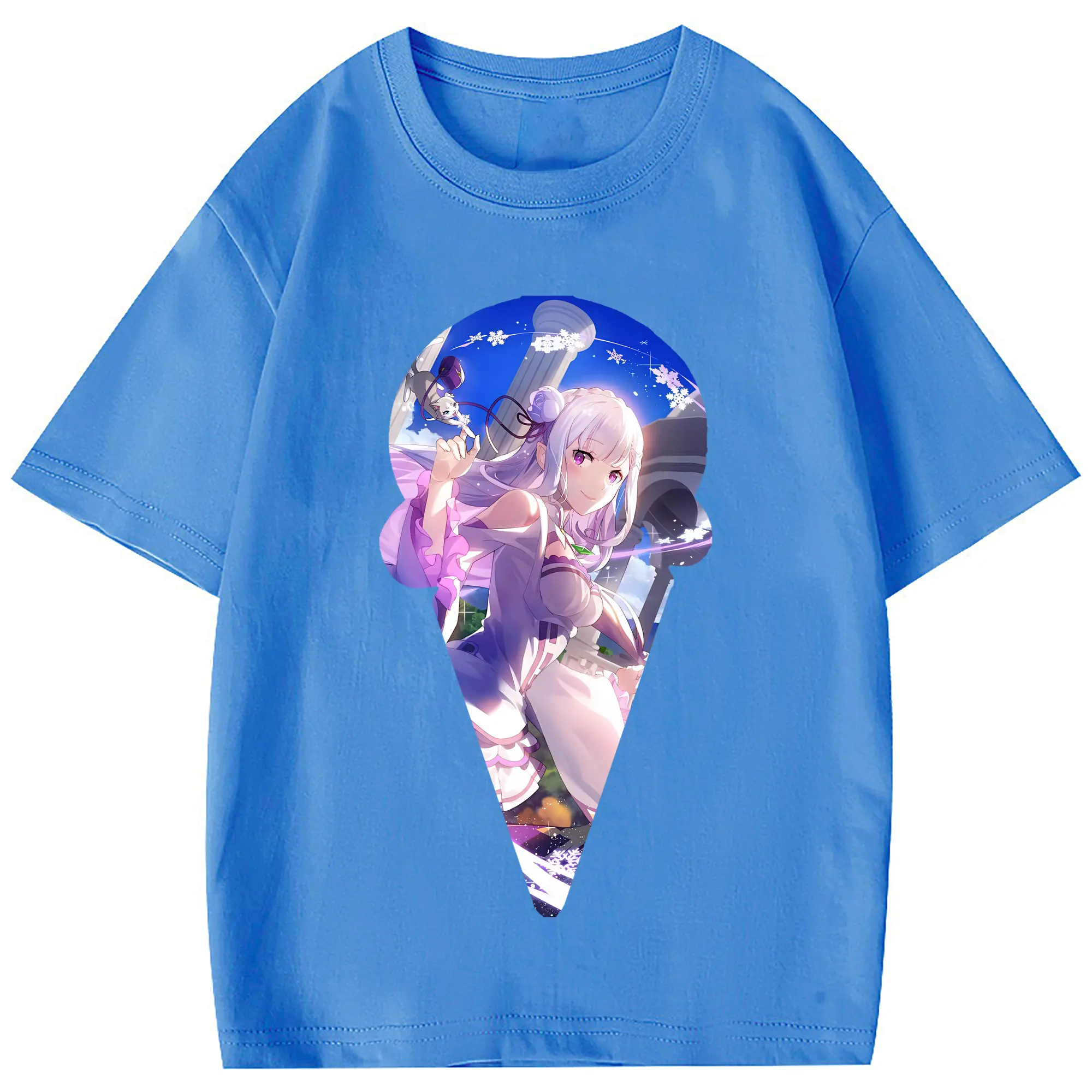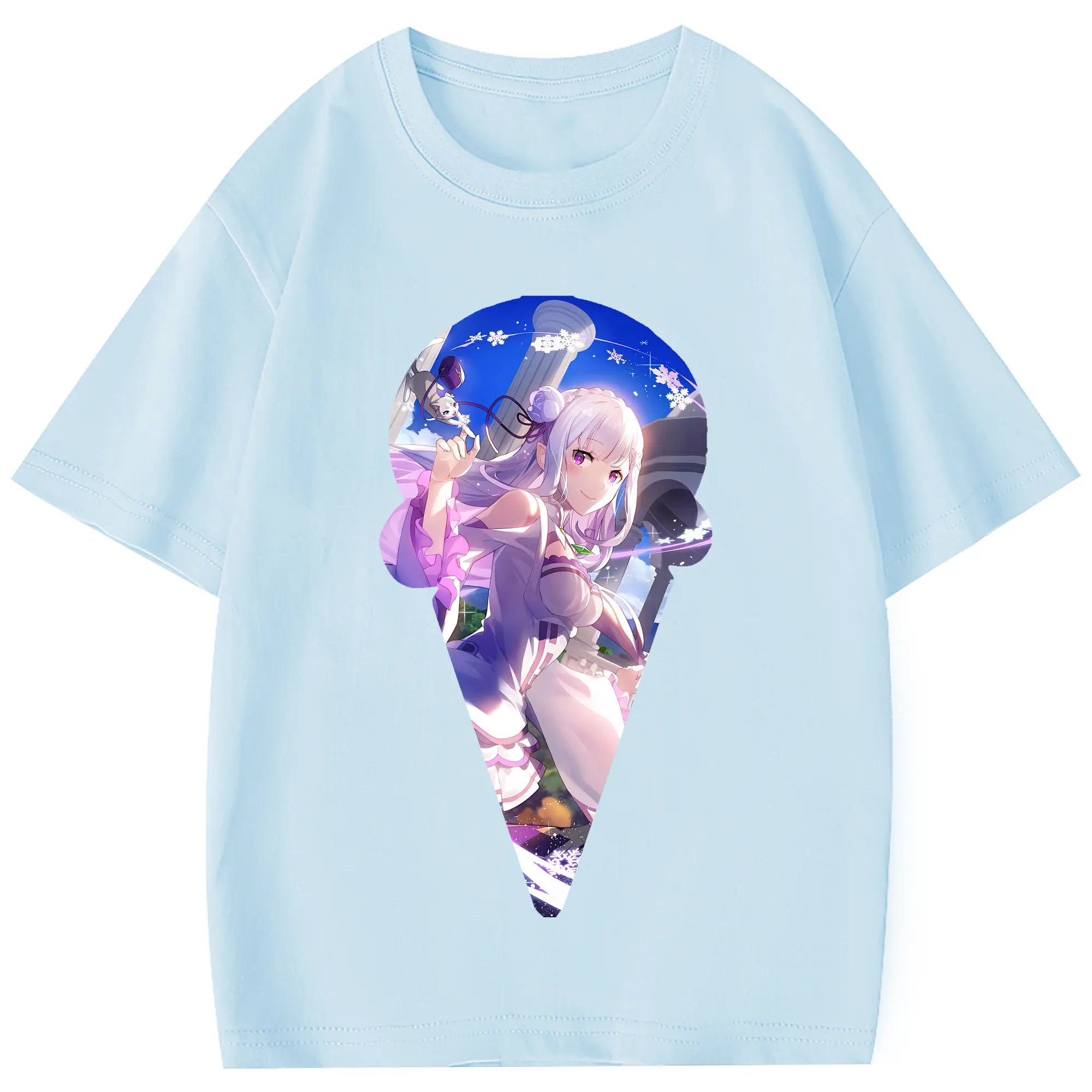 リゼロ グッズ エミリア - 綿100% 半袖Tシャツ ・ フロントプリント ・ 快適 通気性 ・ 日常使い 散歩 スポーツ用