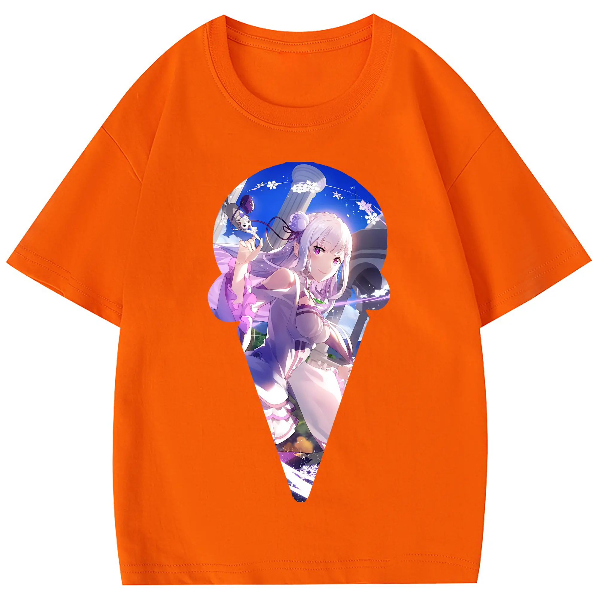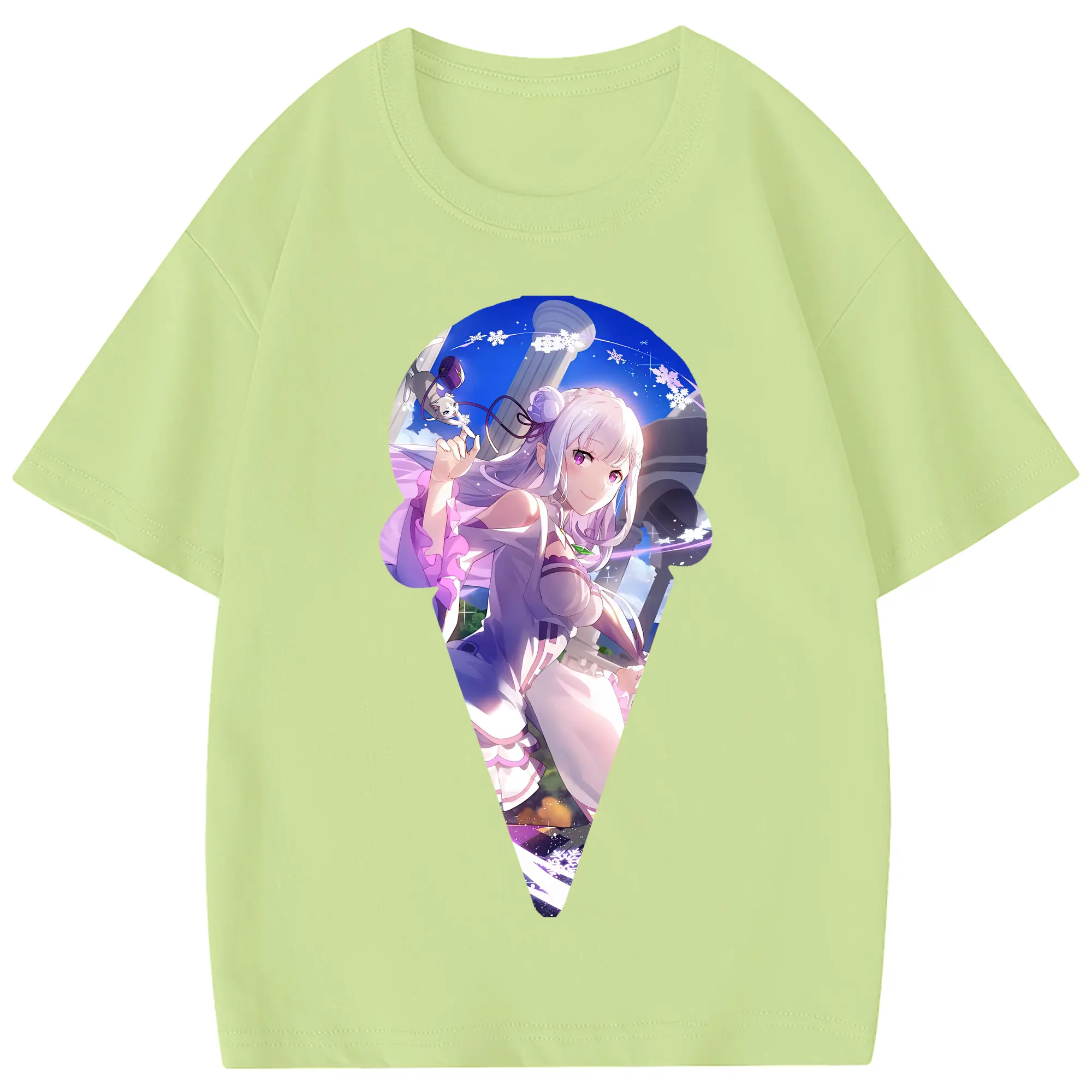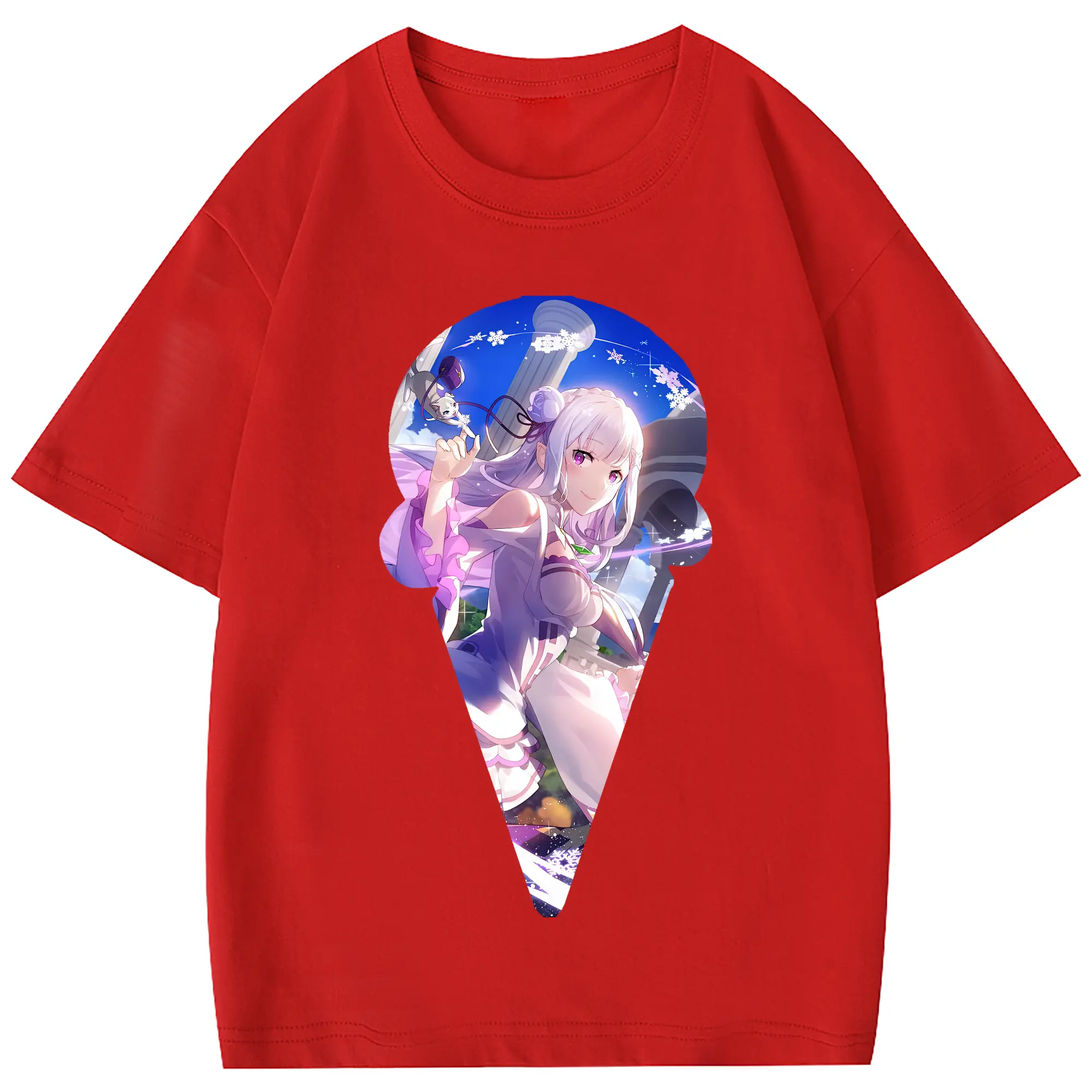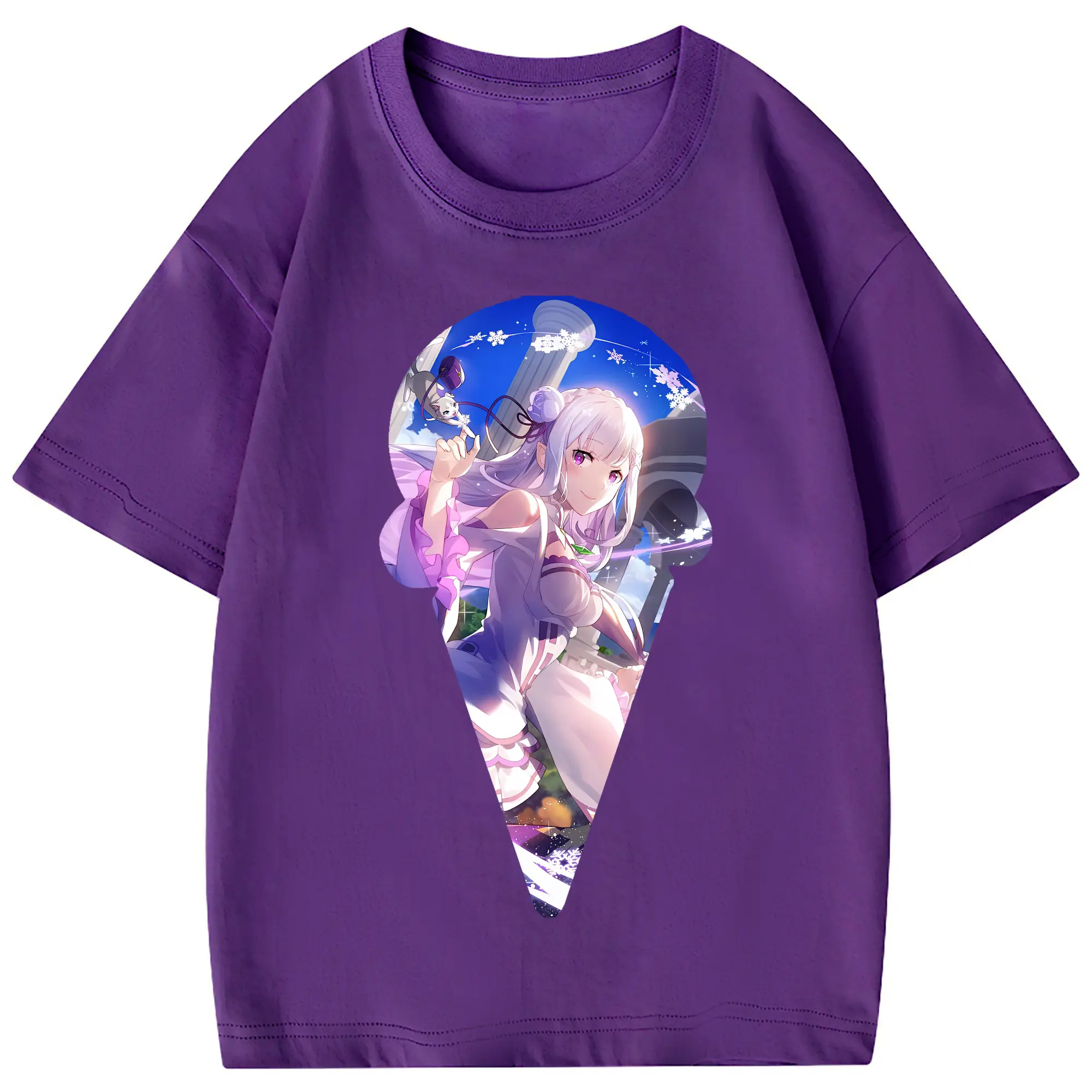リゼロ グッズ エミリア - 綿100% 半袖Tシャツ ・ フロントプリント ・ 快適 通気性 ・ 日常使い 散歩 スポーツ用