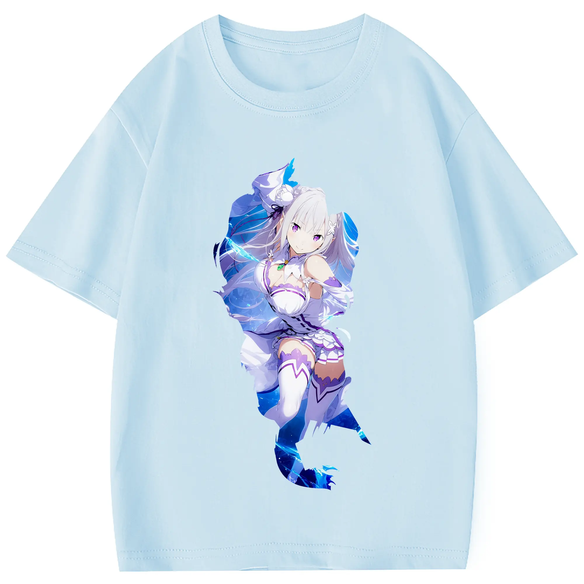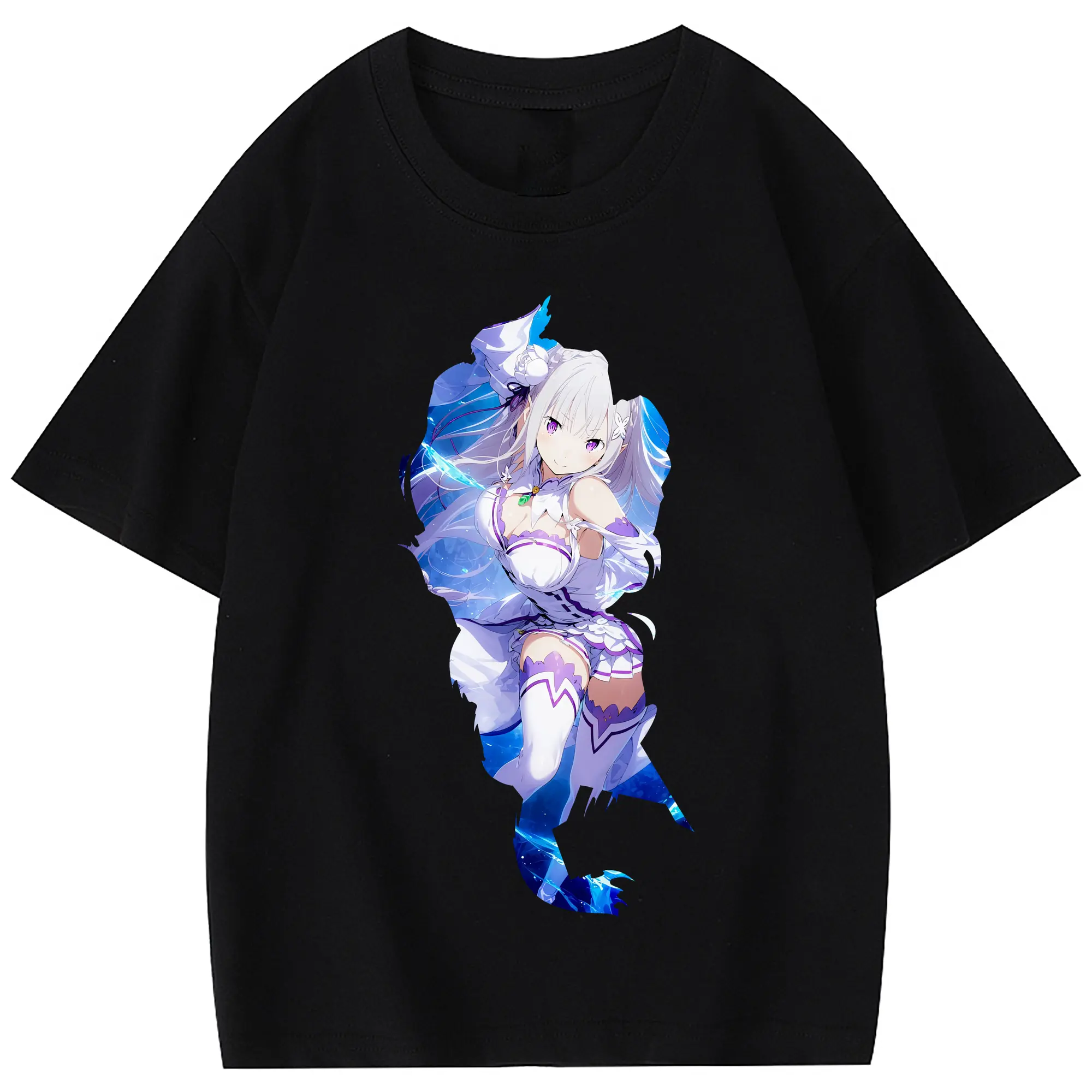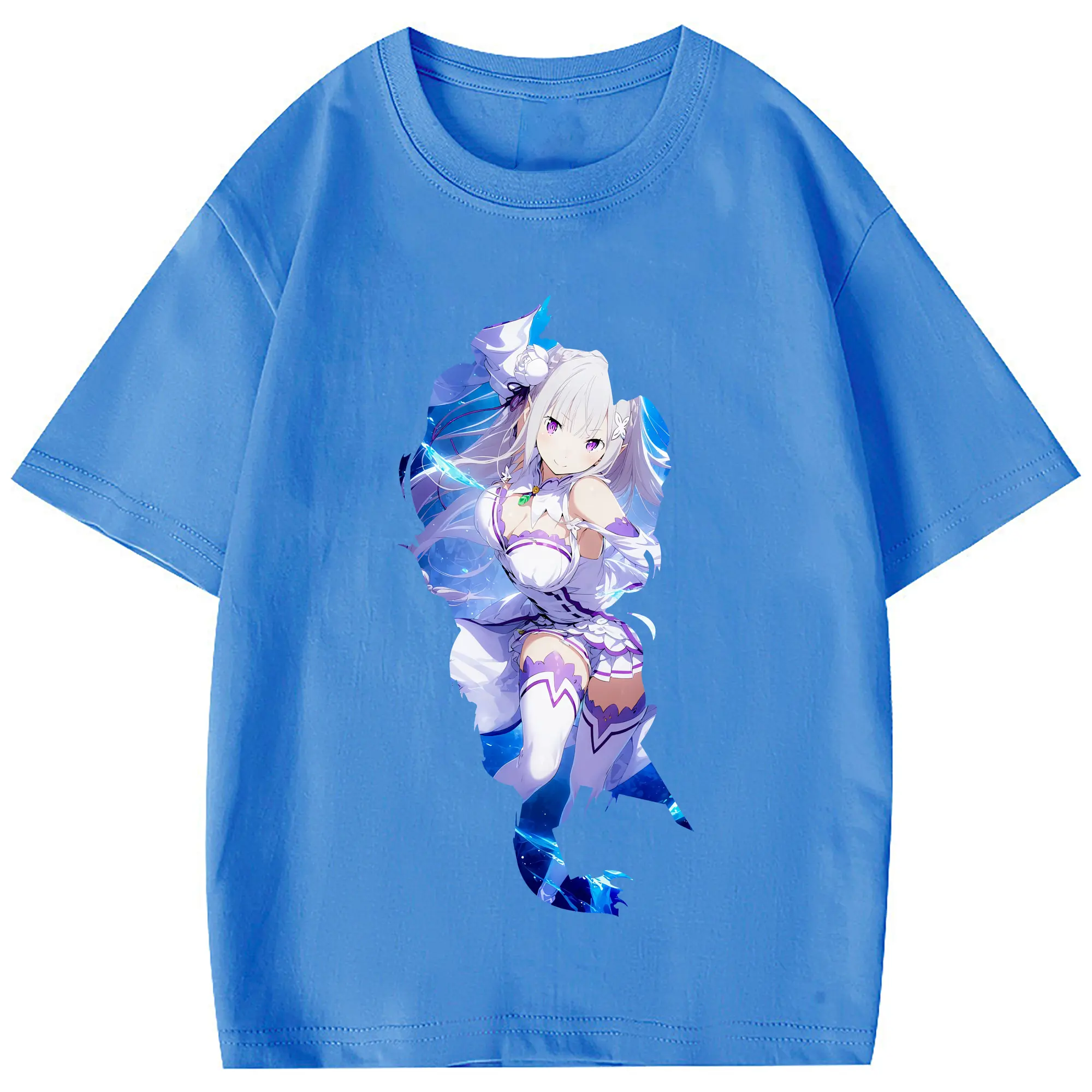 リゼロ グッズ エミリア - 綿100% 半袖Tシャツ ・ フロントプリント ・ 快適 通気性 ・ 日常使い 散歩 スポーツ用
