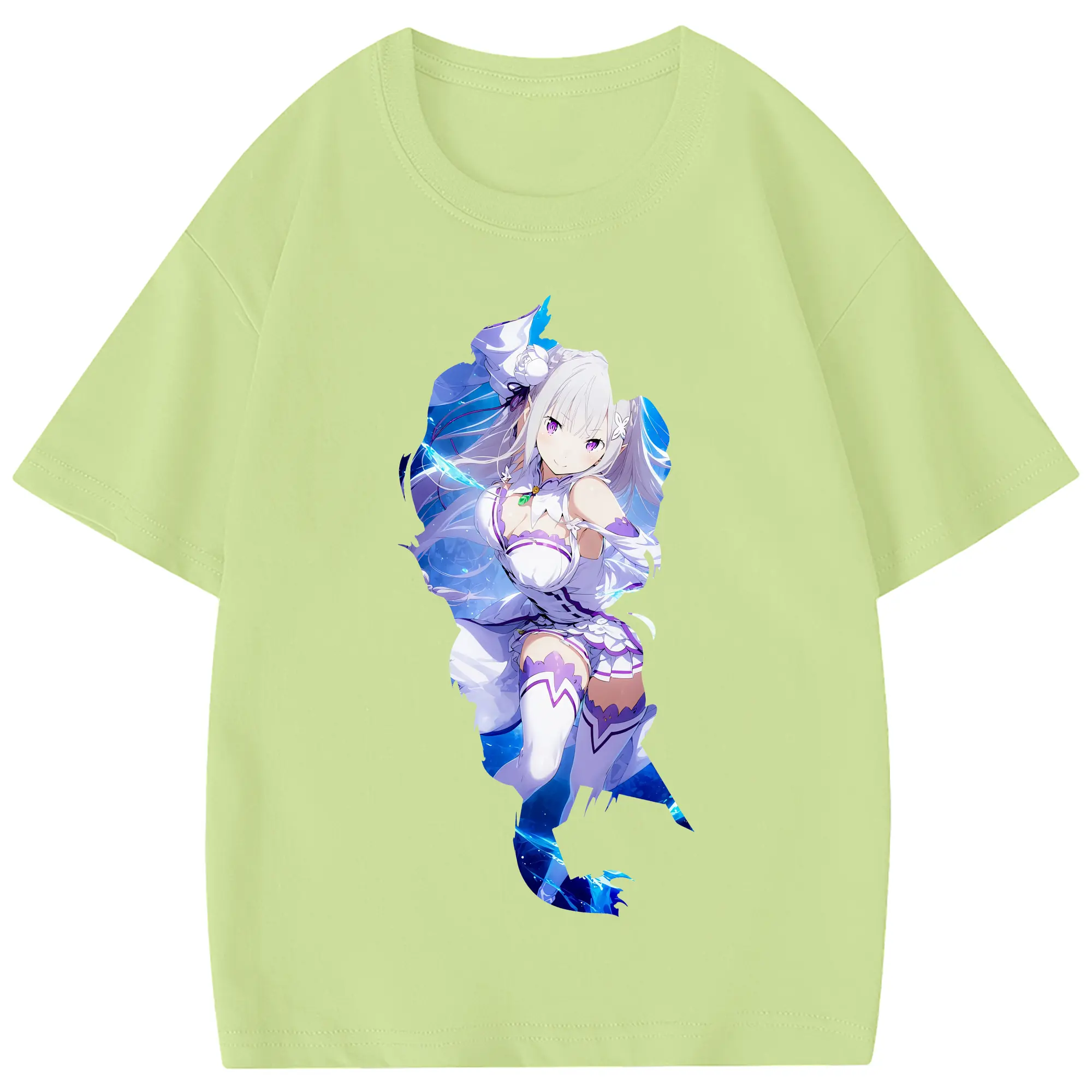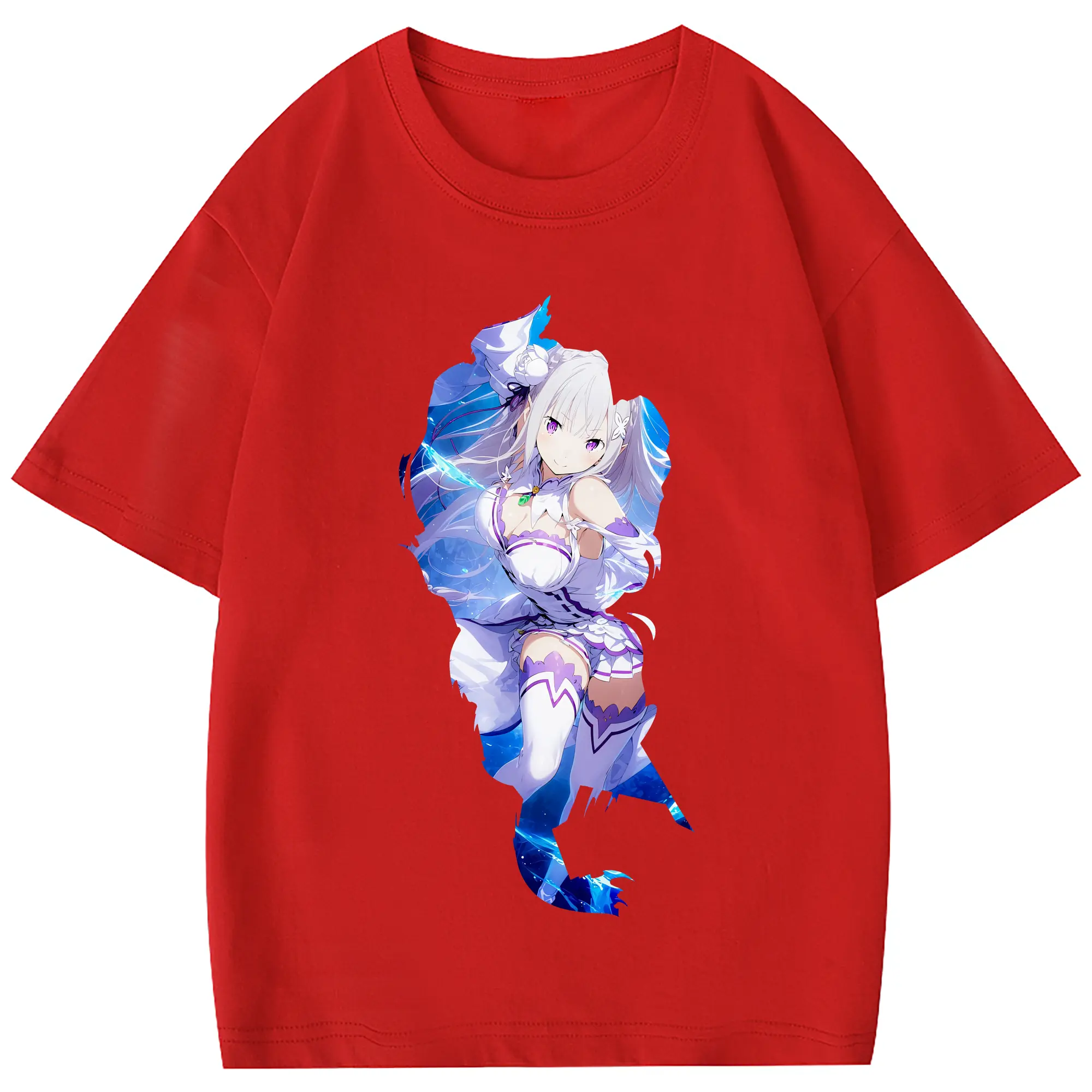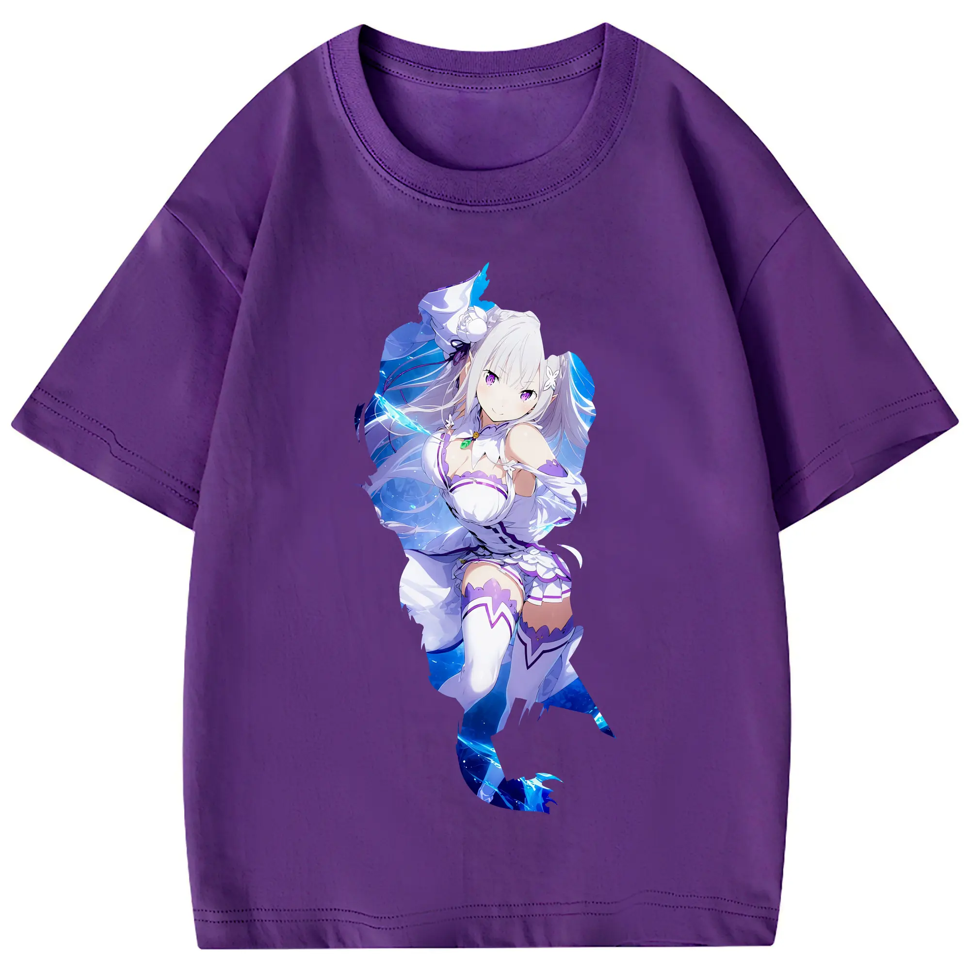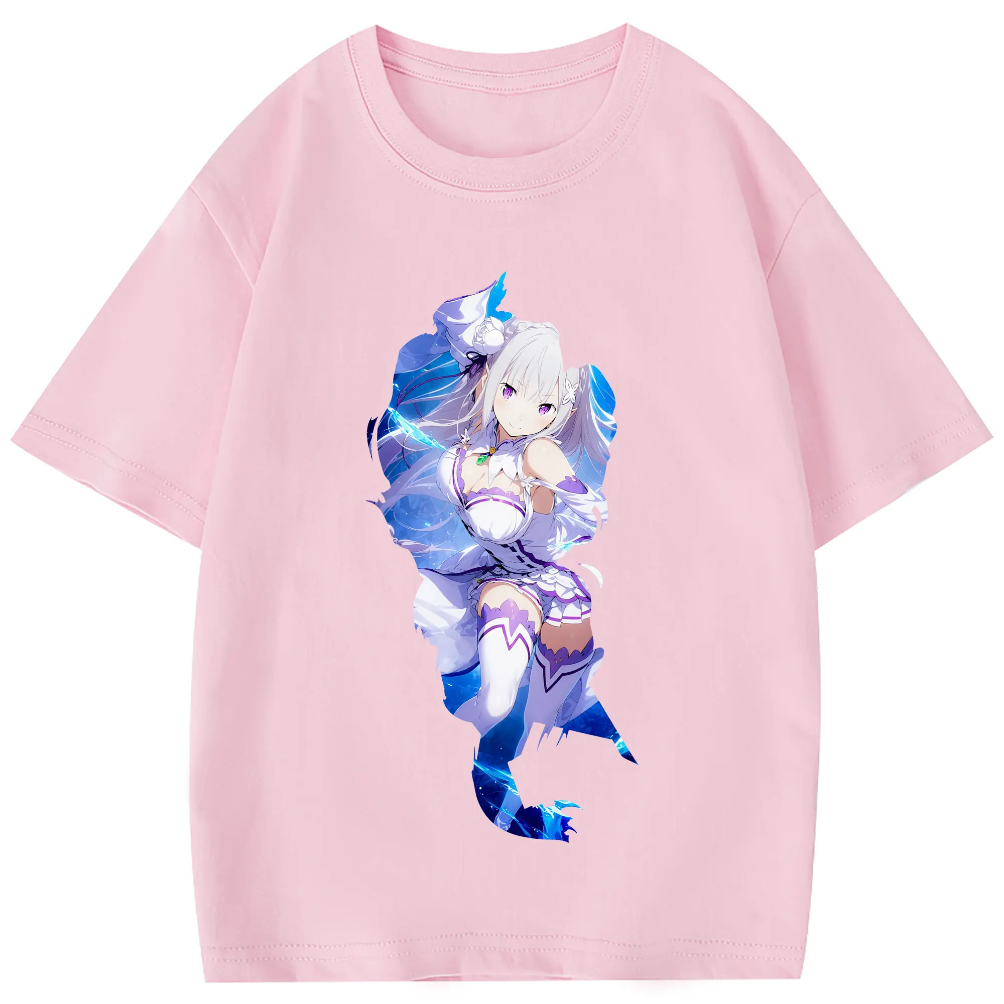 リゼロ グッズ エミリア - 綿100% 半袖Tシャツ ・ フロントプリント ・ 快適 通気性 ・ 日常使い 散歩 スポーツ用