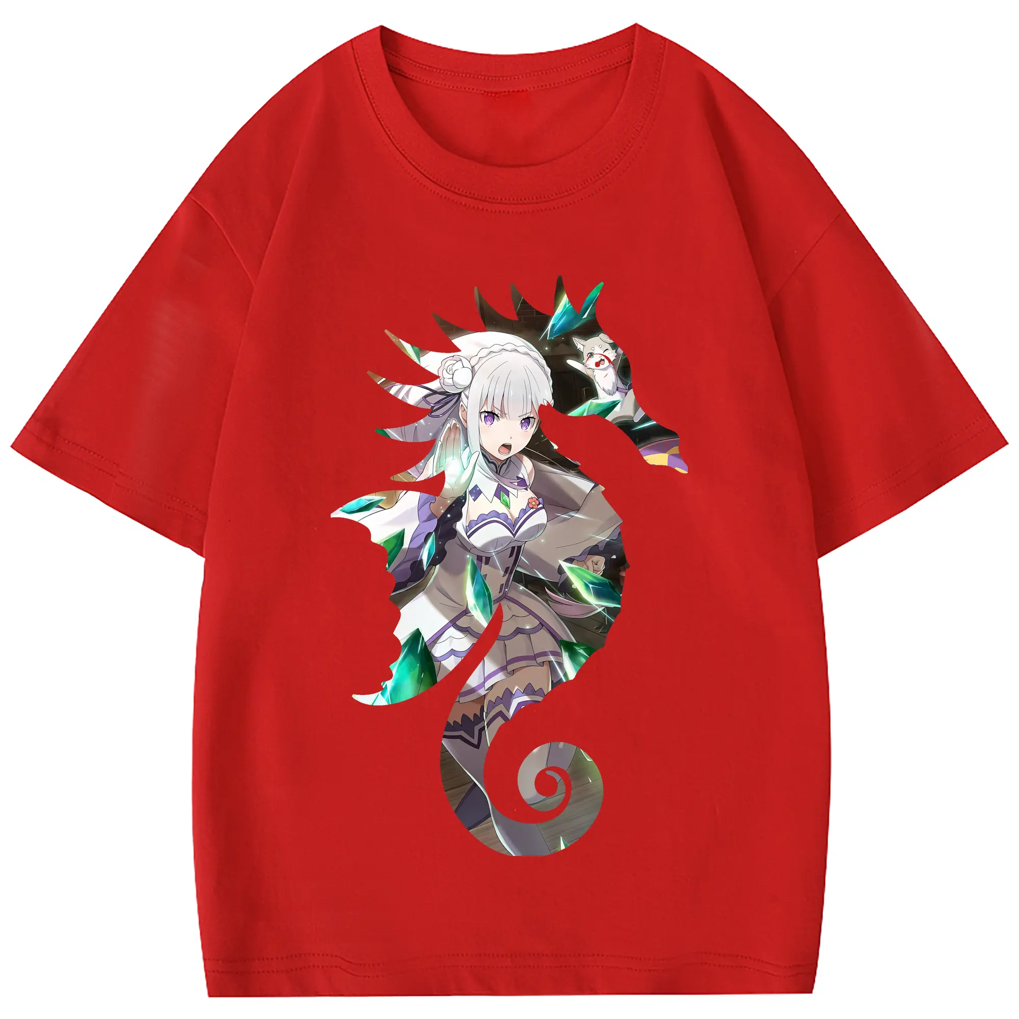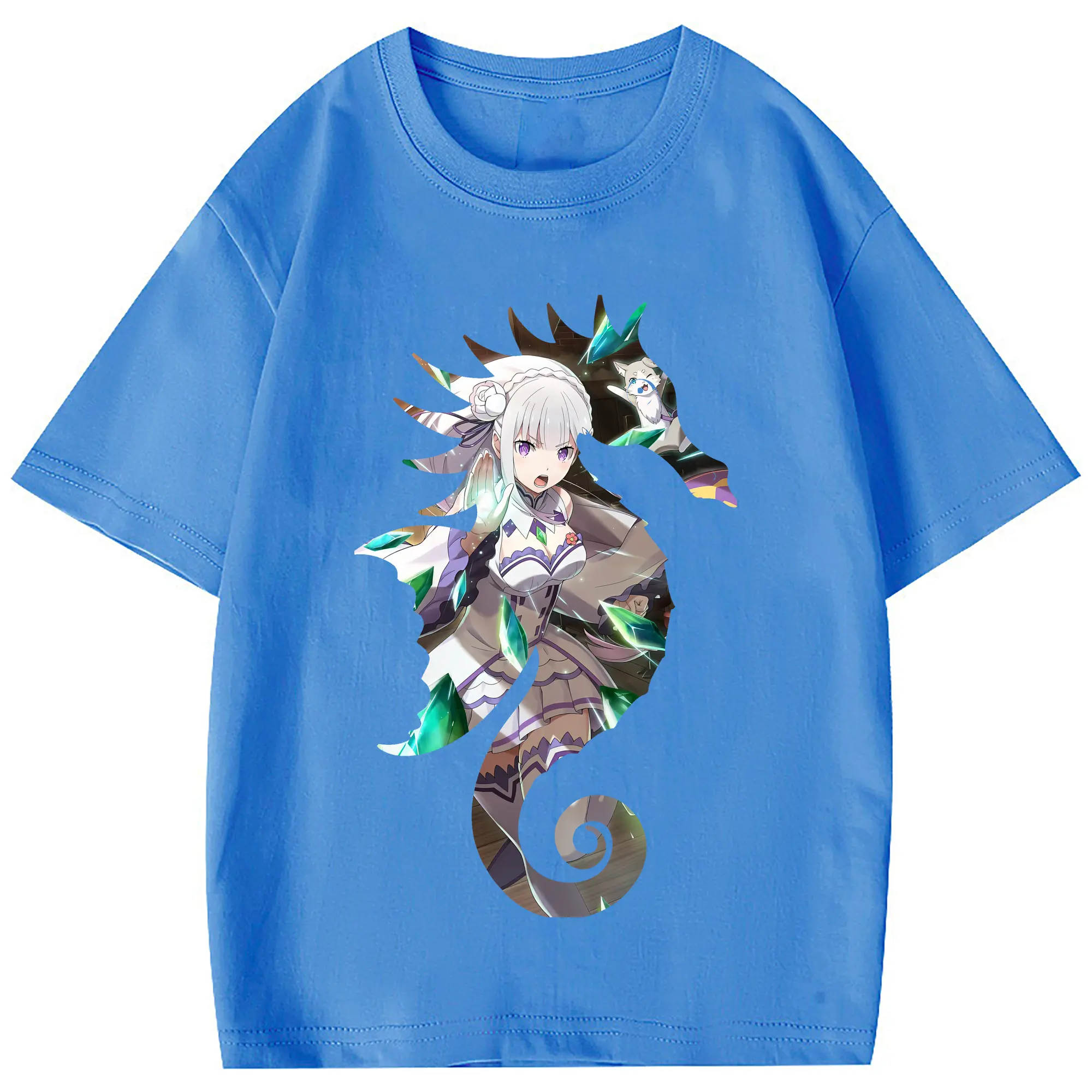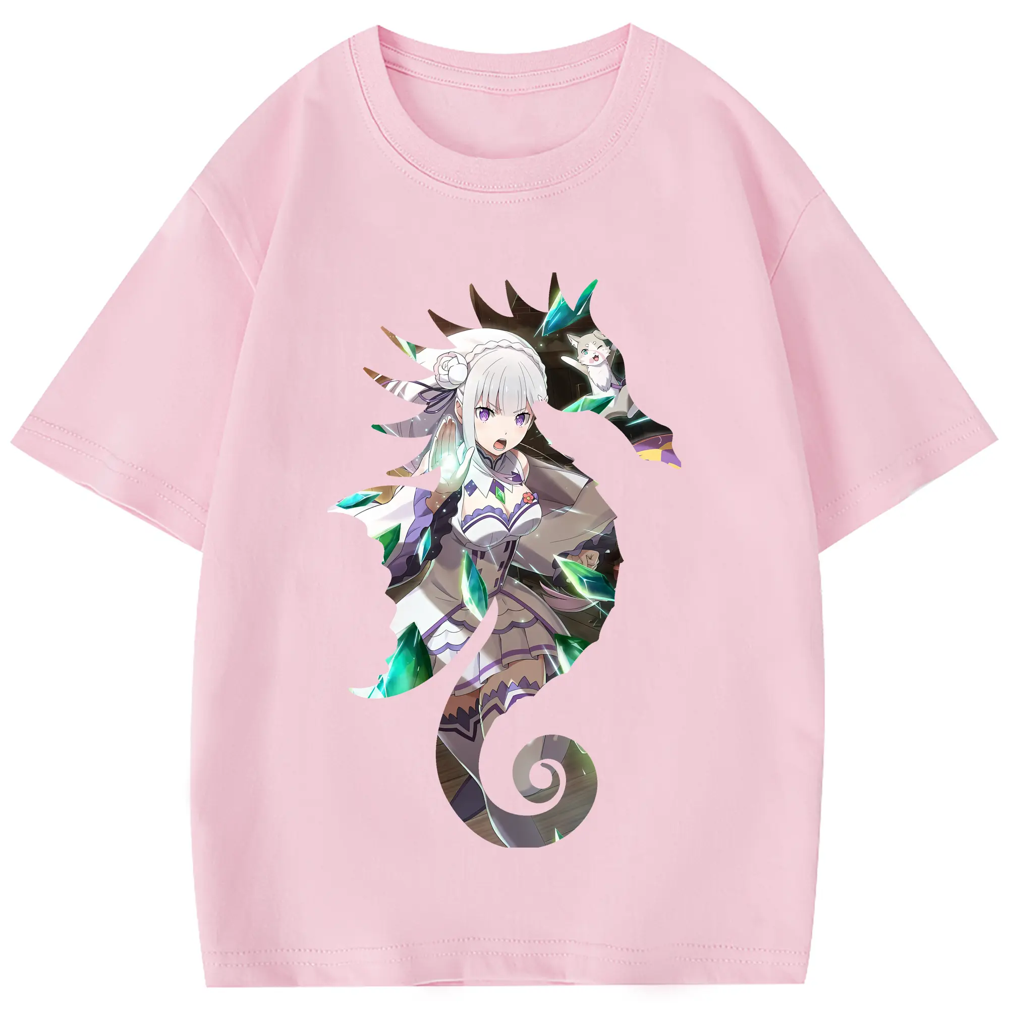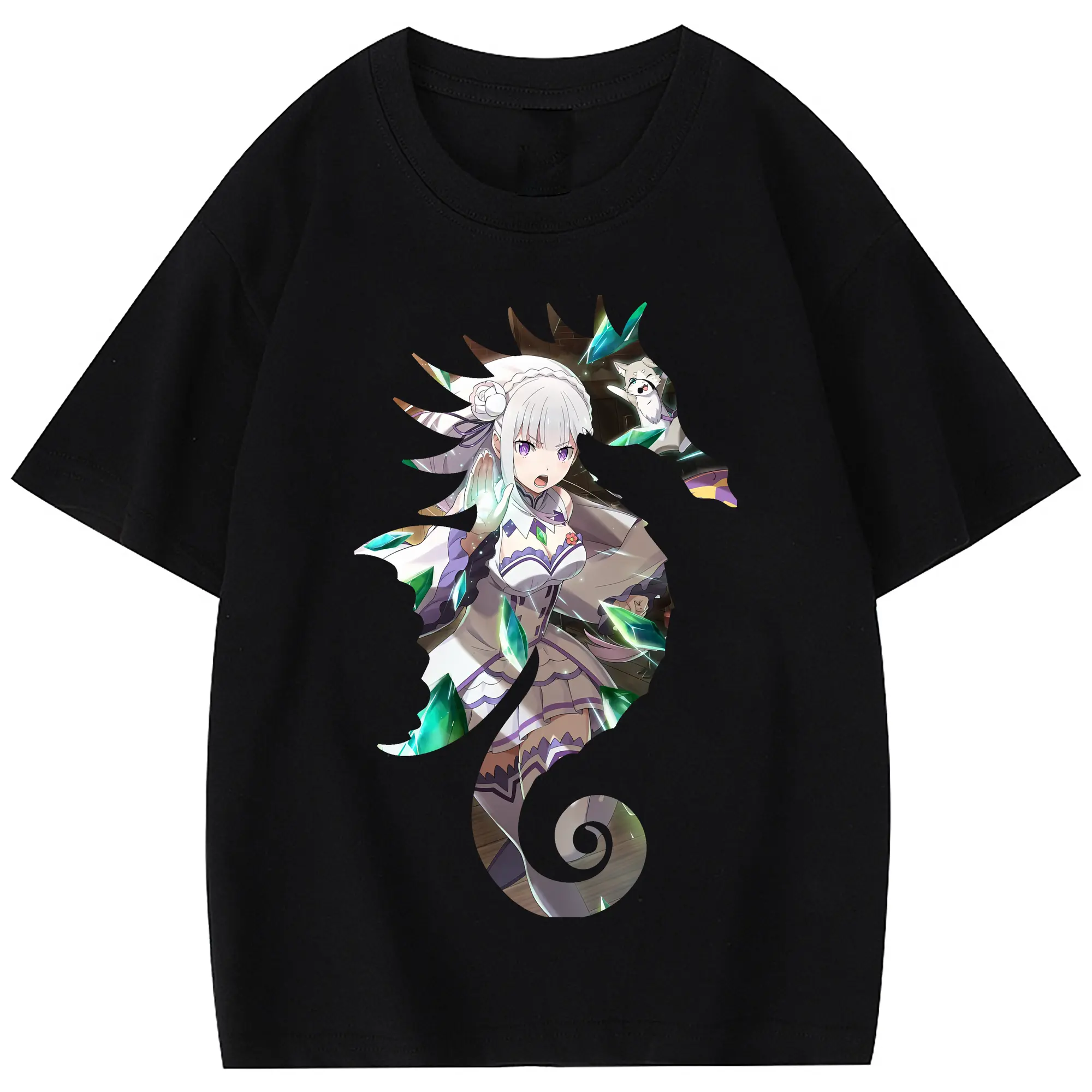 リゼロ グッズ エミリア - 綿100% 半袖Tシャツ ・ フロントプリント ・ 快適 通気性 ・ 日常使い 散歩 スポーツ用