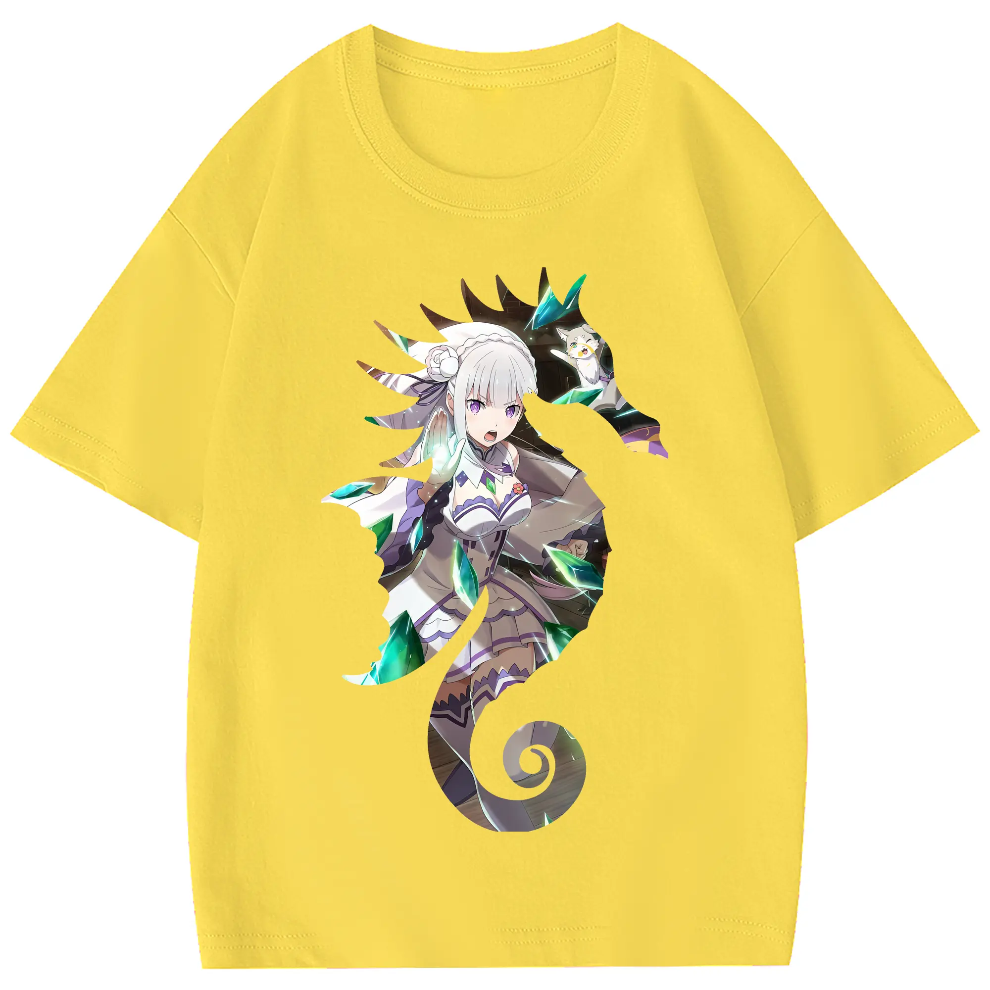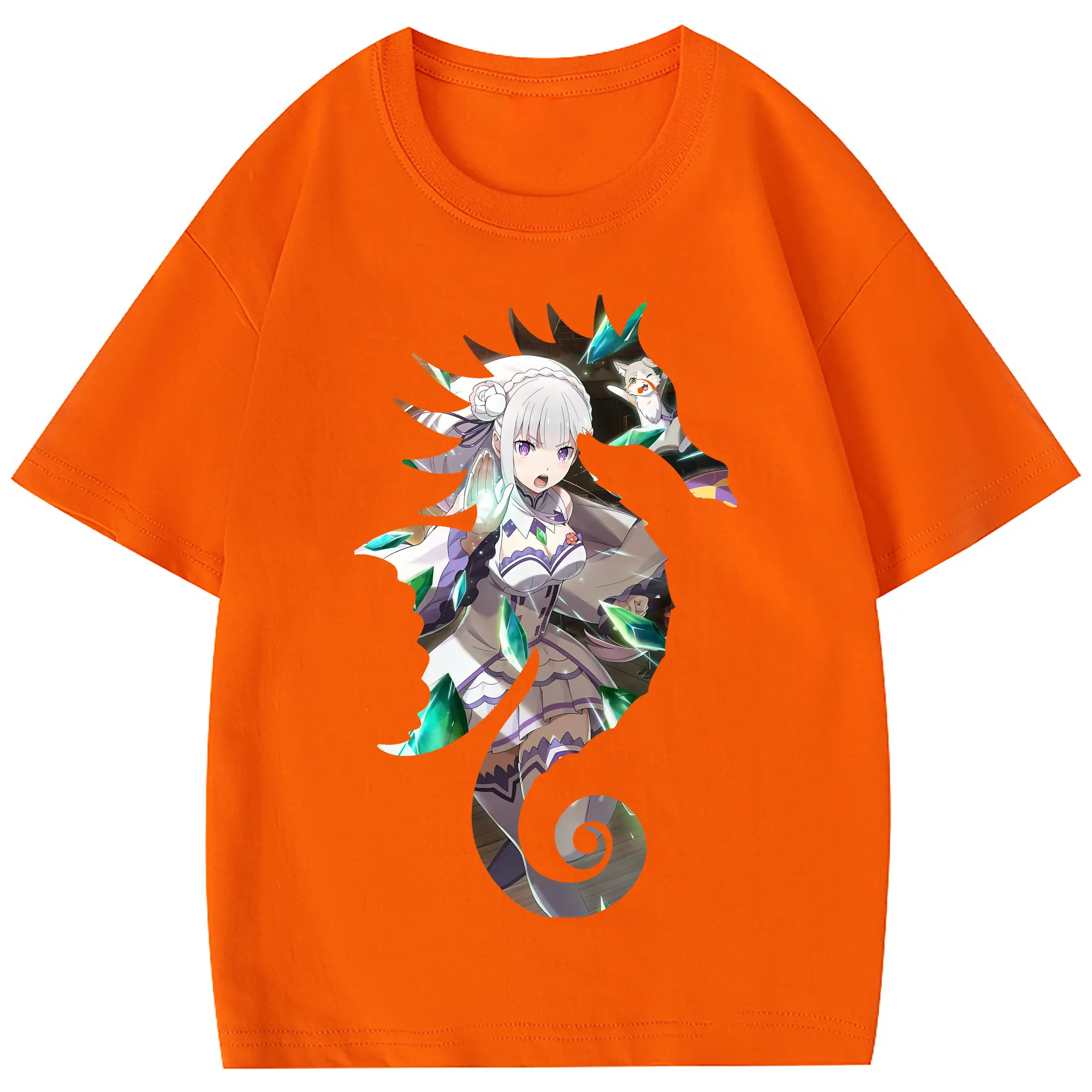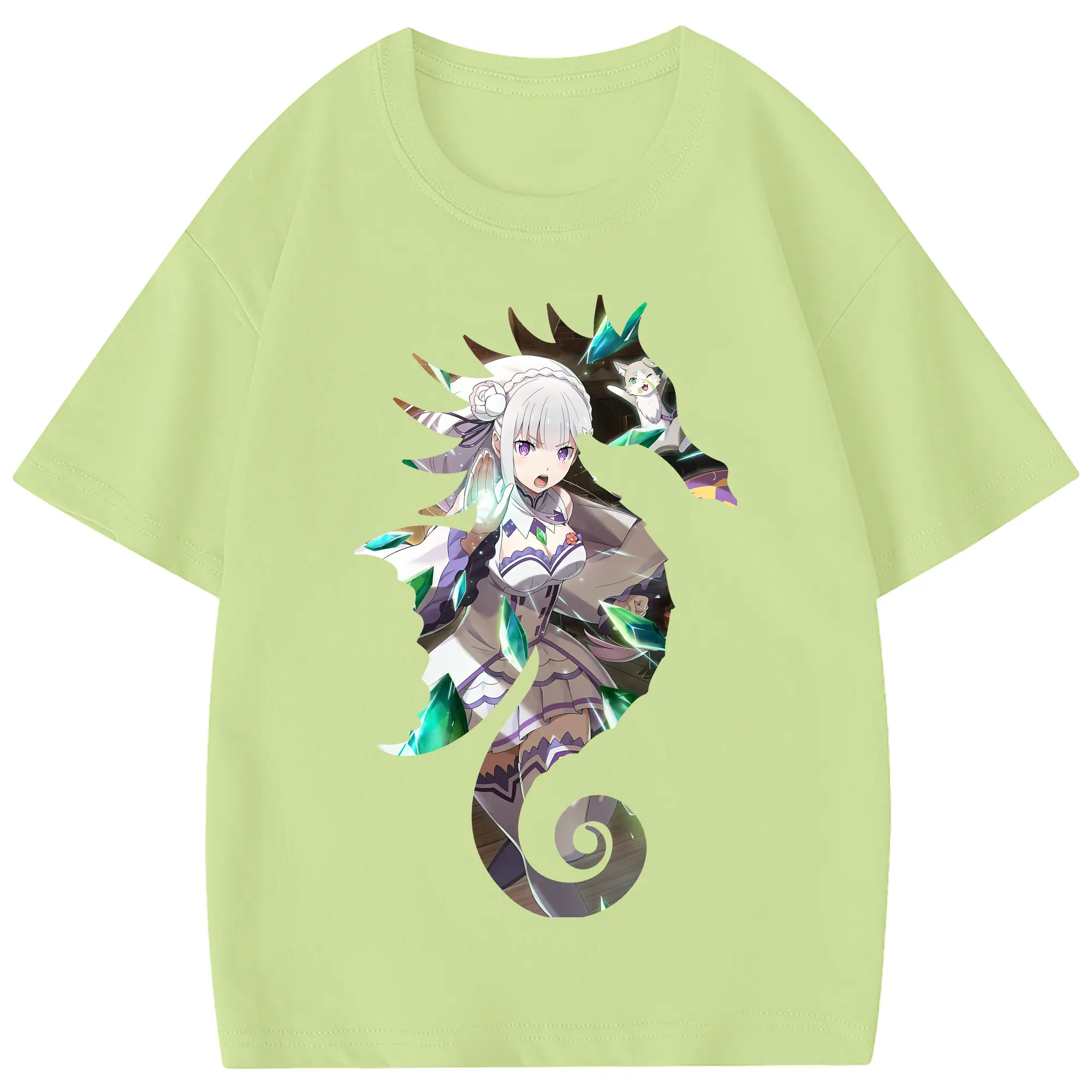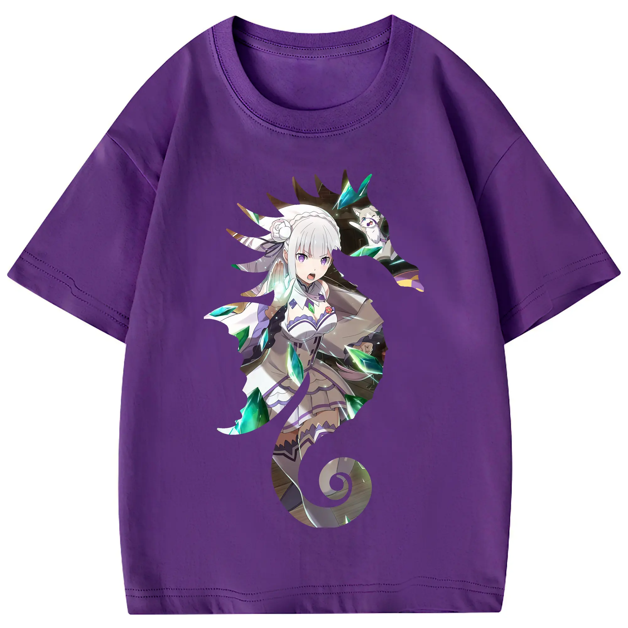 リゼロ グッズ エミリア - 綿100% 半袖Tシャツ ・ フロントプリント ・ 快適 通気性 ・ 日常使い 散歩 スポーツ用