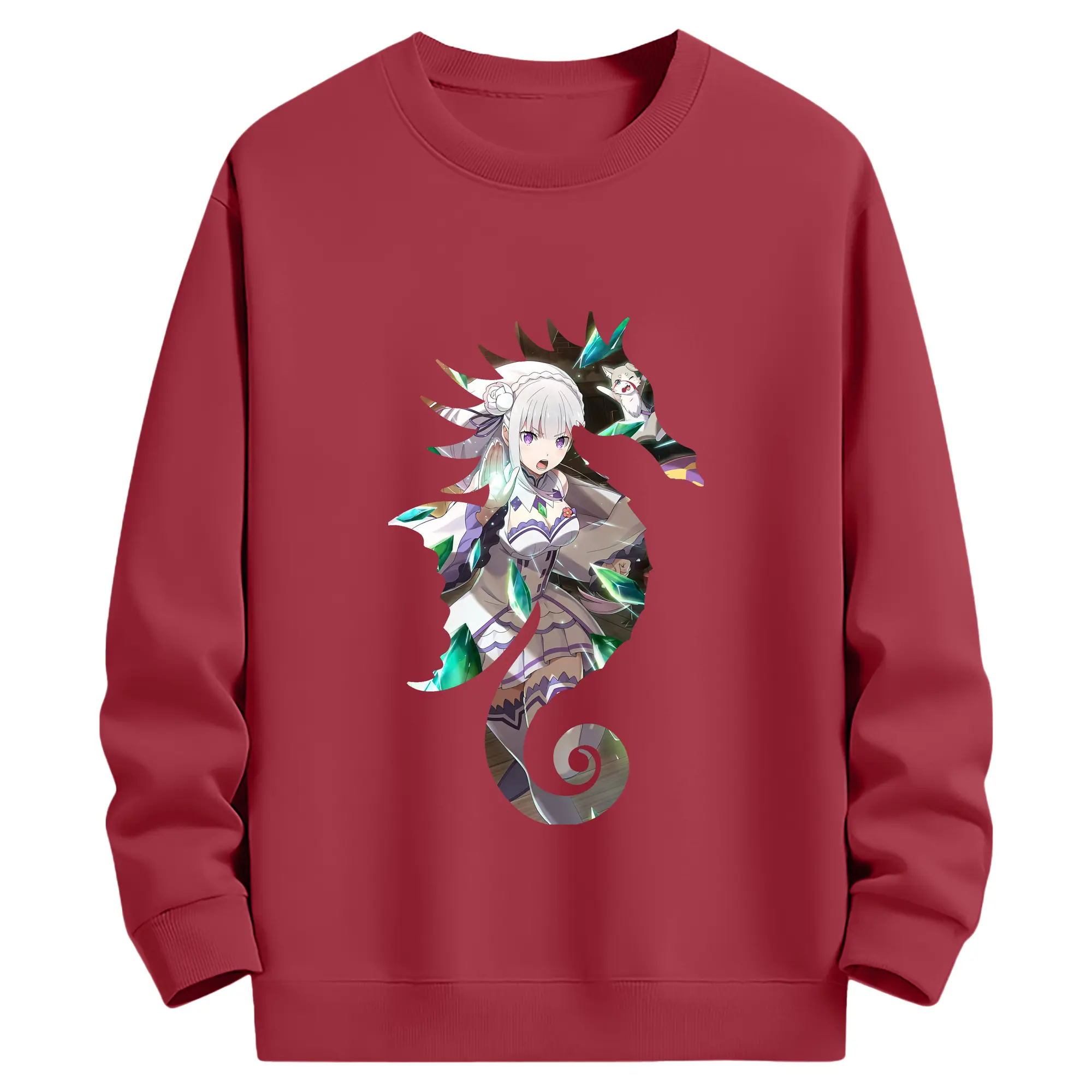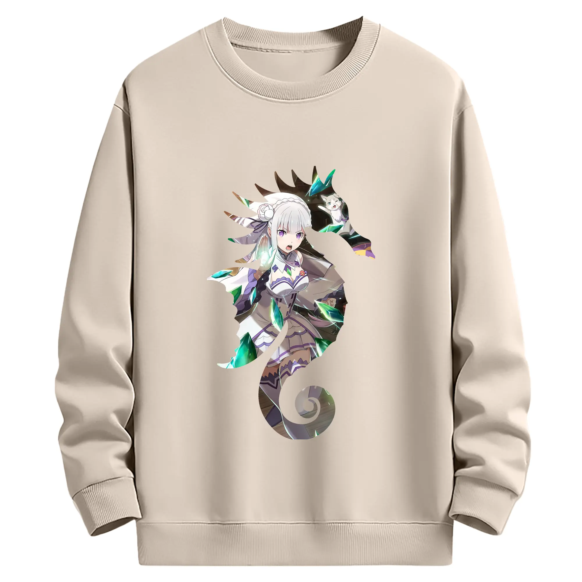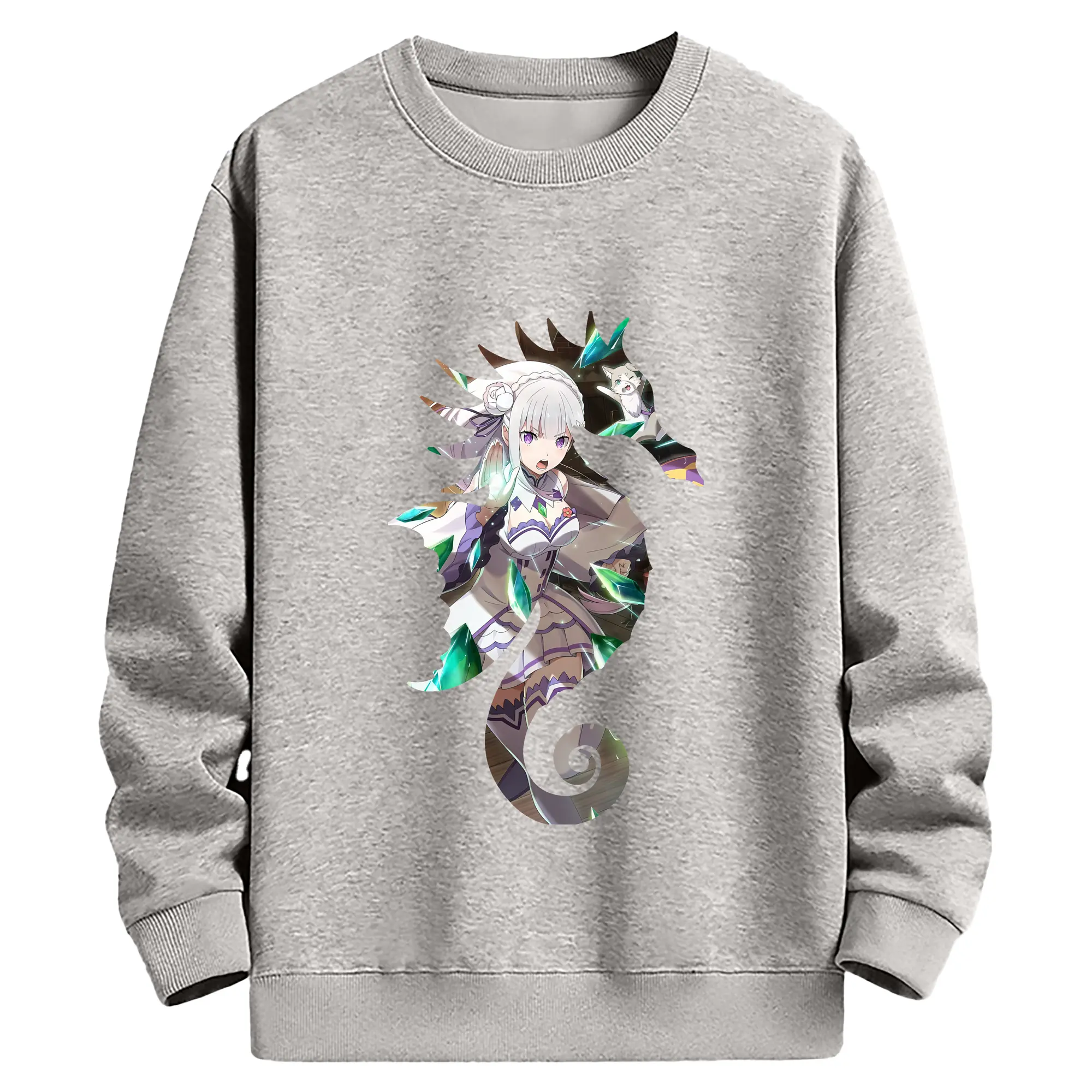 リゼロ グッズ エミリア - 薄手 クルーネック スウェット 裏毛260g · ポリエステル 春秋向け カジュアル 男女兼用 · トレーナー デイリー スポーツ 散歩に最適