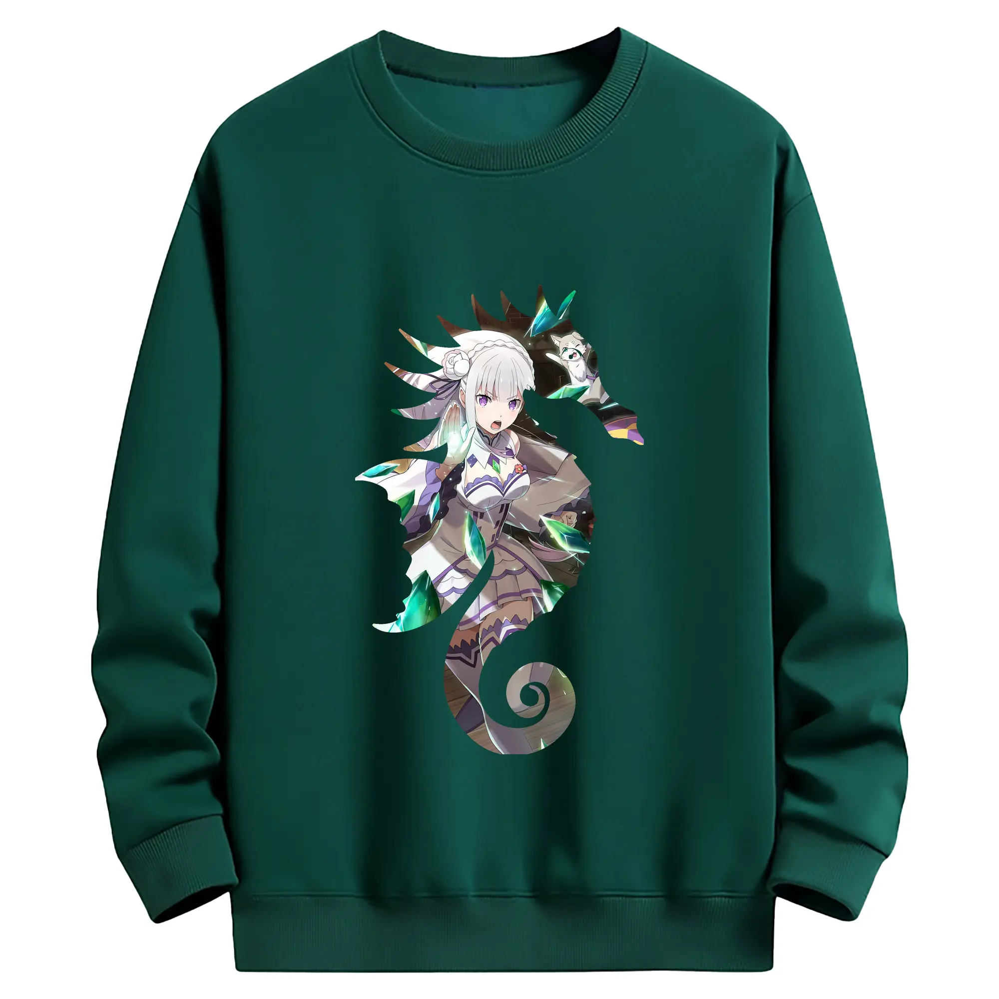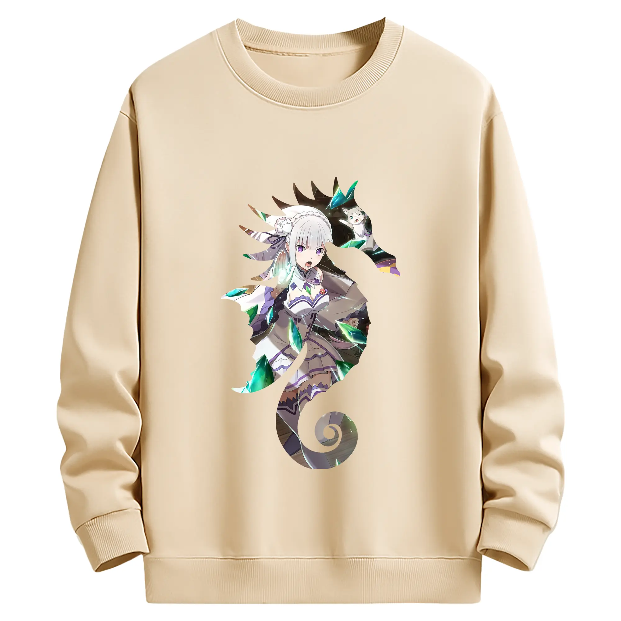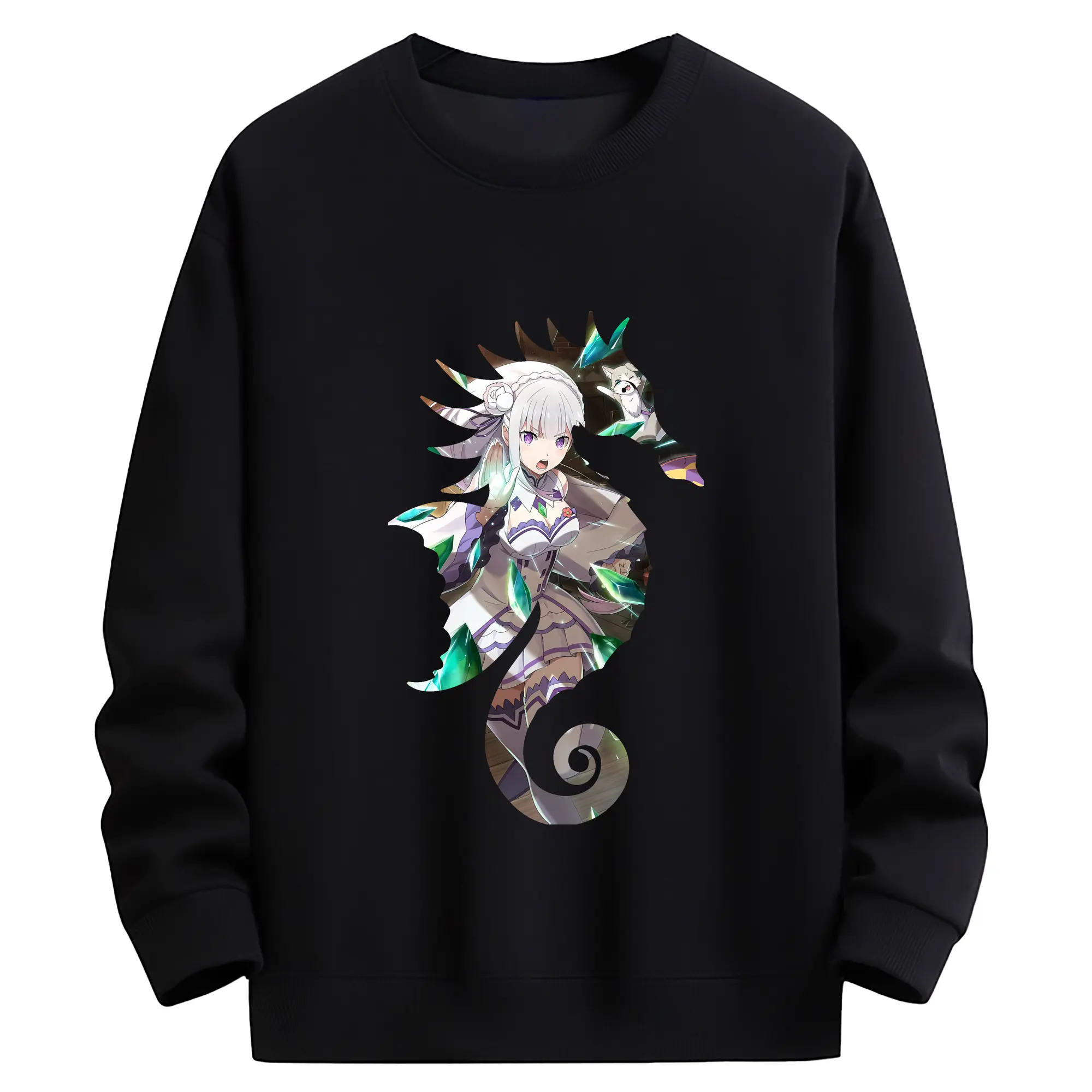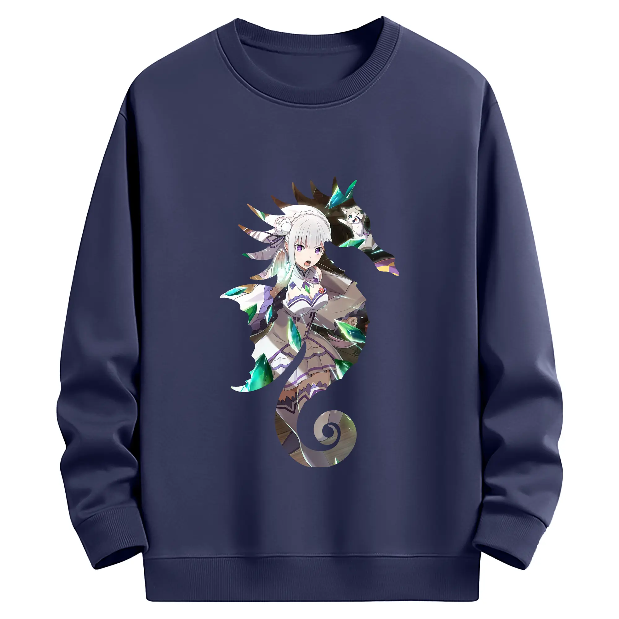リゼロ グッズ エミリア - 薄手 クルーネック スウェット 裏毛260g · ポリエステル 春秋向け カジュアル 男女兼用 · トレーナー デイリー スポーツ 散歩に最適
