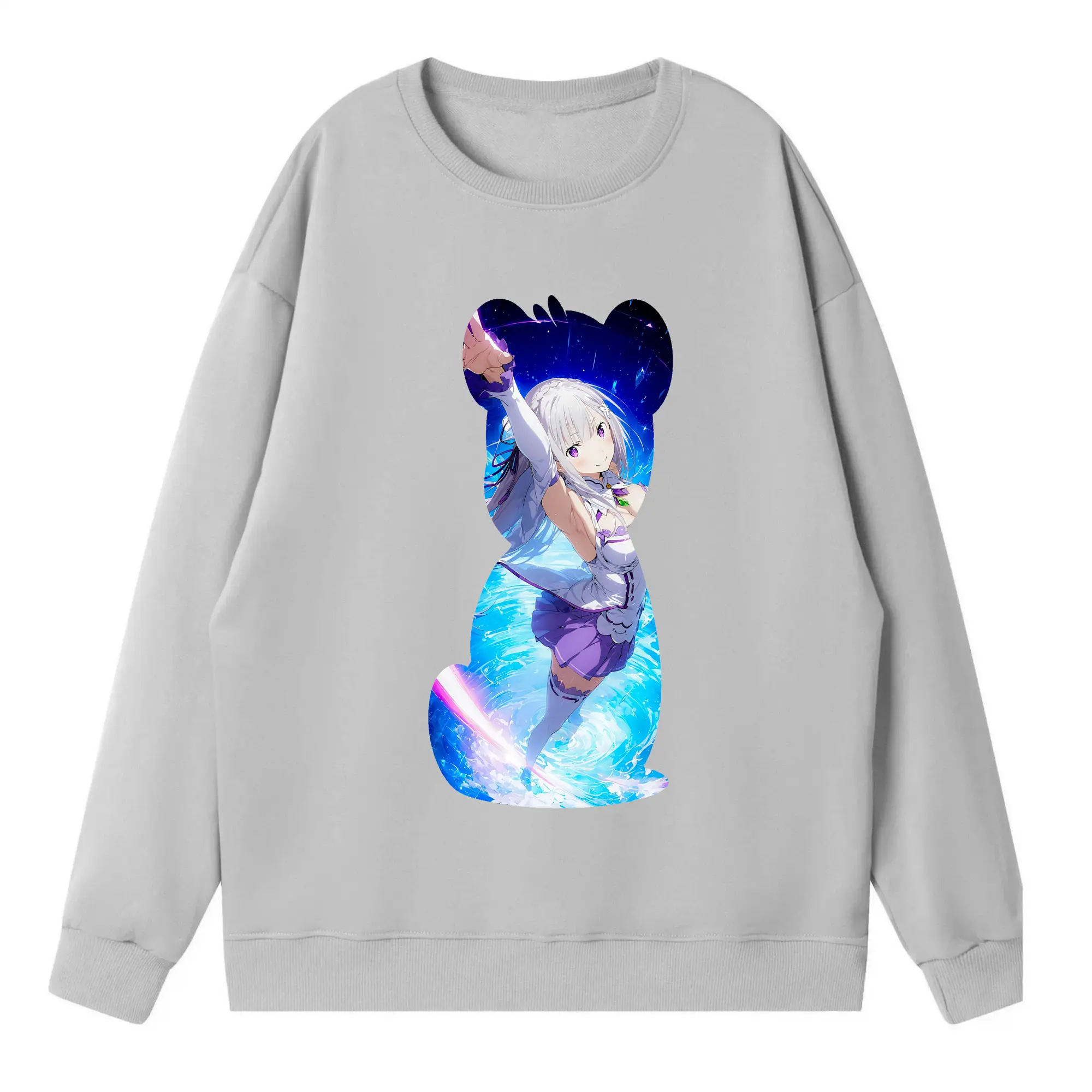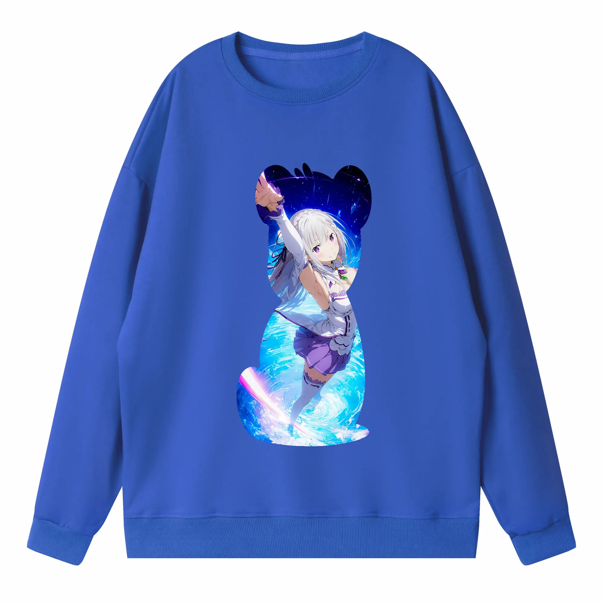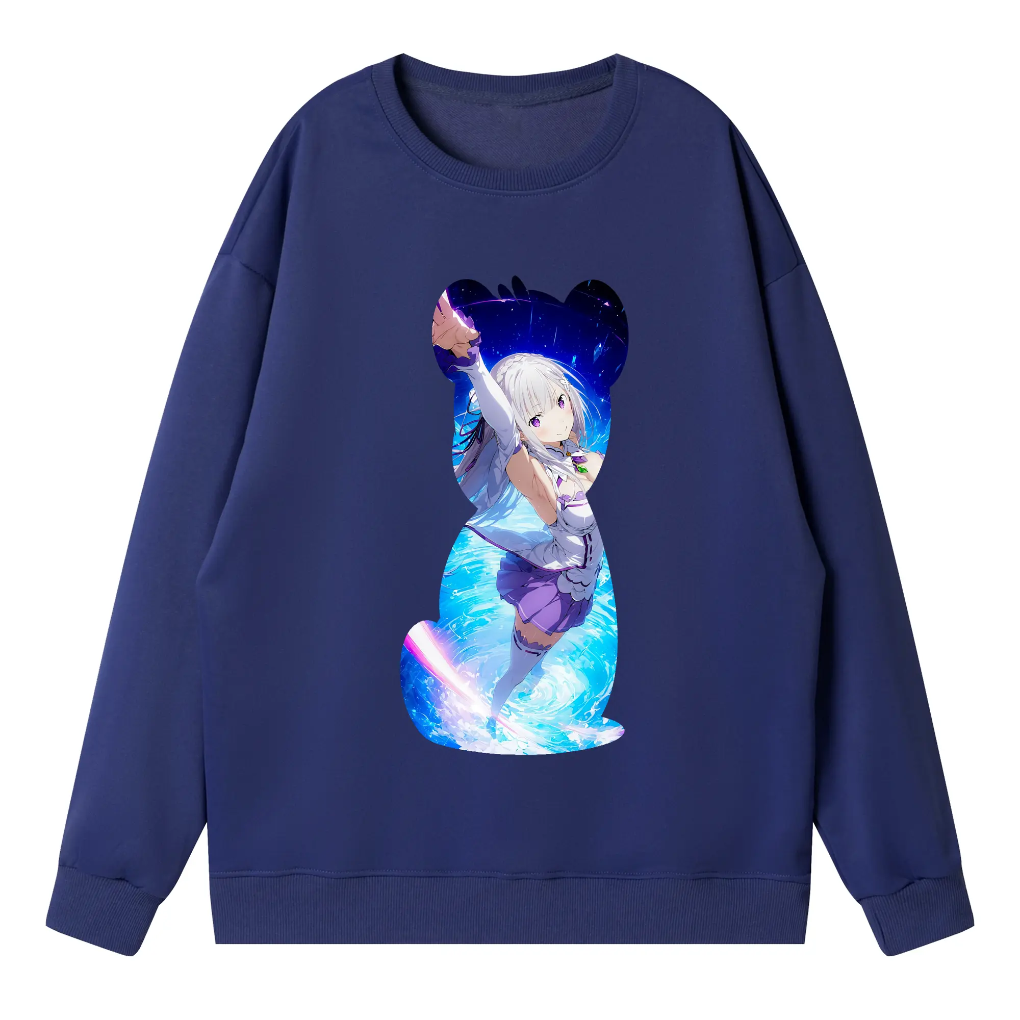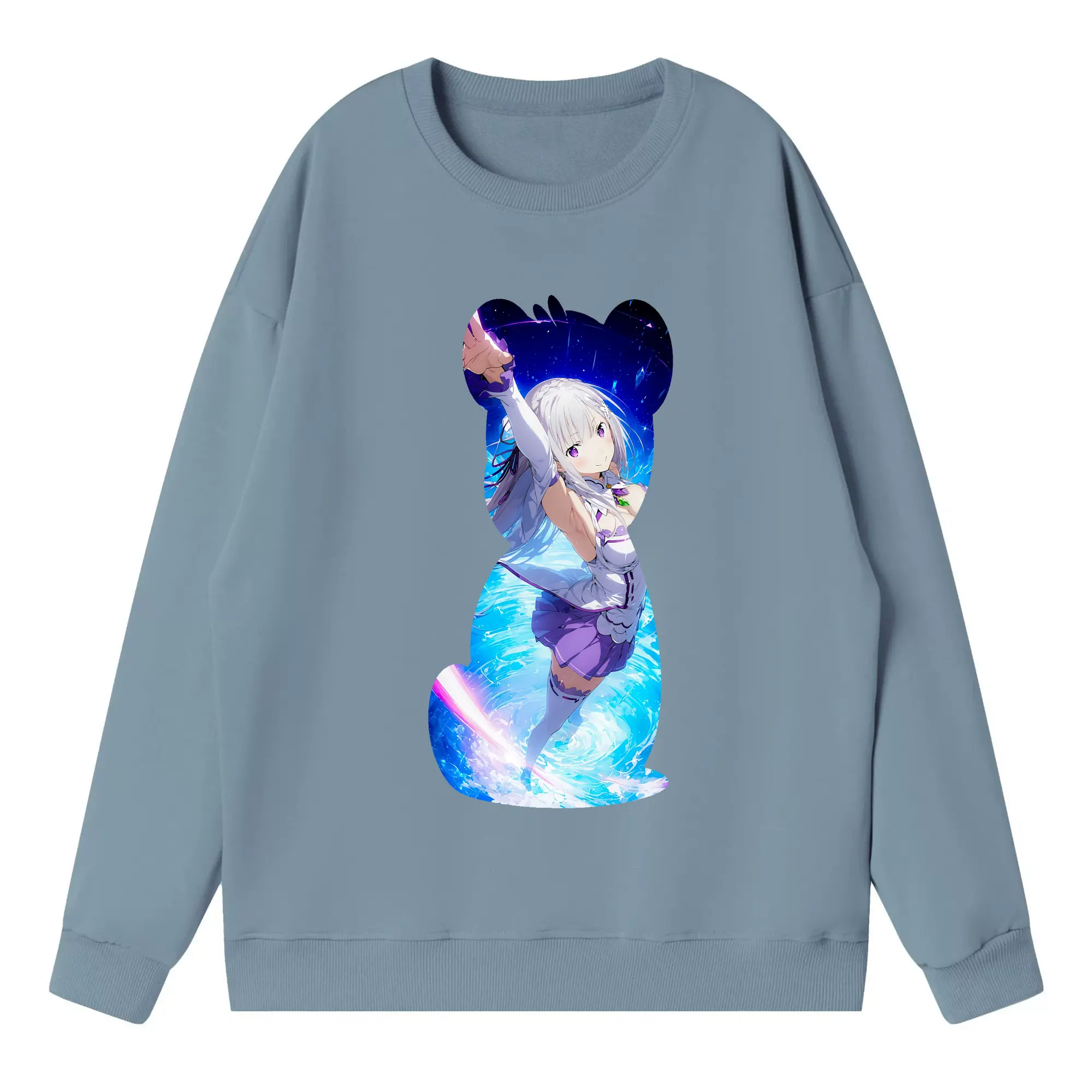 リゼロ グッズ エミリア - 高品質 クルーネック スウェット ・ コットン59% ポリエステル41% ・ ユニセックス 長袖 トレーナー ・ カジュアル デイリー スポーツ 散歩用