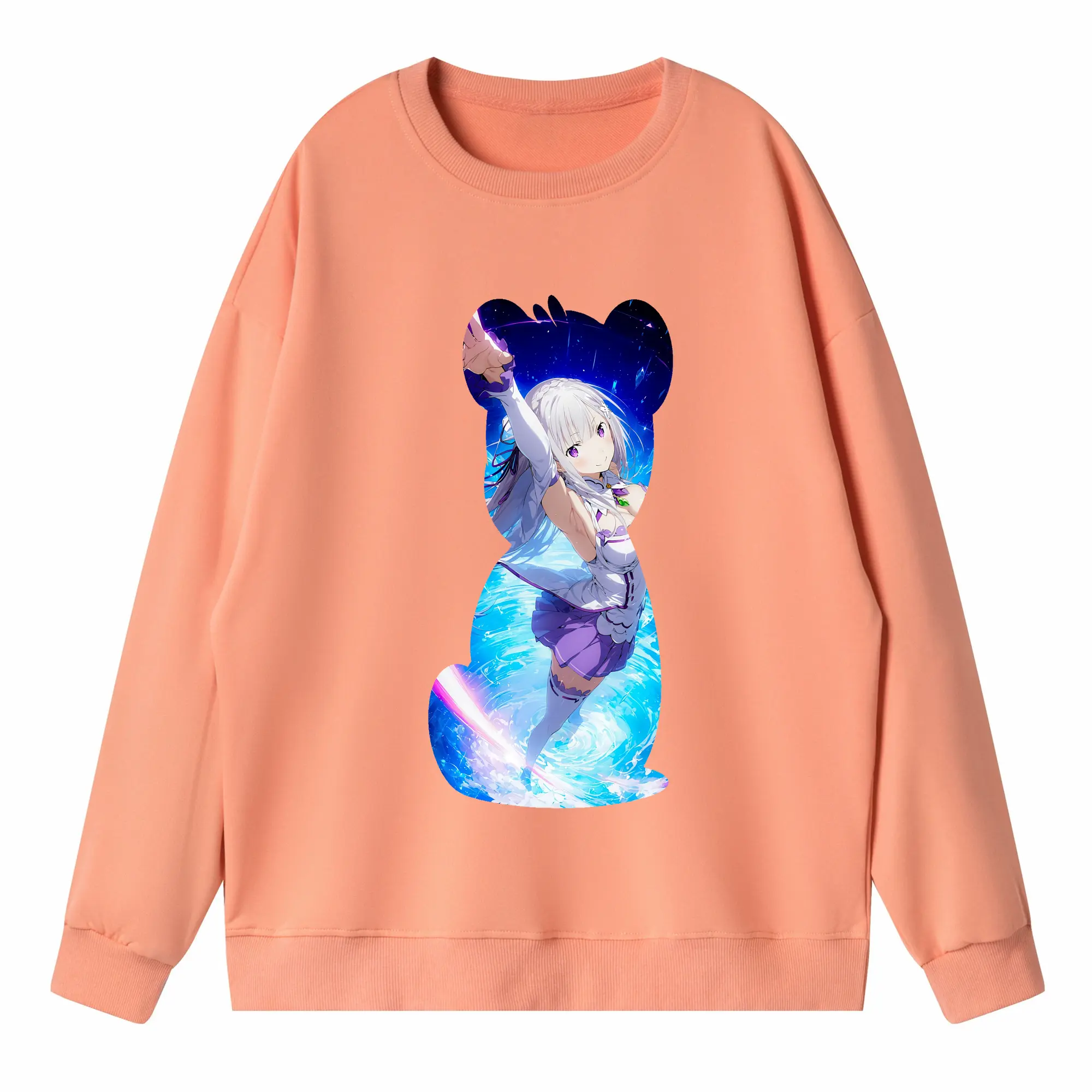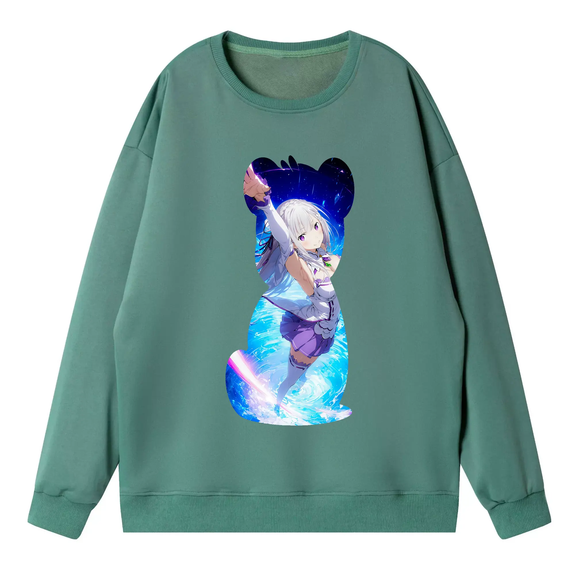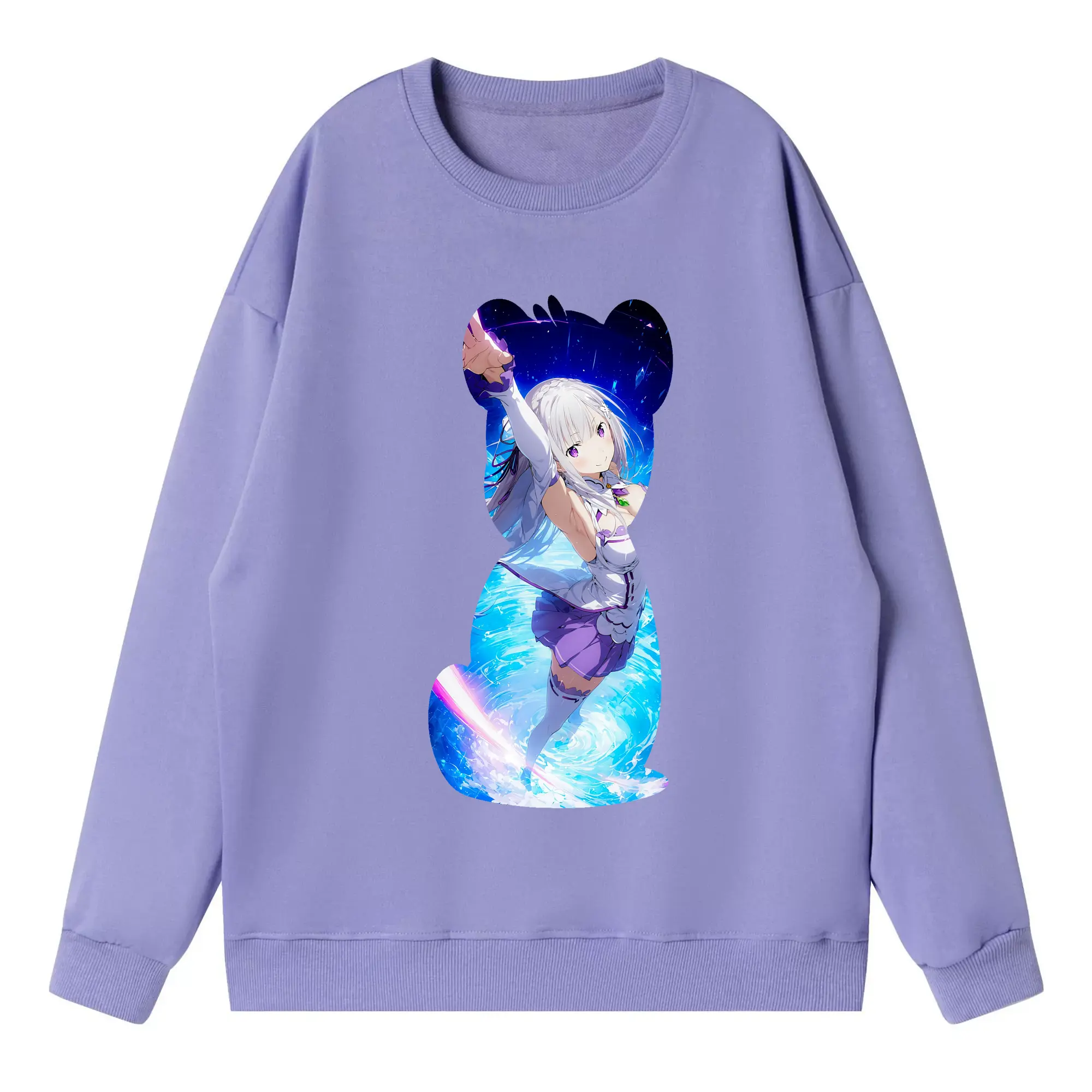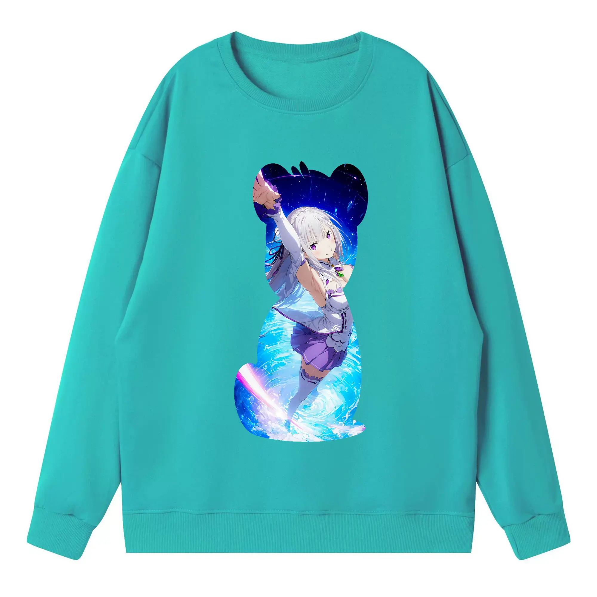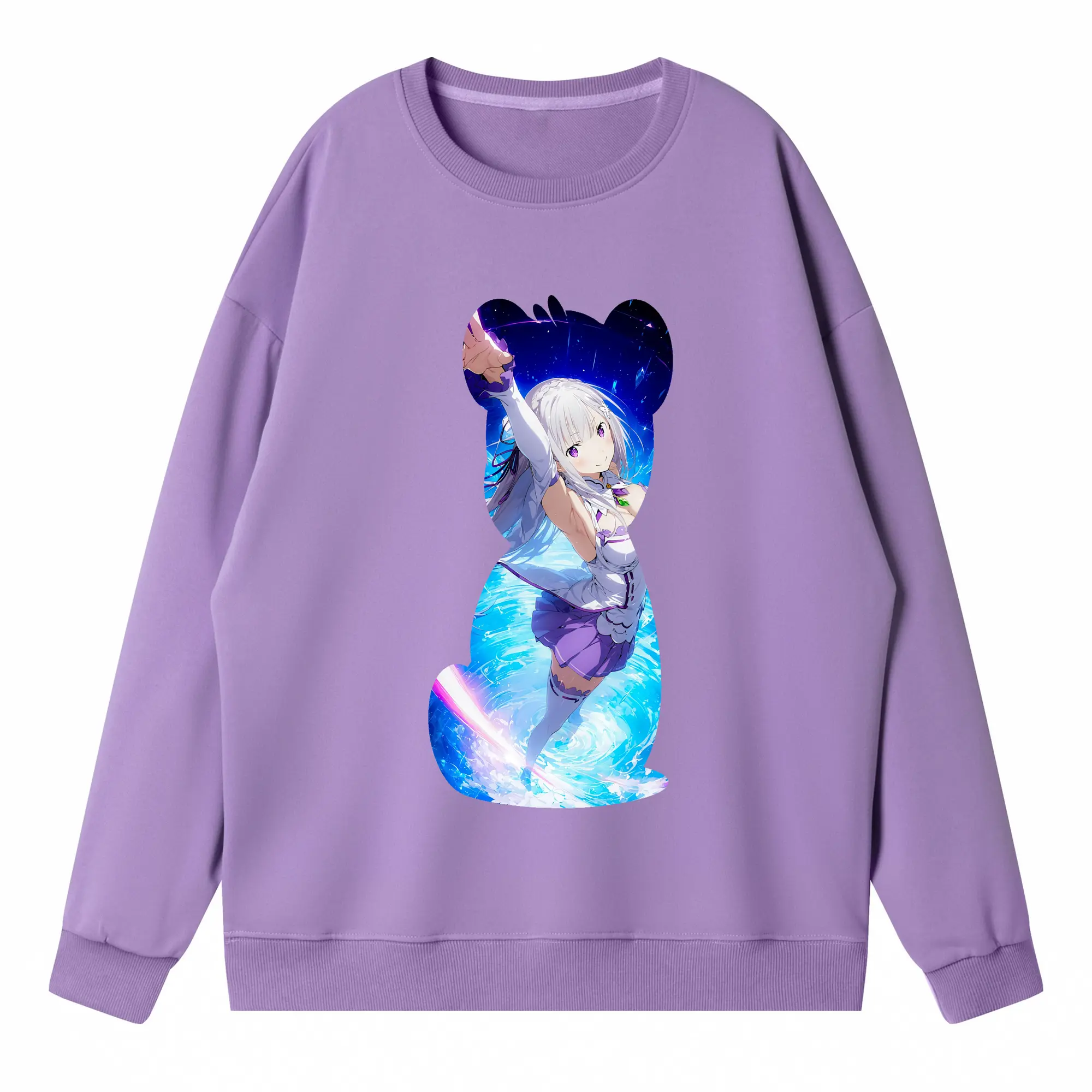 リゼロ グッズ エミリア - 高品質 クルーネック スウェット ・ コットン59% ポリエステル41% ・ ユニセックス 長袖 トレーナー ・ カジュアル デイリー スポーツ 散歩用