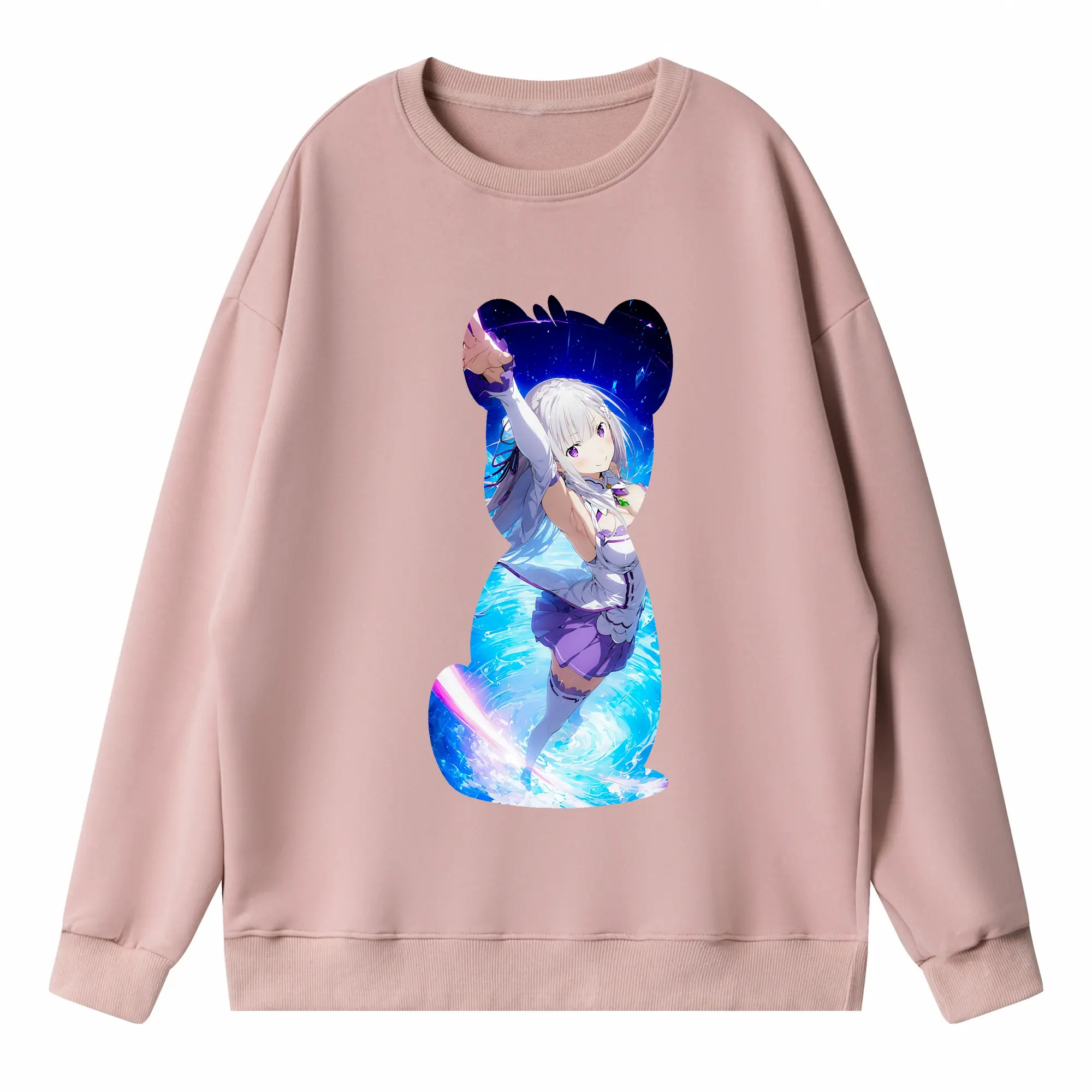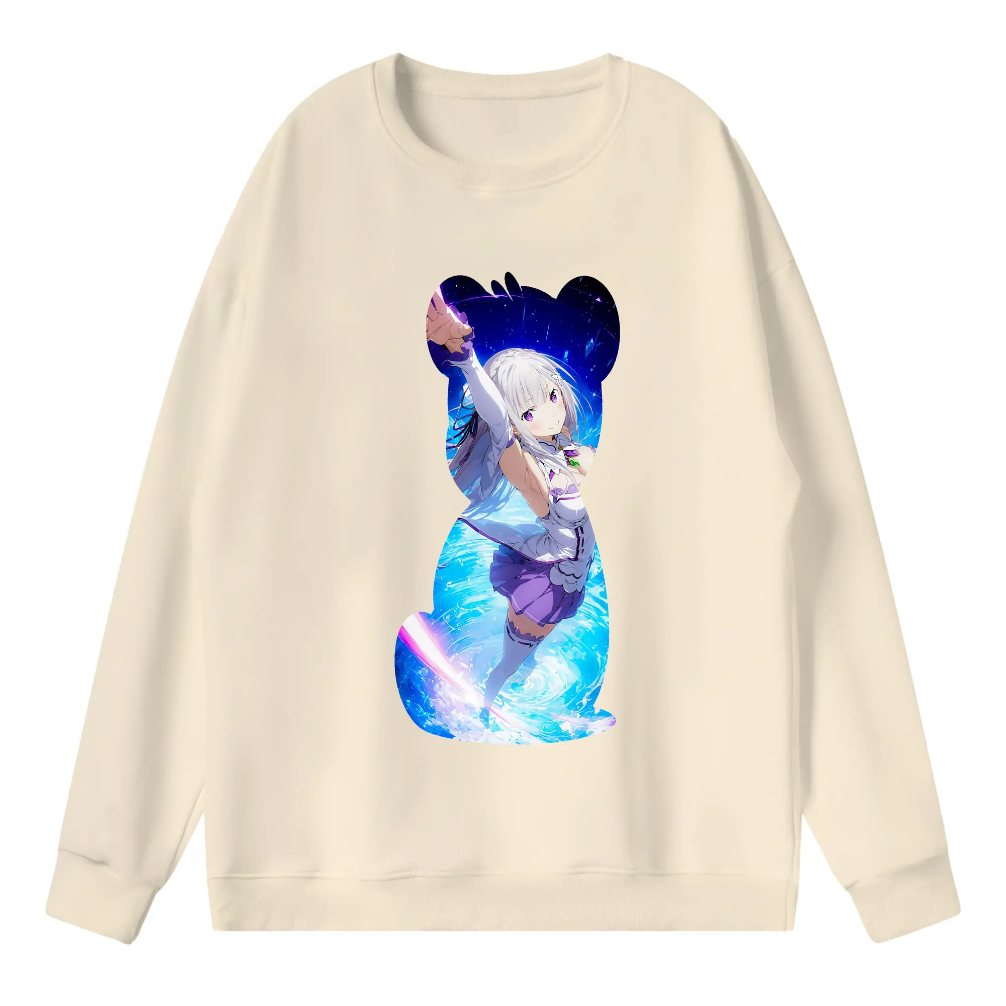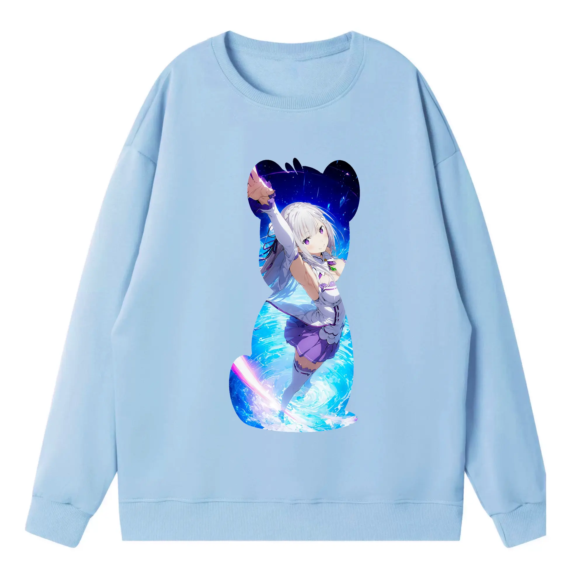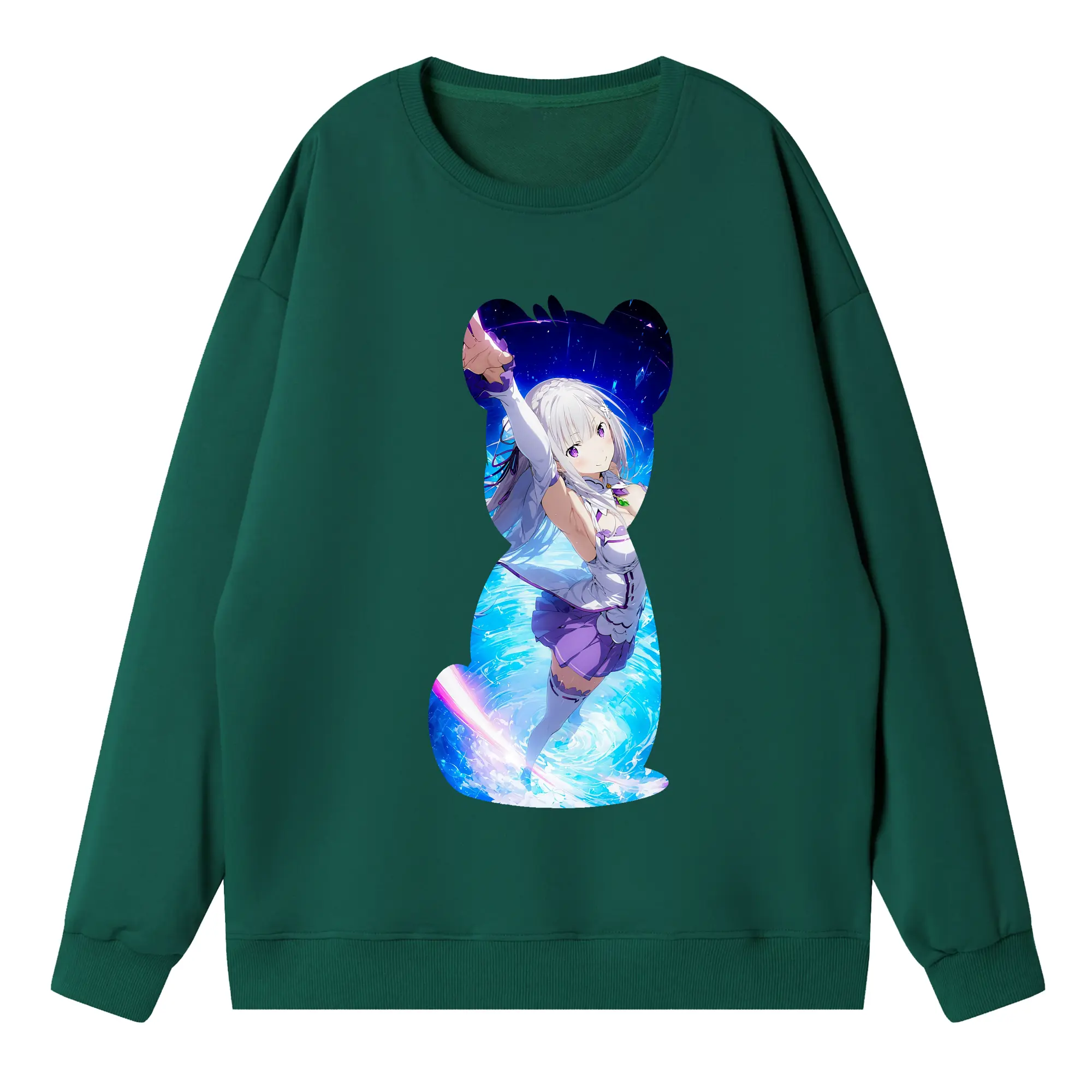 リゼロ グッズ エミリア - 高品質 クルーネック スウェット ・ コットン59% ポリエステル41% ・ ユニセックス 長袖 トレーナー ・ カジュアル デイリー スポーツ 散歩用
