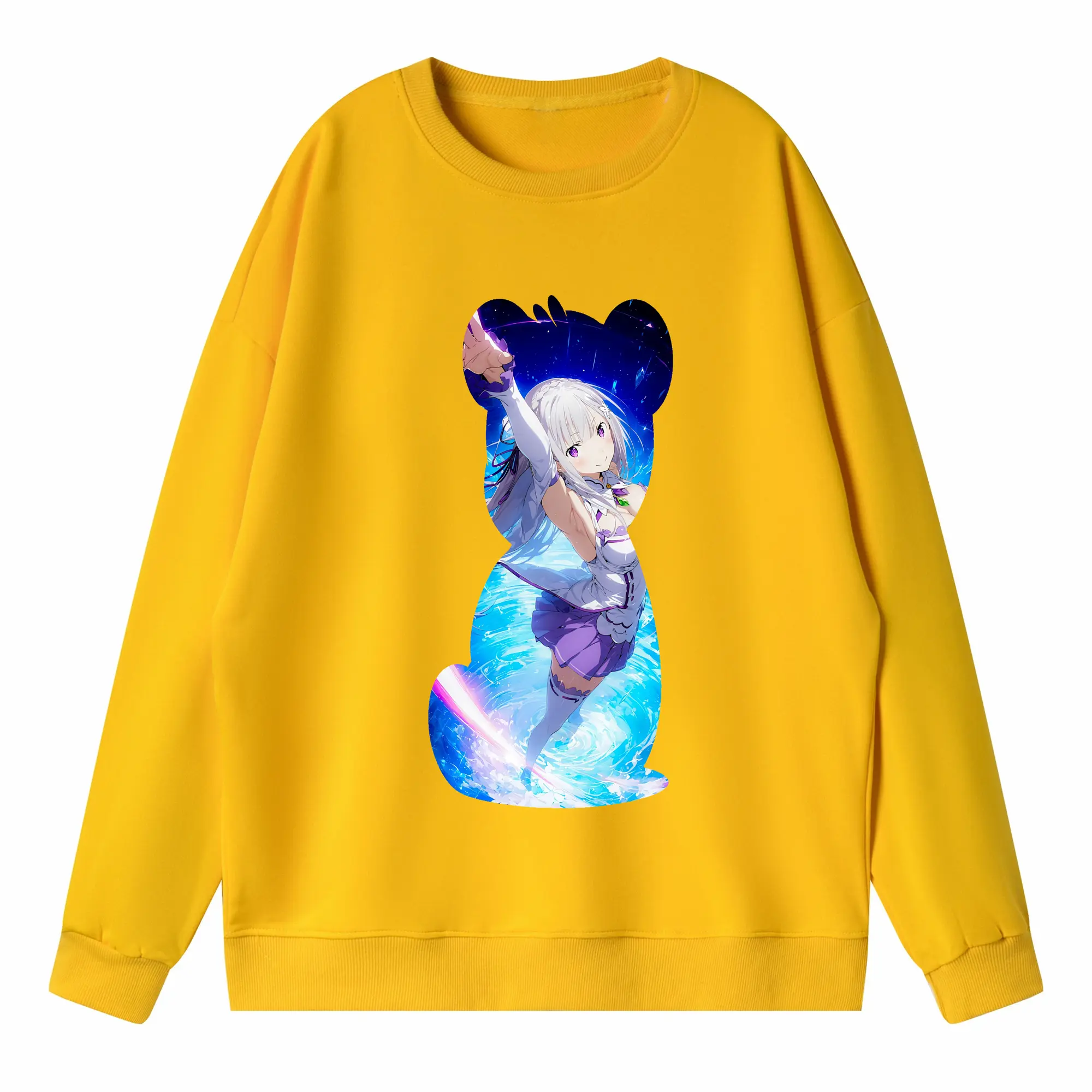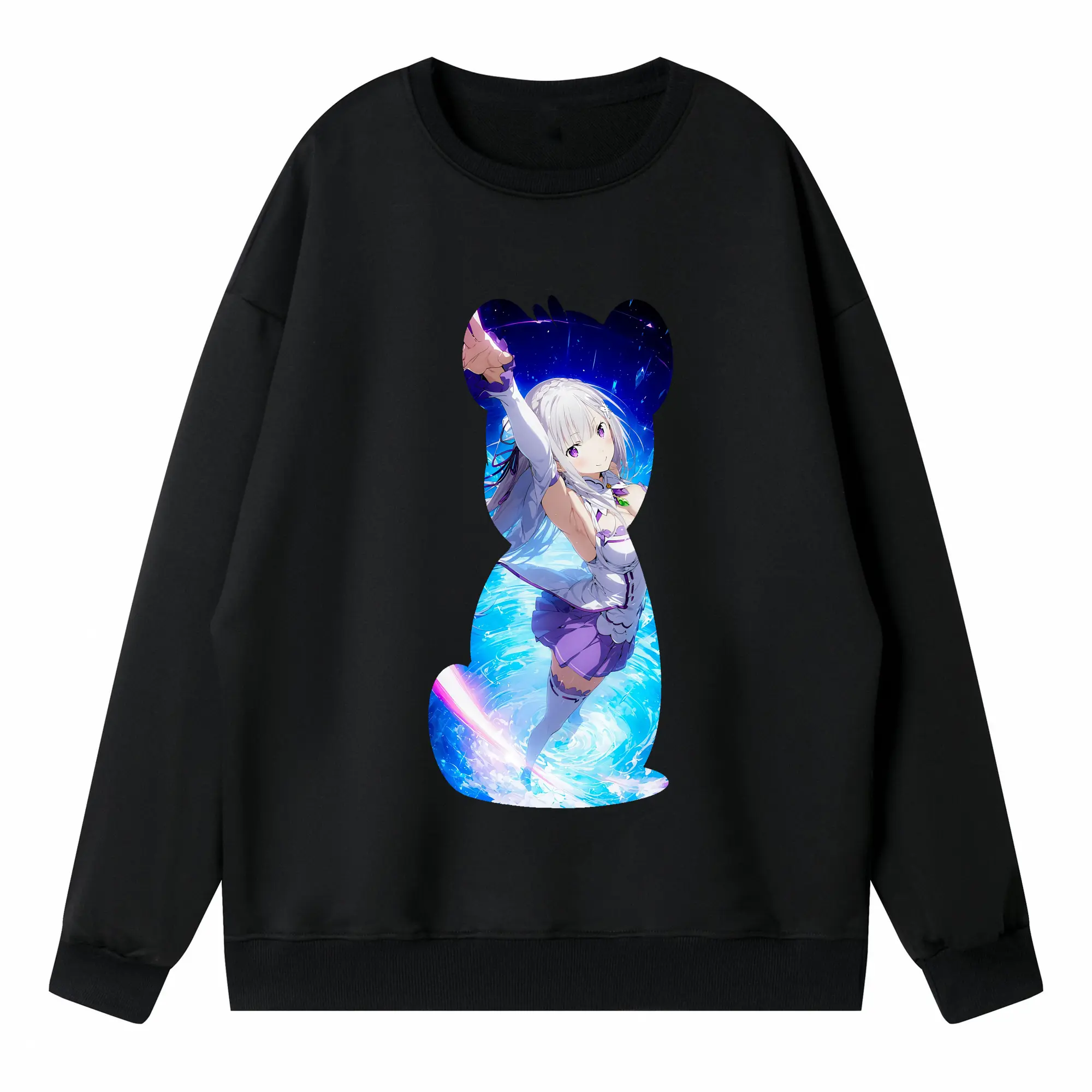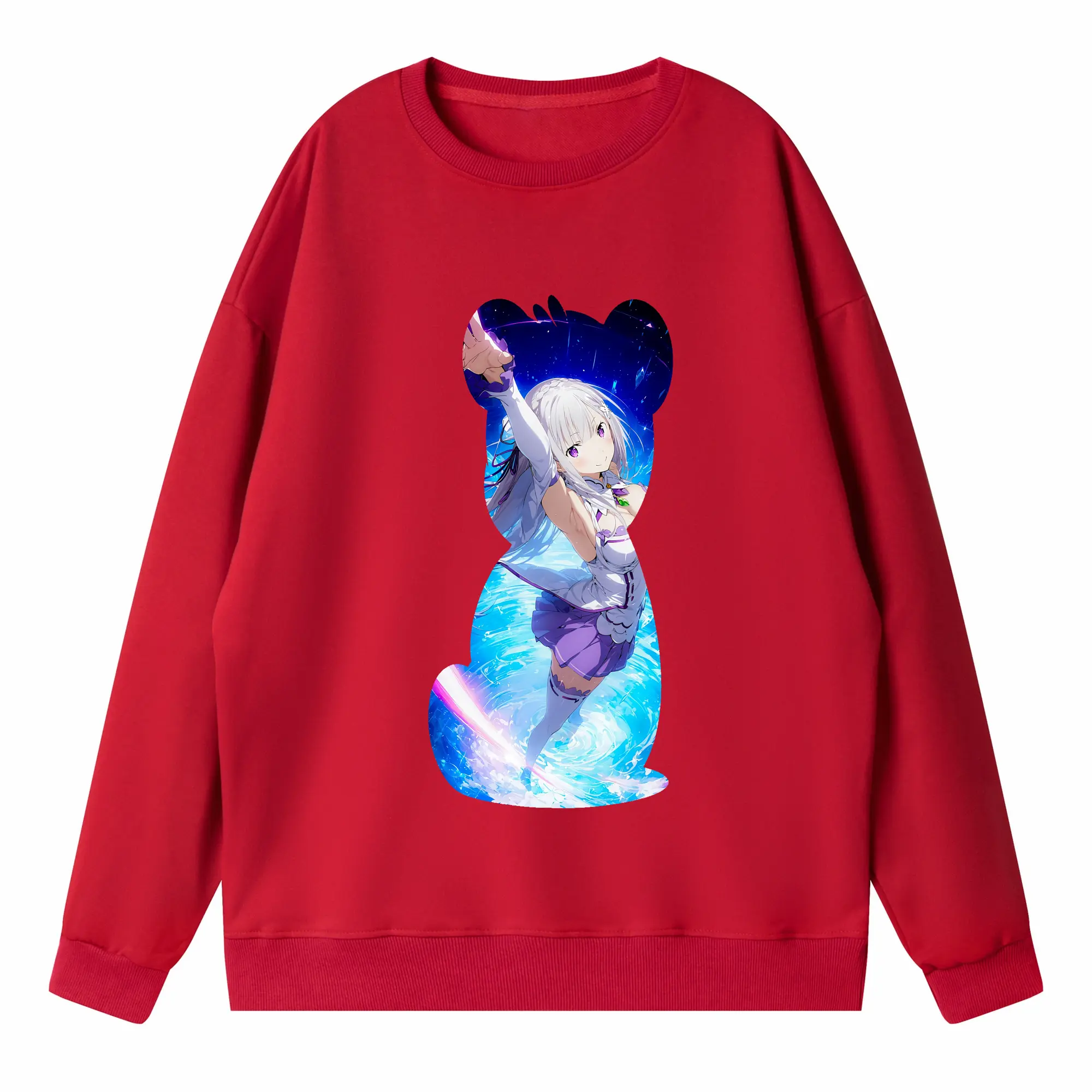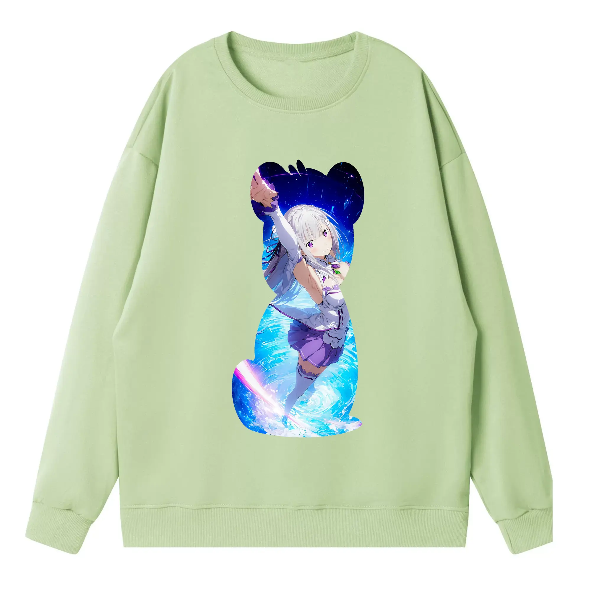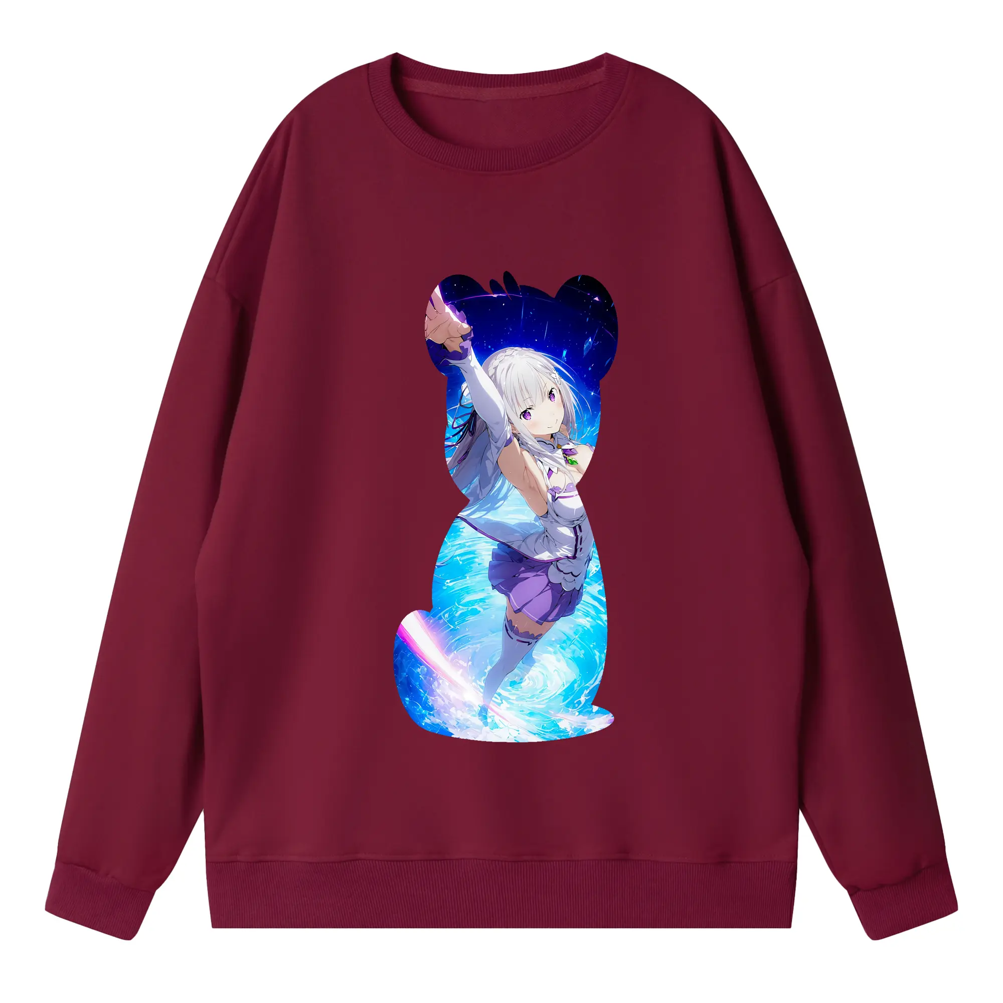 リゼロ グッズ エミリア - 高品質 クルーネック スウェット ・ コットン59% ポリエステル41% ・ ユニセックス 長袖 トレーナー ・ カジュアル デイリー スポーツ 散歩用