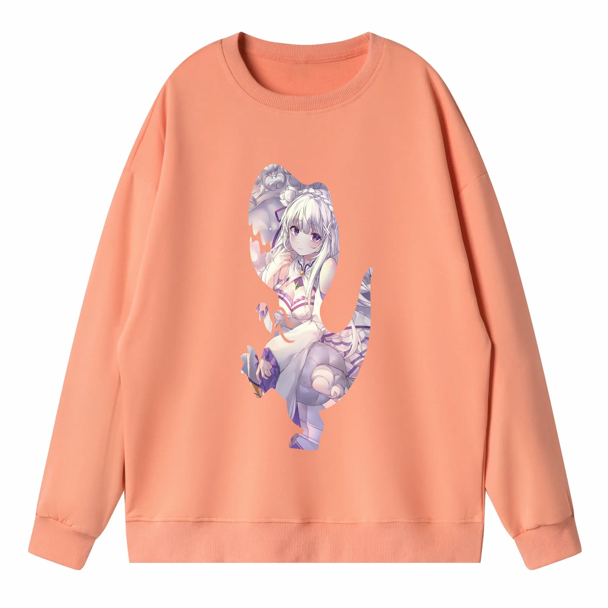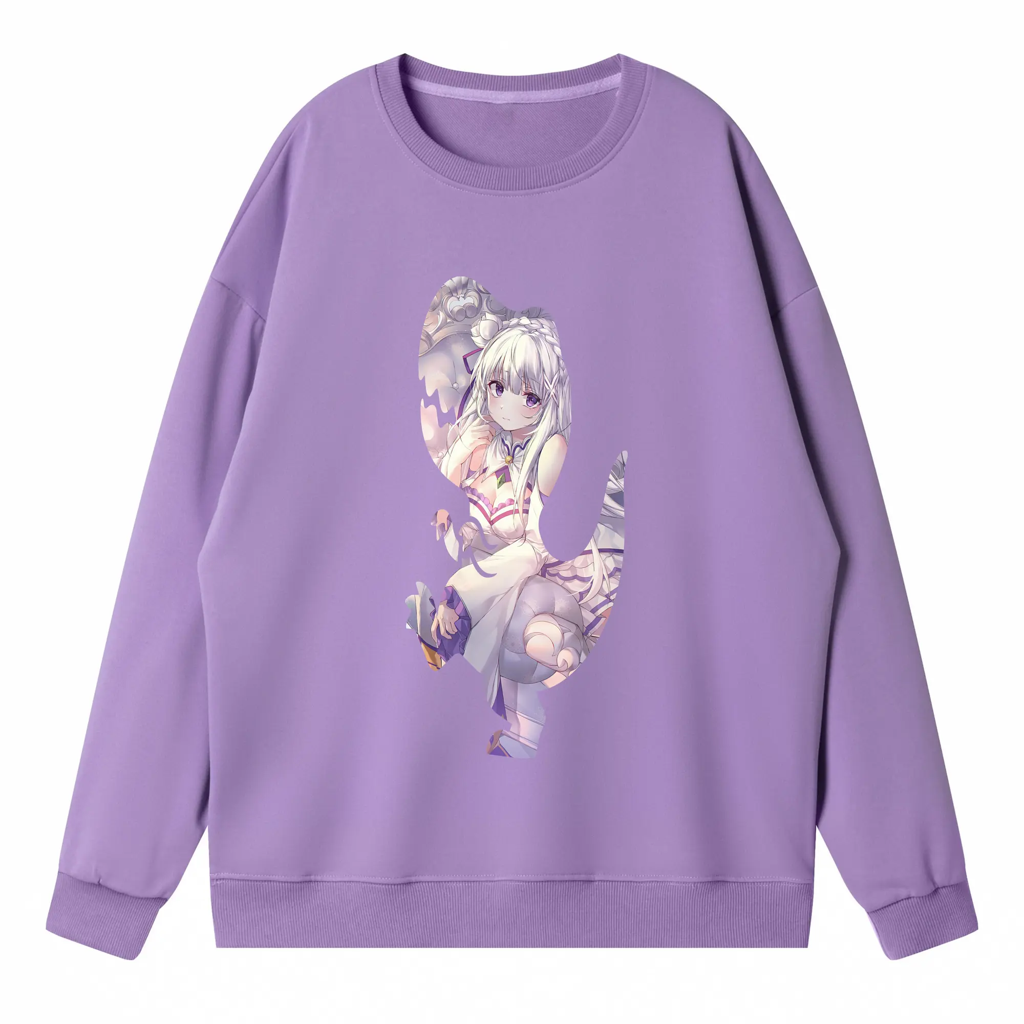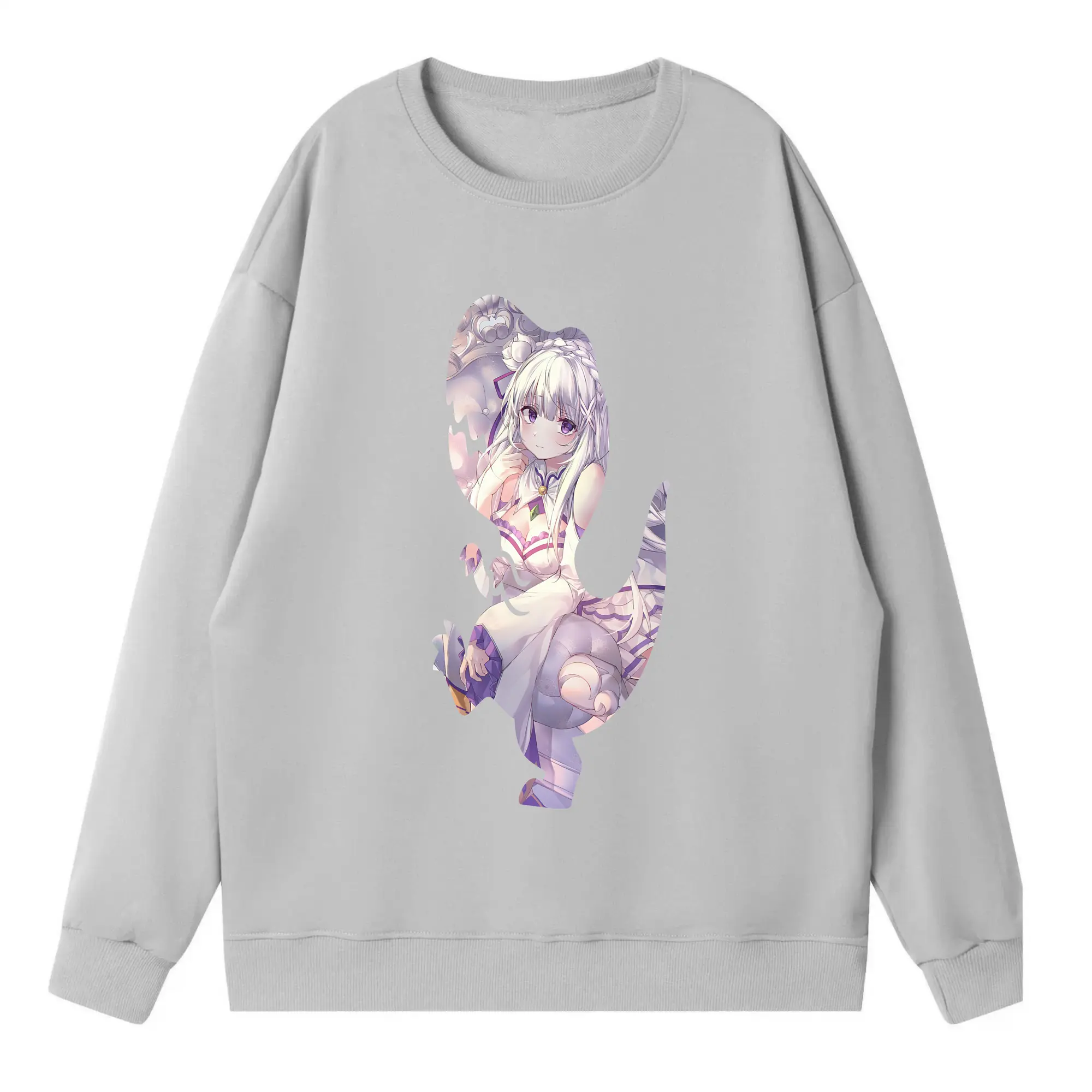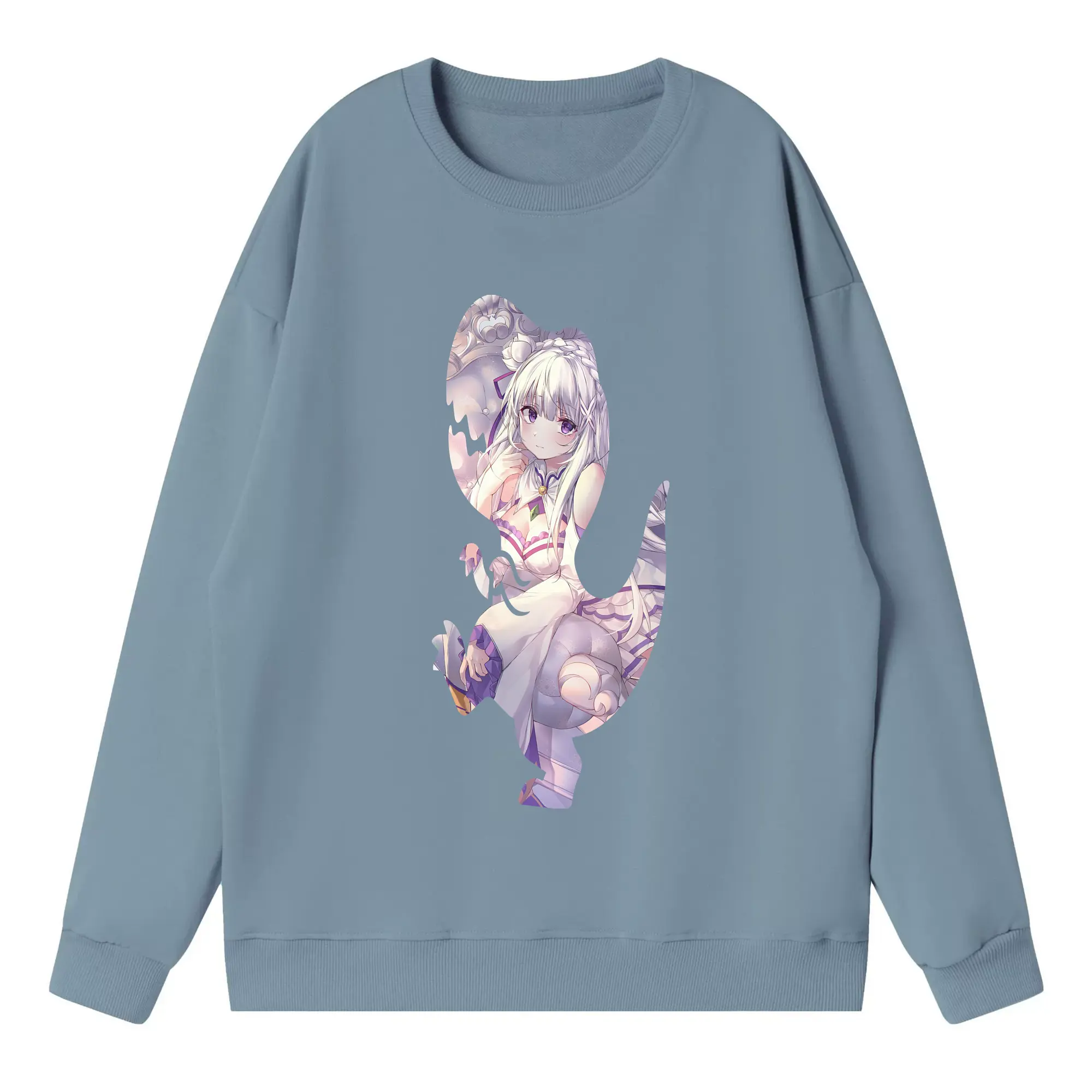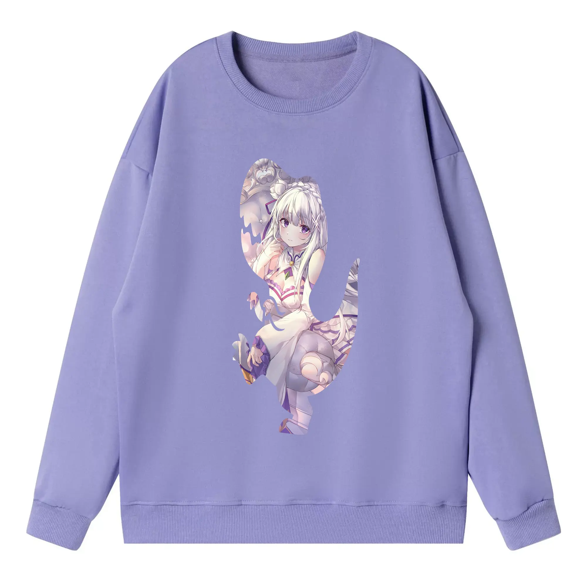 リゼロ グッズ エミリア - 高品質 クルーネック スウェット ・ コットン59% ポリエステル41% ・ ユニセックス 長袖 トレーナー ・ カジュアル デイリー スポーツ 散歩用