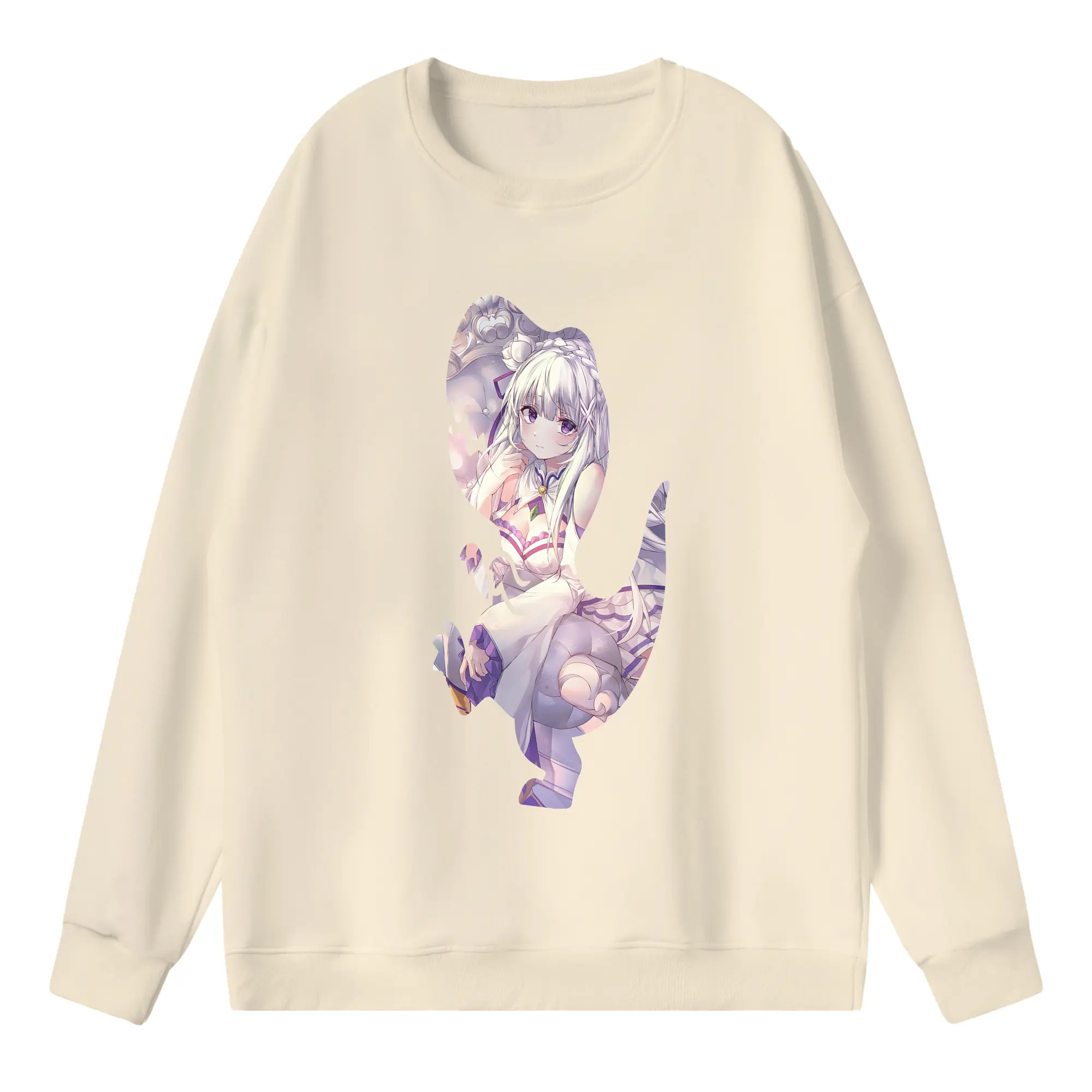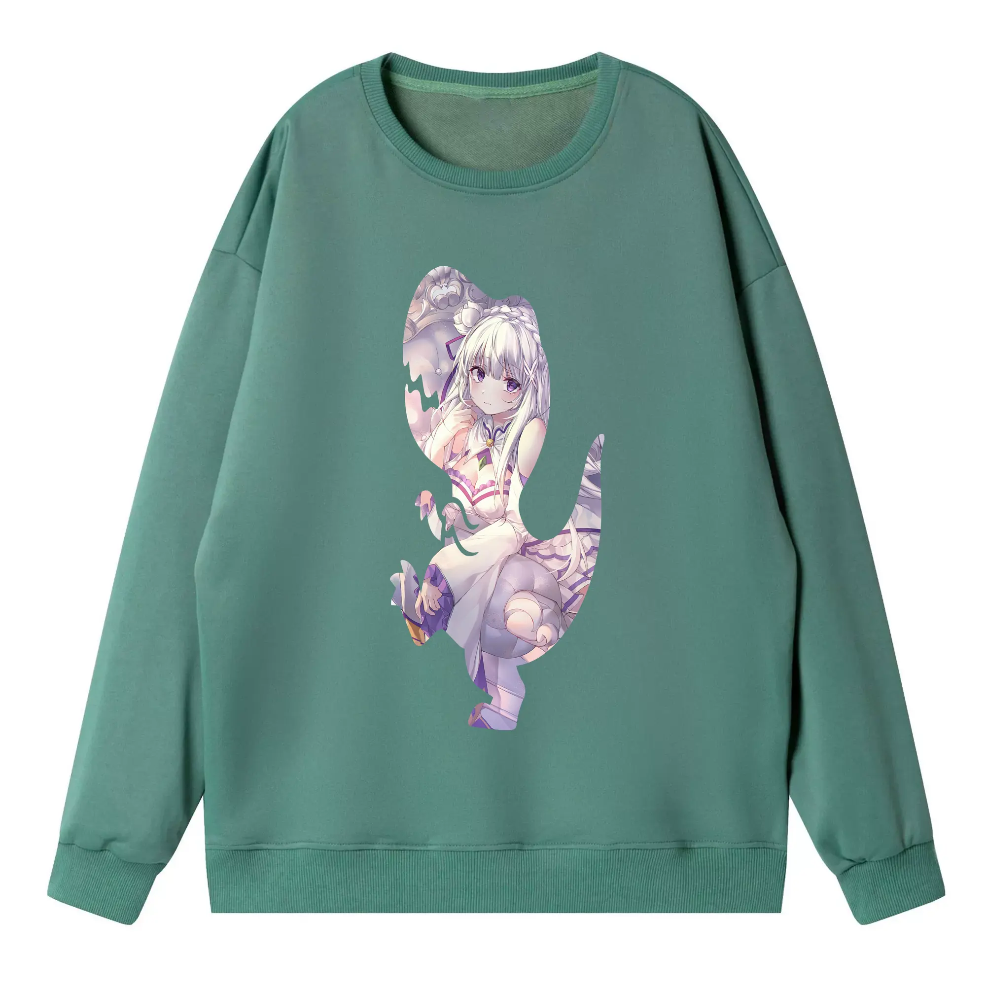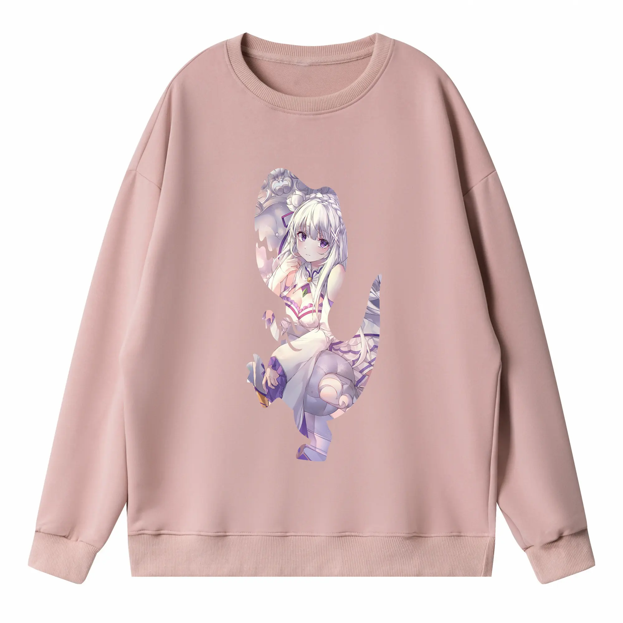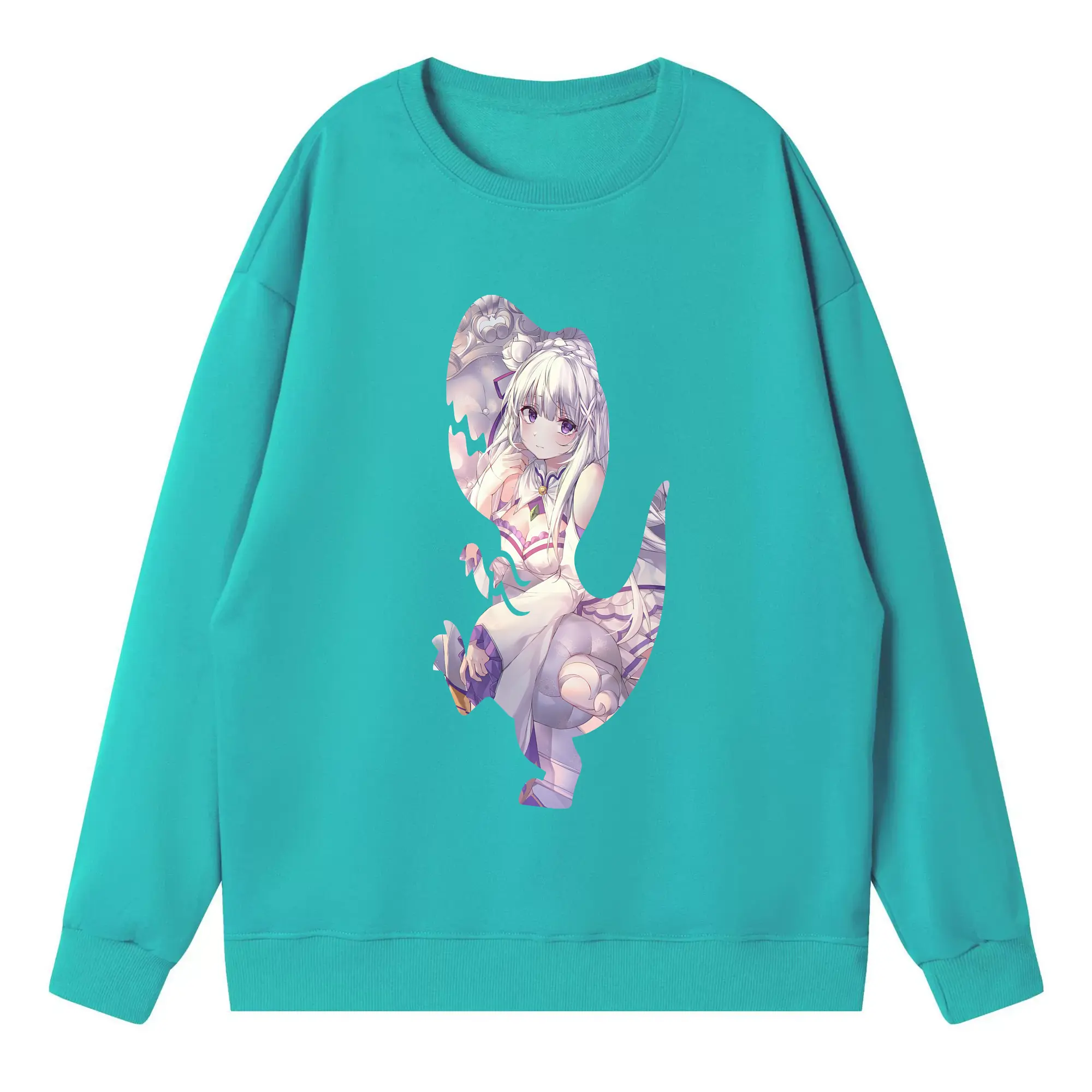 リゼロ グッズ エミリア - 高品質 クルーネック スウェット ・ コットン59% ポリエステル41% ・ ユニセックス 長袖 トレーナー ・ カジュアル デイリー スポーツ 散歩用