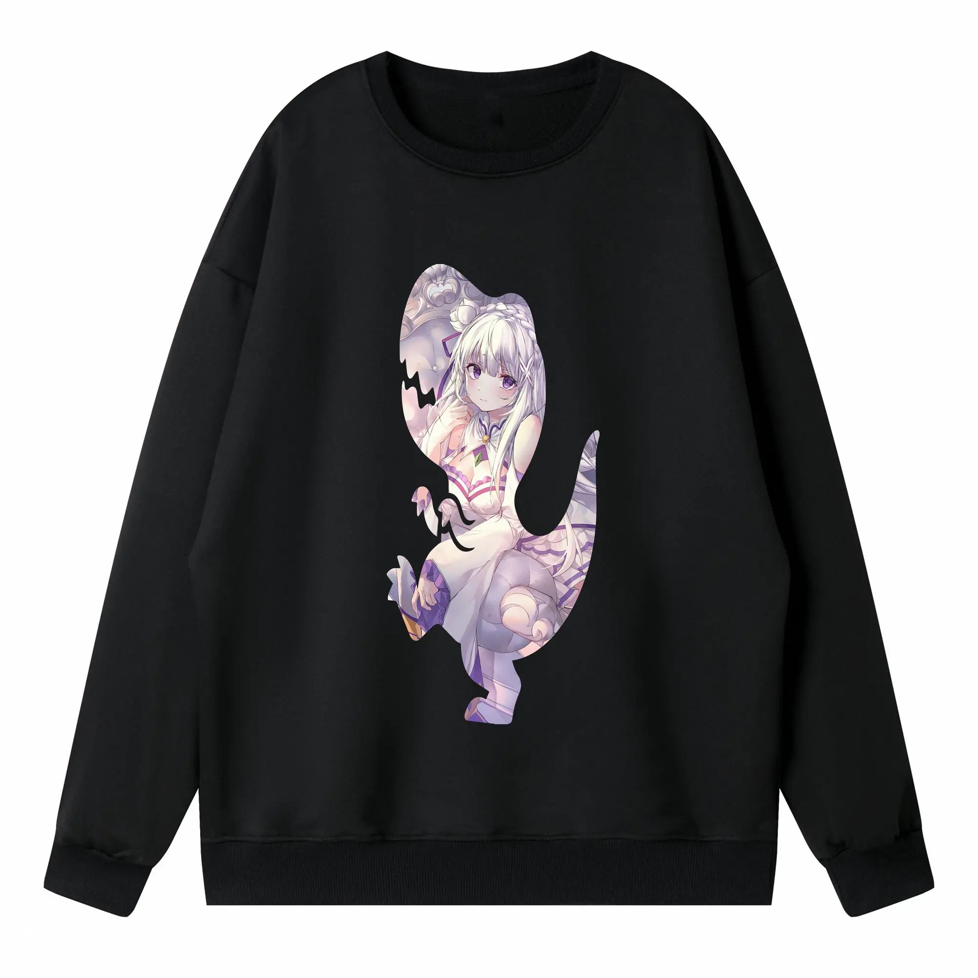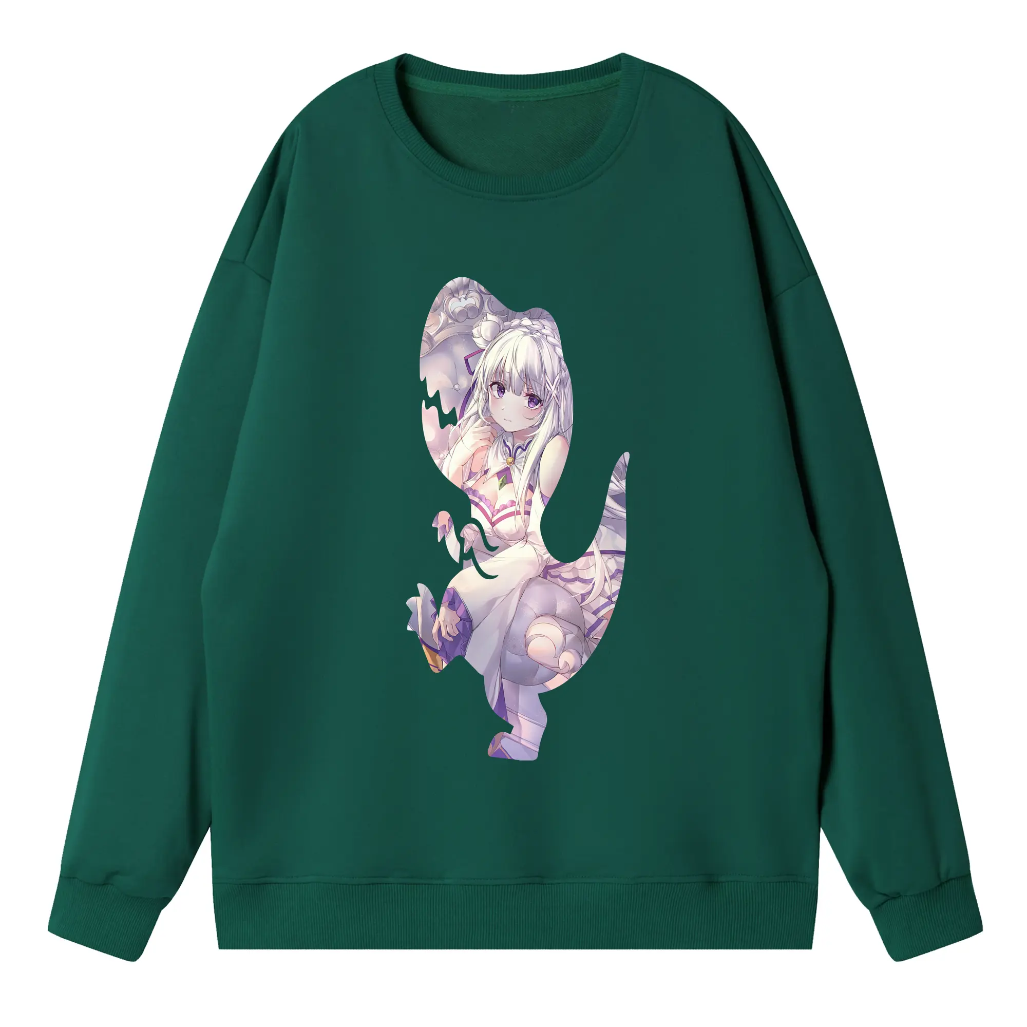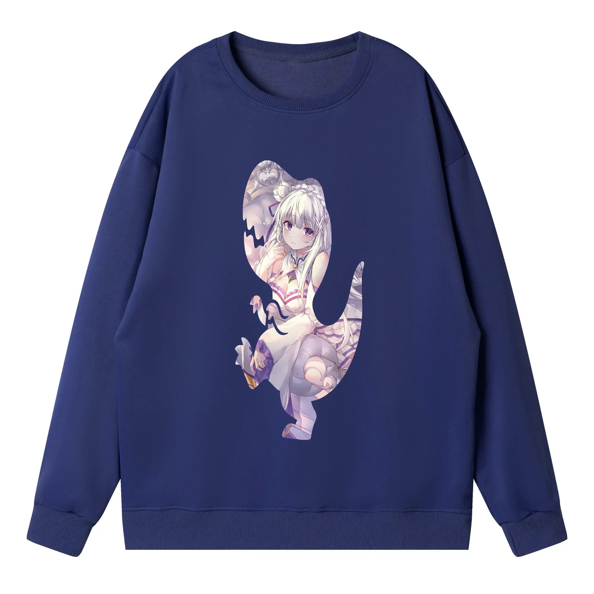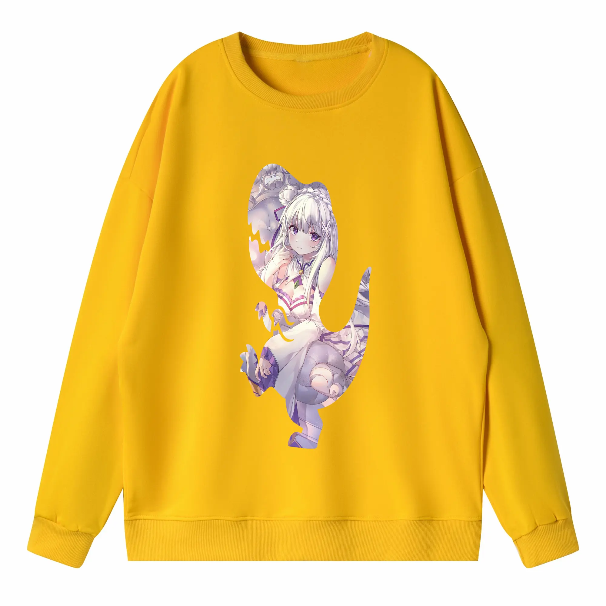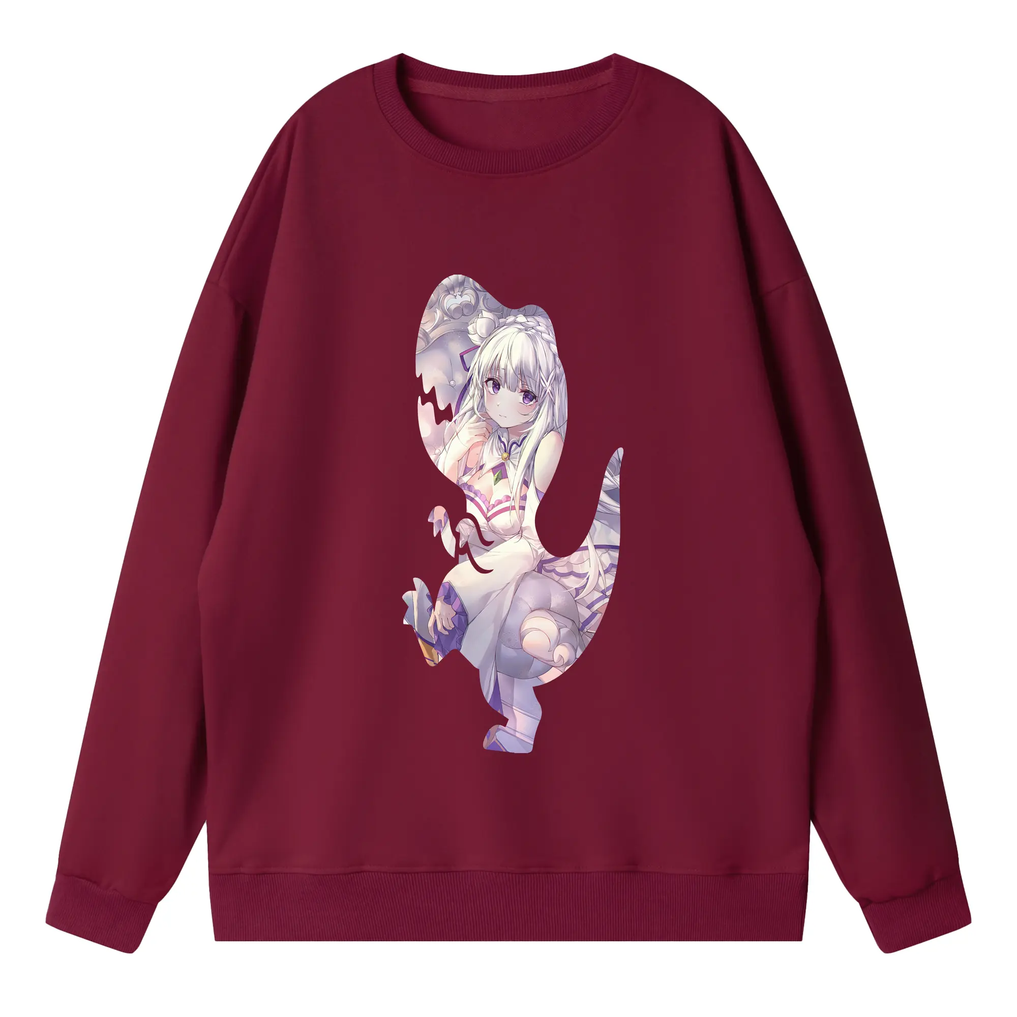リゼロ グッズ エミリア - 高品質 クルーネック スウェット ・ コットン59% ポリエステル41% ・ ユニセックス 長袖 トレーナー ・ カジュアル デイリー スポーツ 散歩用