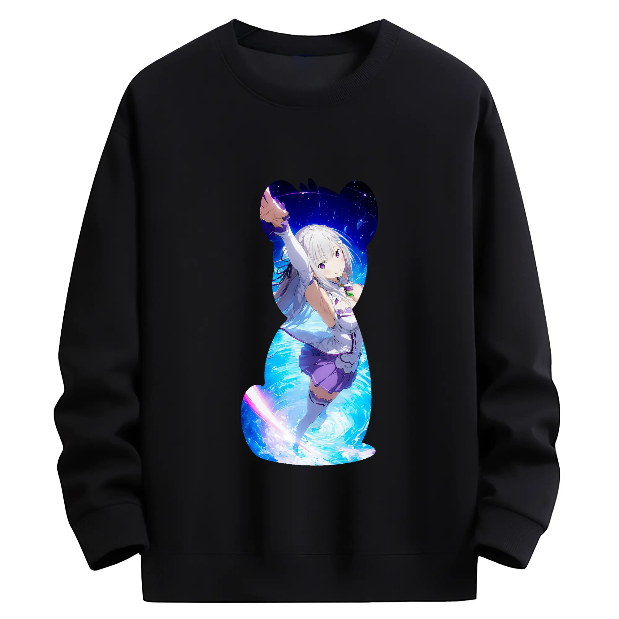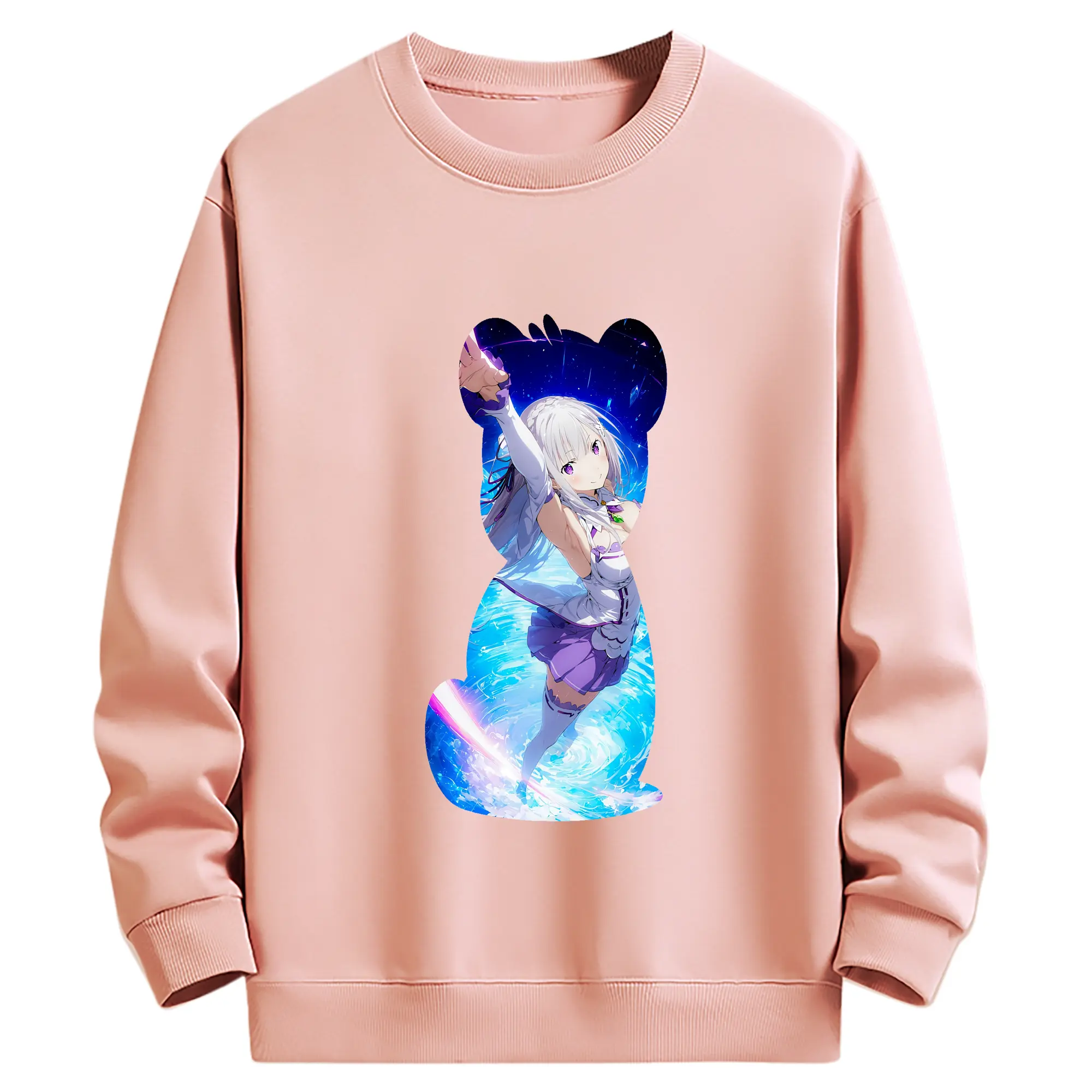 リゼロ グッズ エミリア - 高品質 クルーネック スウェット ・ コットン59% ポリエステル41% ・ ユニセックス 長袖 トレーナー ・ カジュアル デイリー スポーツ 散歩用