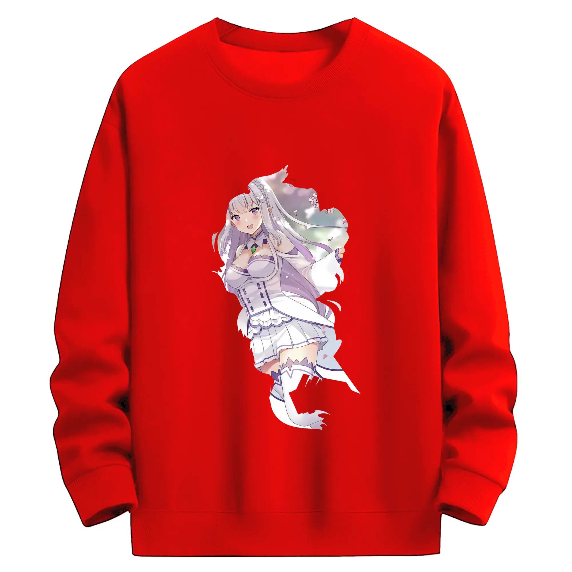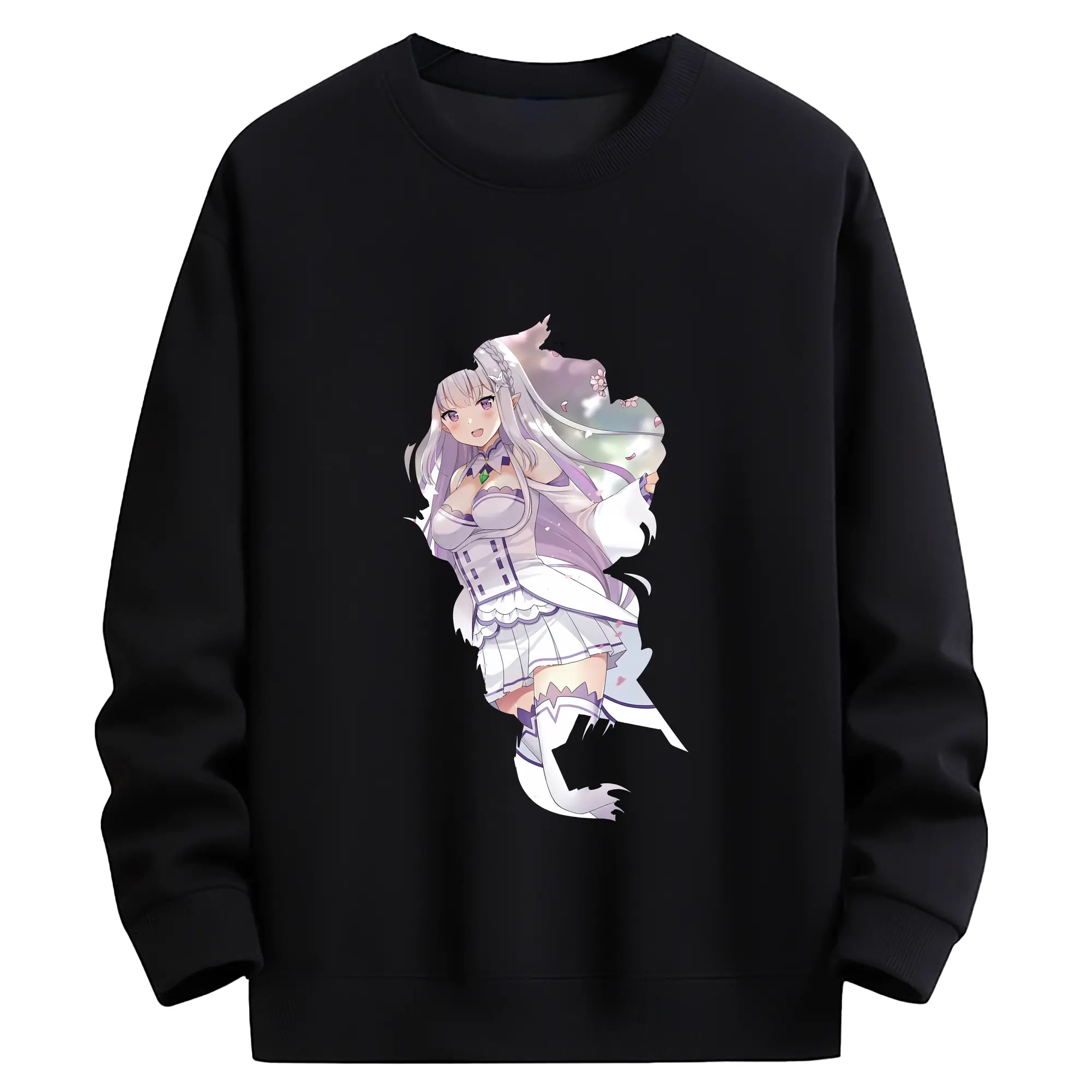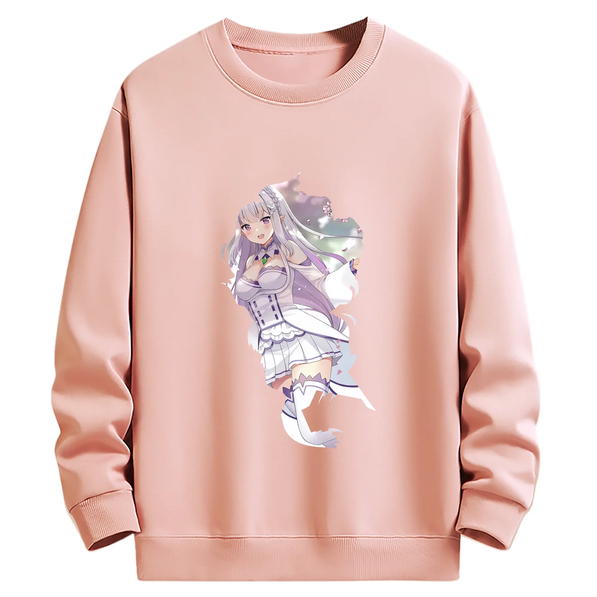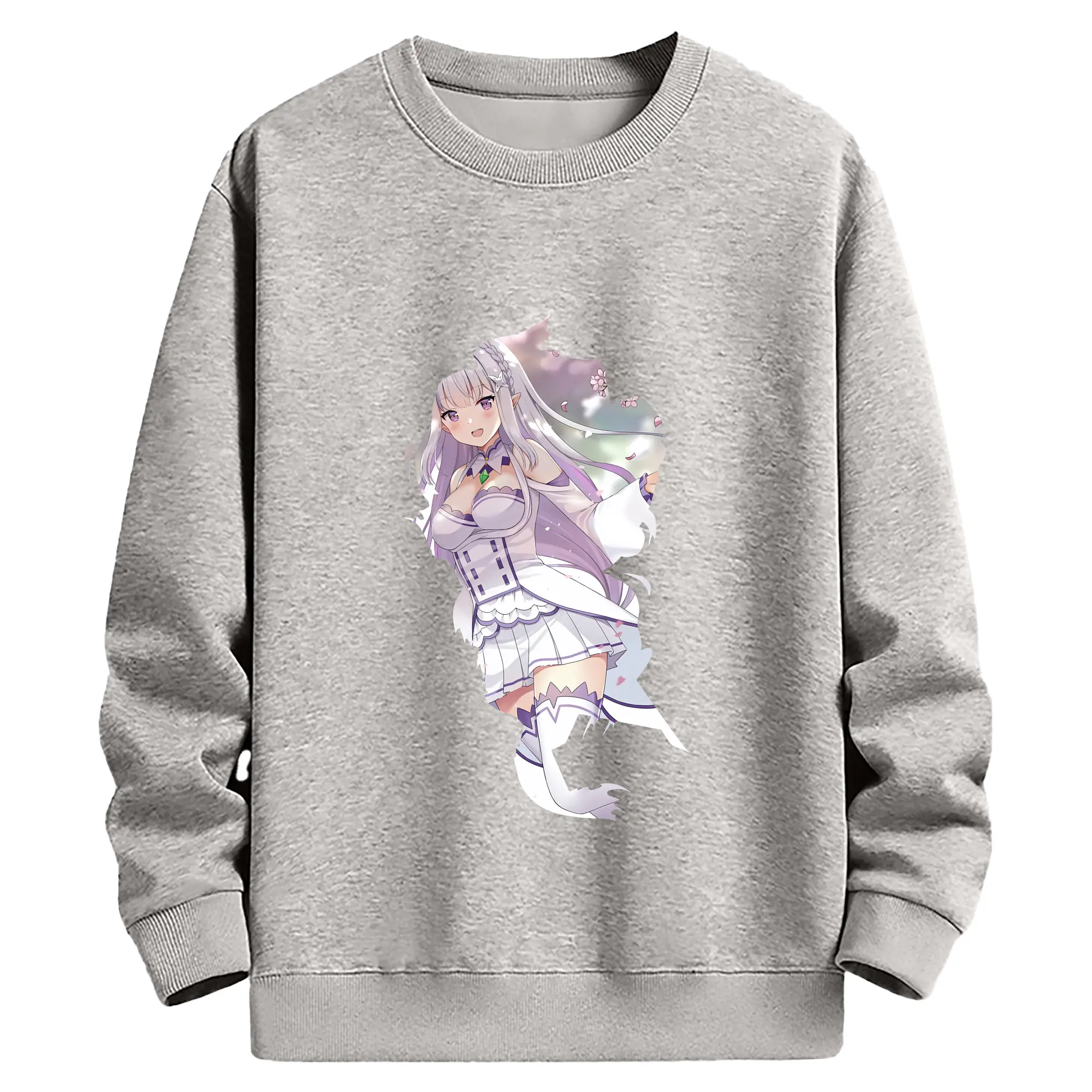 リゼロ グッズ エミリア - 高品質 クルーネック スウェット ・ コットン59% ポリエステル41% ・ ユニセックス 長袖 トレーナー ・ カジュアル デイリー スポーツ 散歩用