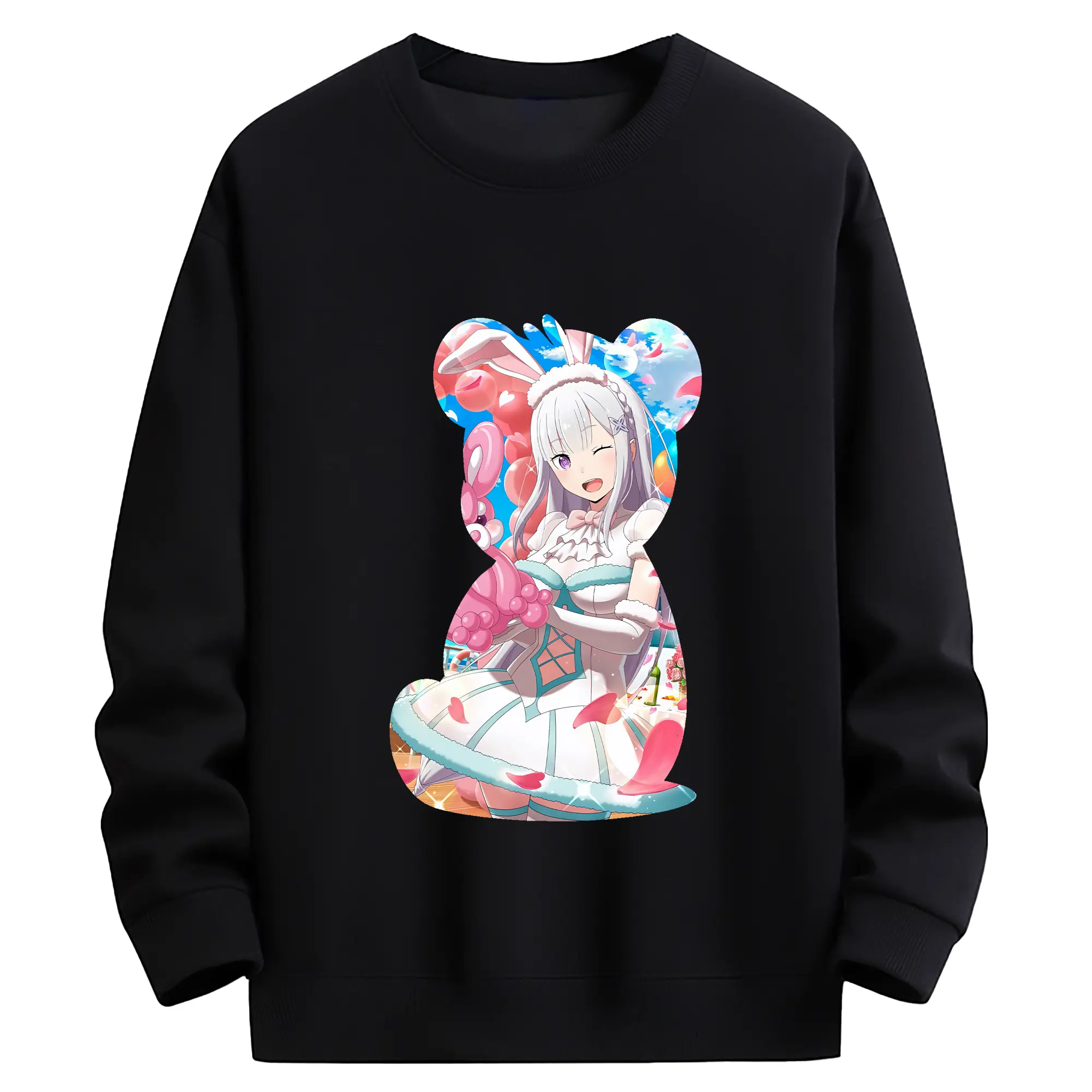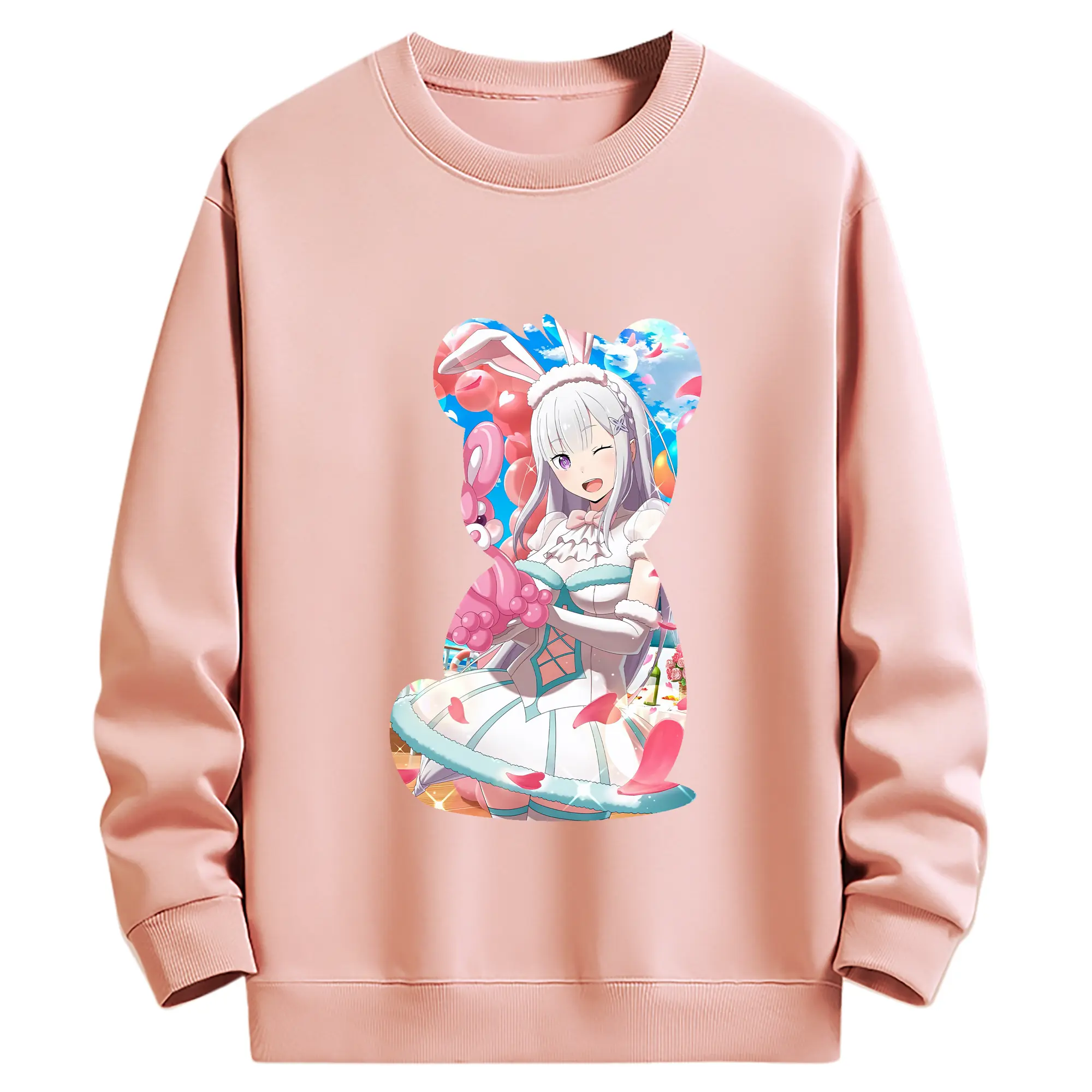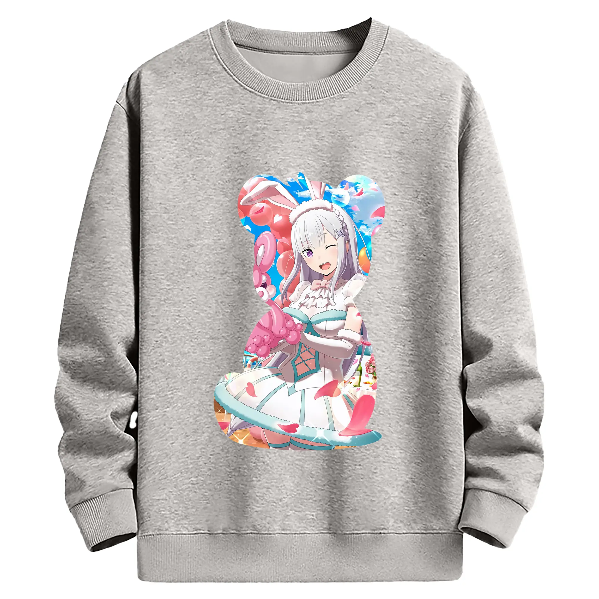 リゼロ グッズ エミリア - 高品質 クルーネック スウェット ・ コットン59% ポリエステル41% ・ ユニセックス 長袖 トレーナー ・ カジュアル デイリー スポーツ 散歩用