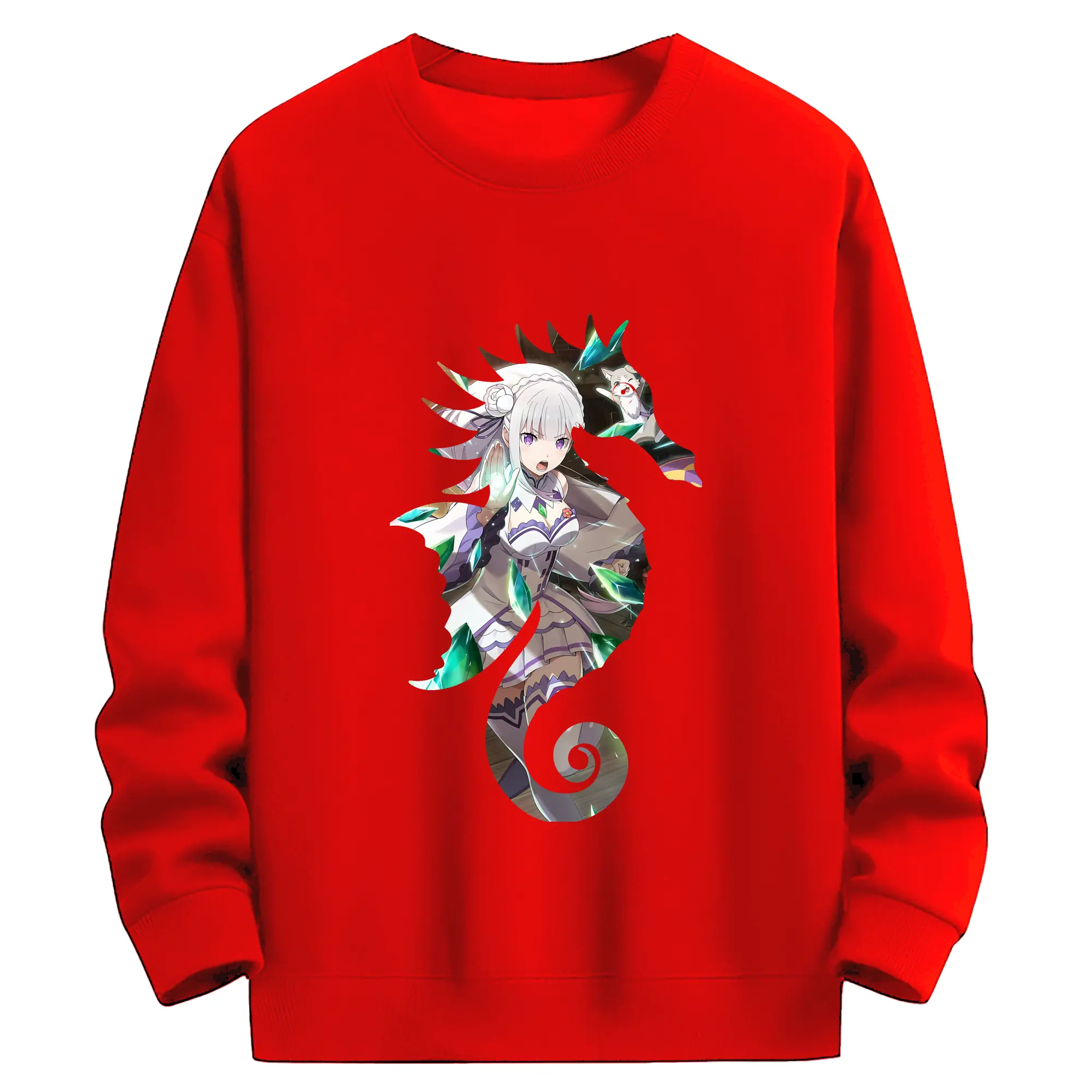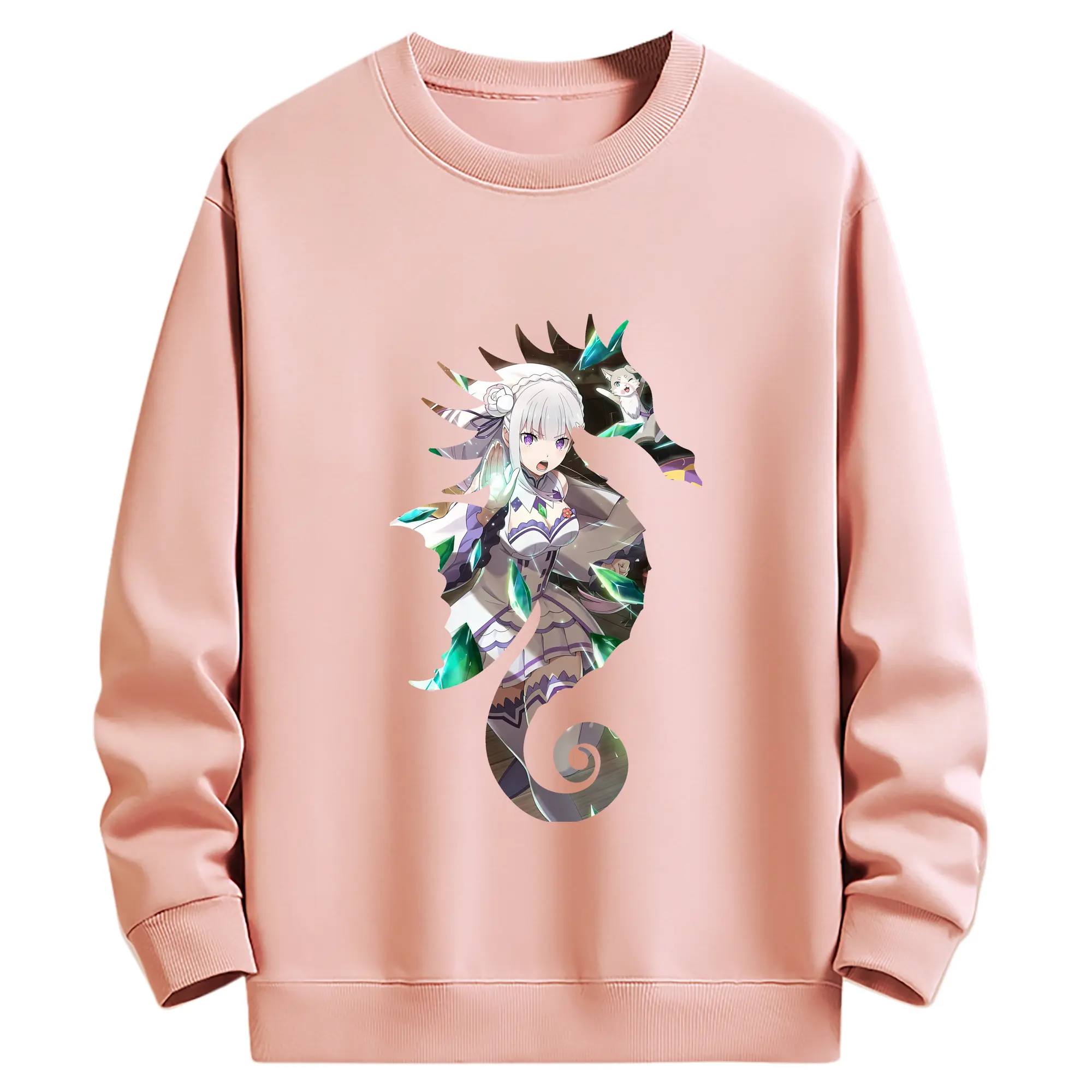リゼロ グッズ エミリア - 高品質 クルーネック スウェット ・ コットン59% ポリエステル41% ・ ユニセックス 長袖 トレーナー ・ カジュアル デイリー スポーツ 散歩用