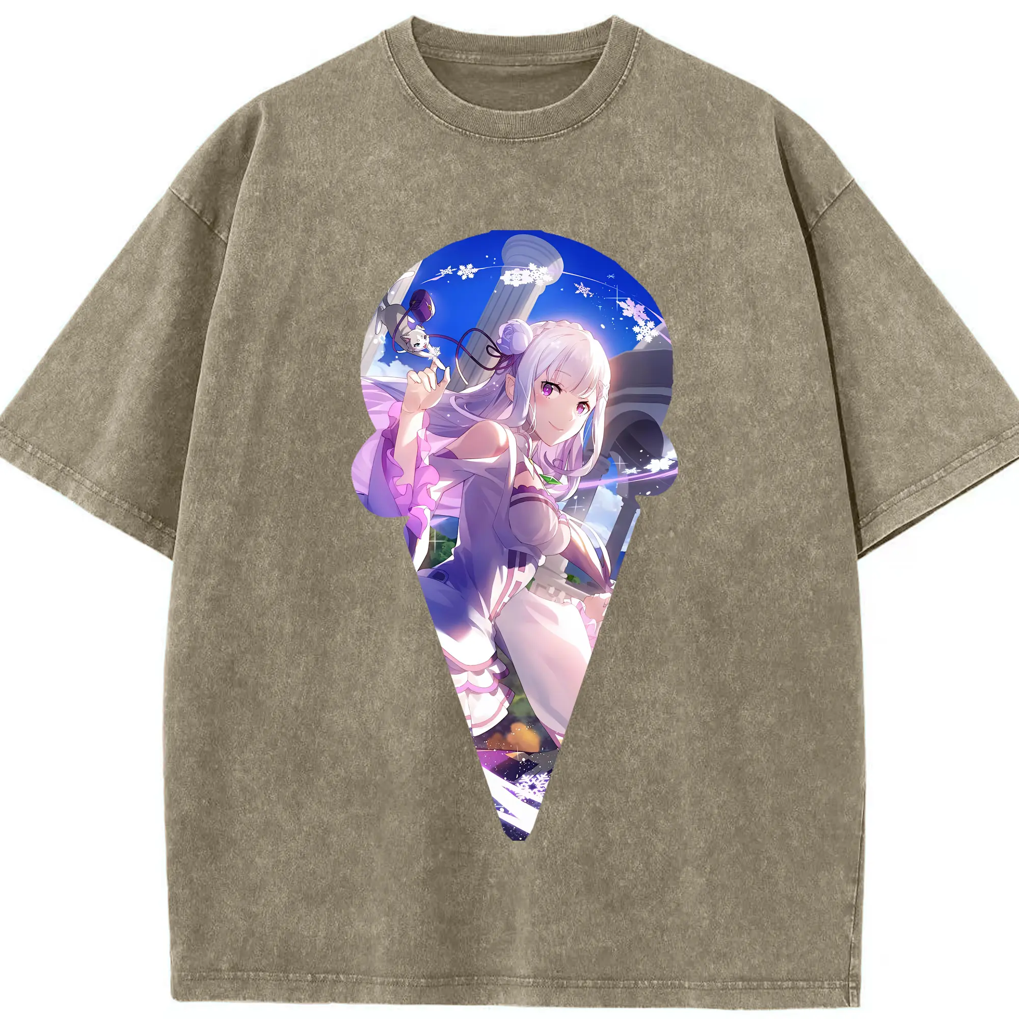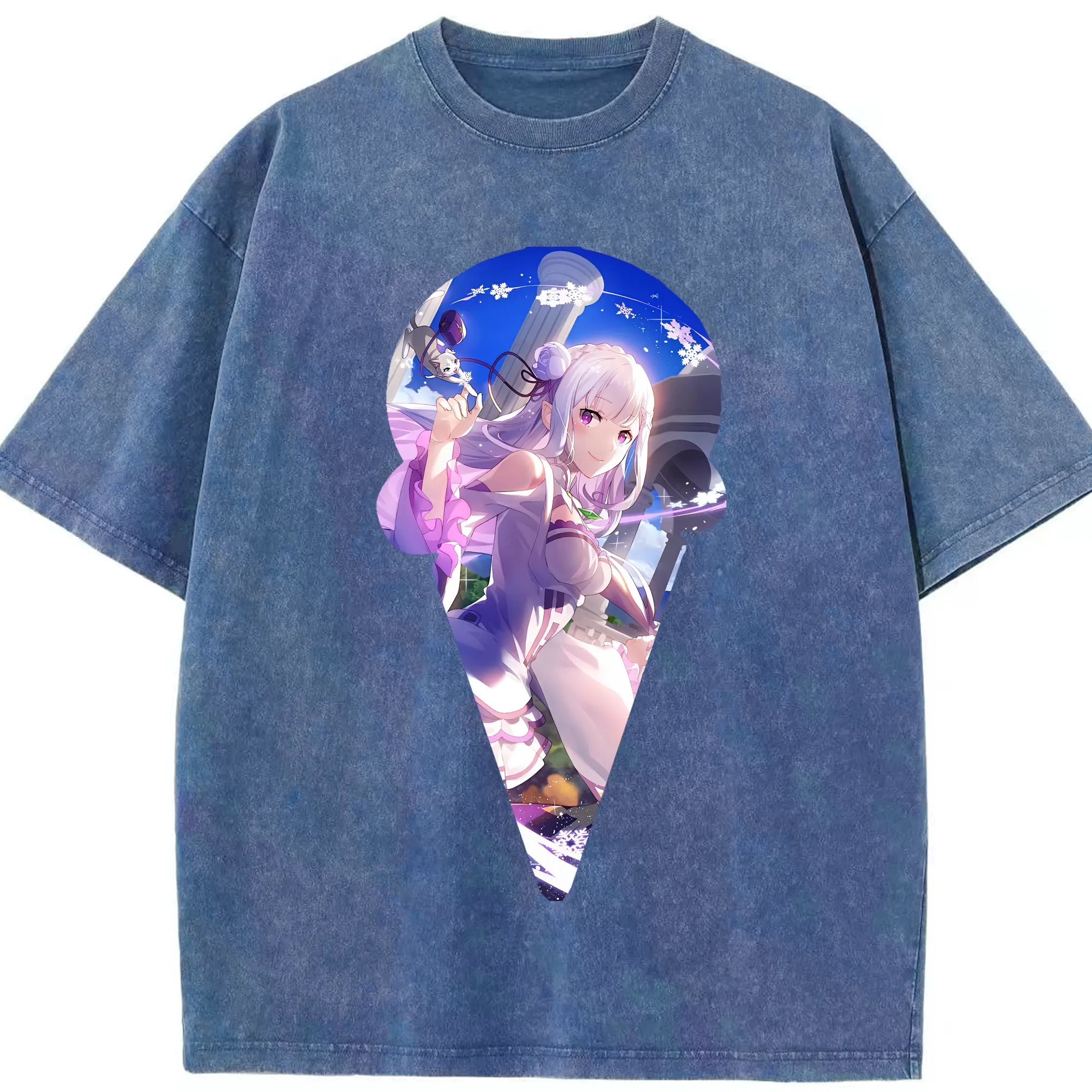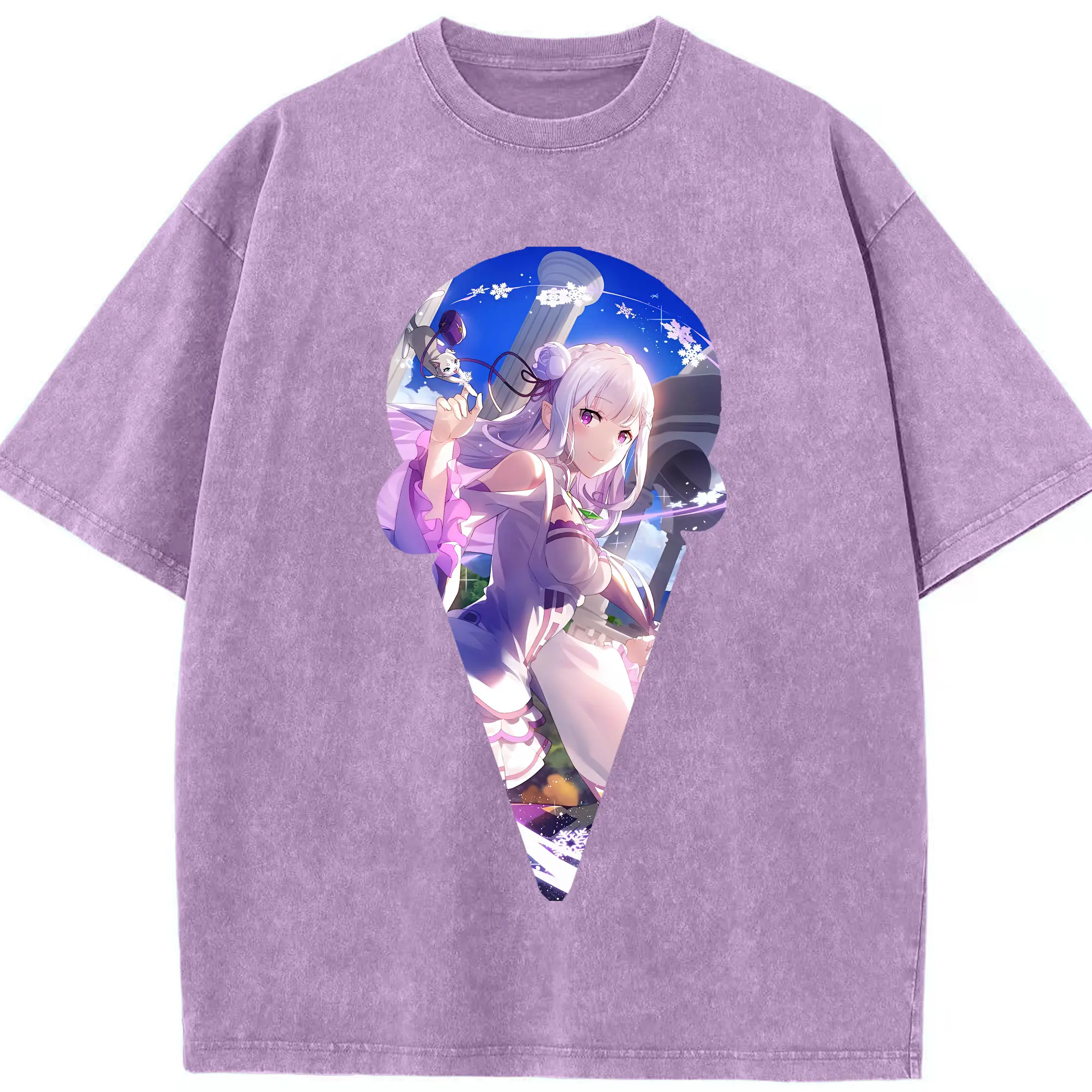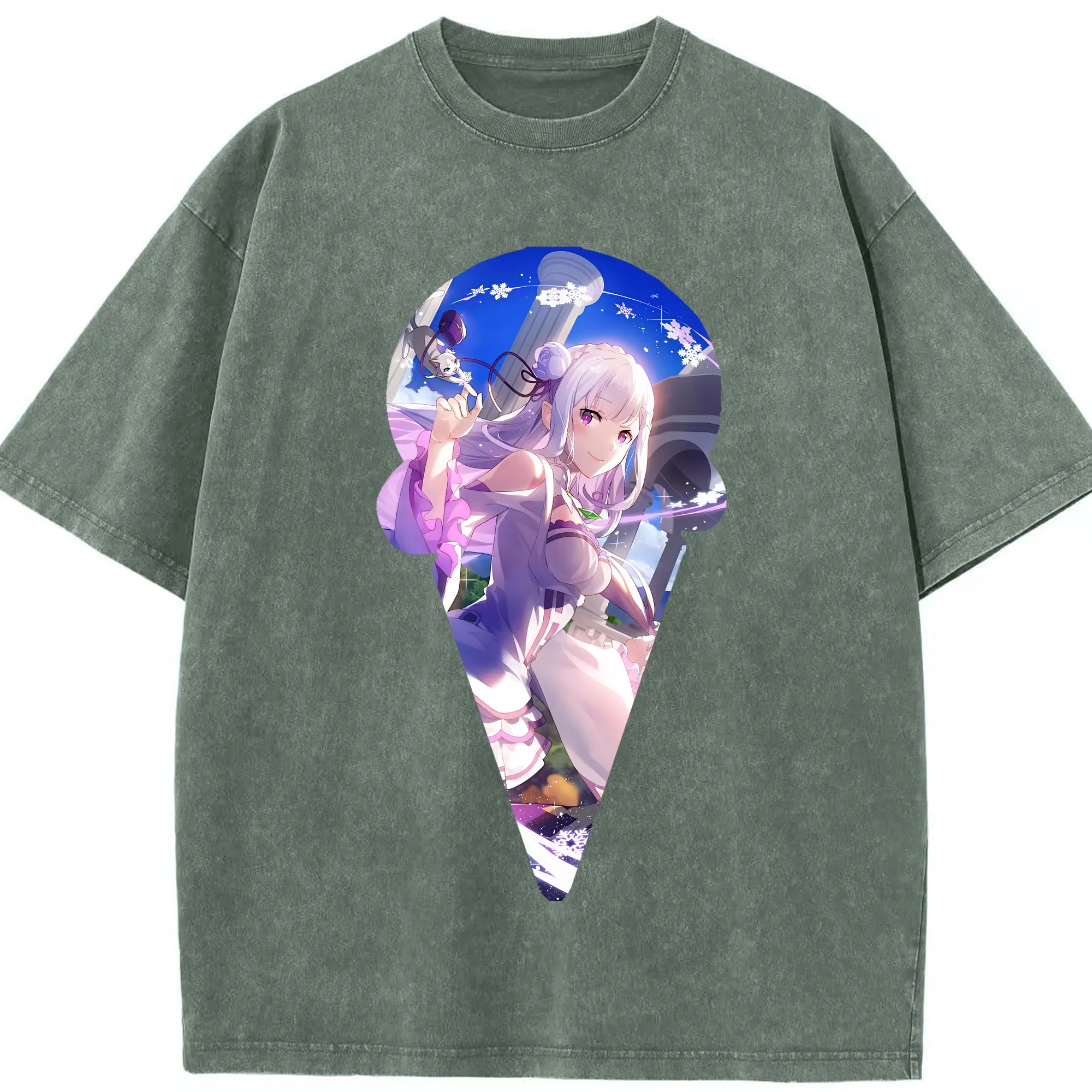 リゼロ グッズ エミリア - 綿100% ヴィンテージ風 半袖Tシャツ ・ 背面プリント ・ 柔らか肌触り ・ 通気性 快適 ・ スポーツ カジュアル 外出用