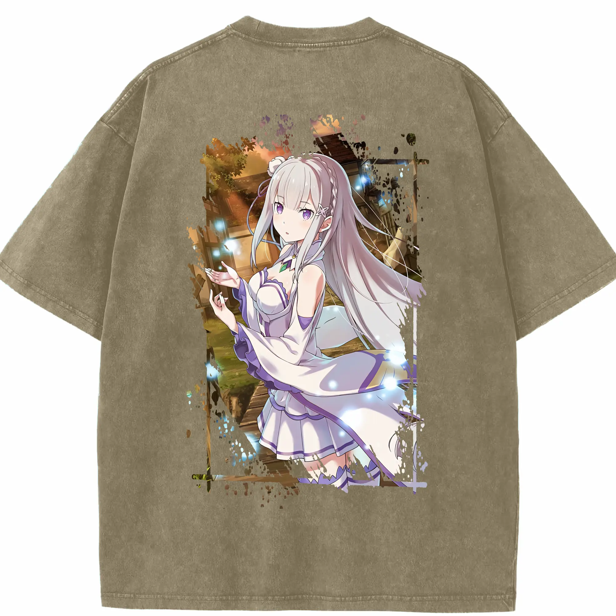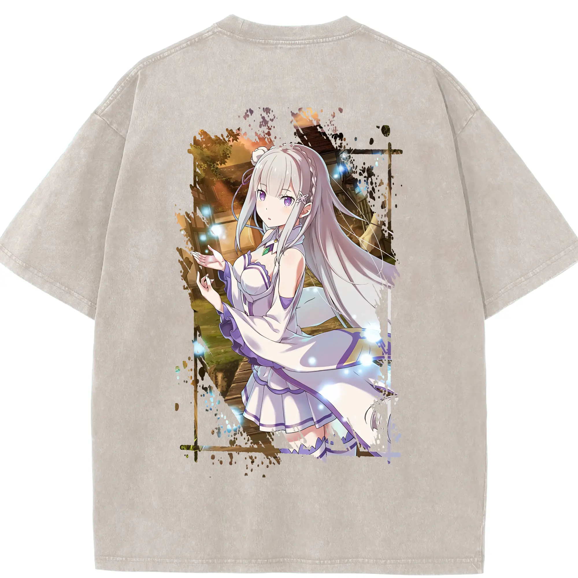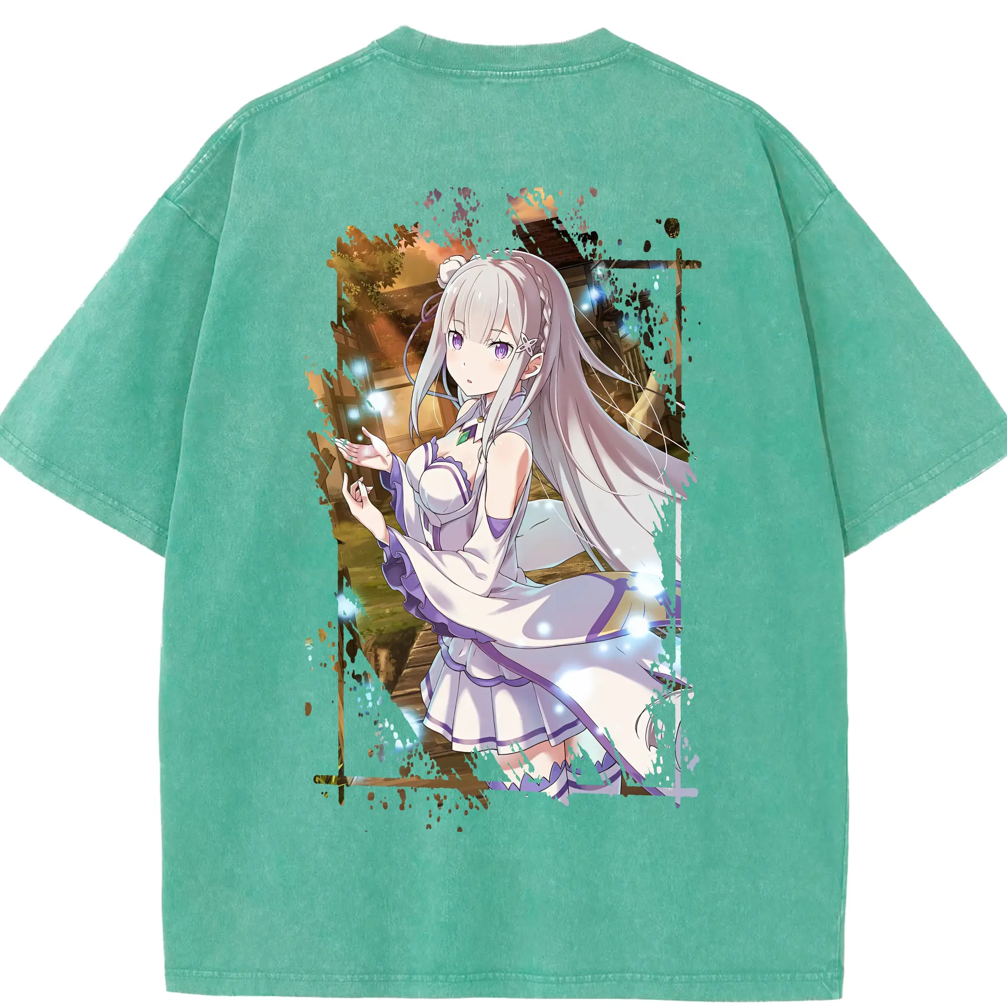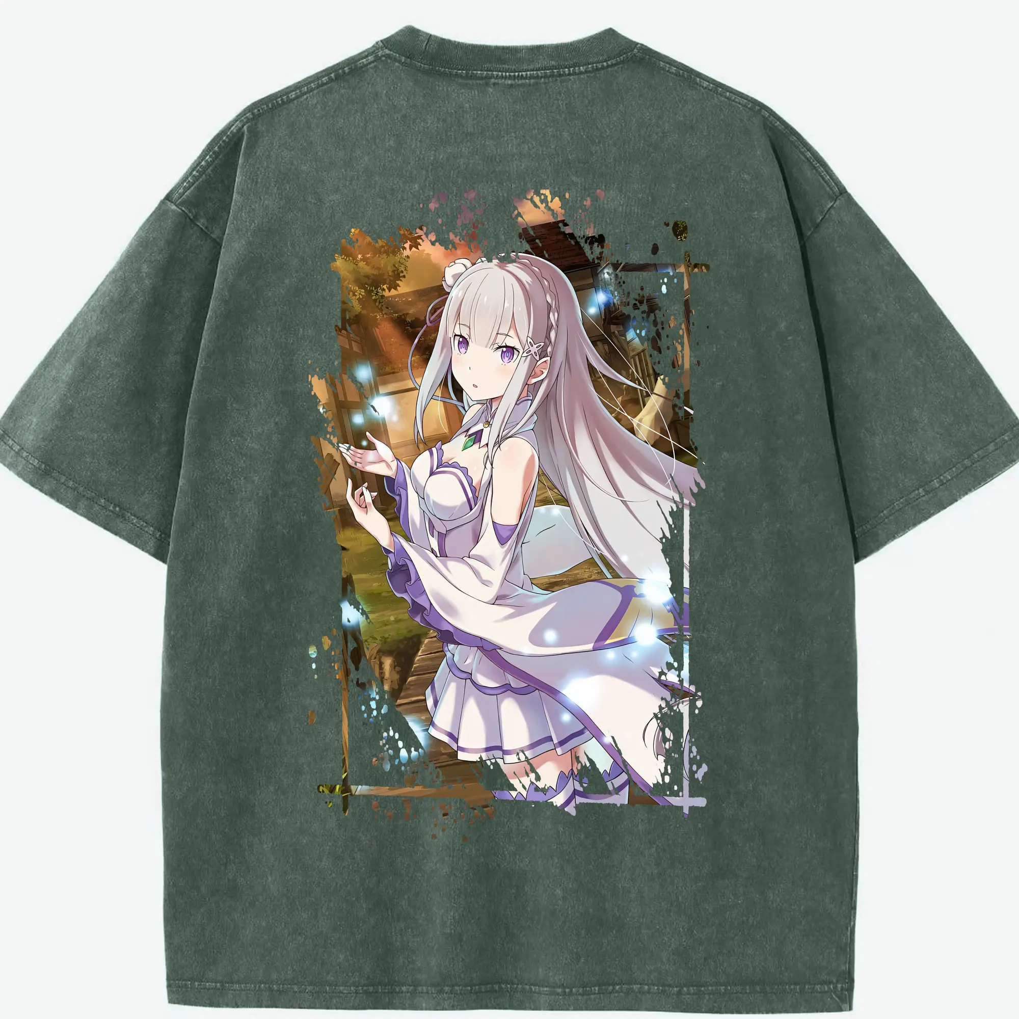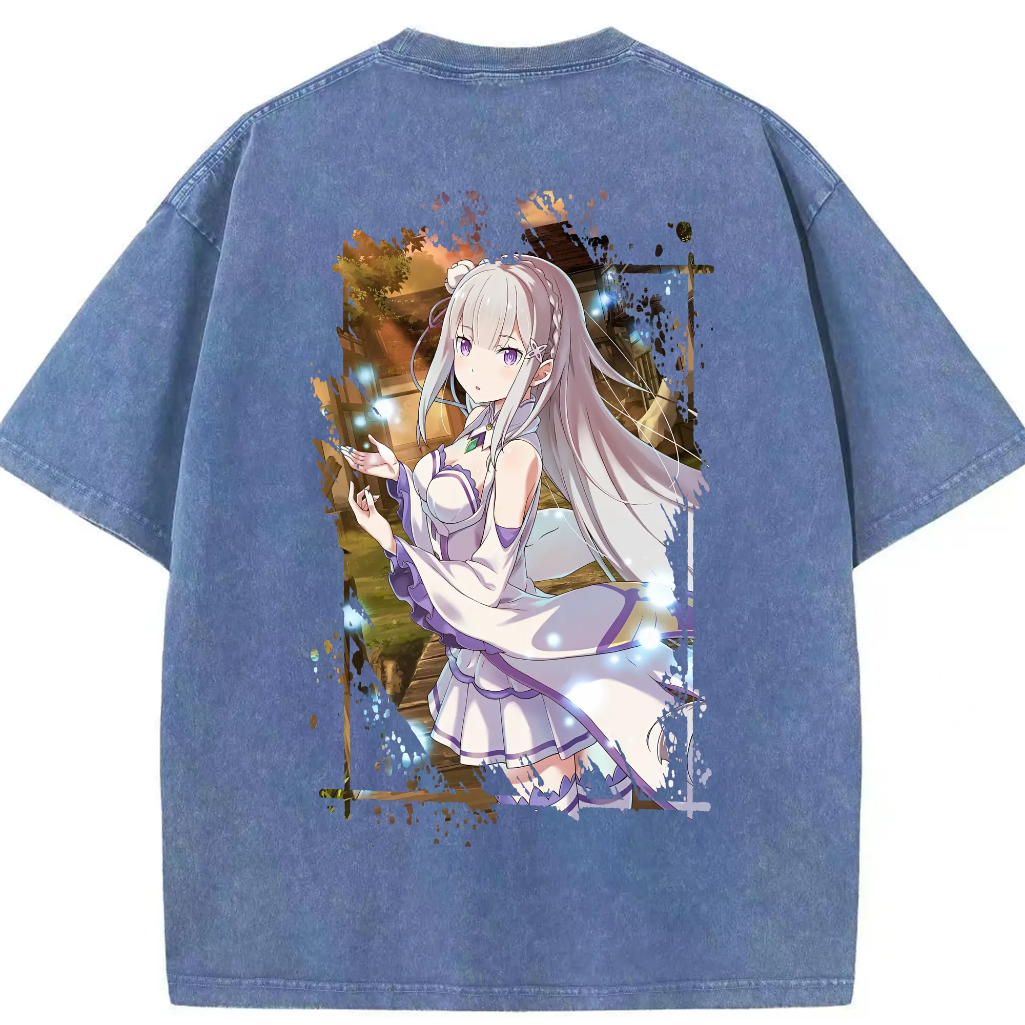 リゼロ グッズ エミリア - 綿100% ヴィンテージ風 半袖Tシャツ ・ フロントプリント ・ 柔らか肌触り ・ 通気性 快適 ・ スポーツ カジュアル 外出用