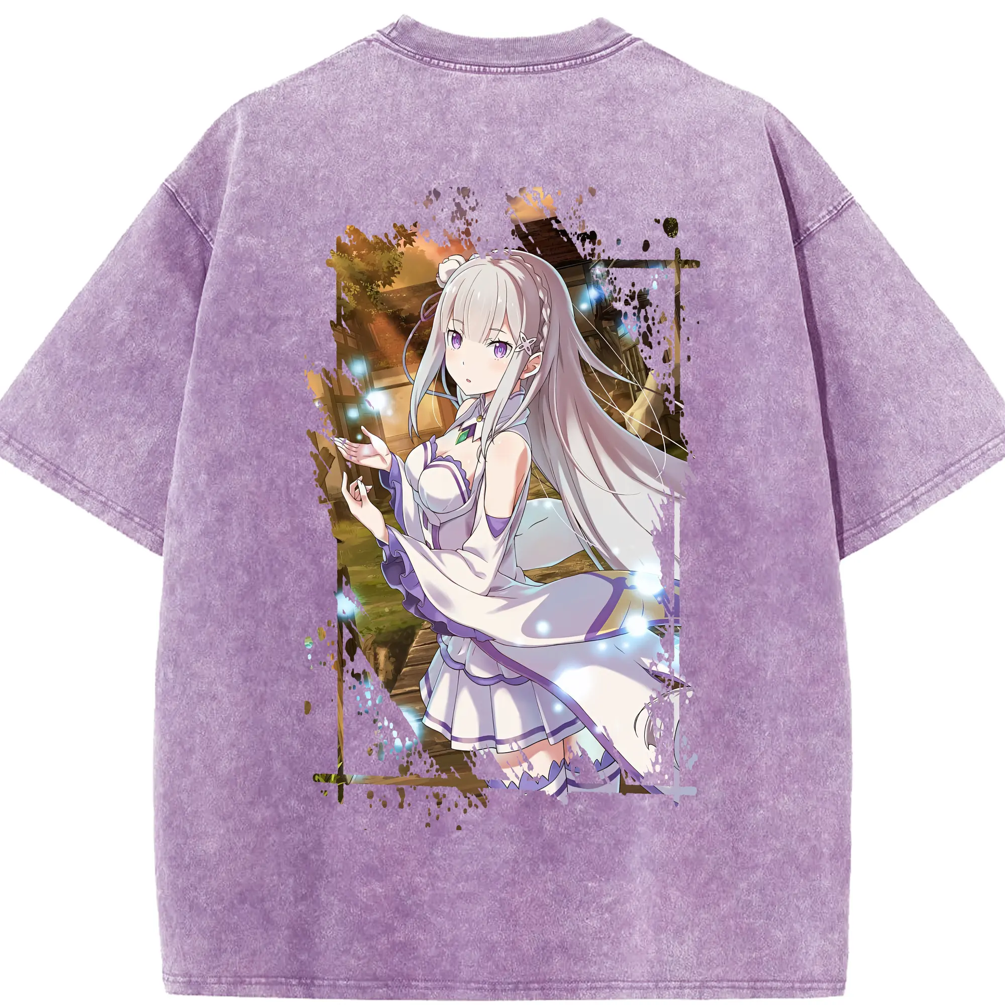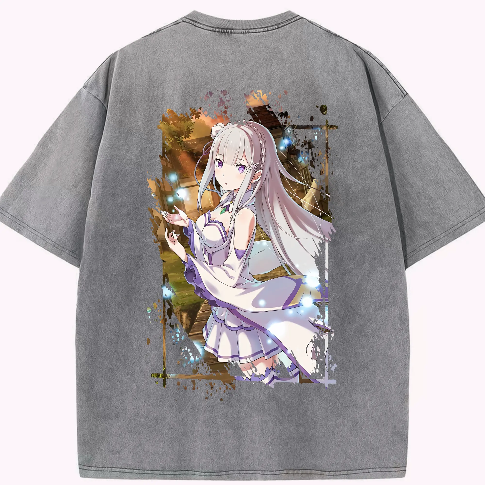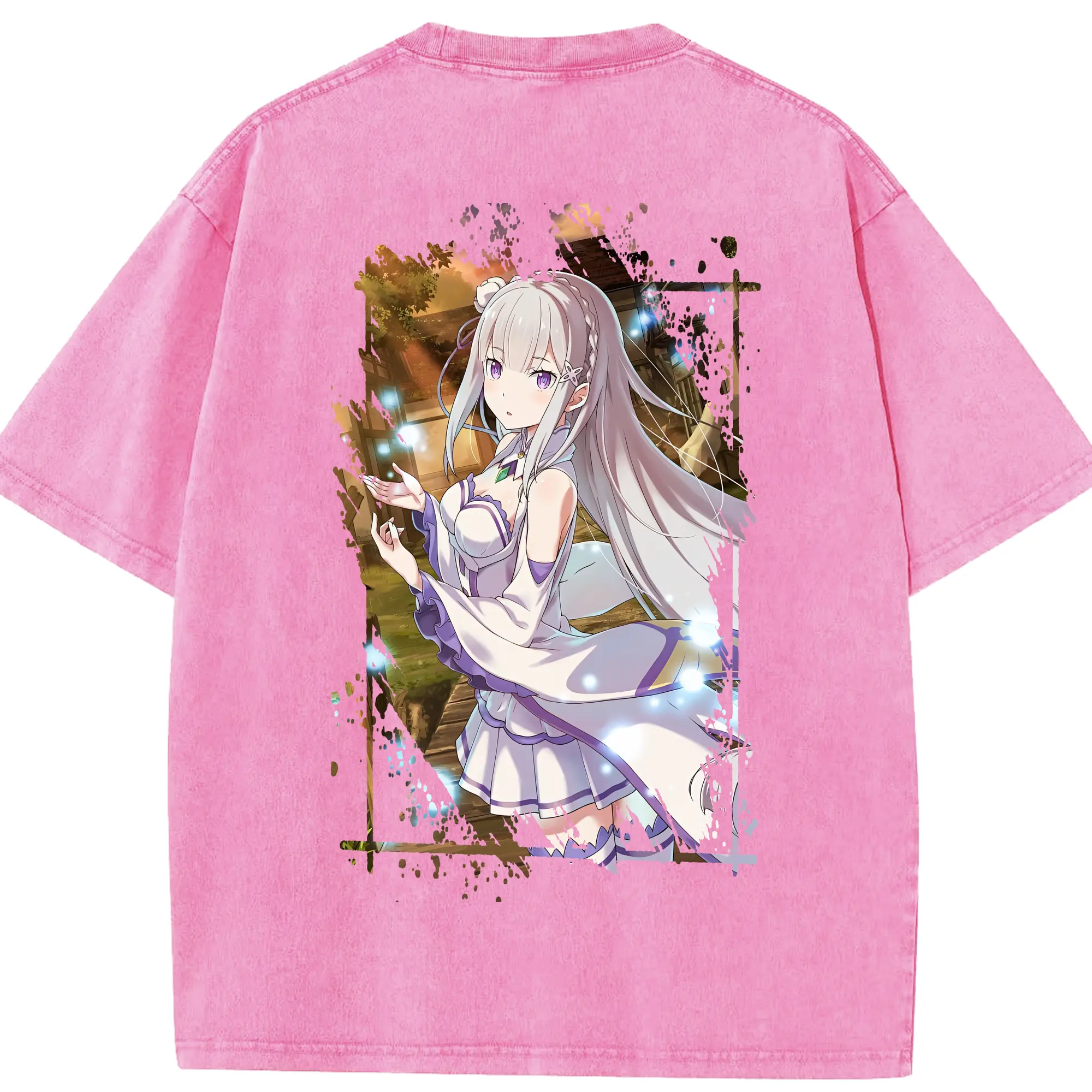 リゼロ グッズ エミリア - 綿100% 半袖Tシャツ ・ バックプリント ・ 快適 通気性 ・ 日常使い 散歩 スポーツ用