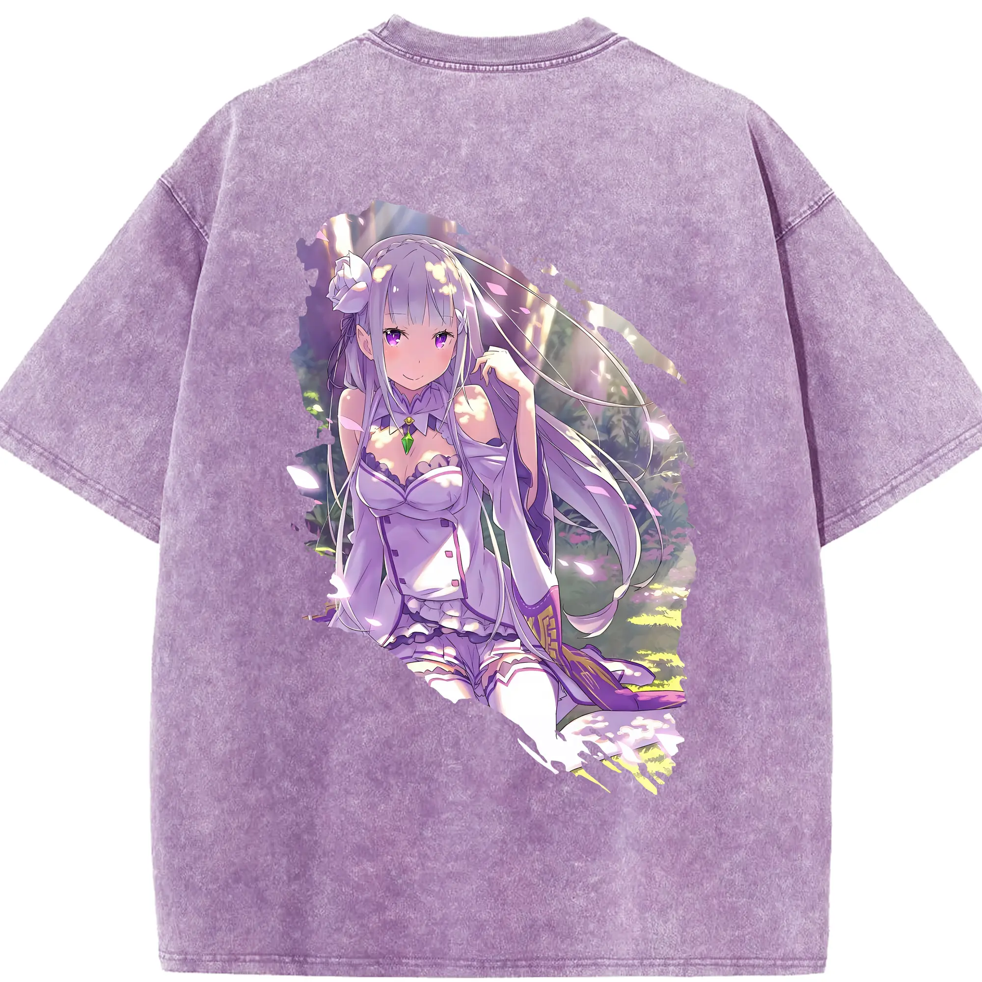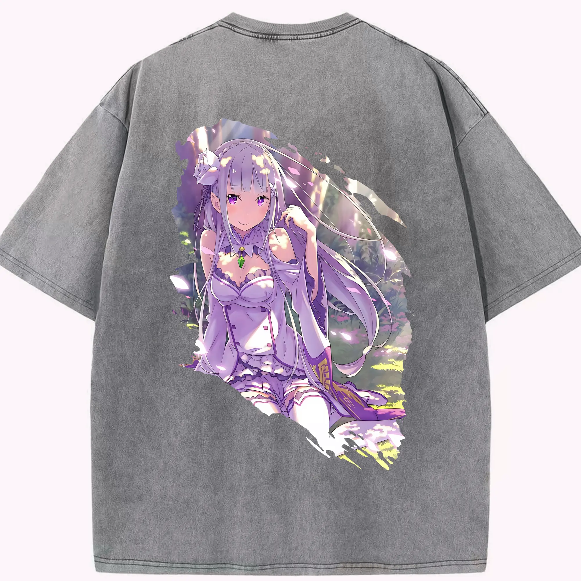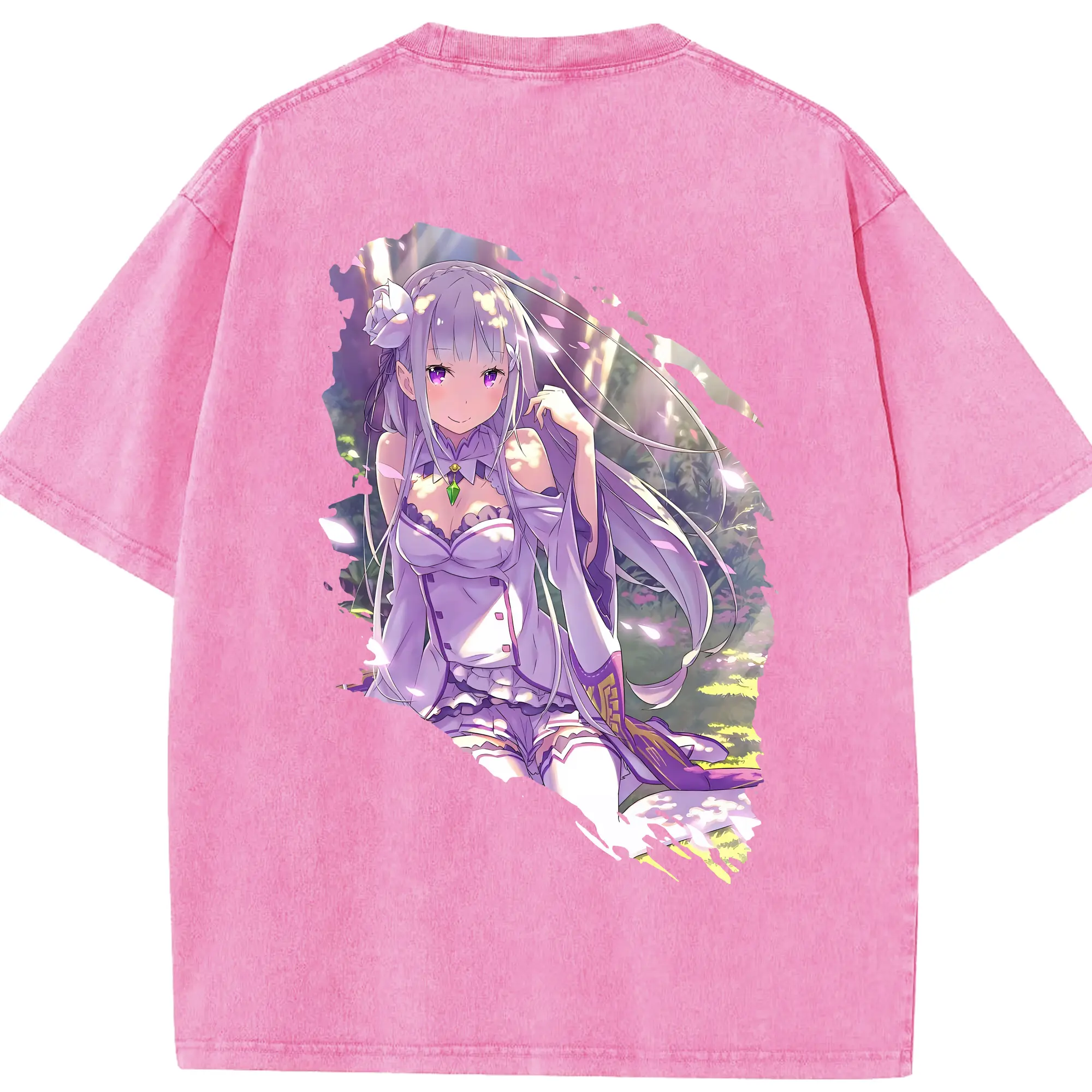 リゼロ グッズ エミリア - 綿100% 半袖Tシャツ ・ バックプリント ・ 快適 通気性 ・ 日常使い 散歩 スポーツ用