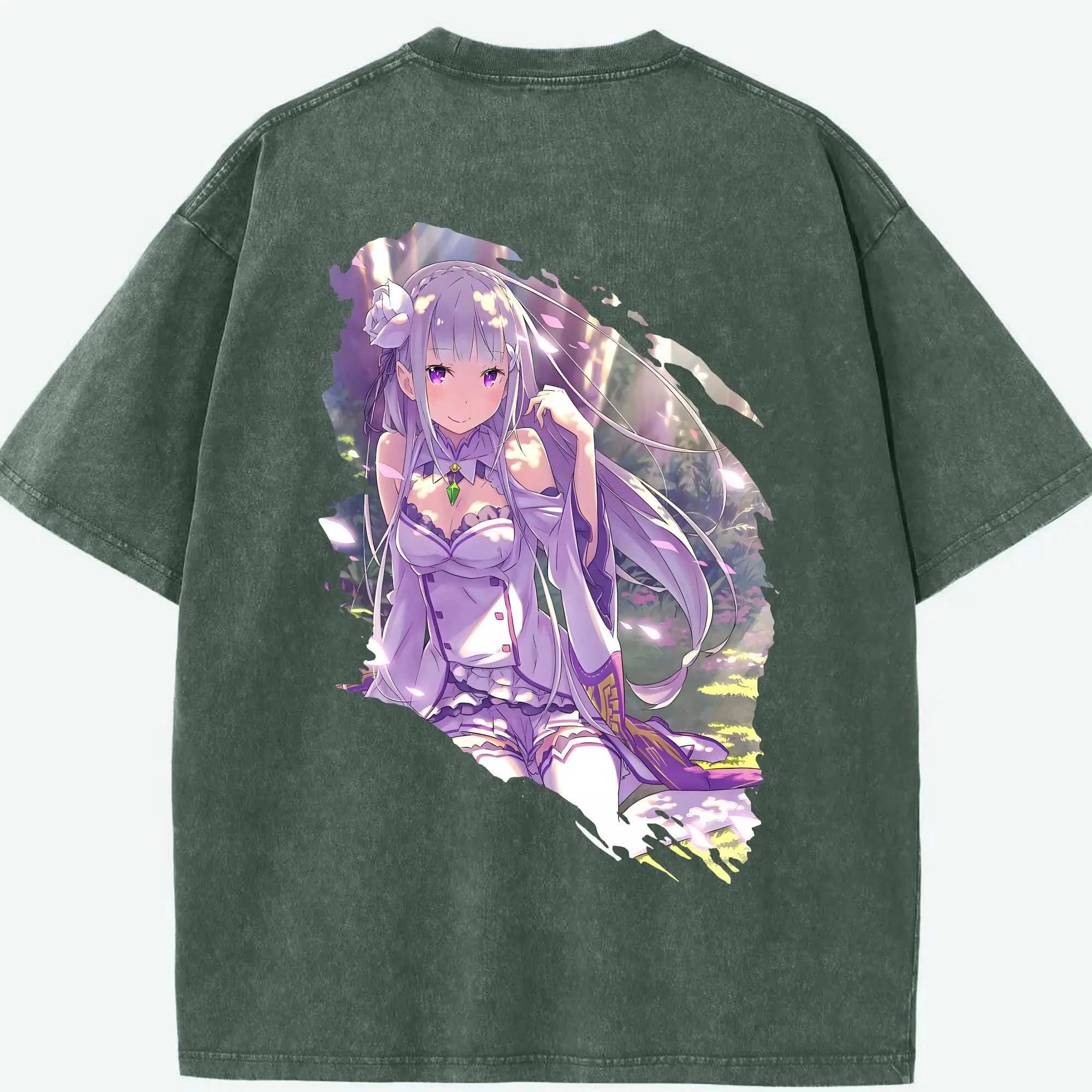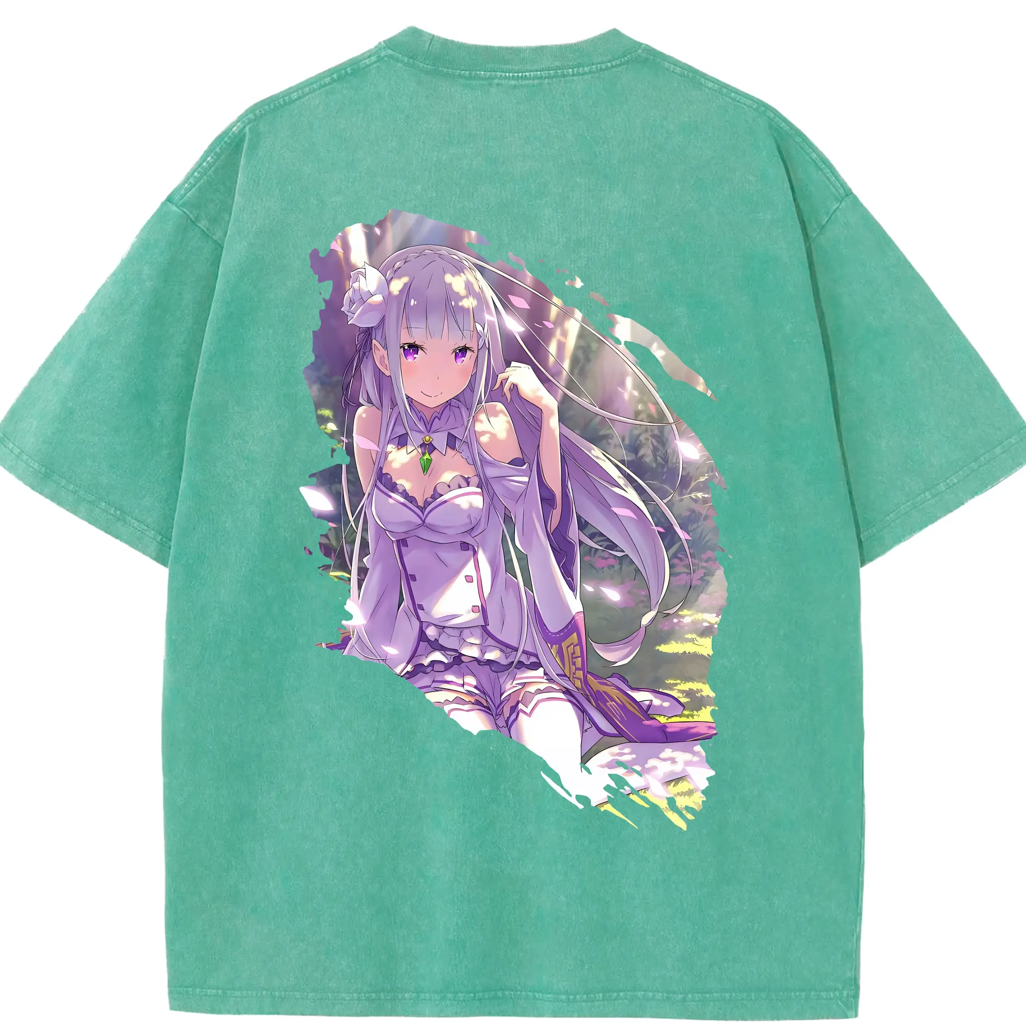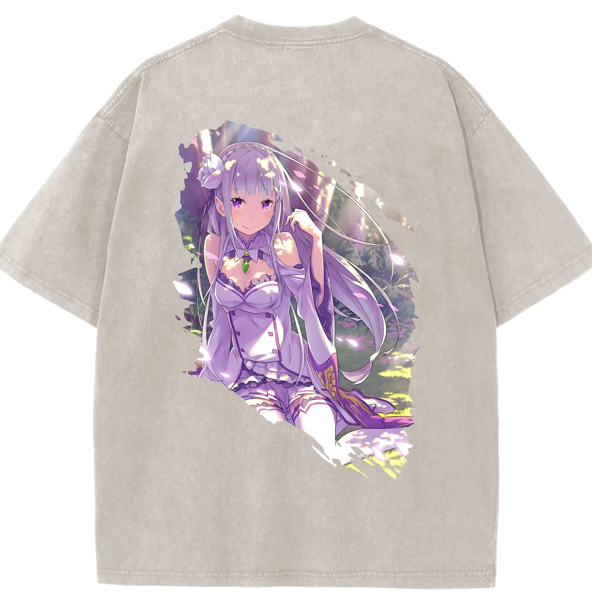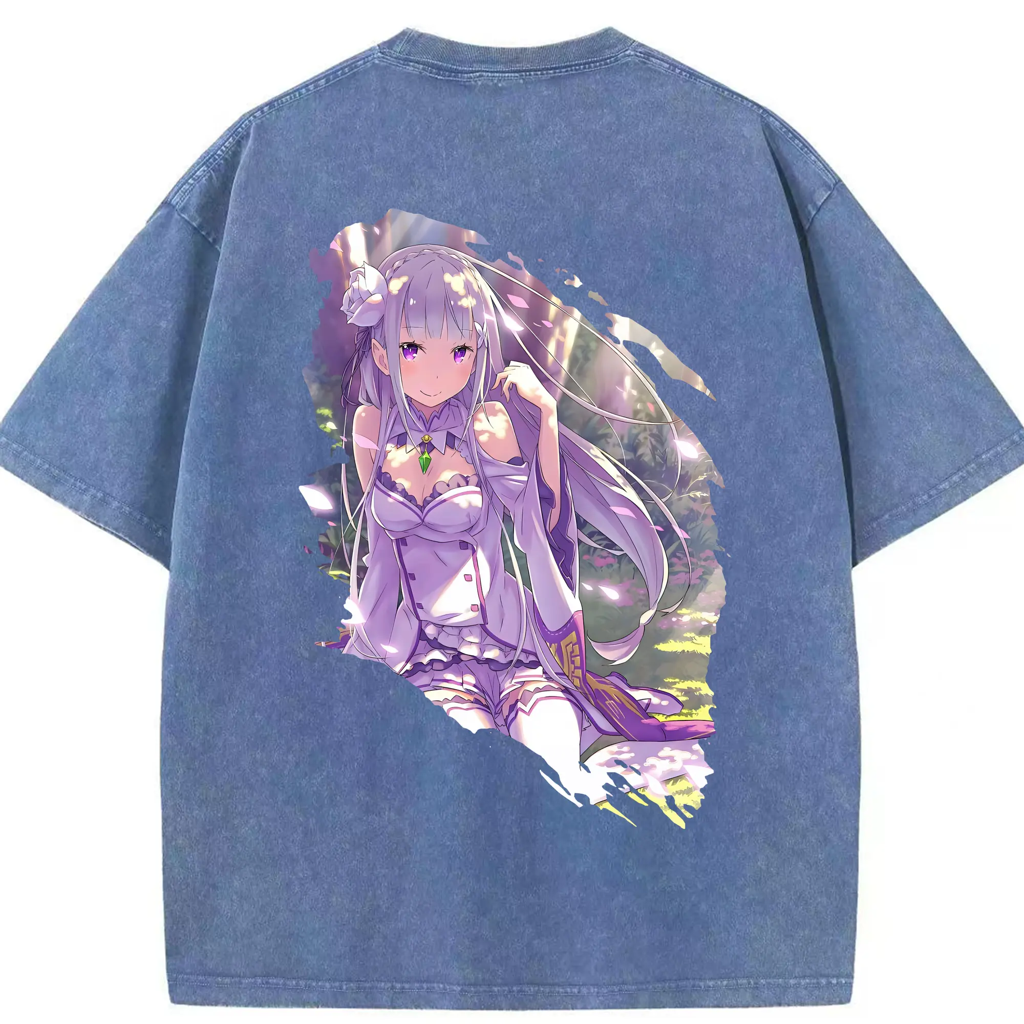 リゼロ グッズ エミリア - 綿100% 半袖Tシャツ ・ バックプリント ・ 快適 通気性 ・ 日常使い 散歩 スポーツ用