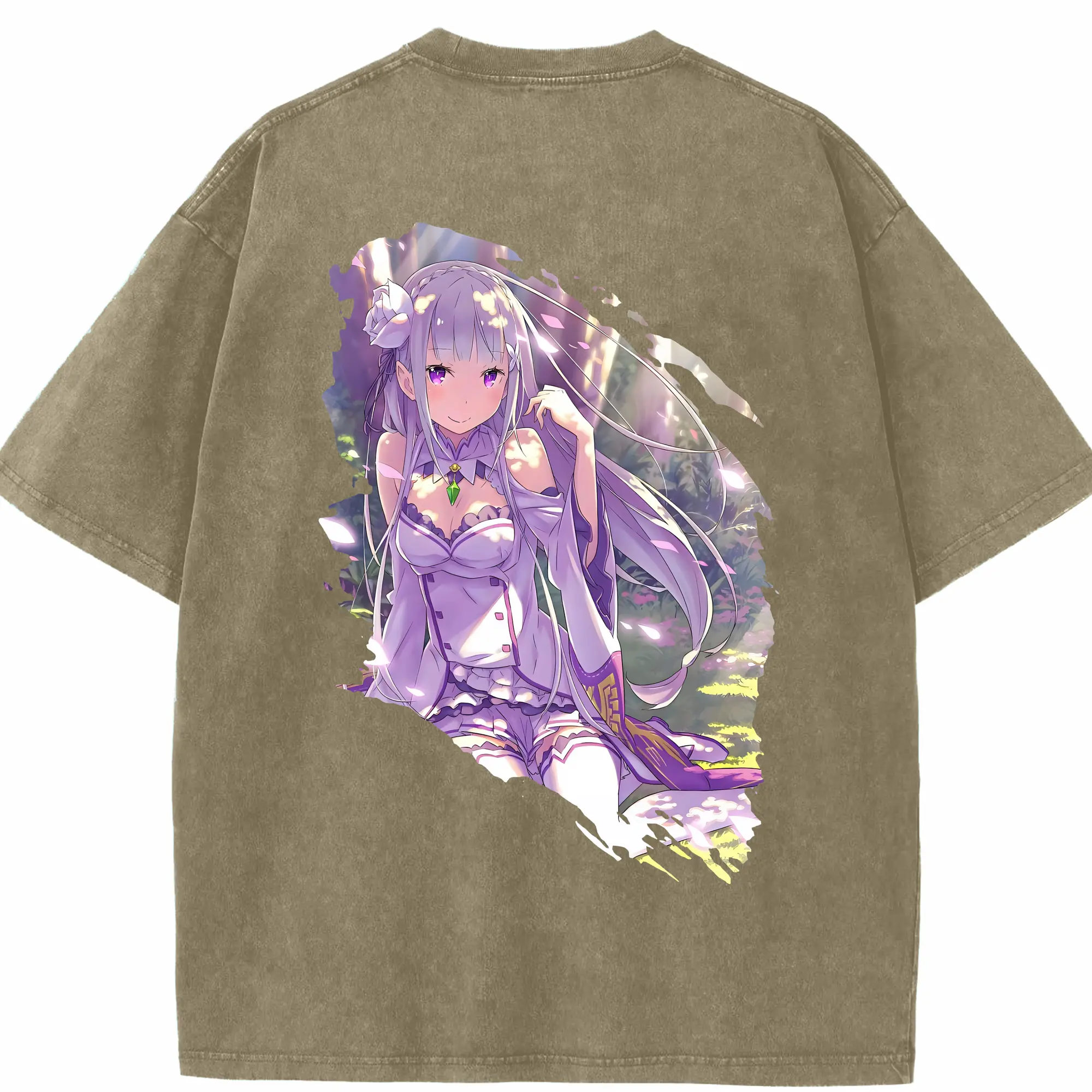 リゼロ グッズ エミリア - 綿100% ヴィンテージ風 半袖Tシャツ ・ フロントプリント ・ 柔らか肌触り ・ 通気性 快適 ・ スポーツ カジュアル 外出用