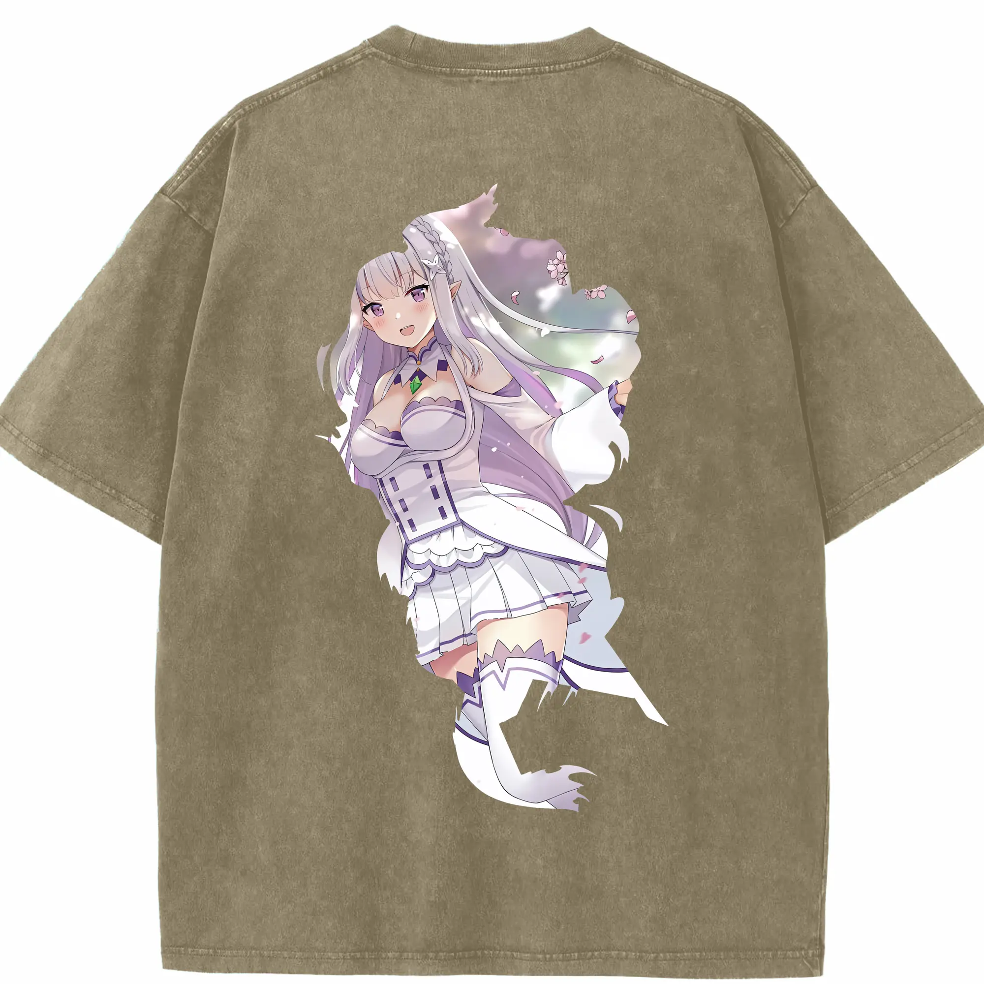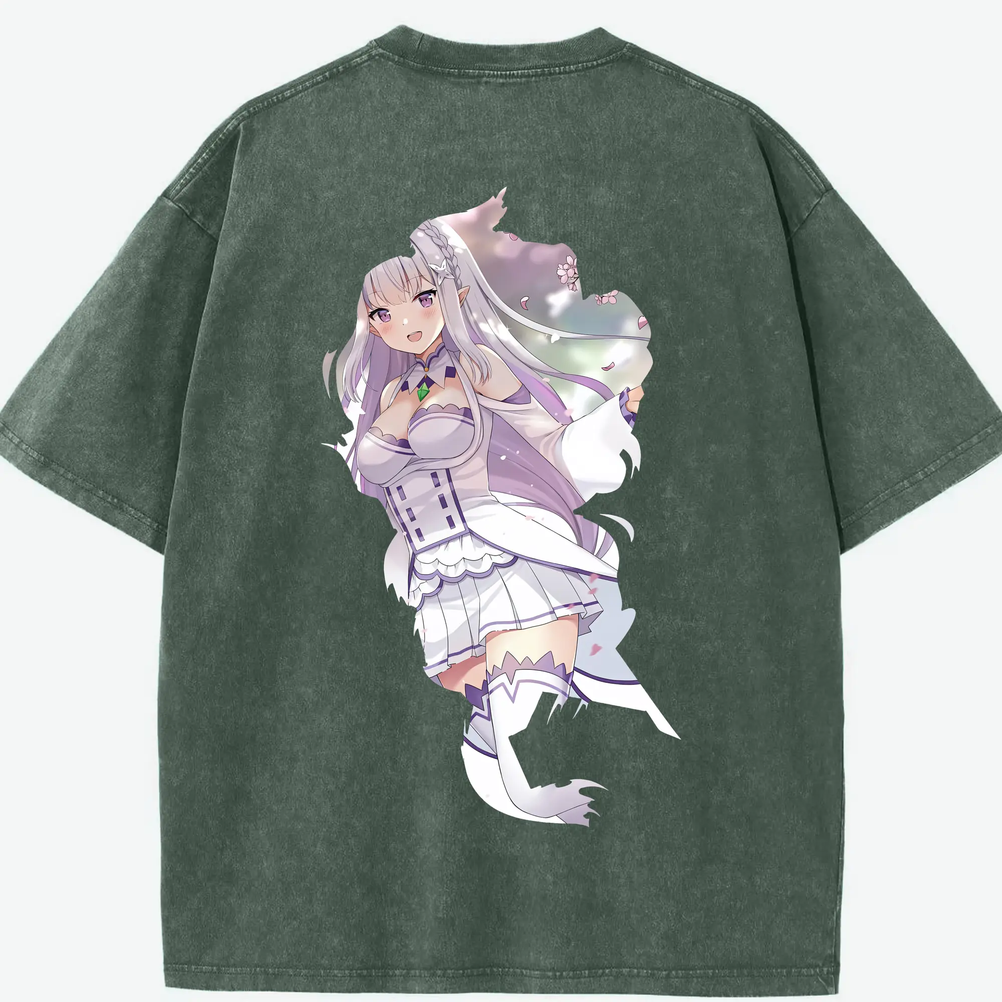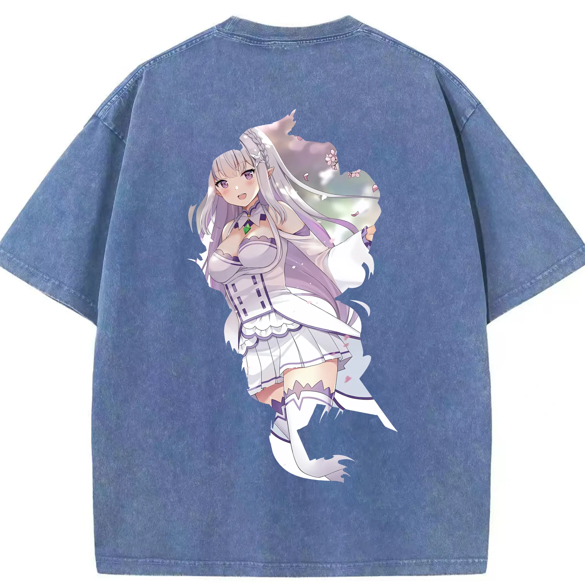 リゼロ グッズ エミリア - 綿100% ヴィンテージ風 半袖Tシャツ ・ フロントプリント ・ 柔らか肌触り ・ 通気性 快適 ・ スポーツ カジュアル 外出用