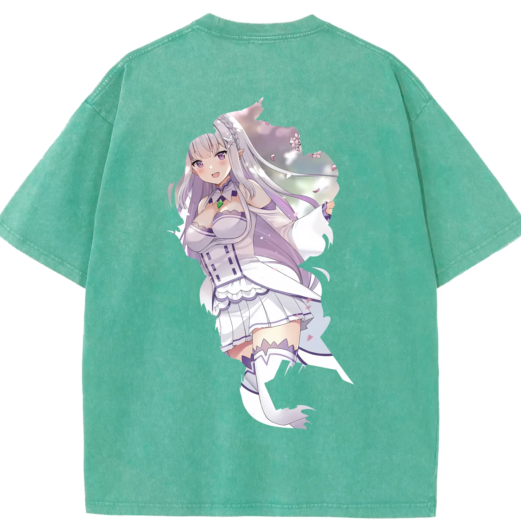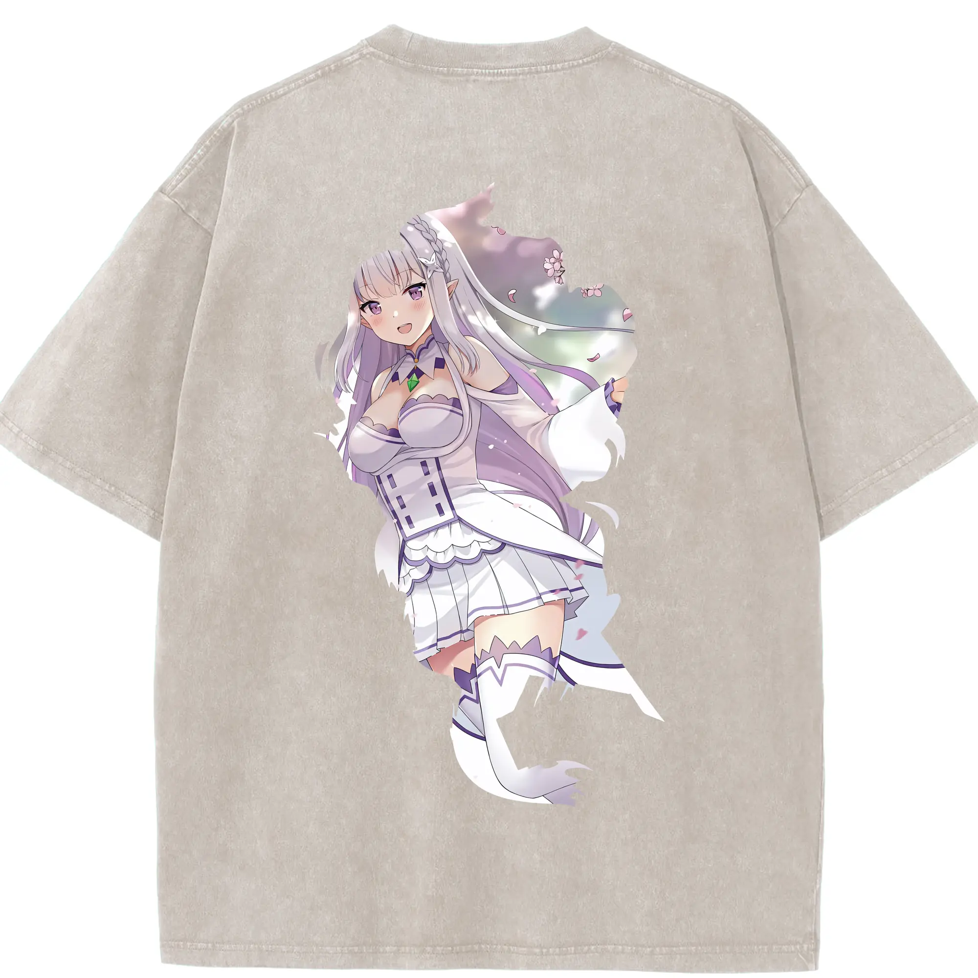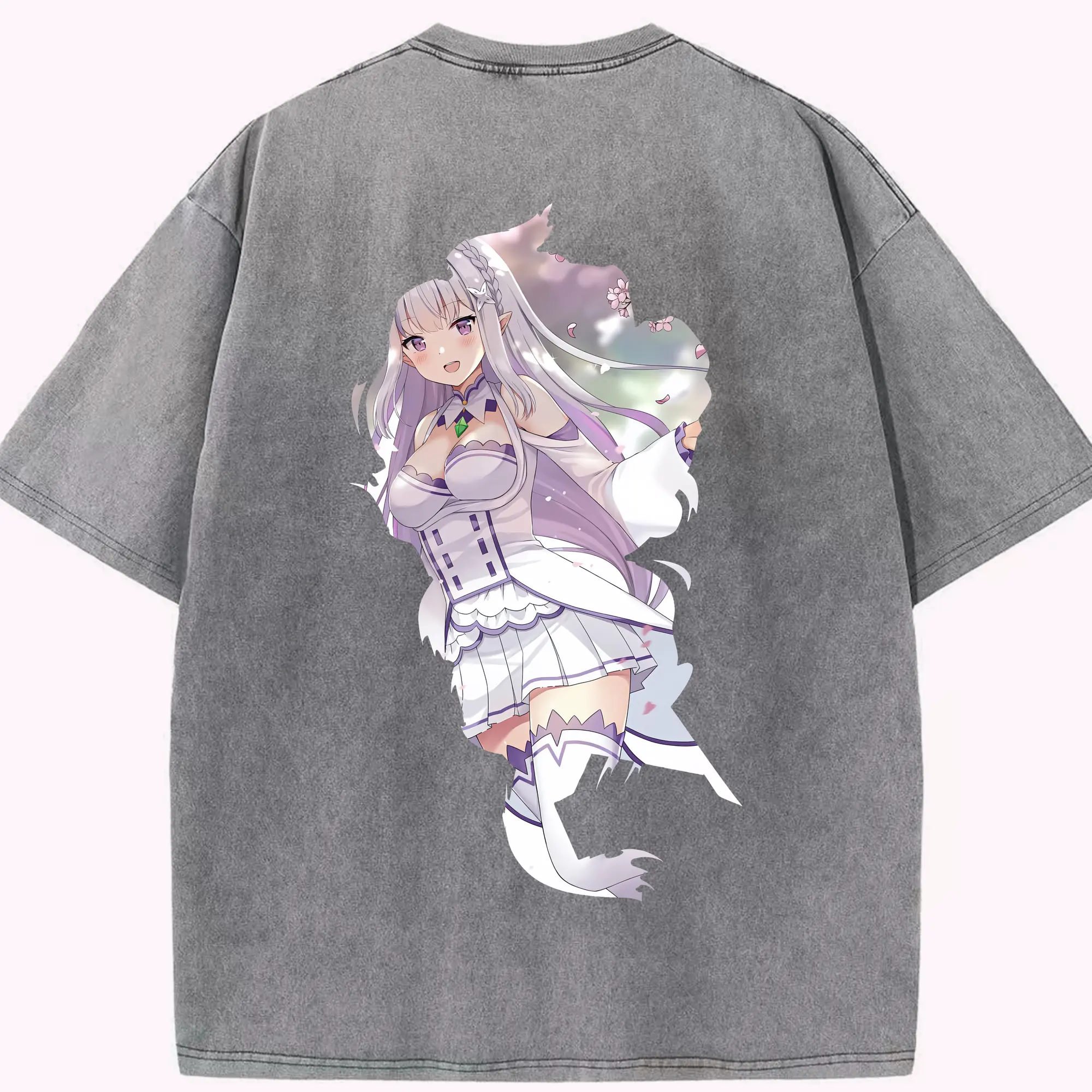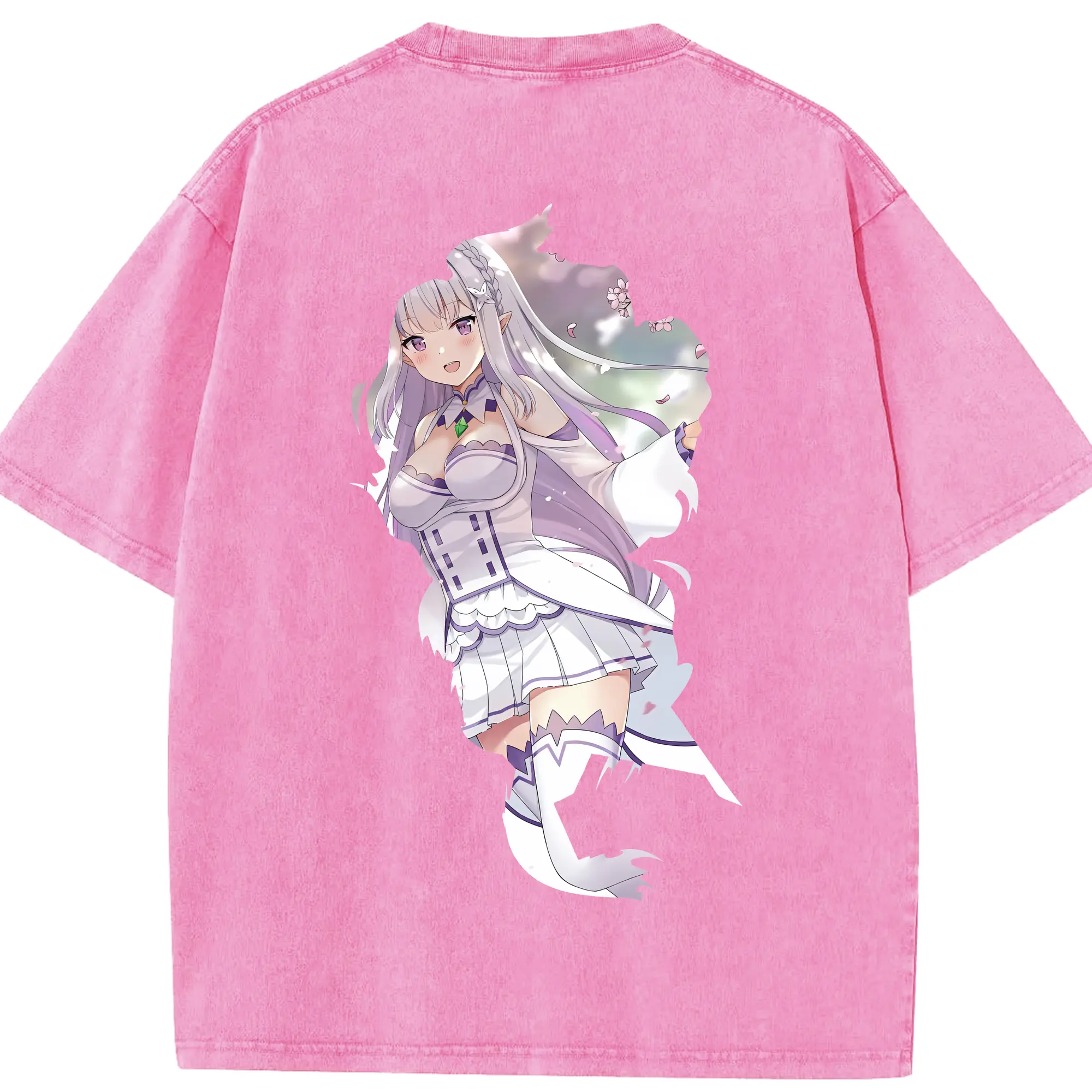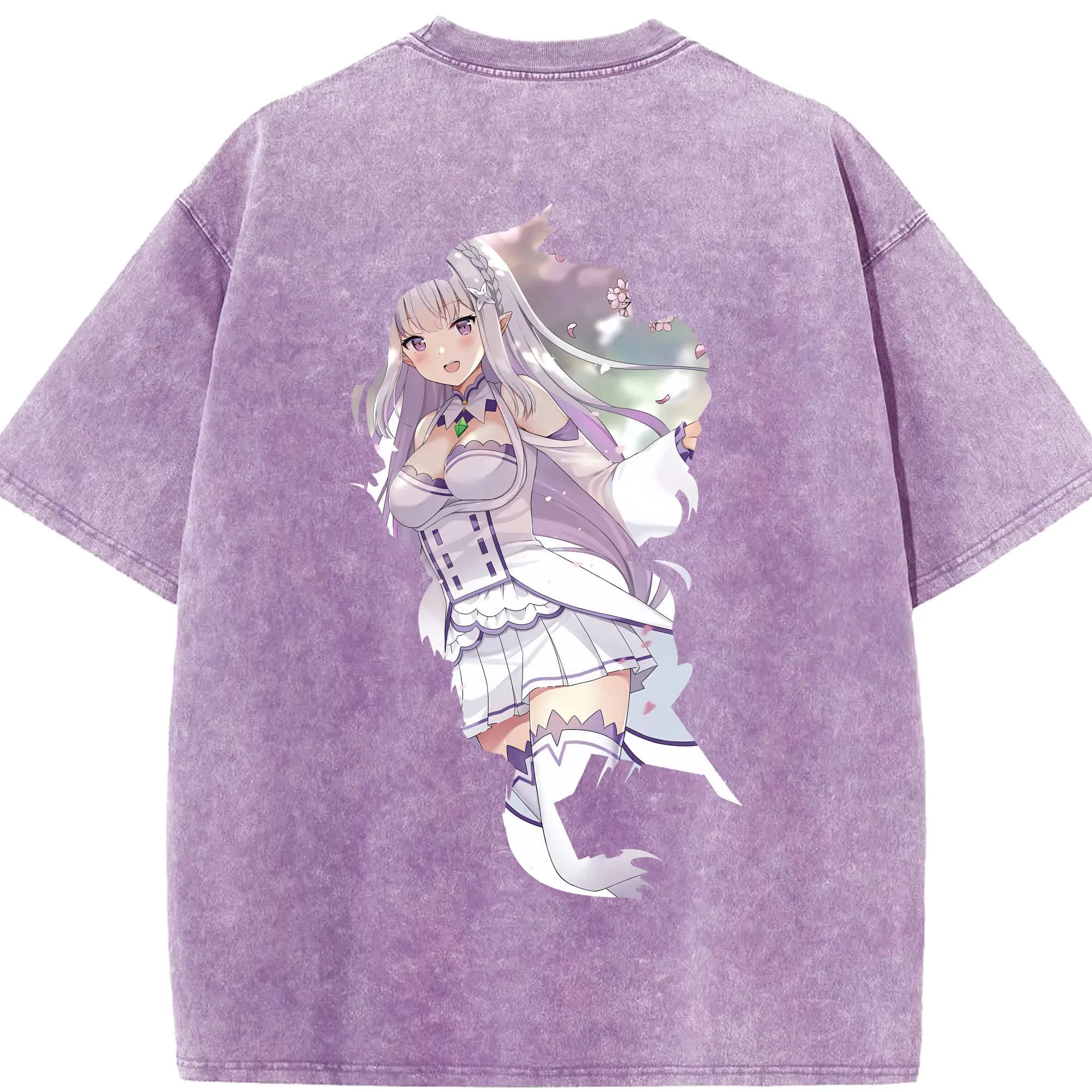 リゼロ グッズ エミリア - 綿100% 半袖Tシャツ ・ バックプリント ・ 快適 通気性 ・ 日常使い 散歩 スポーツ用