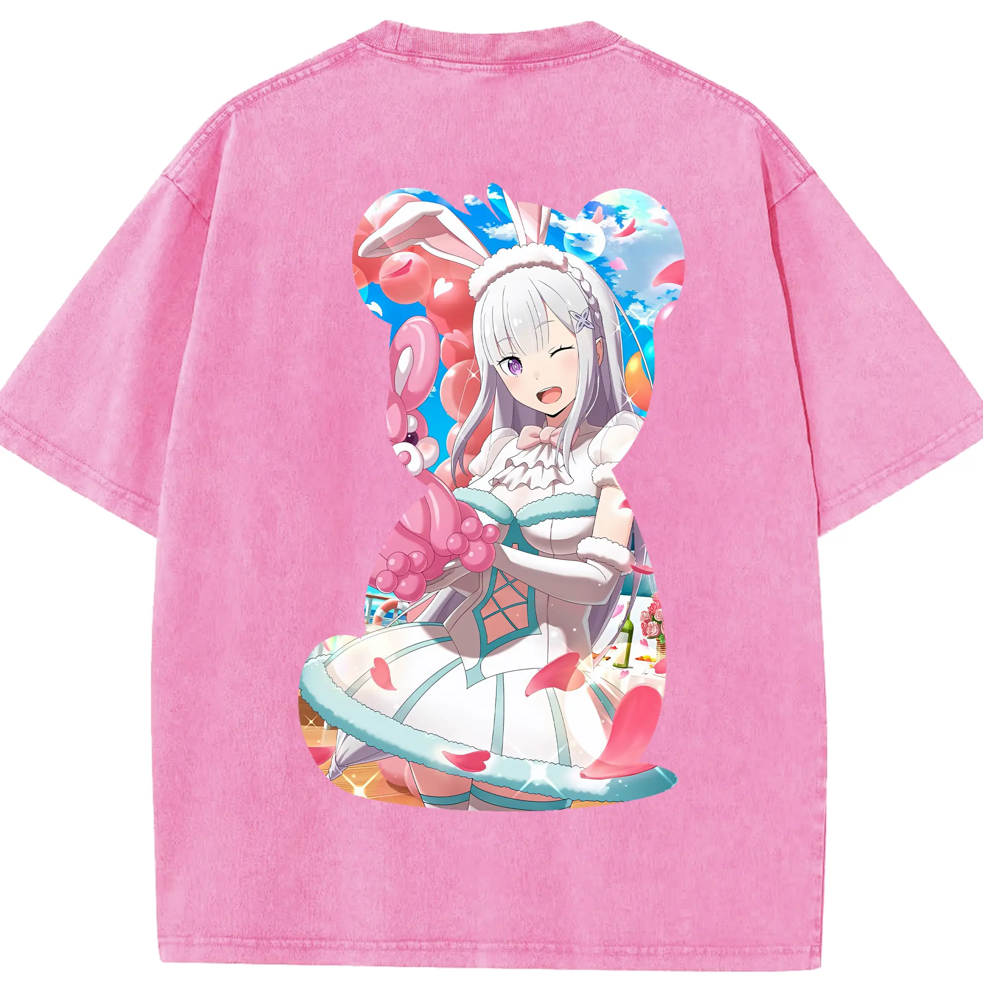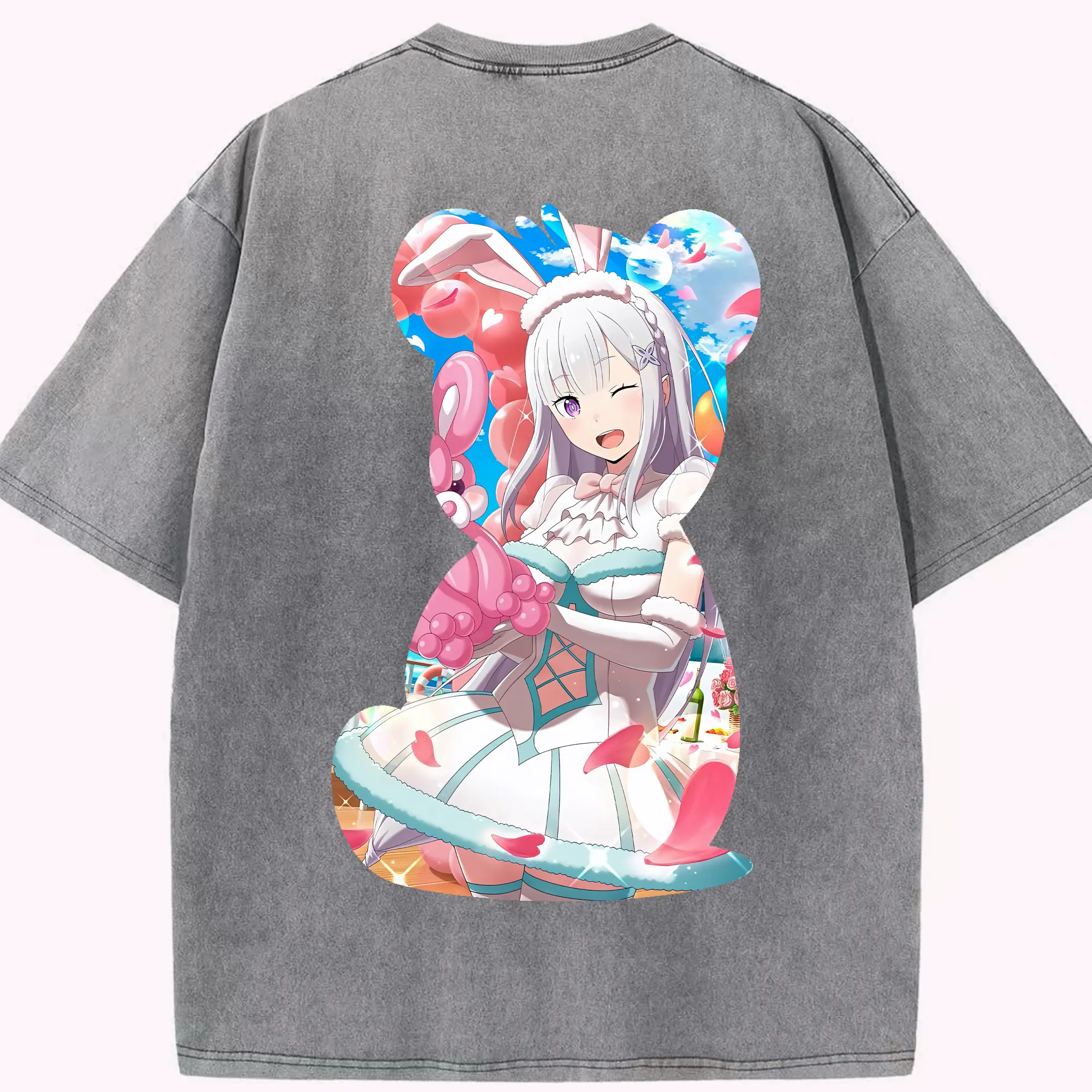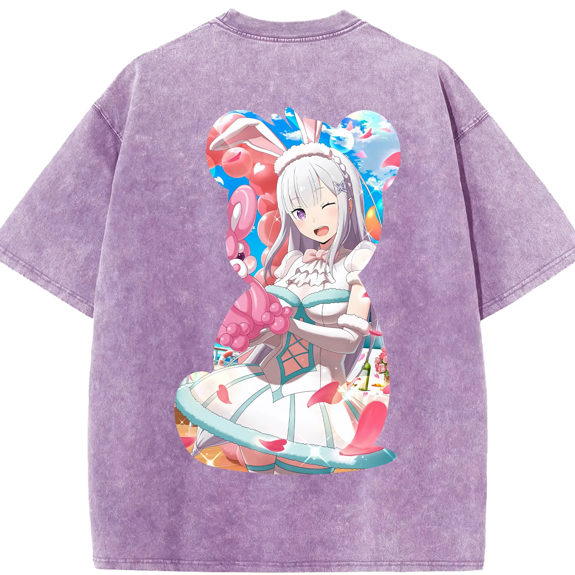 リゼロ グッズ エミリア - 綿100% 半袖Tシャツ ・ バックプリント ・ 快適 通気性 ・ 日常使い 散歩 スポーツ用