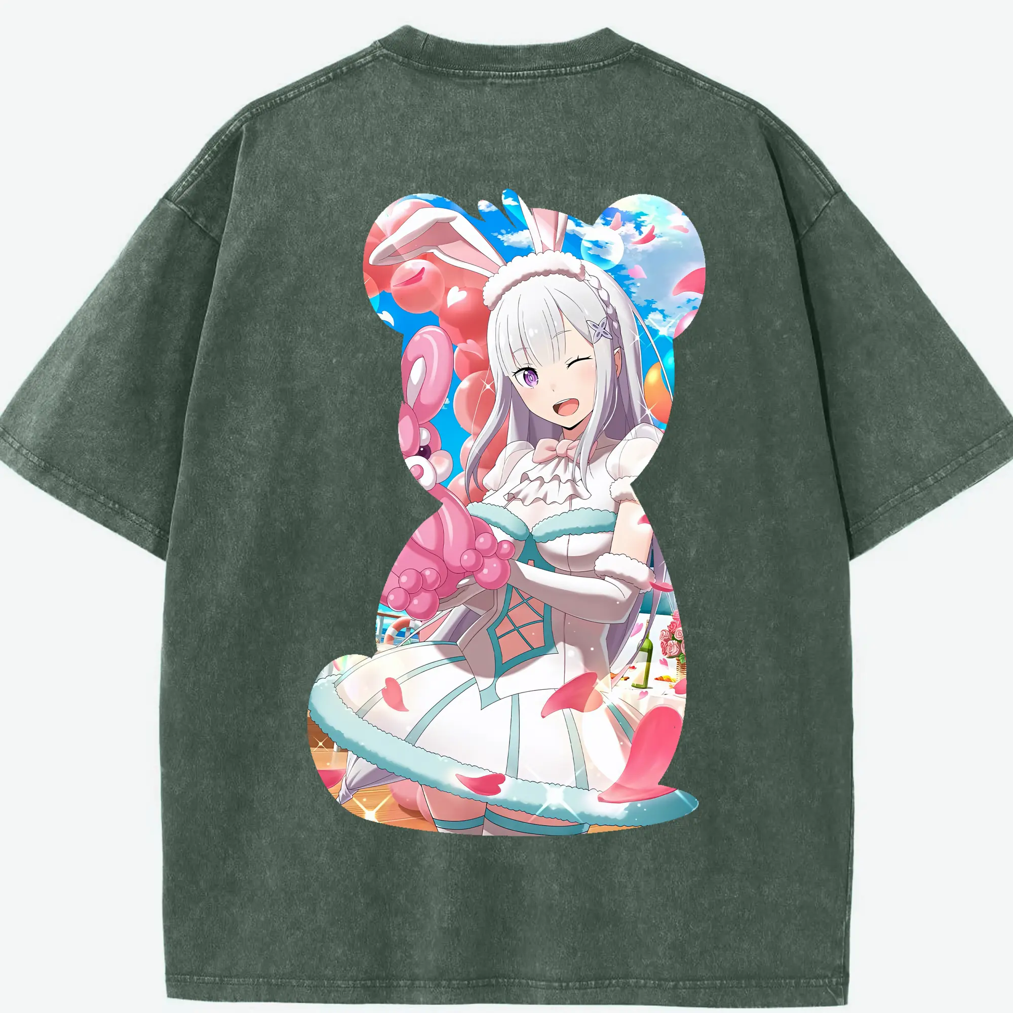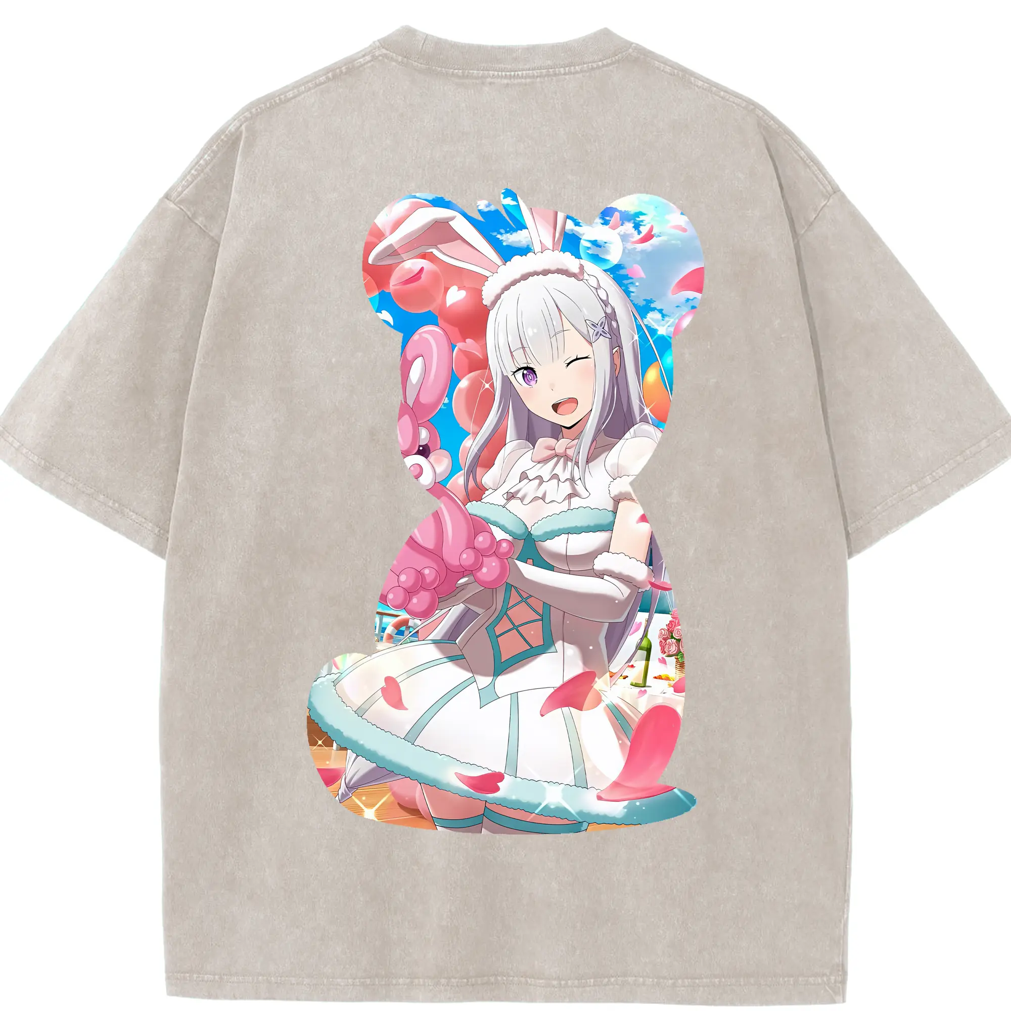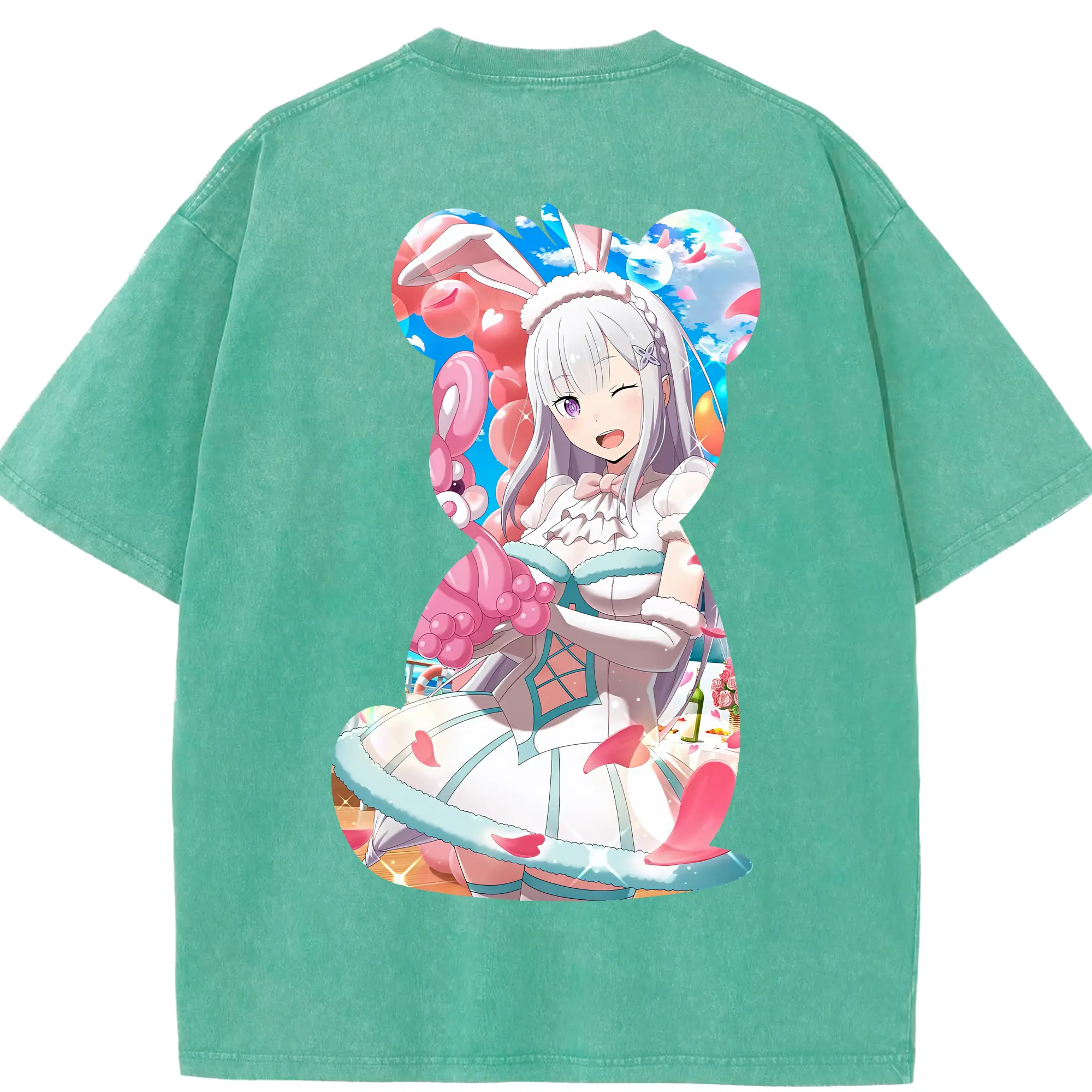 リゼロ グッズ エミリア - 綿100% 半袖Tシャツ ・ バックプリント ・ 快適 通気性 ・ 日常使い 散歩 スポーツ用