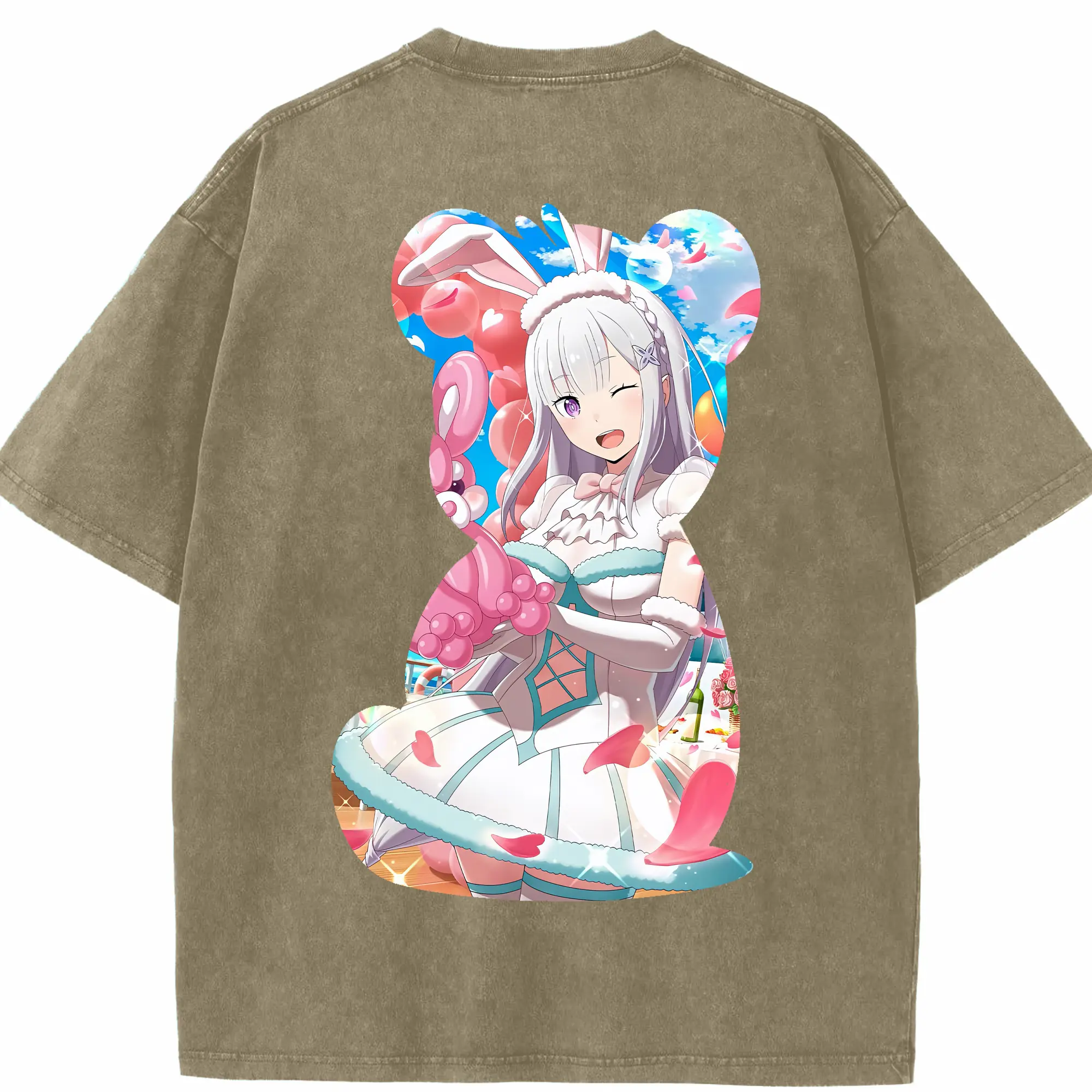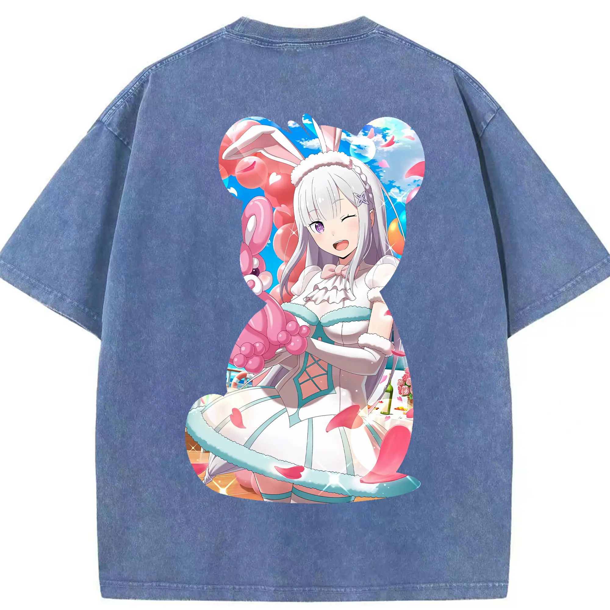 リゼロ グッズ エミリア - 綿100% ヴィンテージ風 半袖Tシャツ ・ フロントプリント ・ 柔らか肌触り ・ 通気性 快適 ・ スポーツ カジュアル 外出用