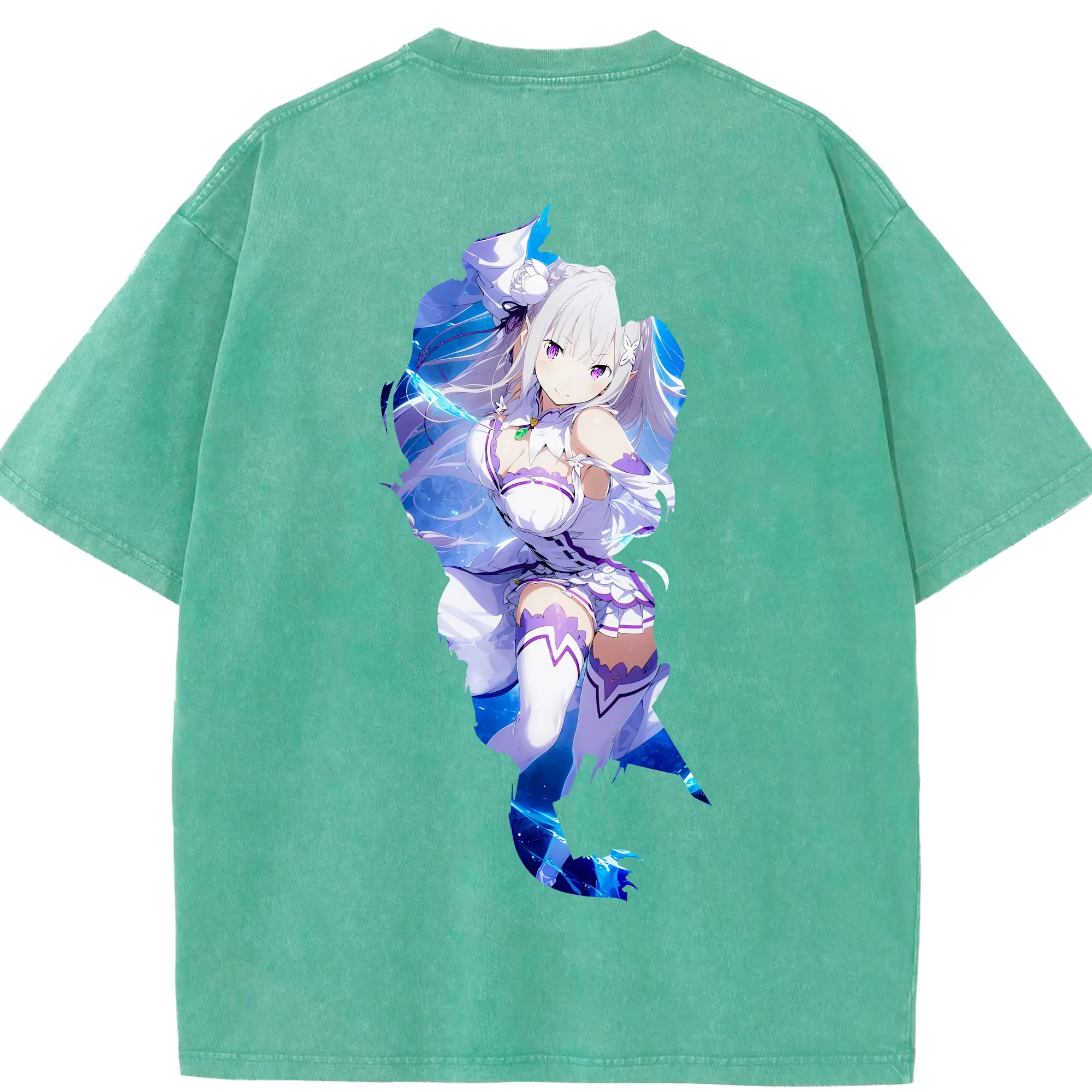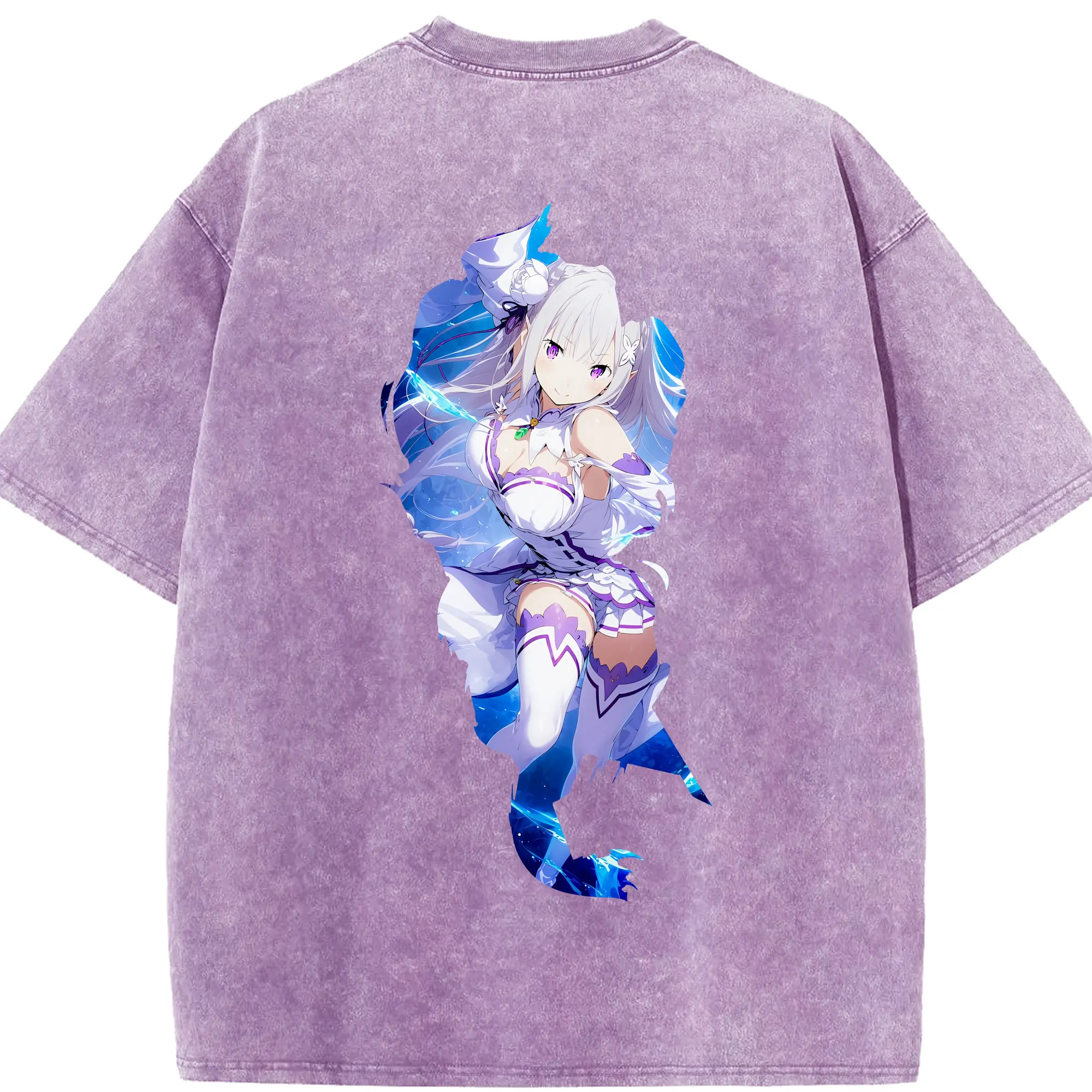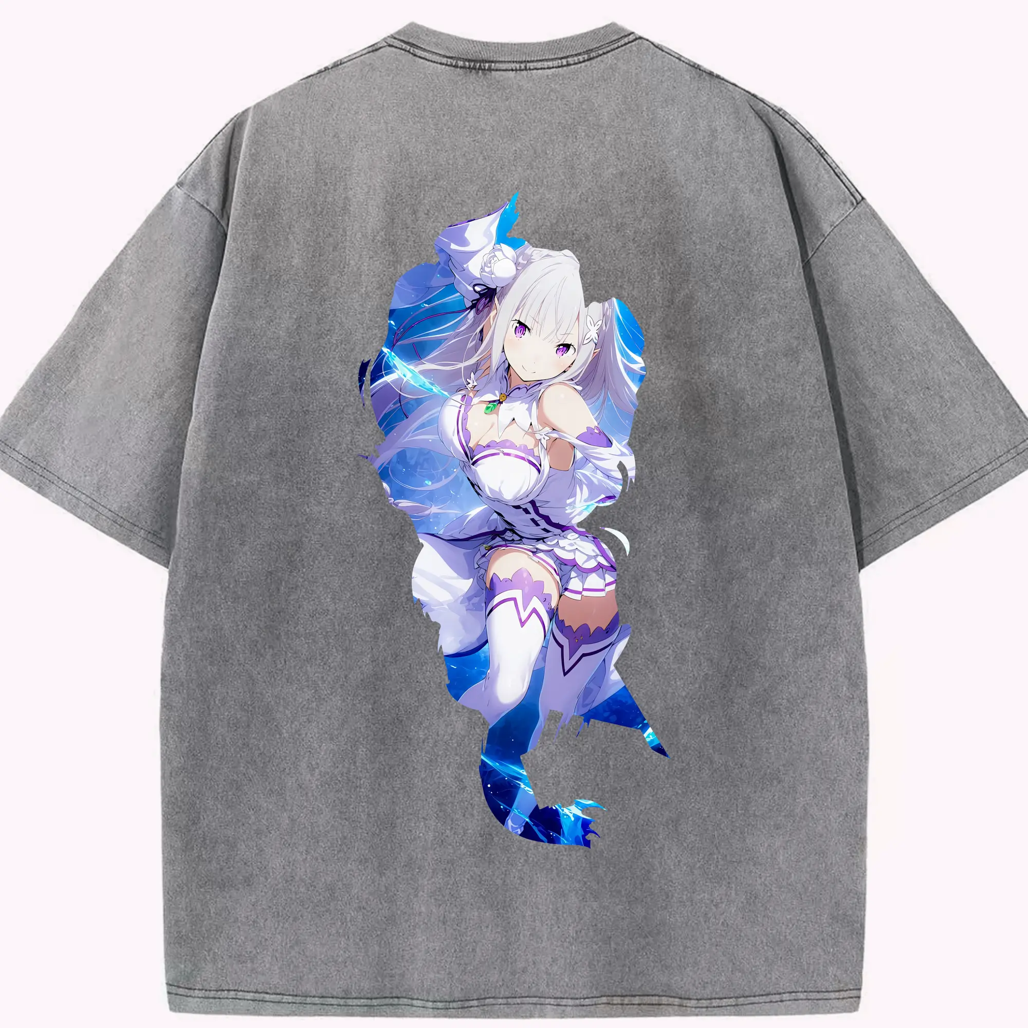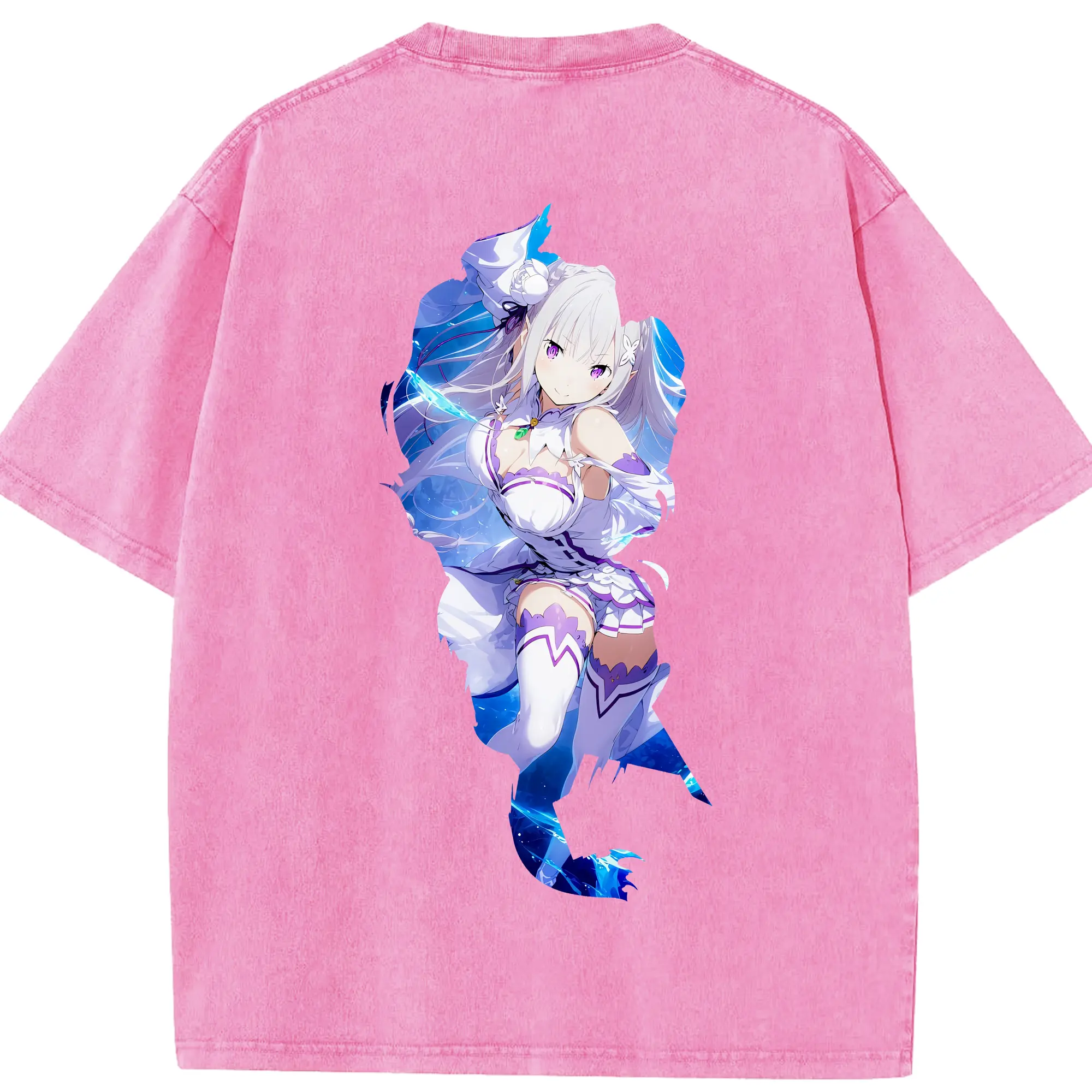 リゼロ グッズ エミリア - 綿100% 半袖Tシャツ ・ バックプリント ・ 快適 通気性 ・ 日常使い 散歩 スポーツ用