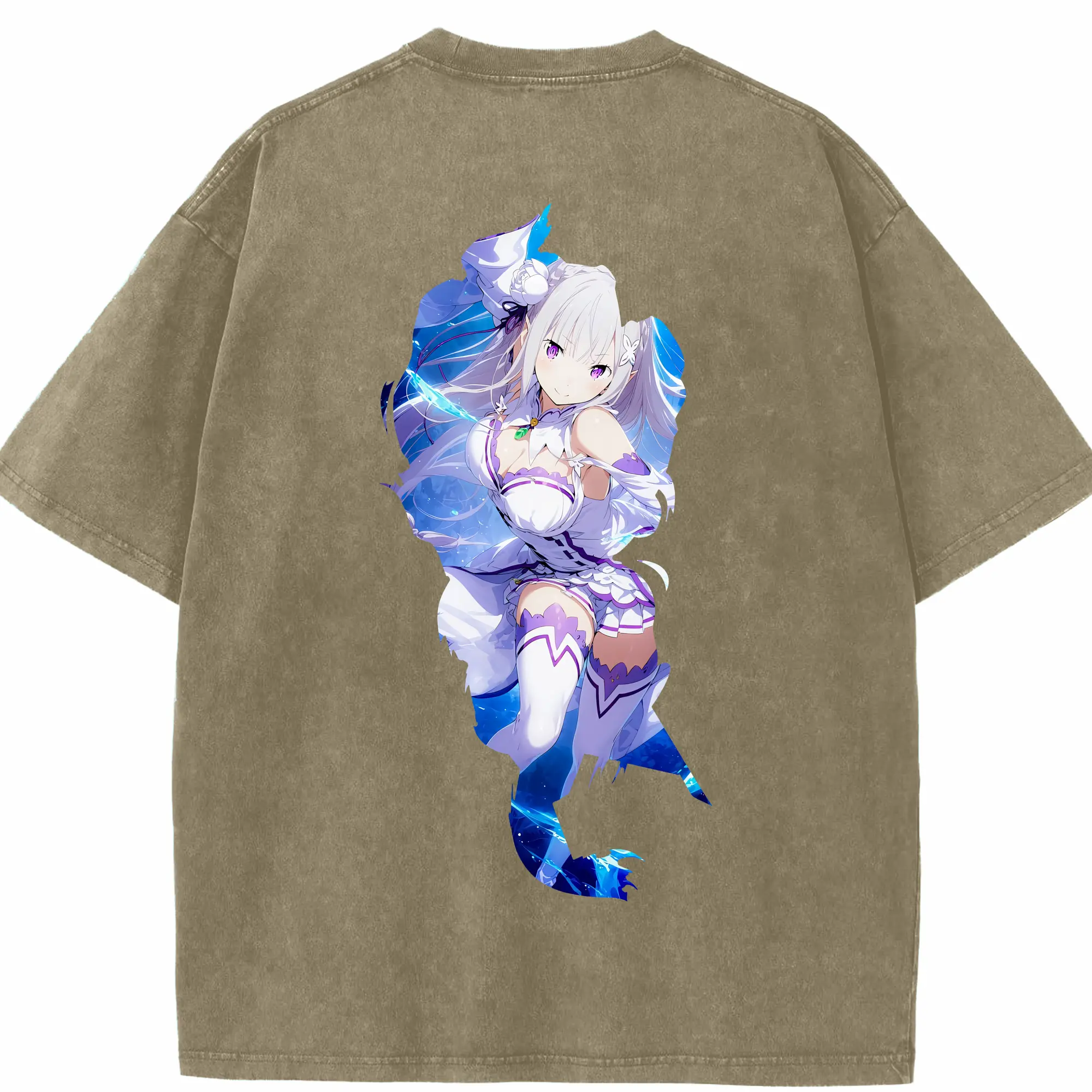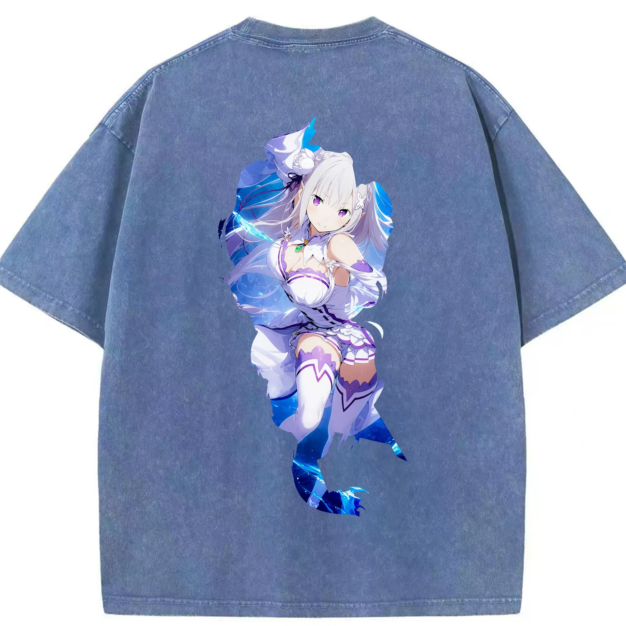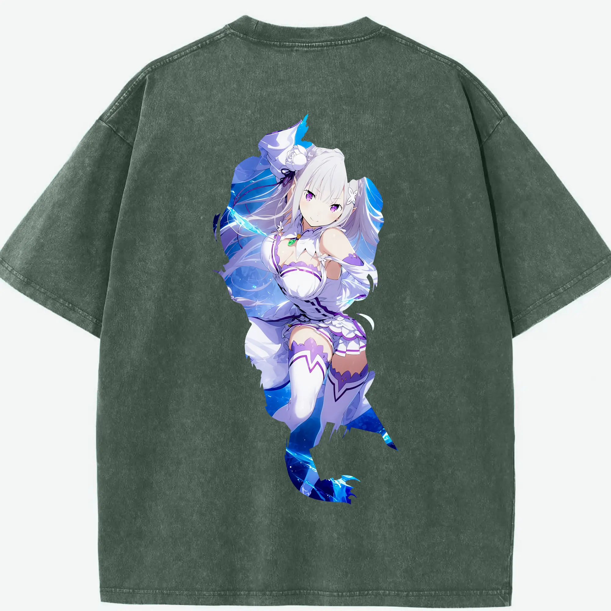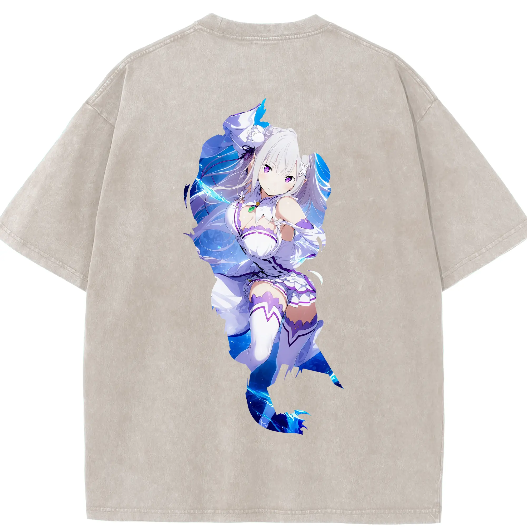 リゼロ グッズ エミリア - 綿100% 半袖Tシャツ ・ バックプリント ・ 快適 通気性 ・ 日常使い 散歩 スポーツ用