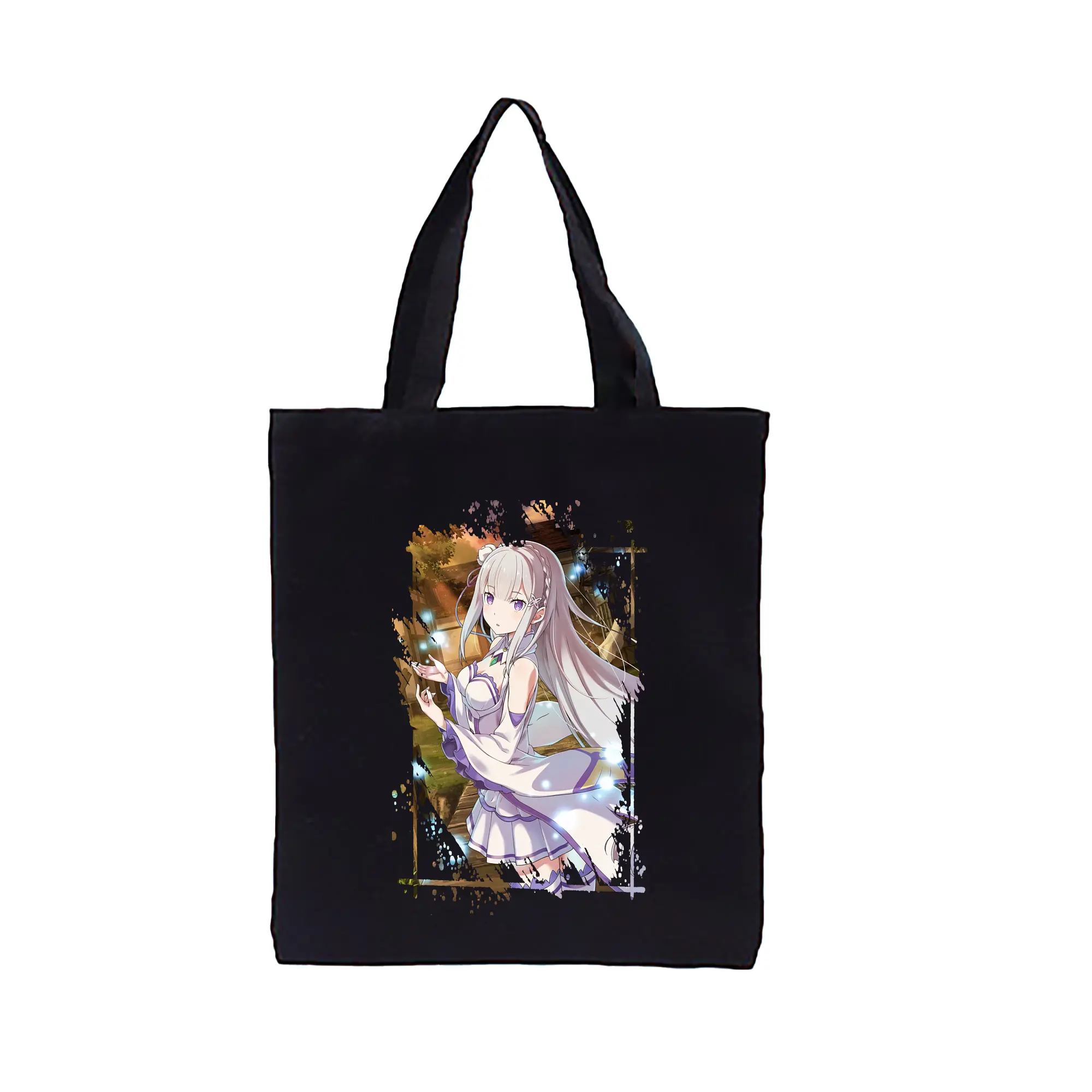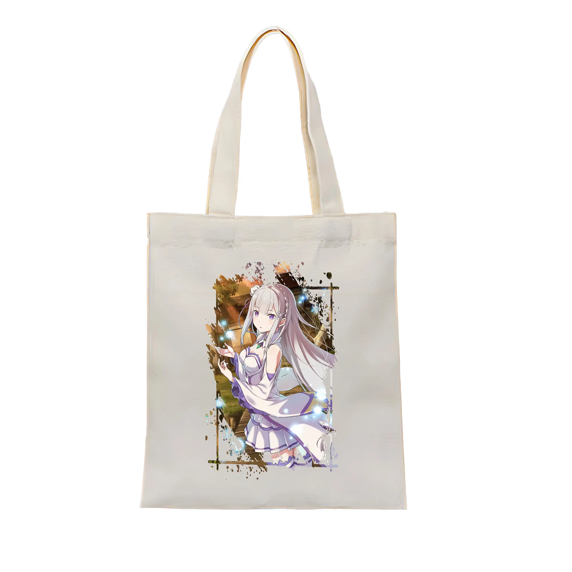 リゼロ グッズ エミリア - 縦型キャンバス手提げバッグ(トートバッグ) ・ キャンバス素材 ・ ショッピング用 ・ 軽量 丈夫 お手入れ簡単