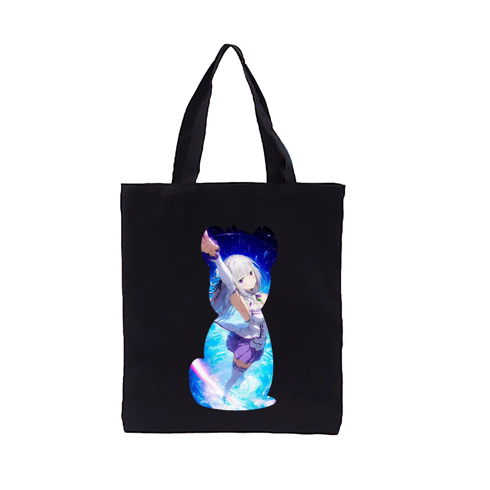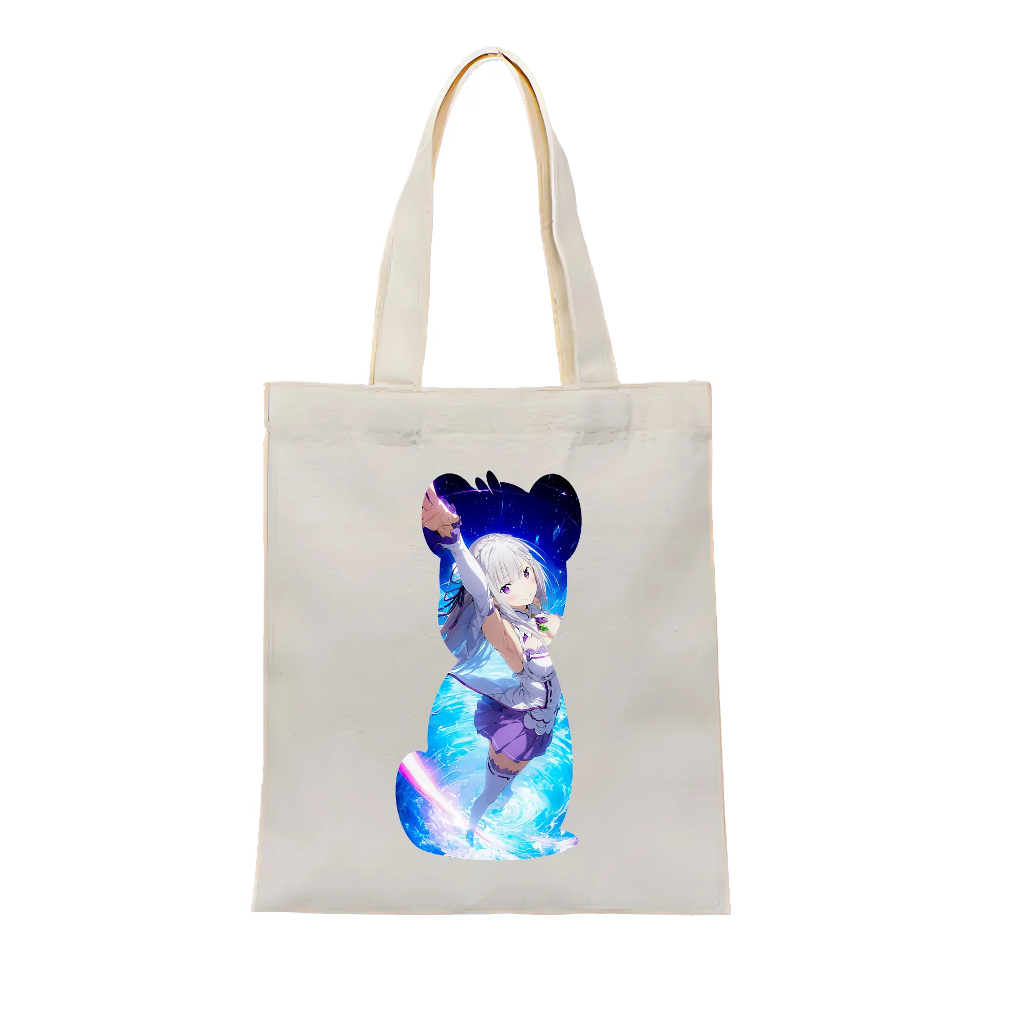 リゼロ グッズ エミリア - 縦型キャンバス手提げバッグ(トートバッグ) ・ キャンバス素材 ・ ショッピング用 ・ 軽量 丈夫 お手入れ簡単