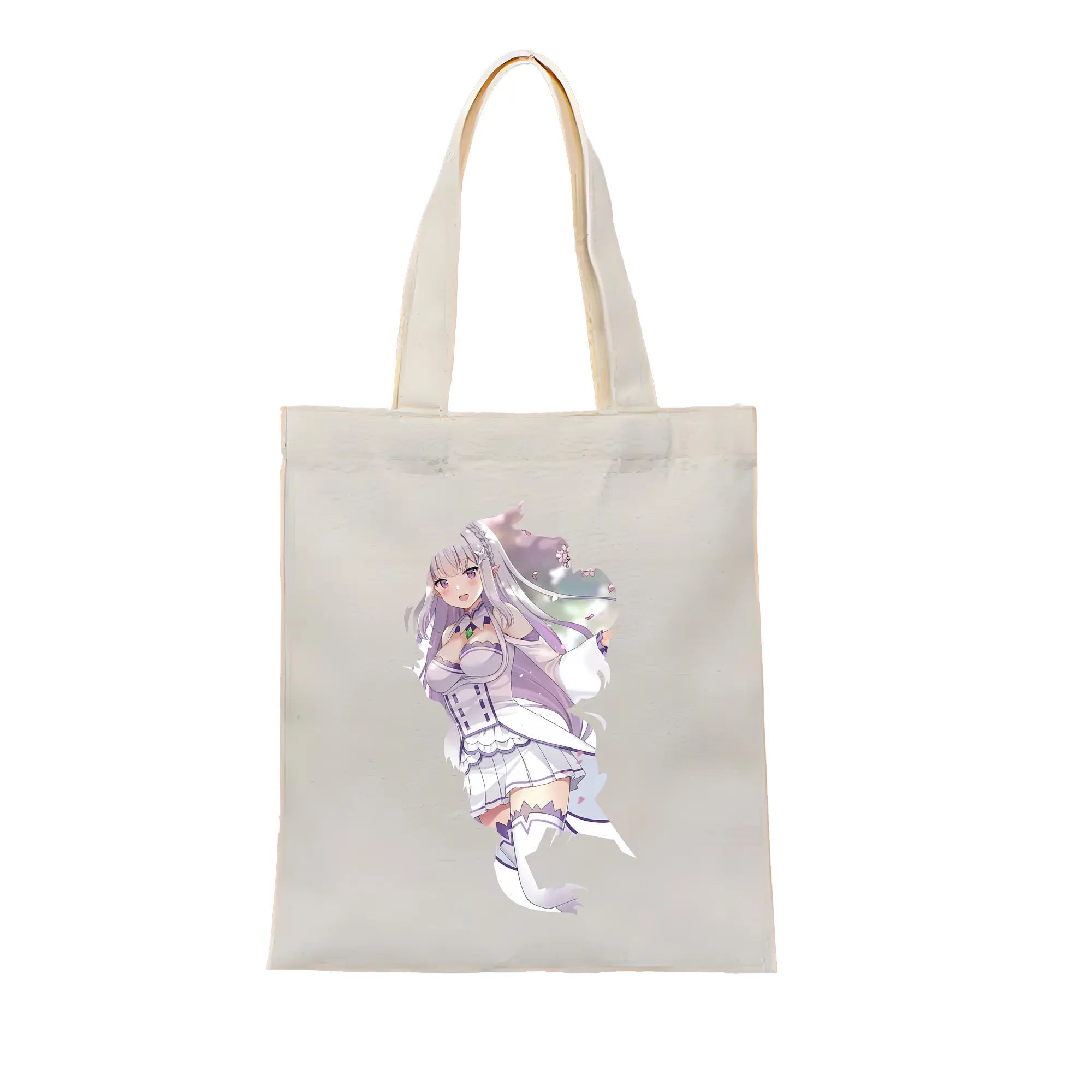 リゼロ グッズ エミリア - 縦型キャンバス手提げバッグ(トートバッグ) ・ キャンバス素材 ・ ショッピング用 ・ 軽量 丈夫 お手入れ簡単