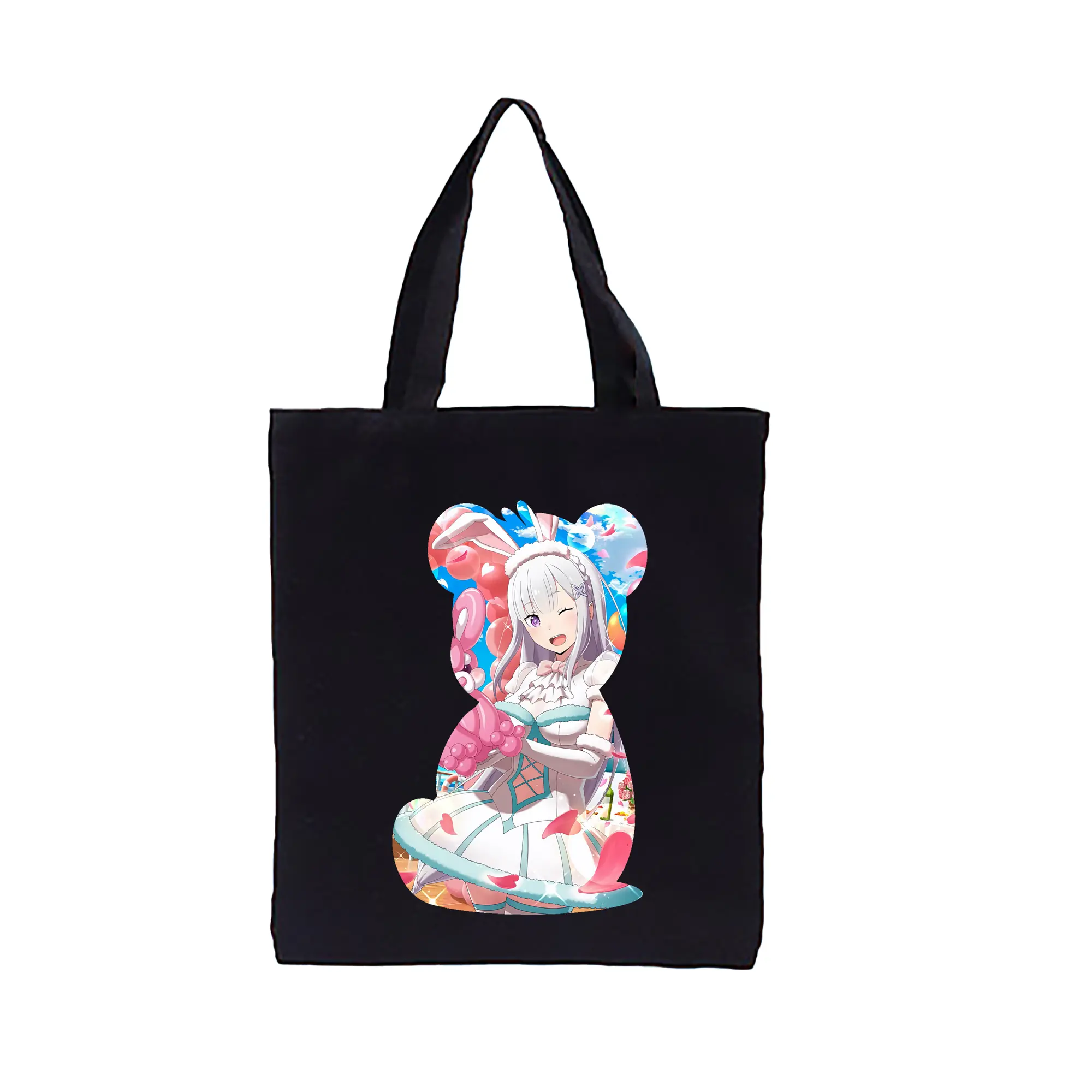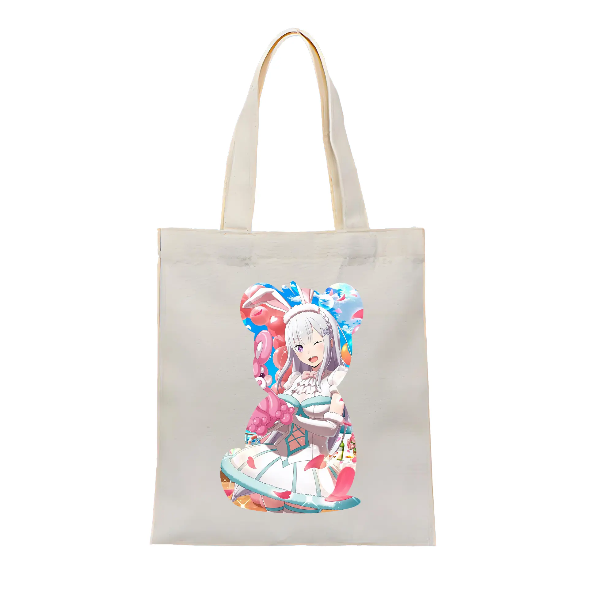 リゼロ グッズ エミリア - 縦型キャンバス手提げバッグ(トートバッグ) ・ キャンバス素材 ・ ショッピング用 ・ 軽量 丈夫 お手入れ簡単