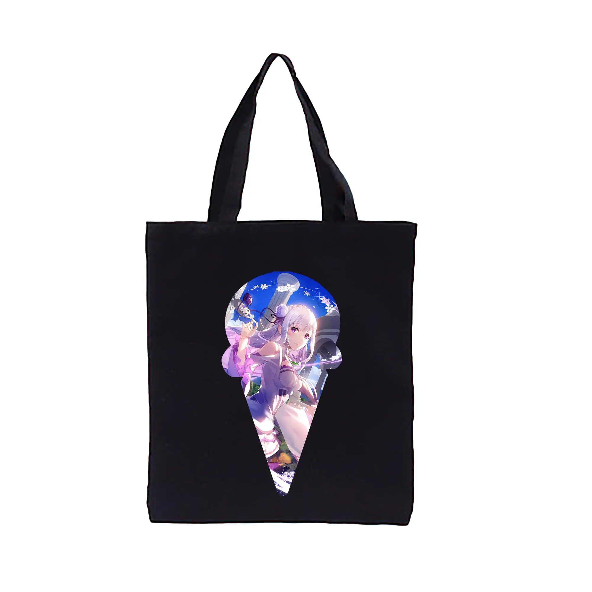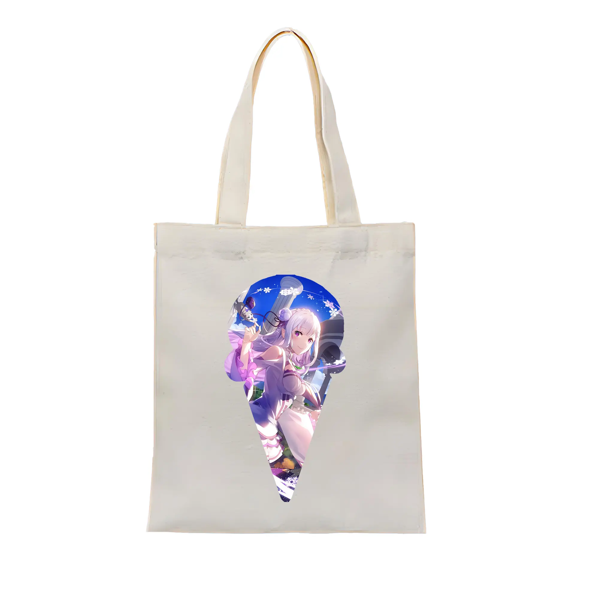 リゼロ グッズ エミリア - 縦型キャンバス手提げバッグ(トートバッグ) ・ キャンバス素材 ・ ショッピング用 ・ 軽量 丈夫 お手入れ簡単