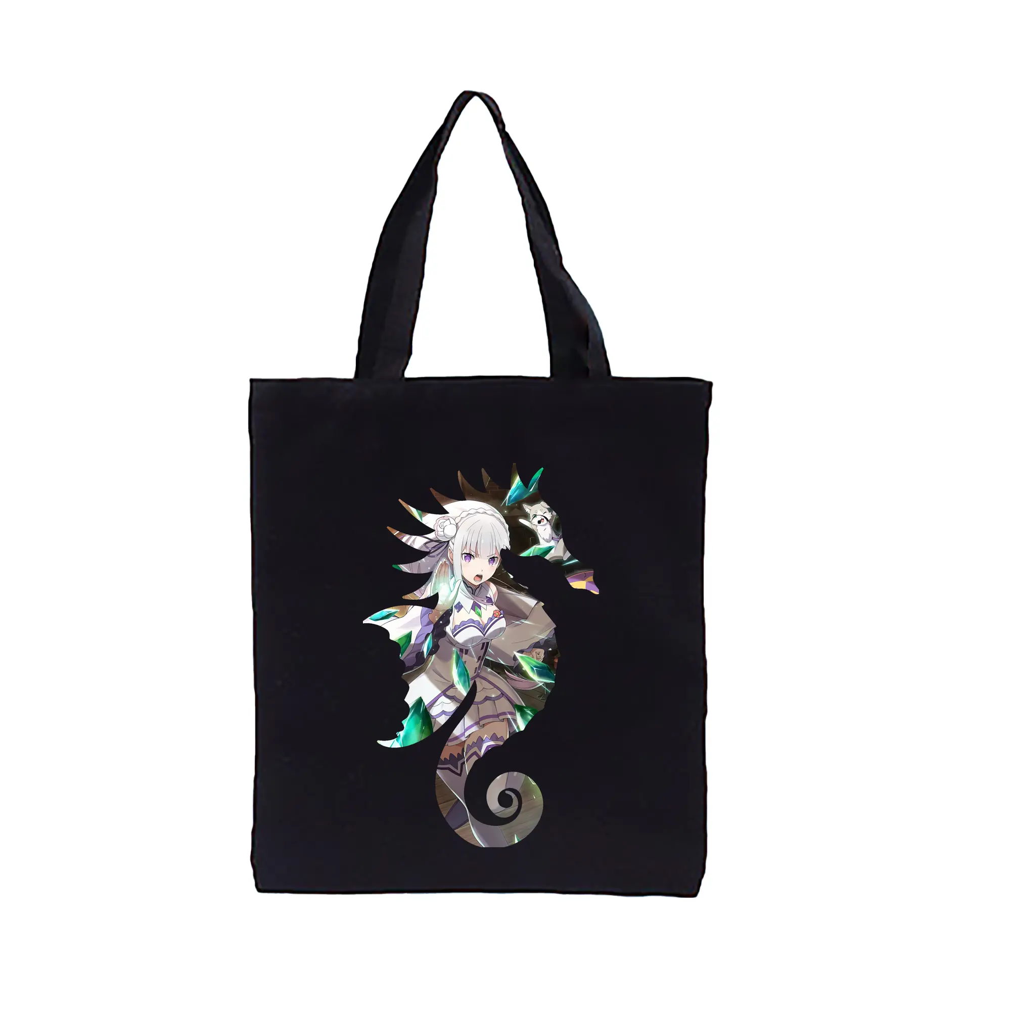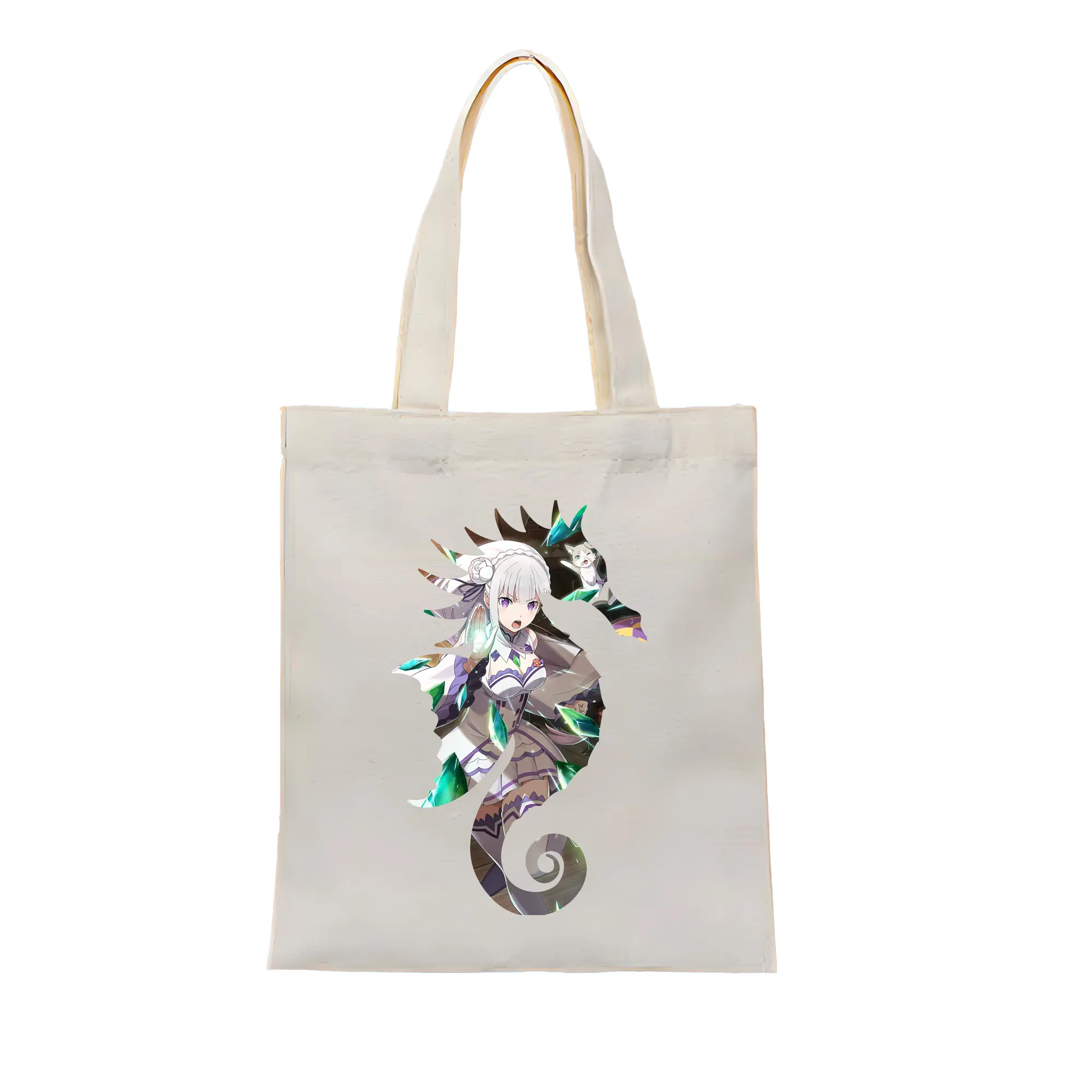リゼロ グッズ エミリア - 縦型キャンバス手提げバッグ(トートバッグ) ・ キャンバス素材 ・ ショッピング用 ・ 軽量 丈夫 お手入れ簡単