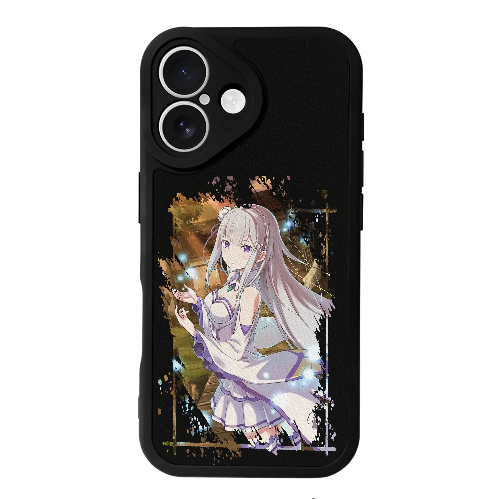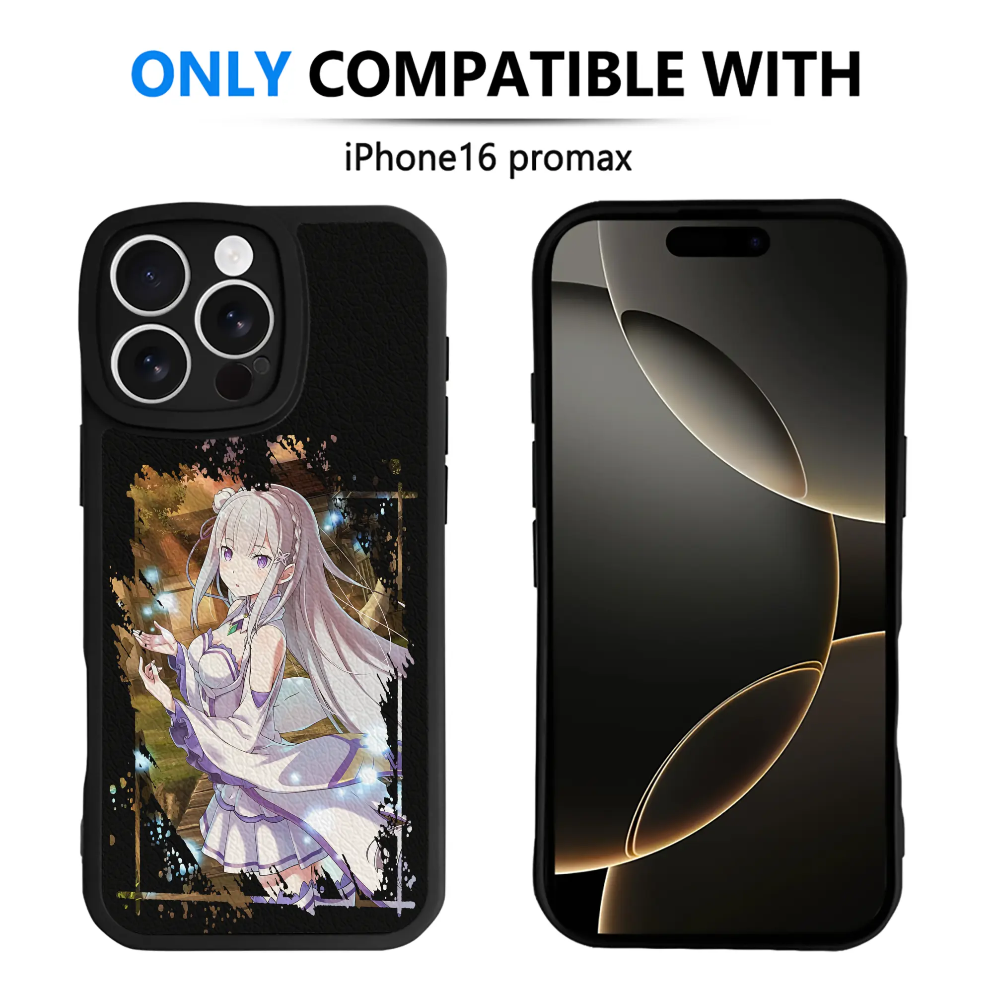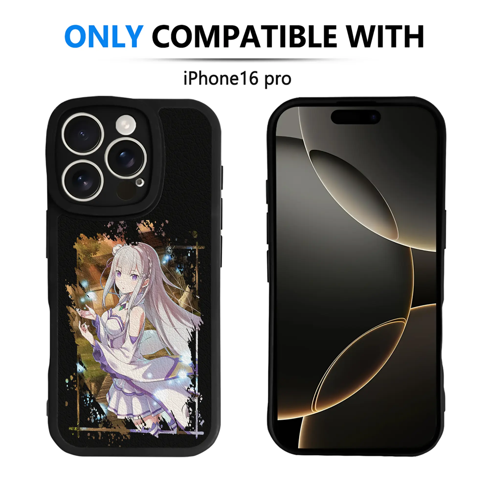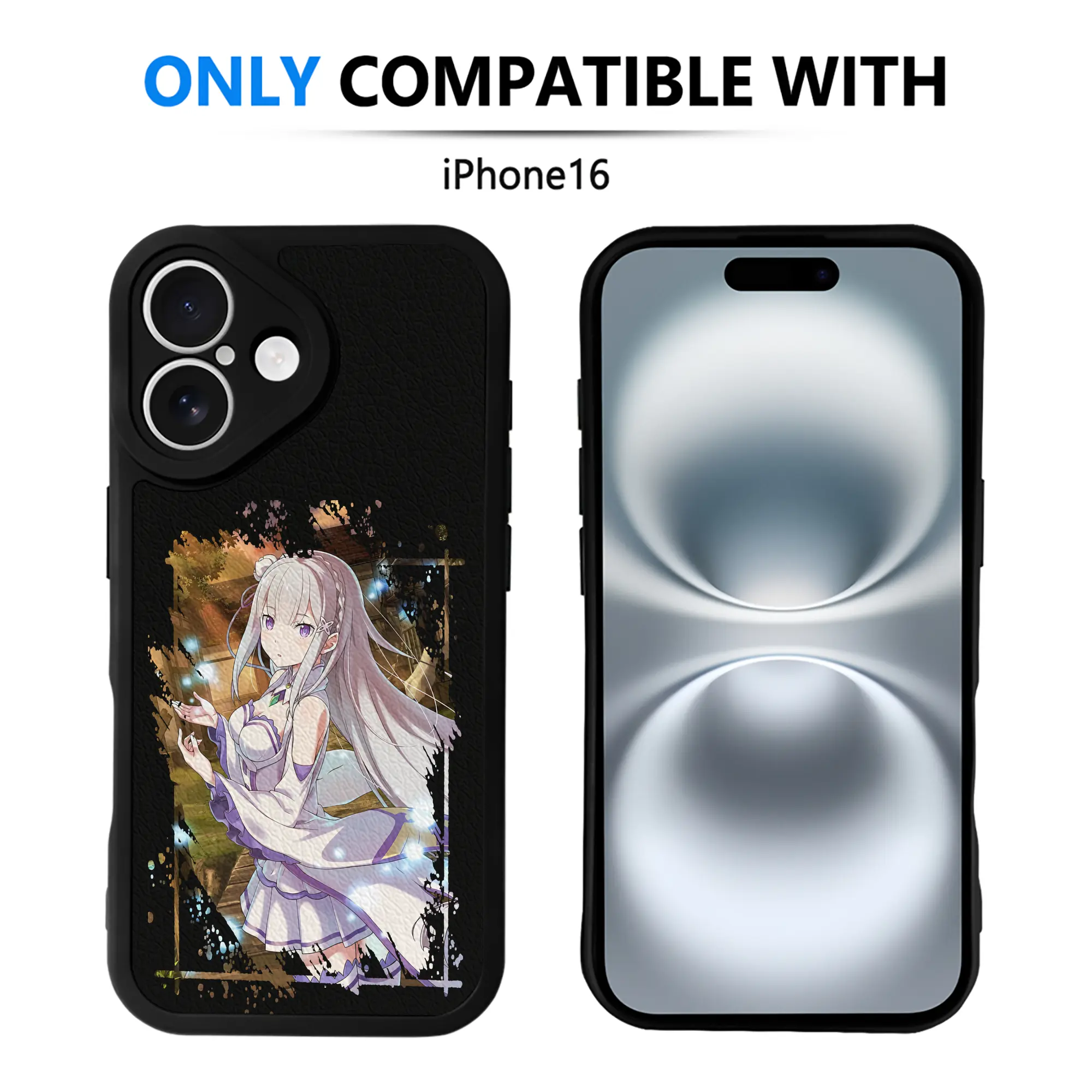 リゼロ グッズ エミリア - IPhone 16シリーズ対応 ・ シリコンスマホケース ・ レザー調 ・ 高精度フィット ・ 耐衝撃 ・ ワイヤレス充電対応 ・ 精密カット