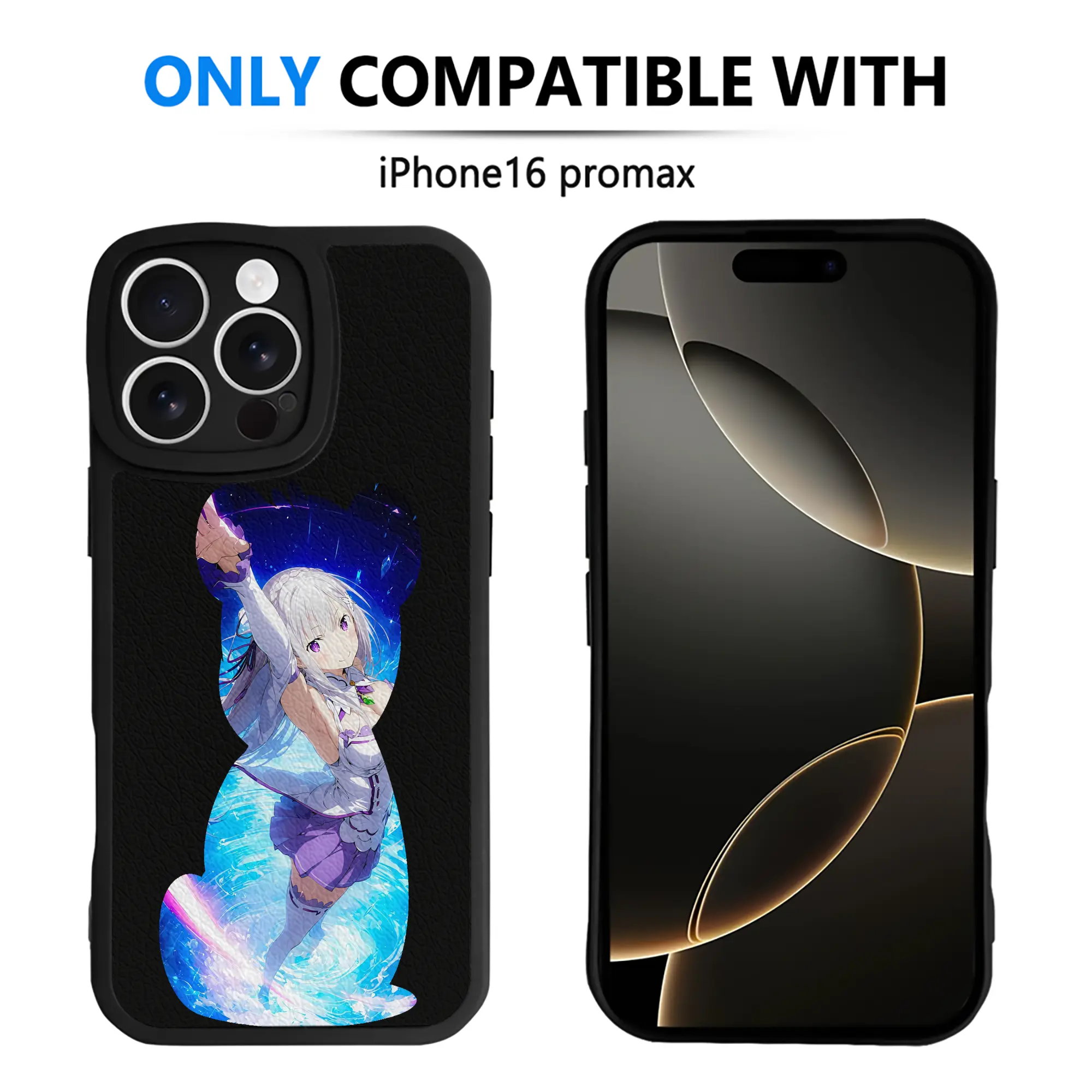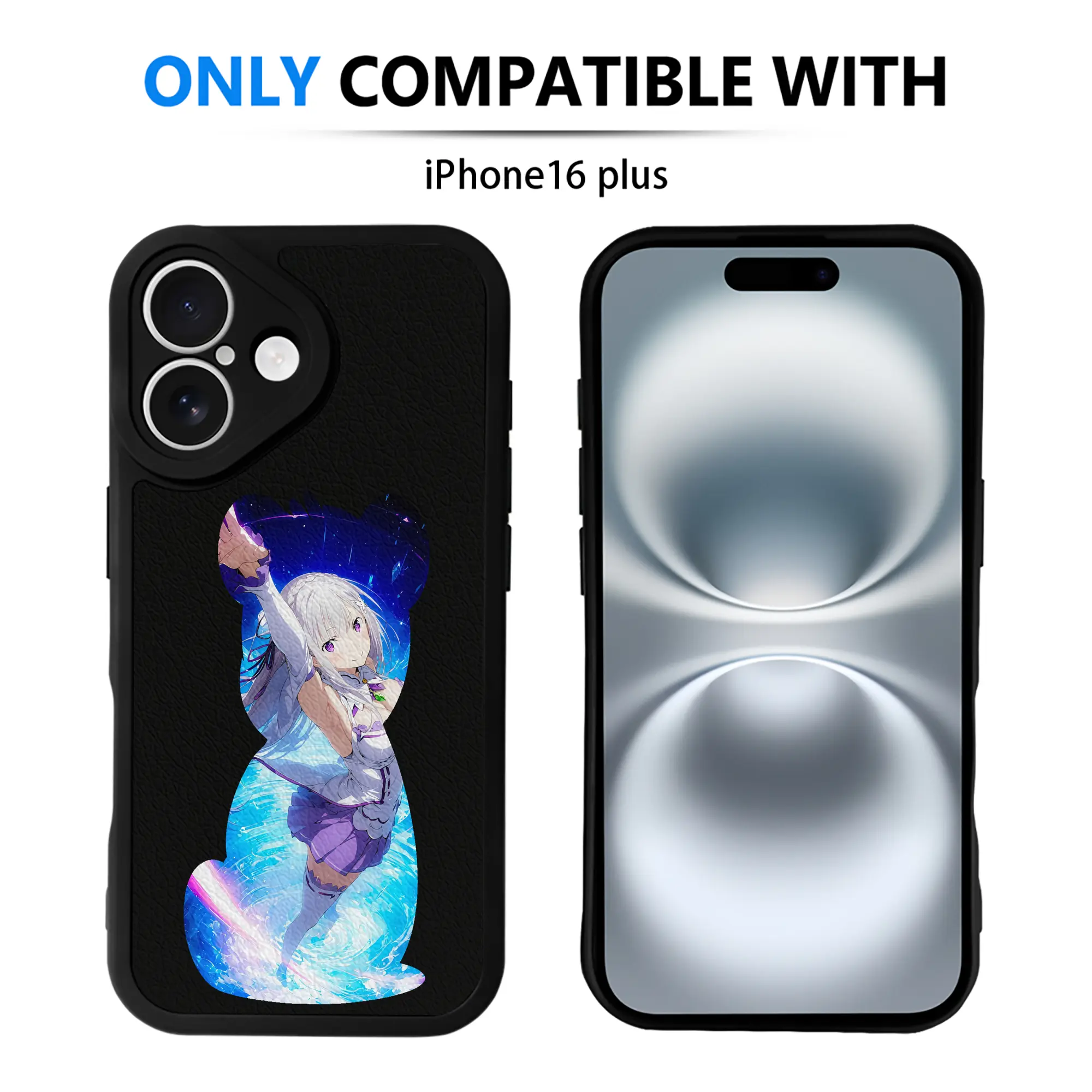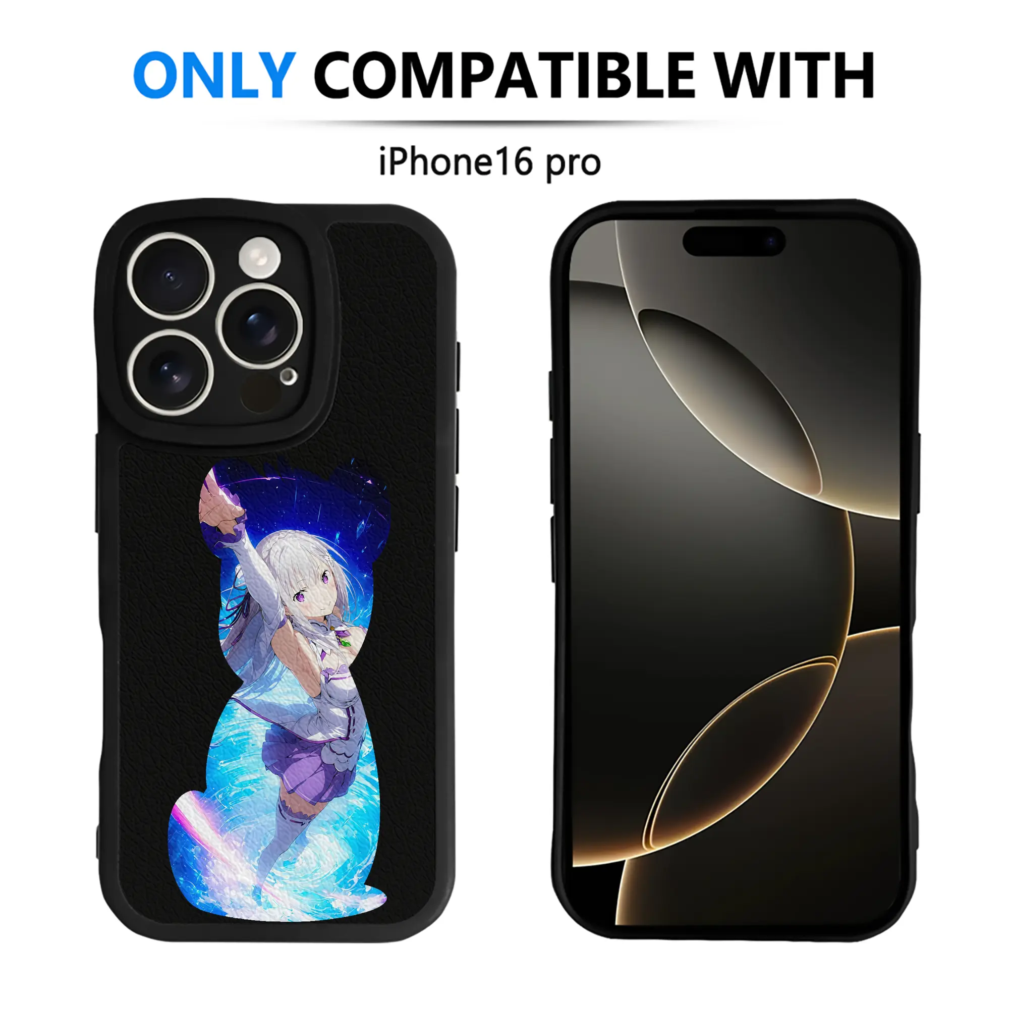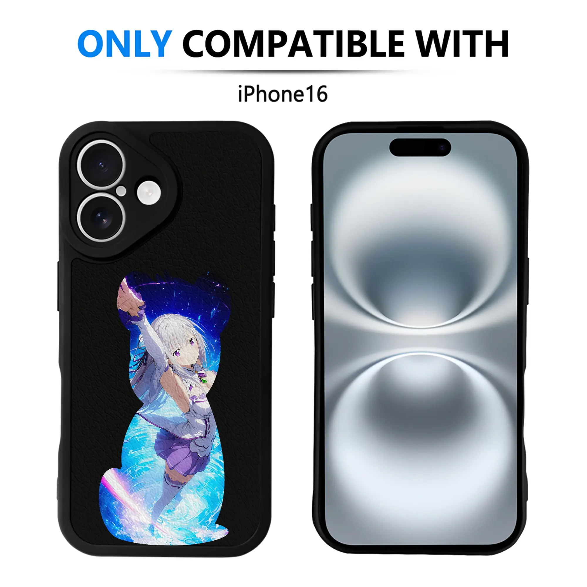 リゼロ グッズ エミリア - IPhone 16シリーズ対応 ・ シリコンスマホケース ・ レザー調 ・ 高精度フィット ・ 耐衝撃 ・ ワイヤレス充電対応 ・ 精密カット