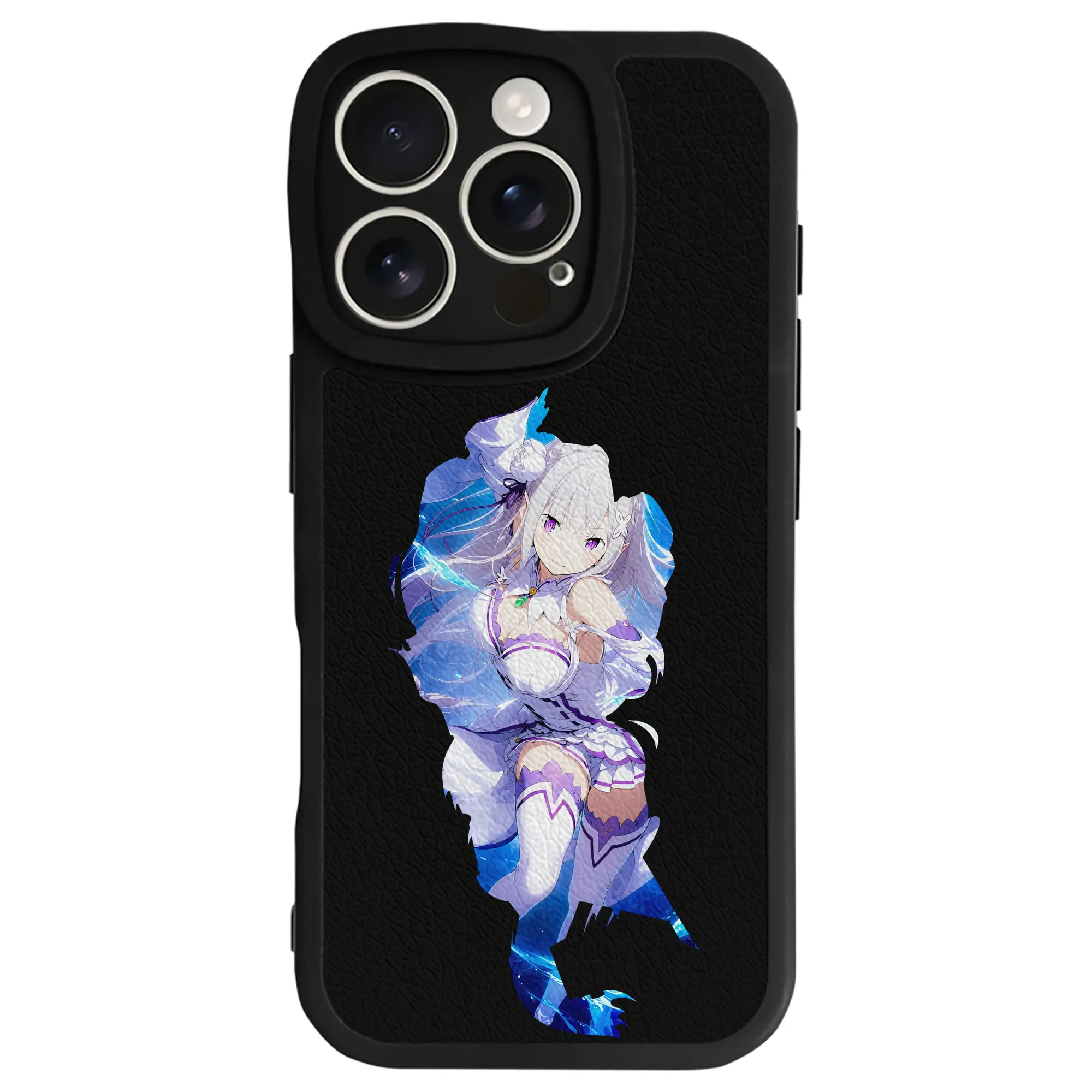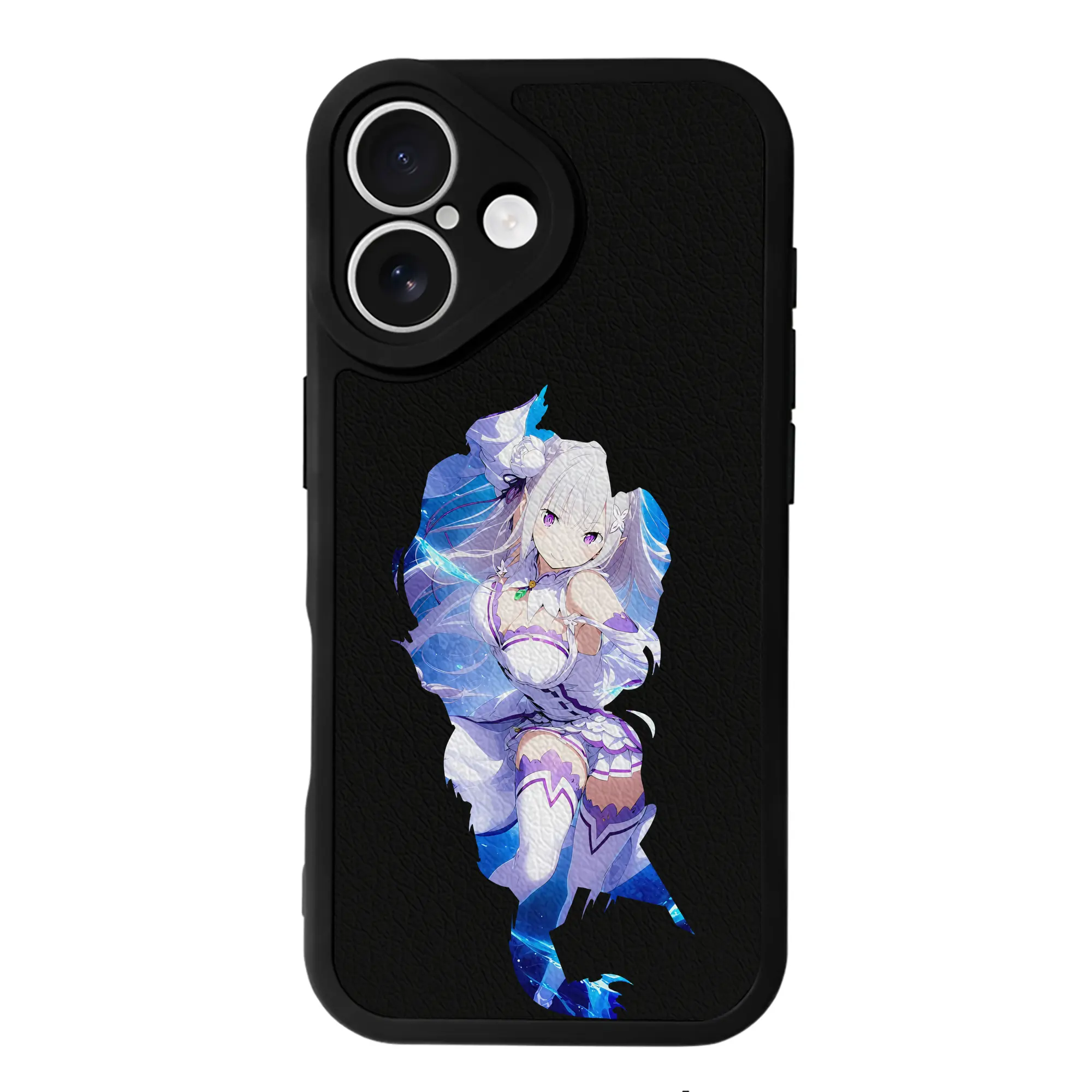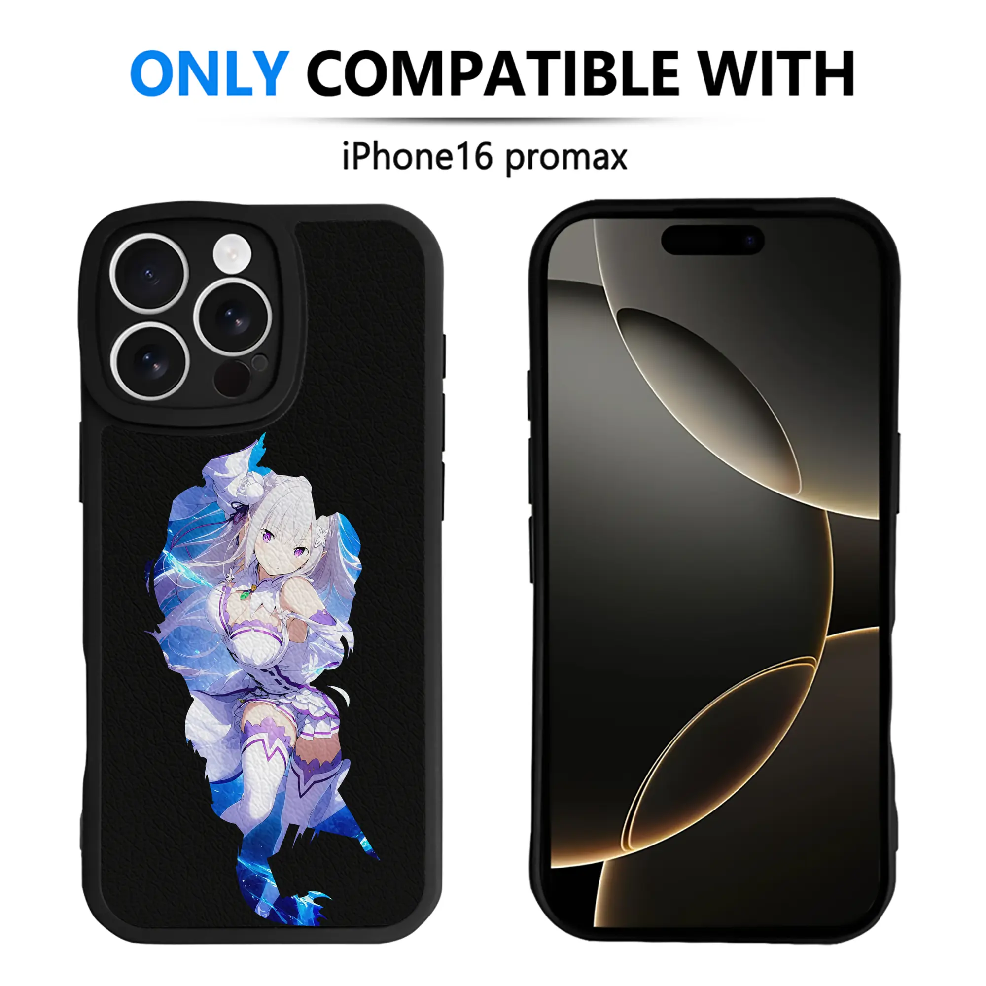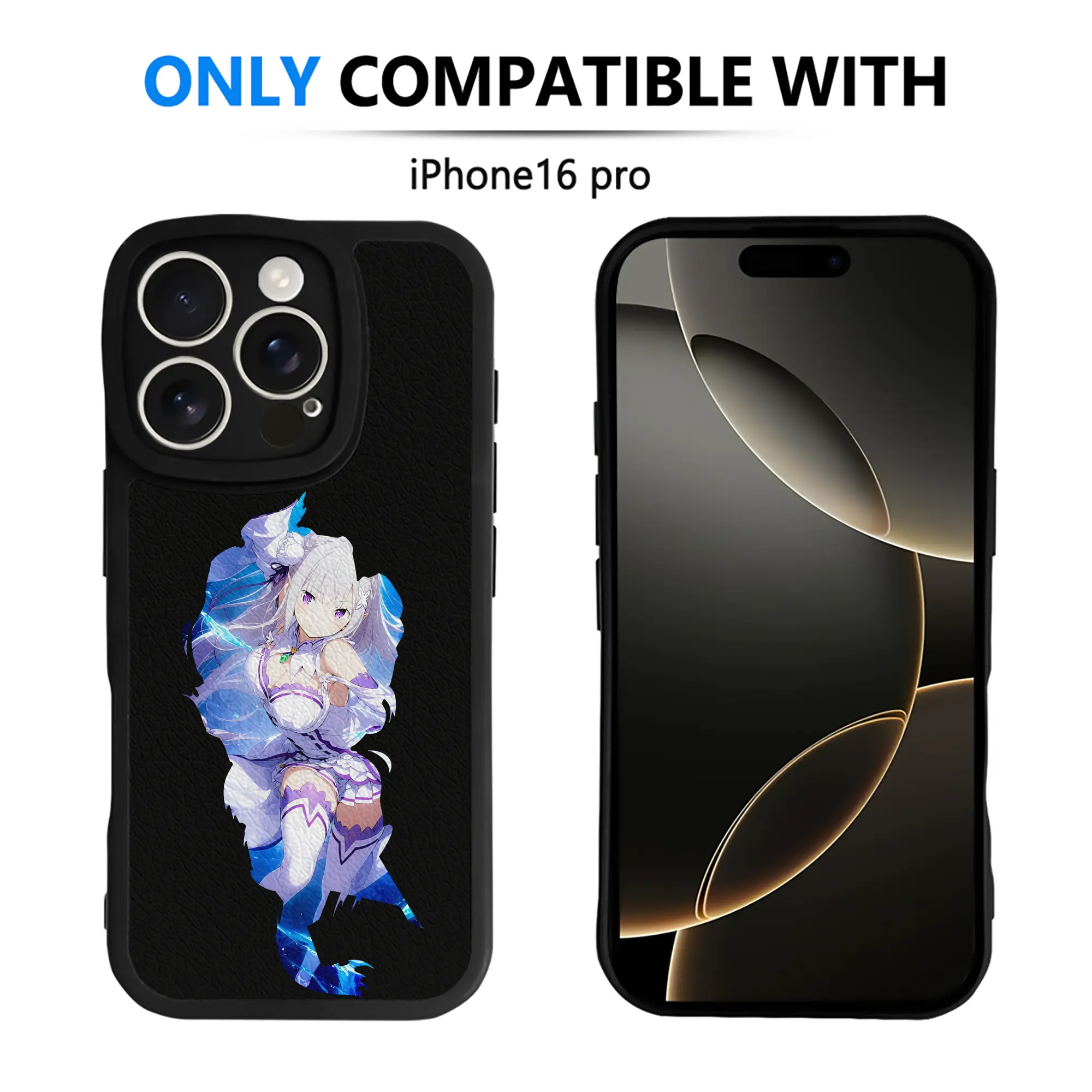 リゼロ グッズ エミリア - IPhone 16シリーズ対応 ・ シリコンスマホケース ・ レザー調 ・ 高精度フィット ・ 耐衝撃 ・ ワイヤレス充電対応 ・ 精密カット