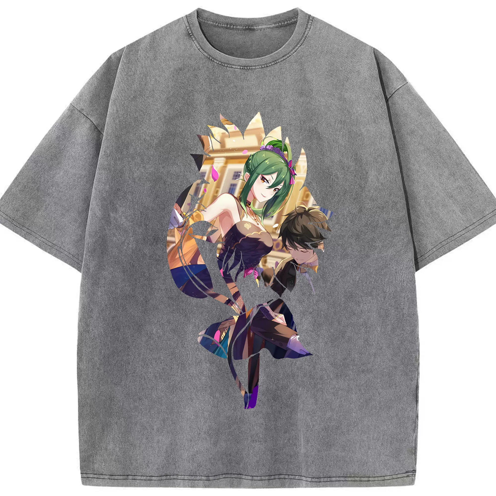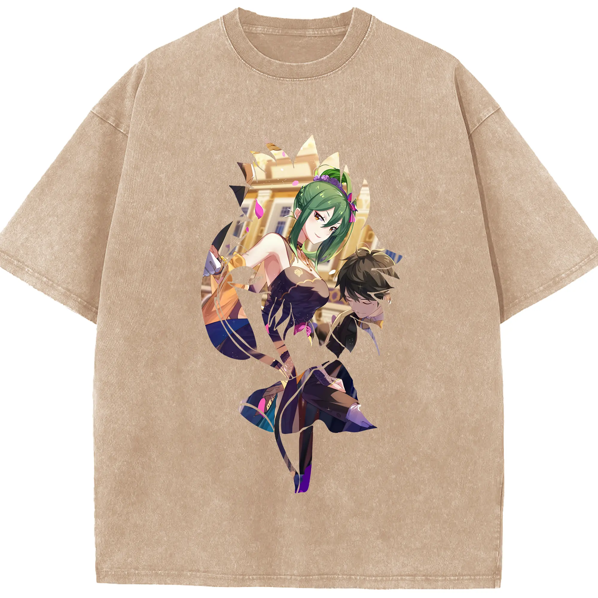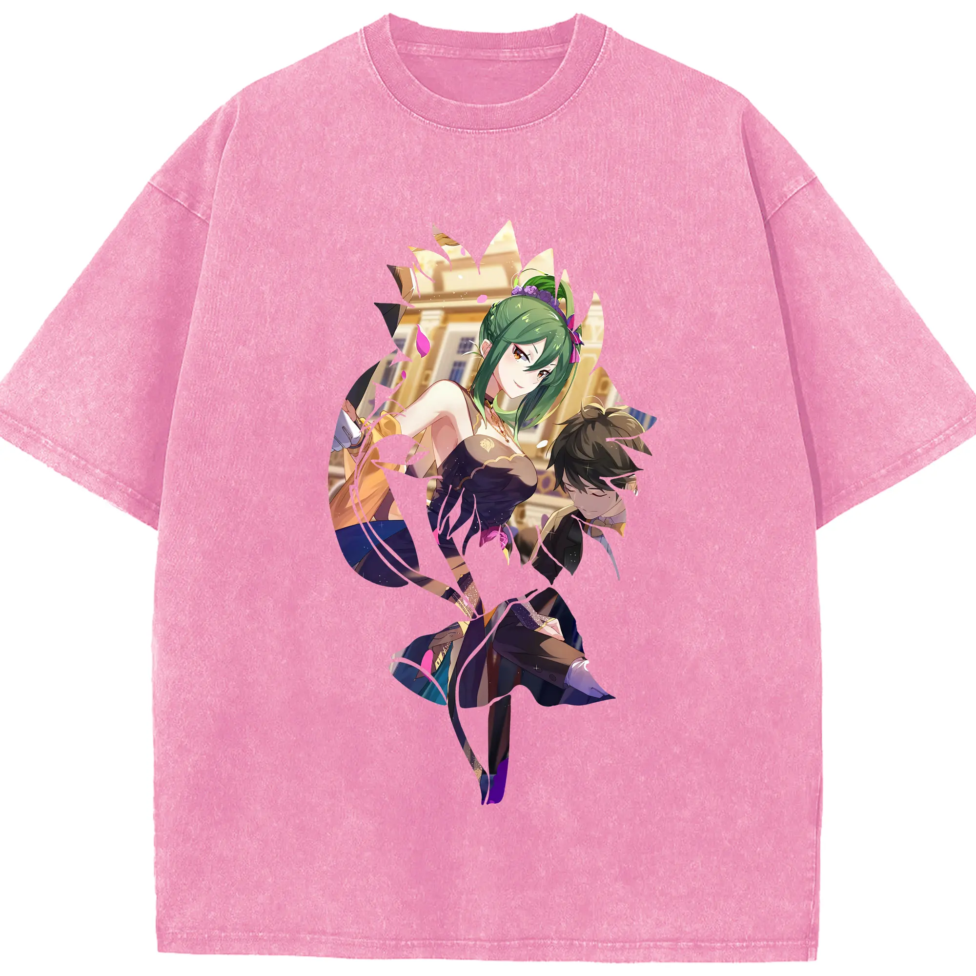リゼロ グッズ シオン - 綿100% ヴィンテージ風 半袖Tシャツ ・ 背面プリント ・ 柔らか肌触り ・ 通気性 快適 ・ スポーツ カジュアル 外出用