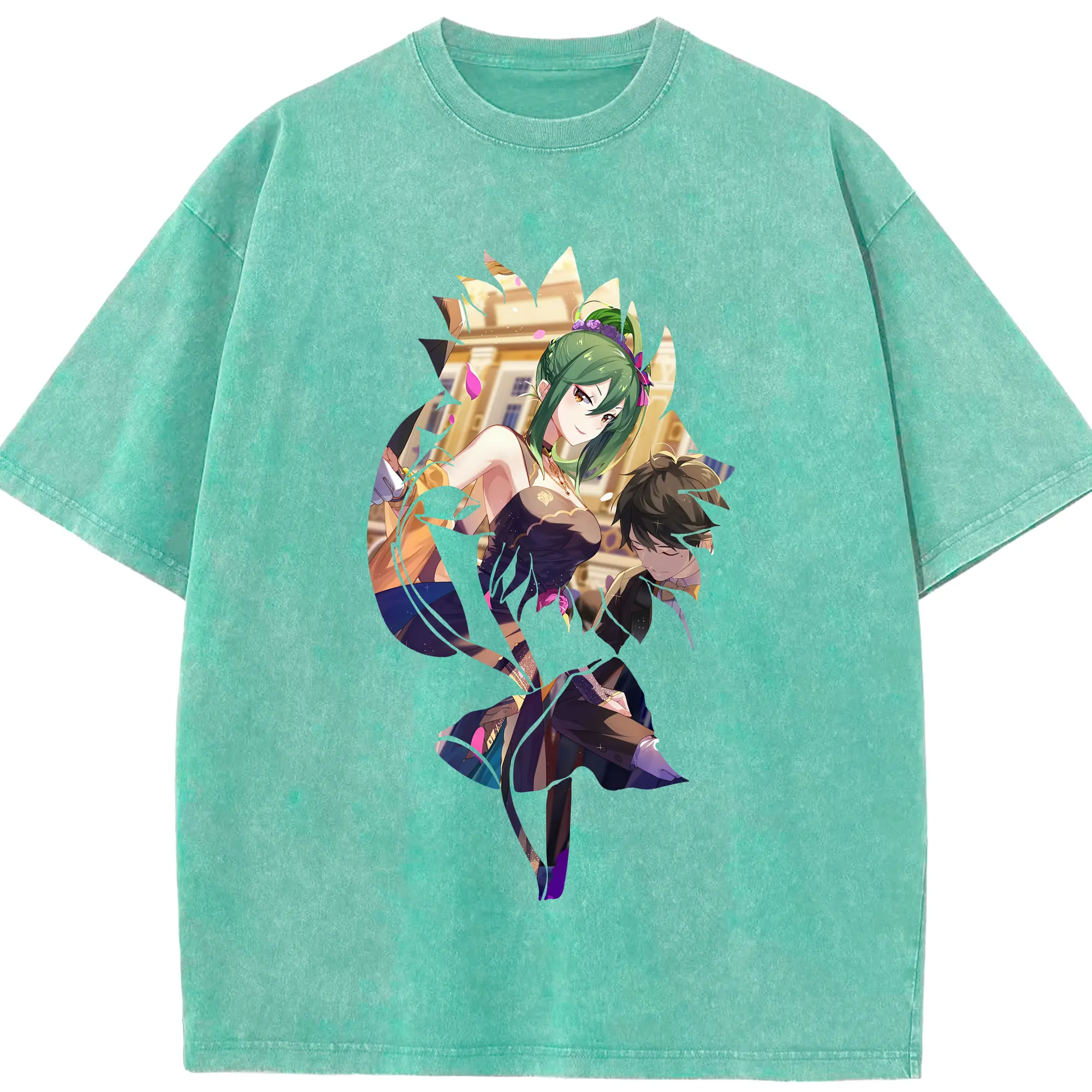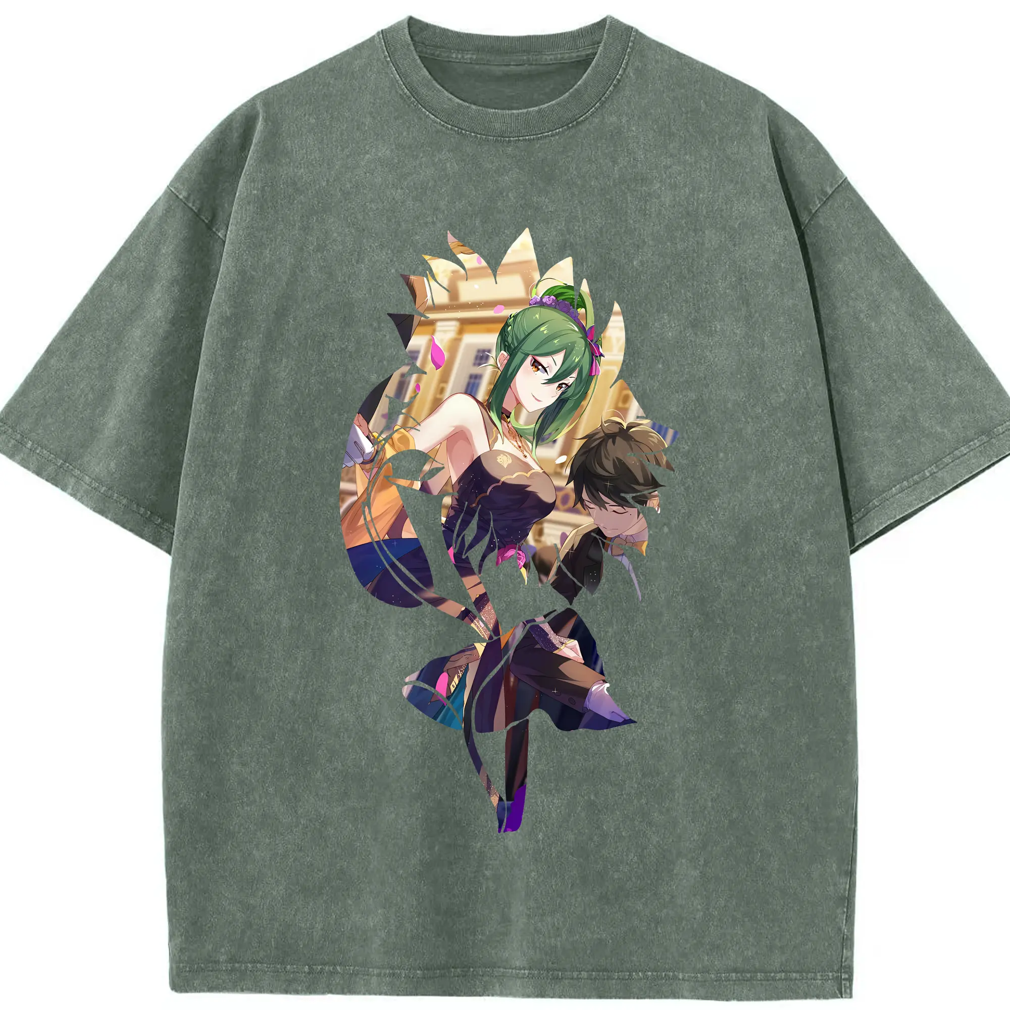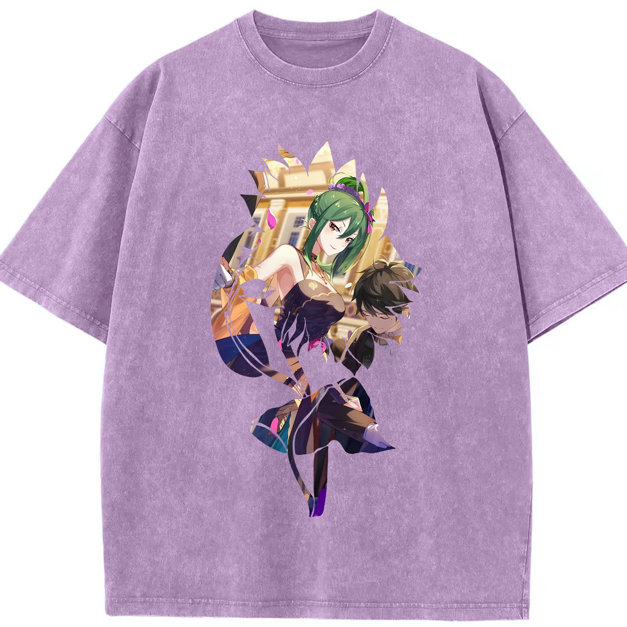 リゼロ グッズ シオン - 綿100% ヴィンテージ風 半袖Tシャツ ・ 背面プリント ・ 柔らか肌触り ・ 通気性 快適 ・ スポーツ カジュアル 外出用