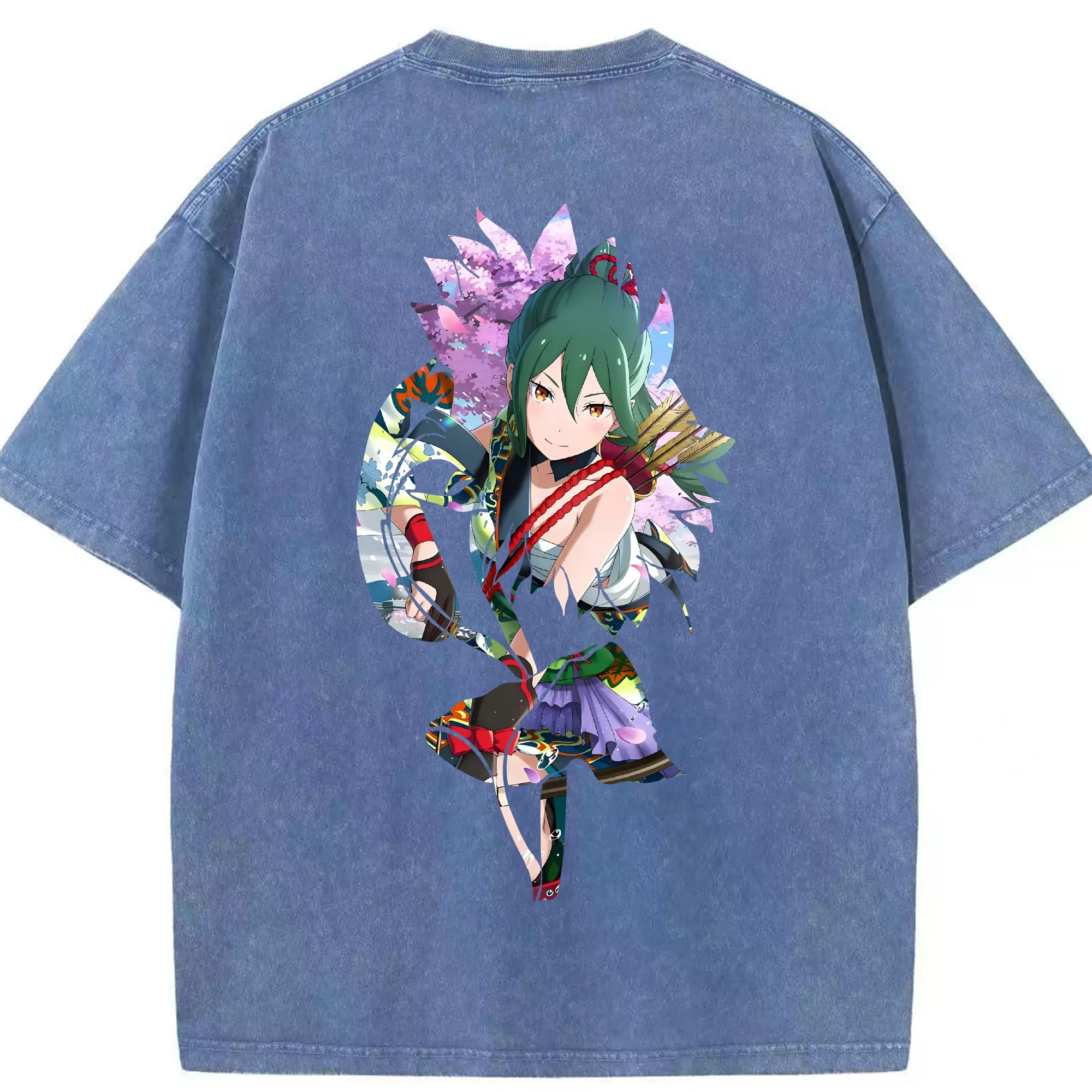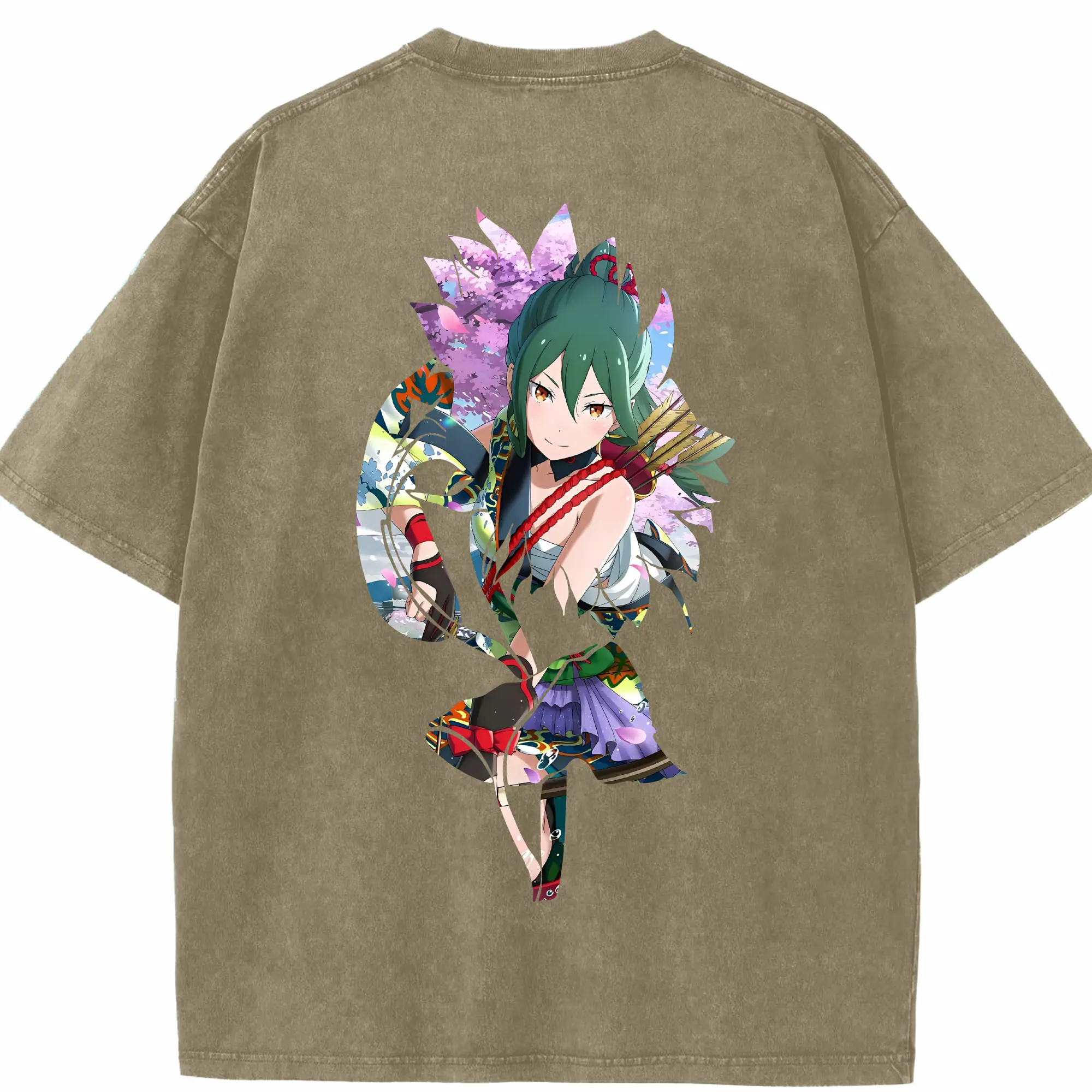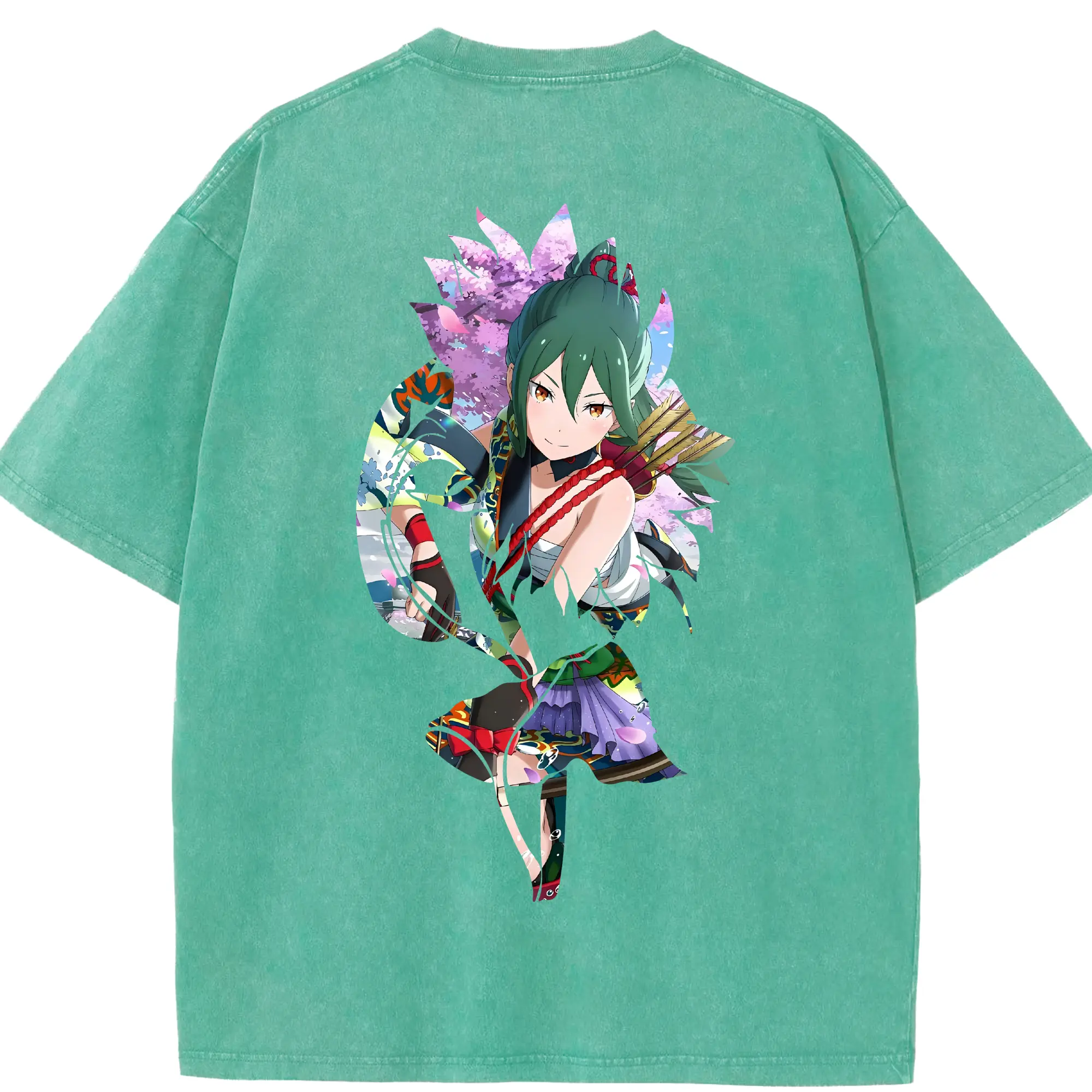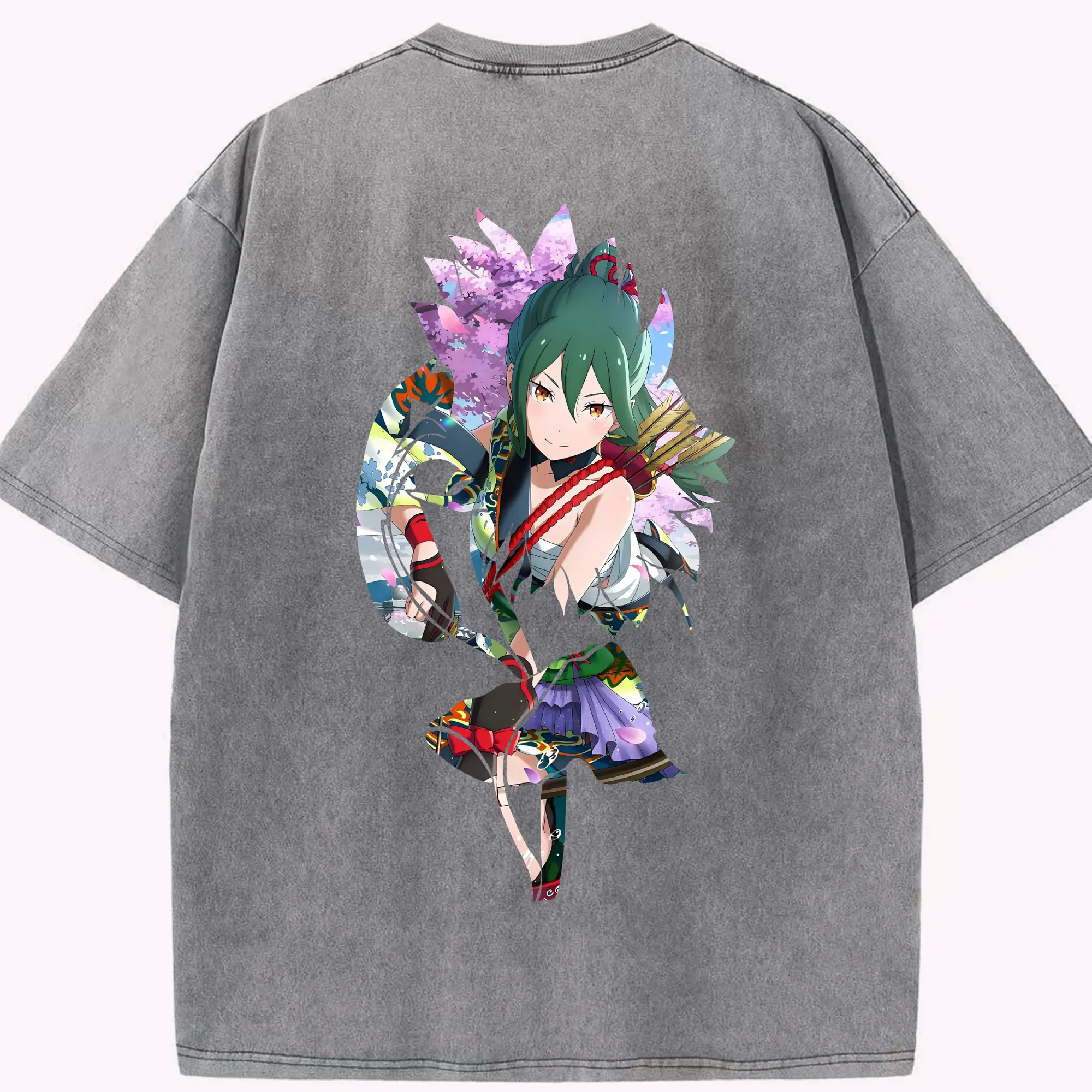 崩壊:スターレイル グッズ ブローニャ - 綿100% ヴィンテージ風 半袖Tシャツ ・ 背面プリント ・ 柔らか肌触り ・ 通気性 快適 ・ スポーツ カジュアル 外出用