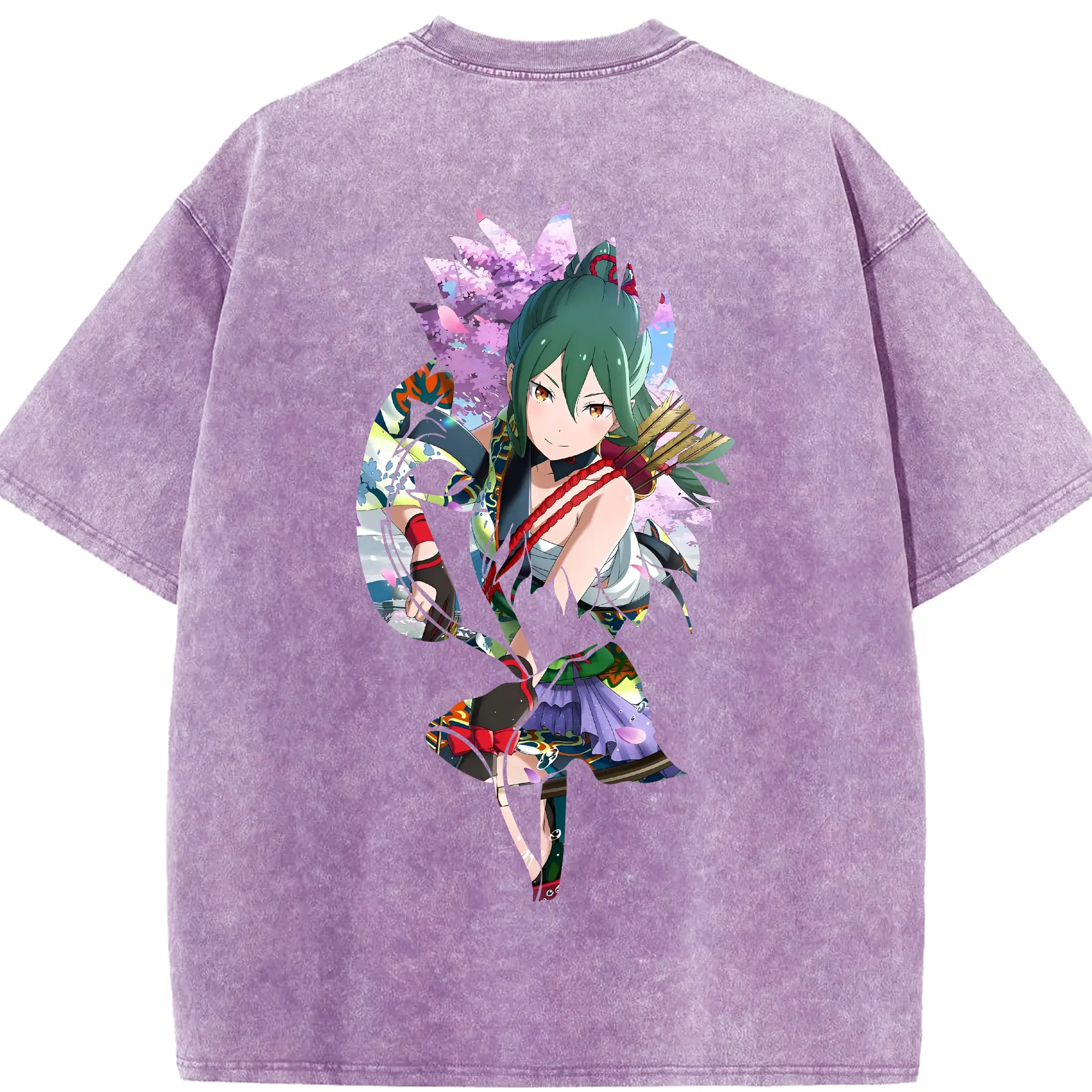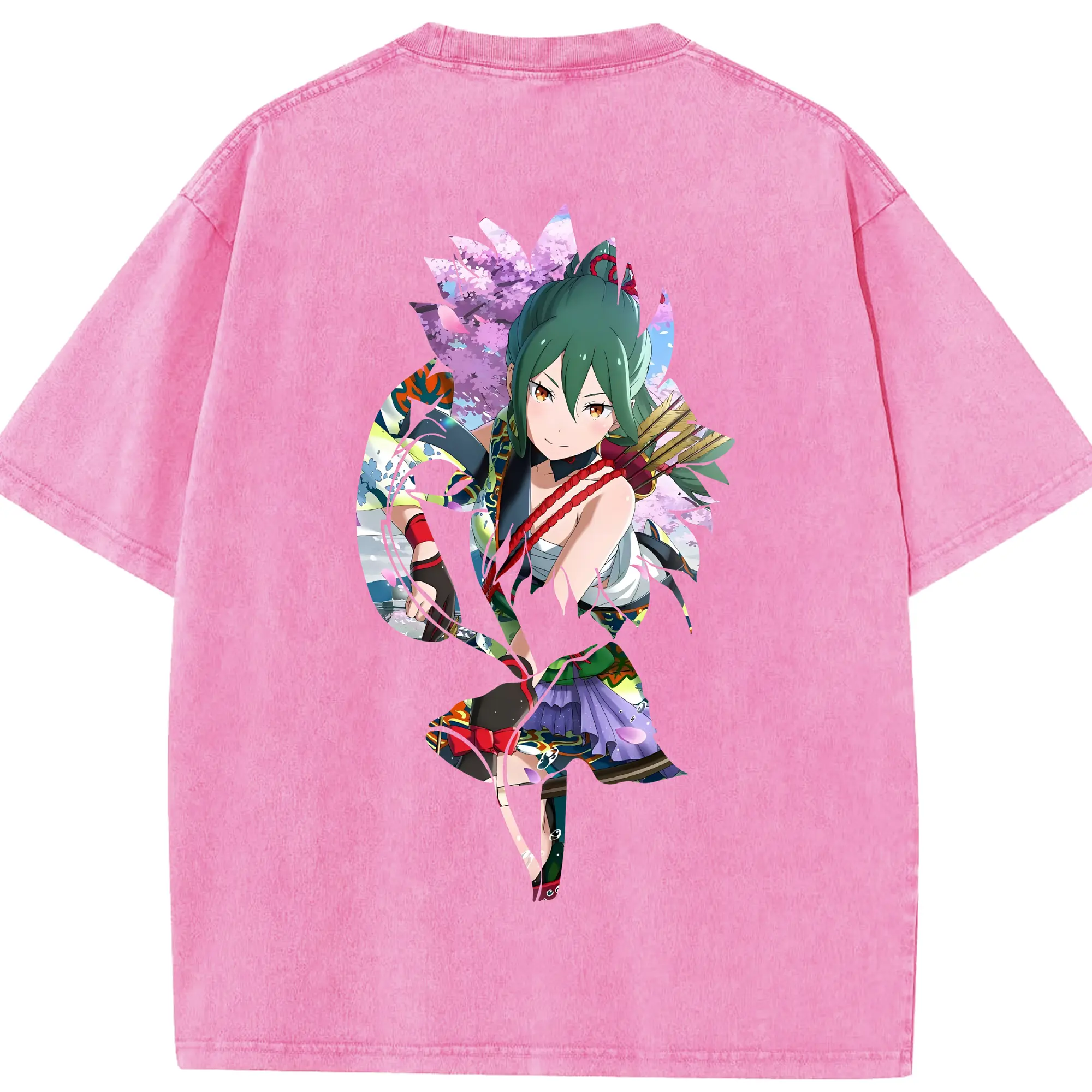 鬼滅の刃 グッズ,胡蝶 しのぶ - 綿100% ヴィンテージ風 半袖Tシャツ ・ 背面プリント ・ 柔らか肌触り ・ 通気性 快適 ・ スポーツ カジュアル 外出用