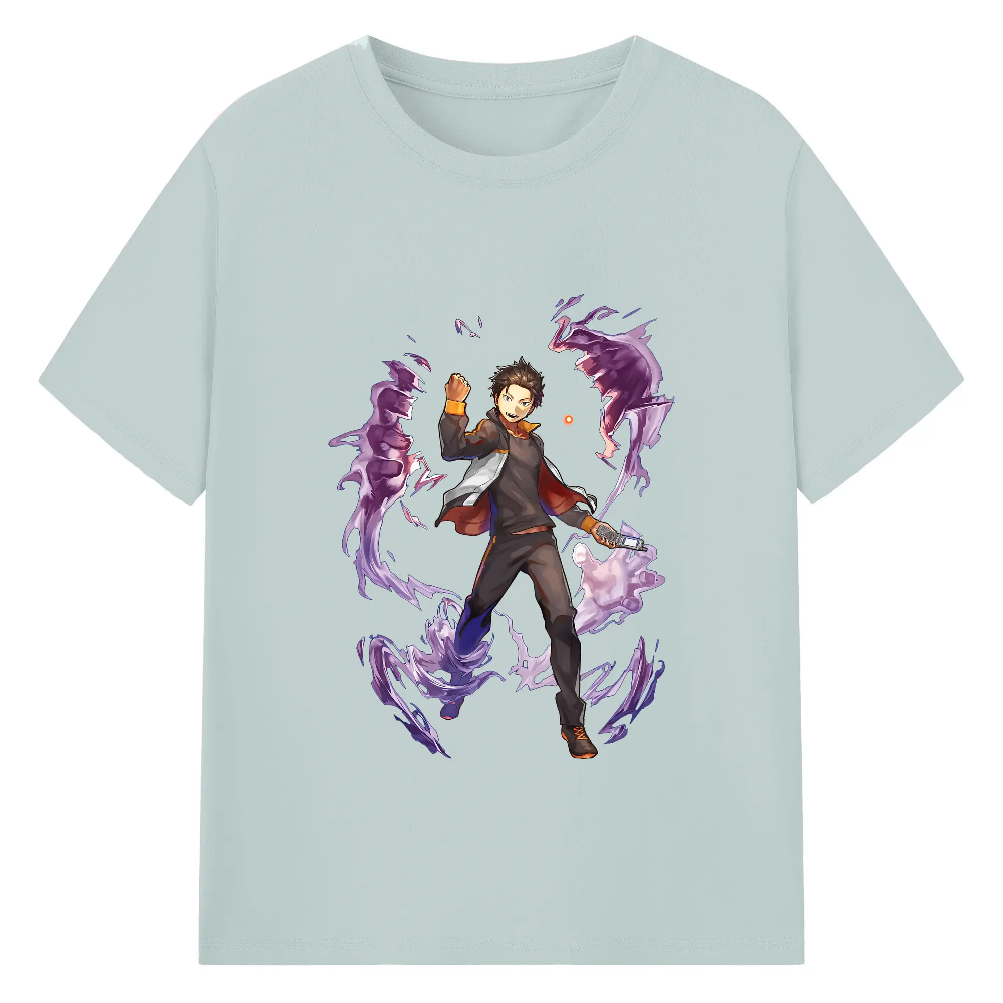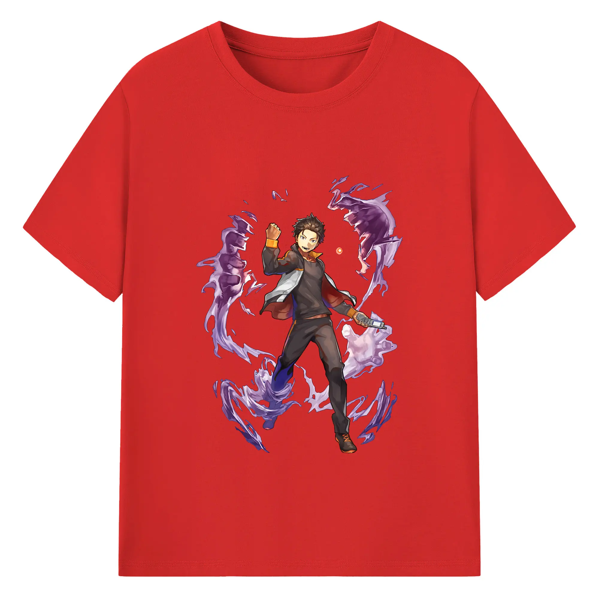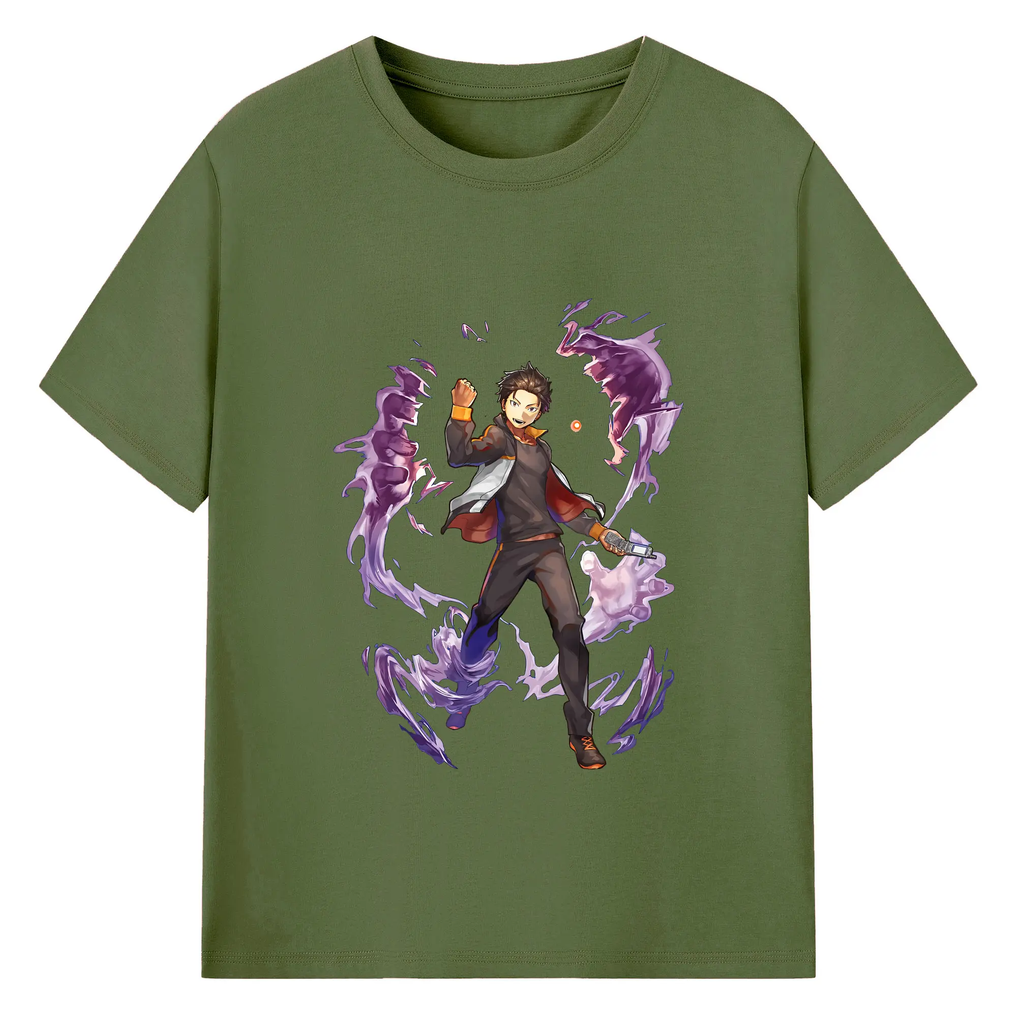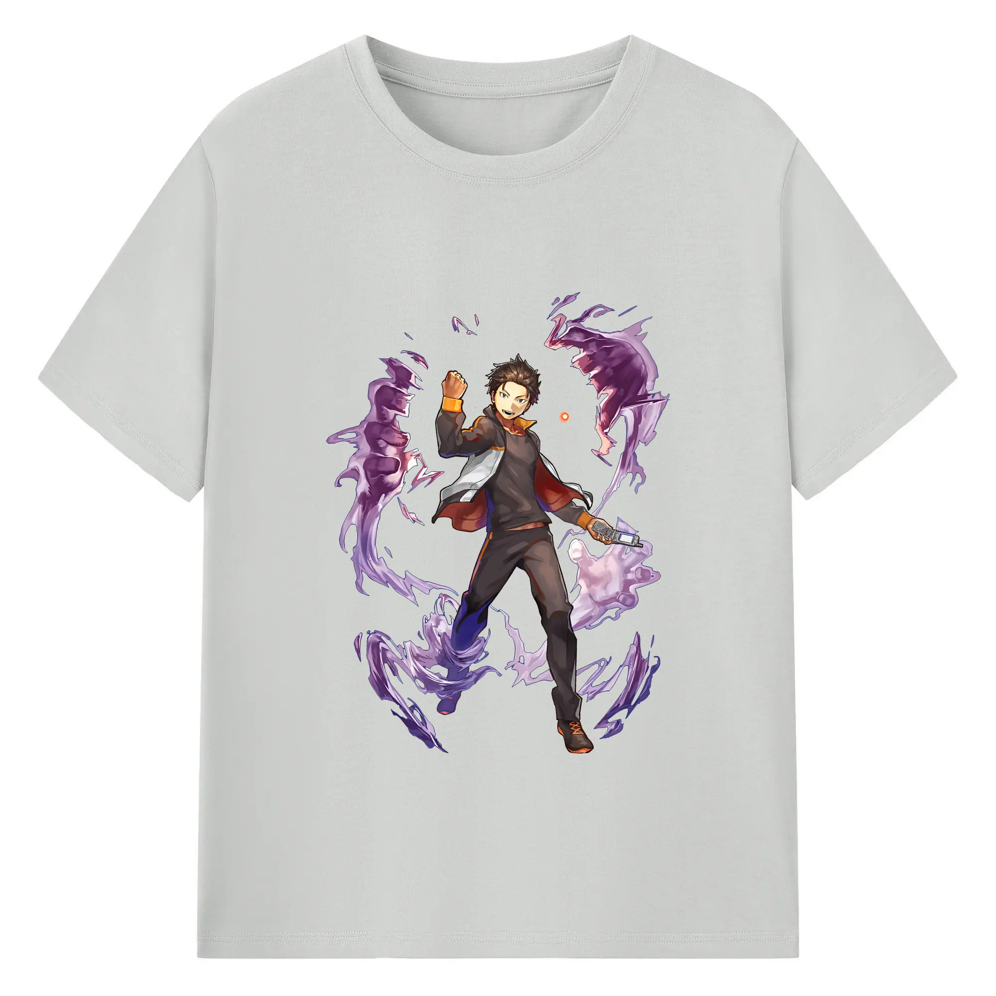 リゼロ グッズ ナツキ・スバル - 綿100% 半袖Tシャツ ・ バックプリント ・ 快適 通気性 ・ 日常使い 散歩 スポーツ用