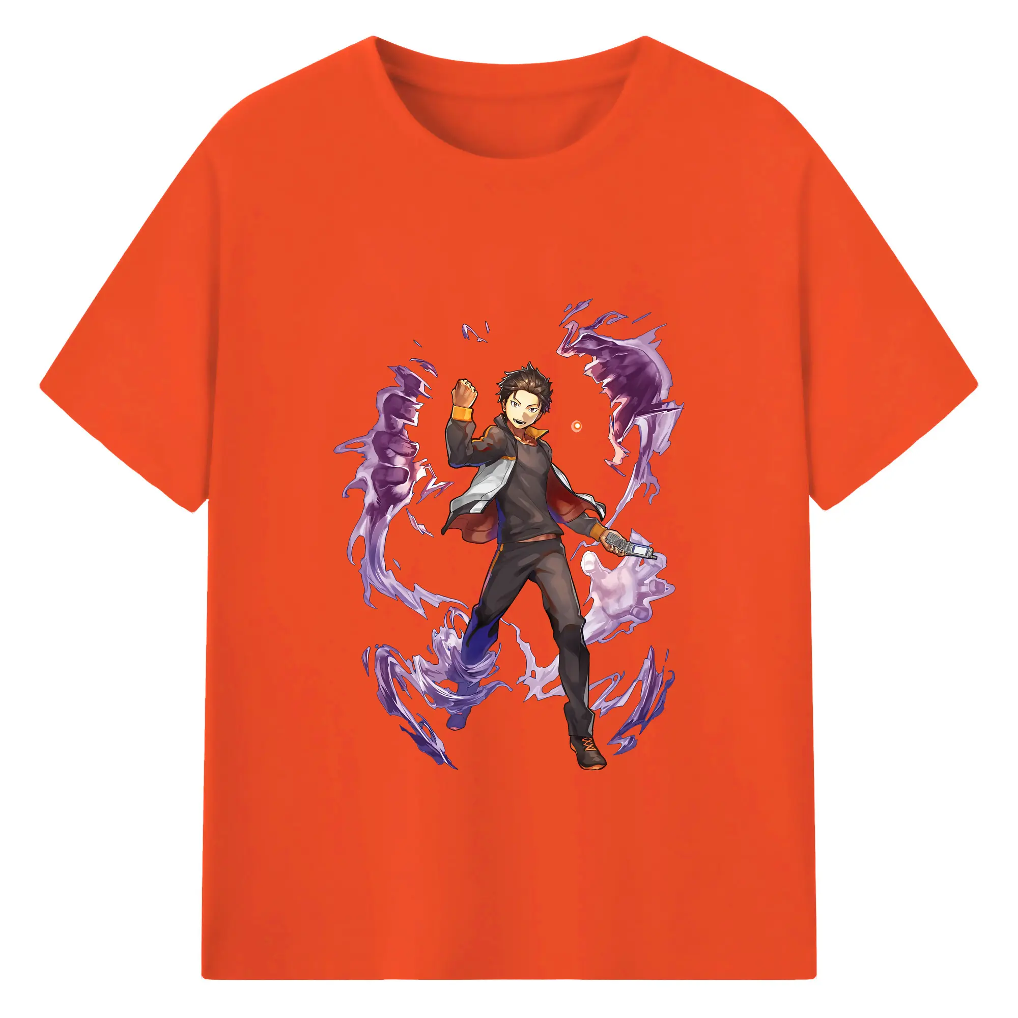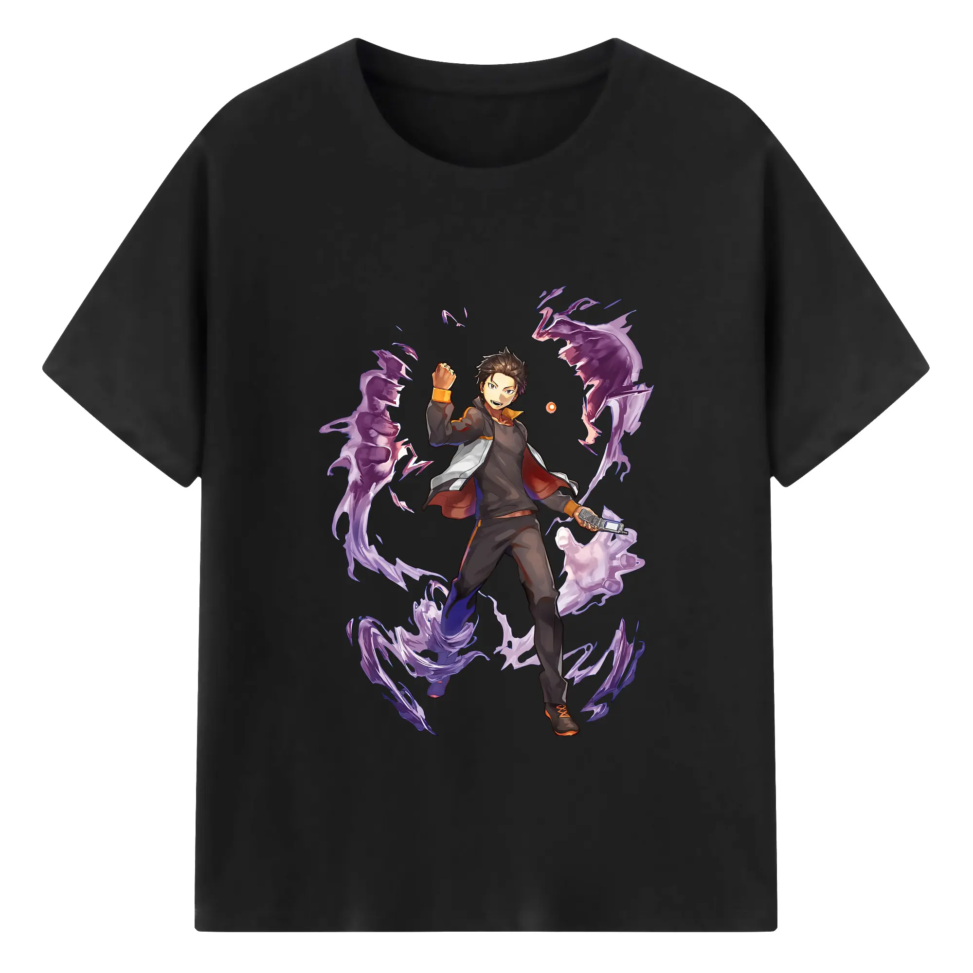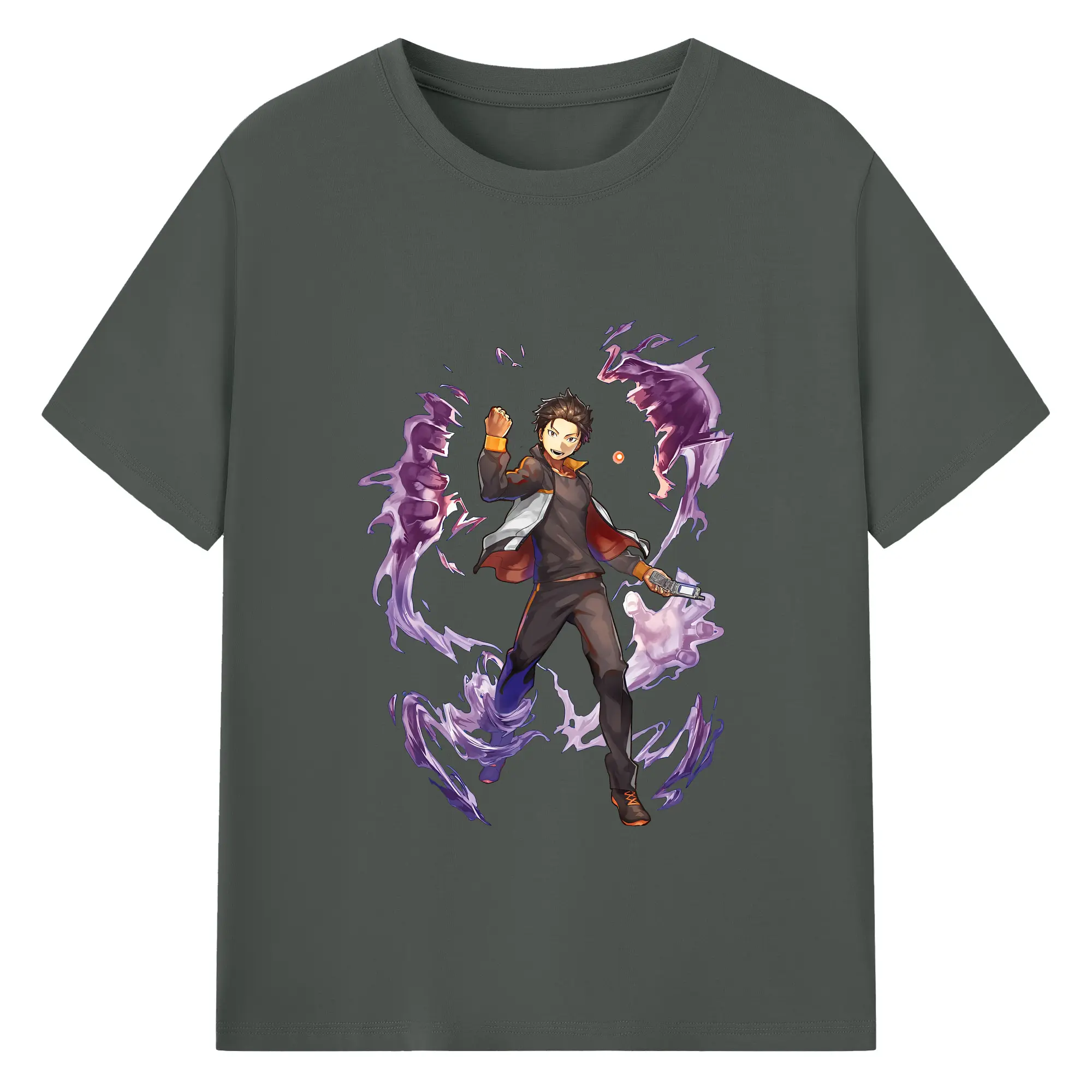 リゼロ グッズ ナツキ・スバル - 綿100% 半袖Tシャツ ・ バックプリント ・ 快適 通気性 ・ 日常使い 散歩 スポーツ用