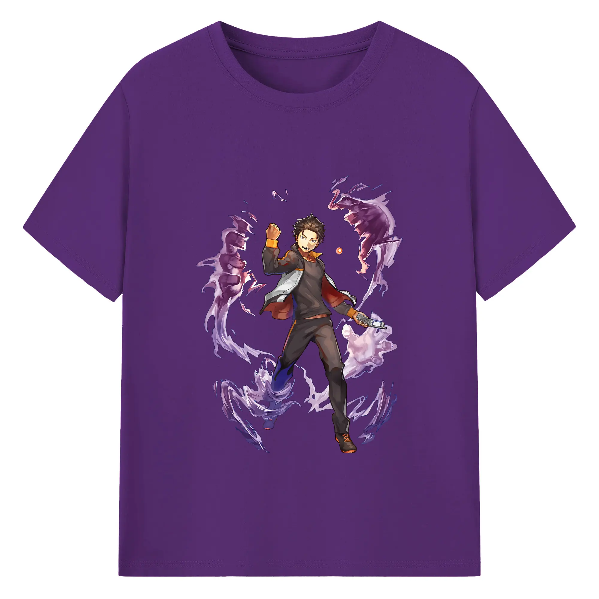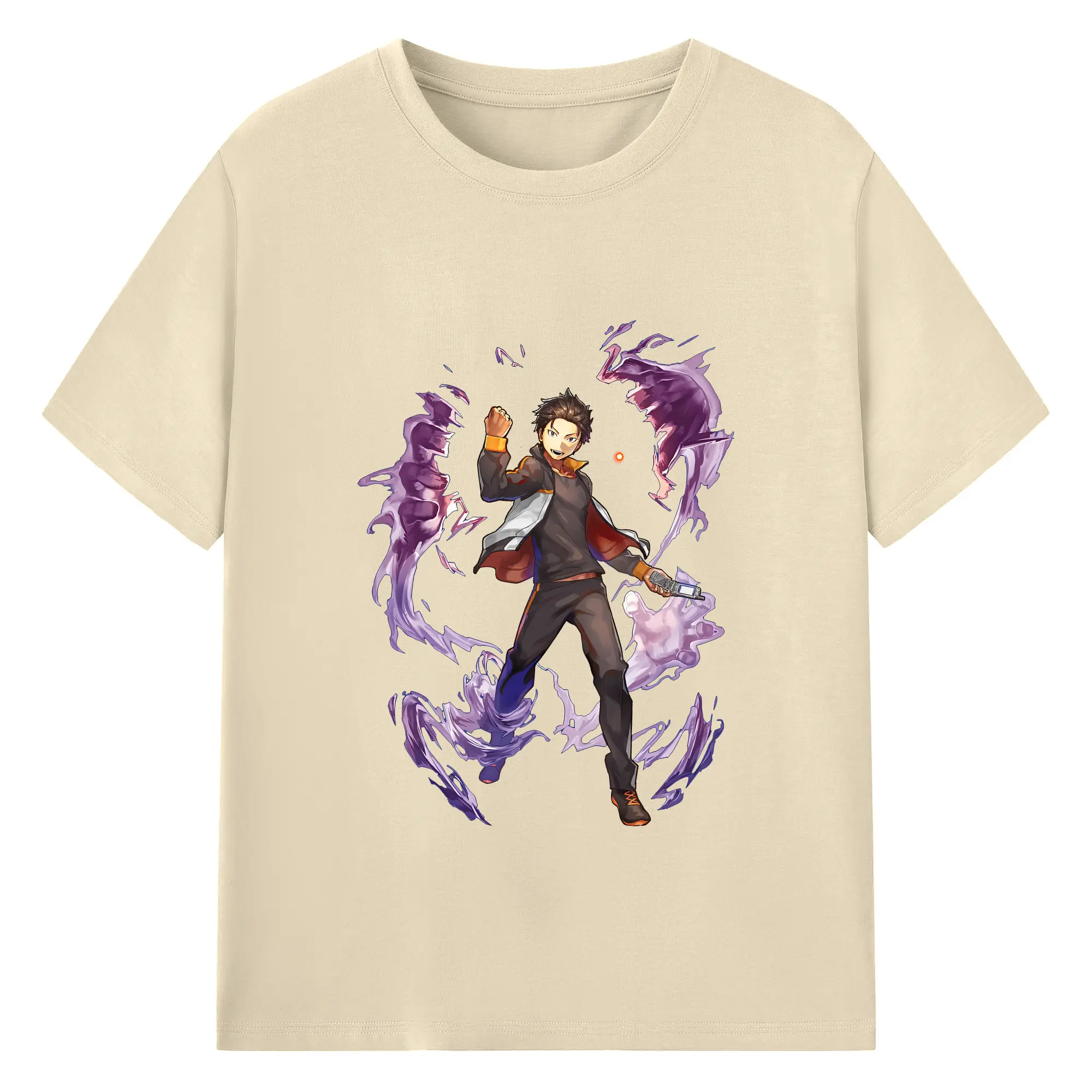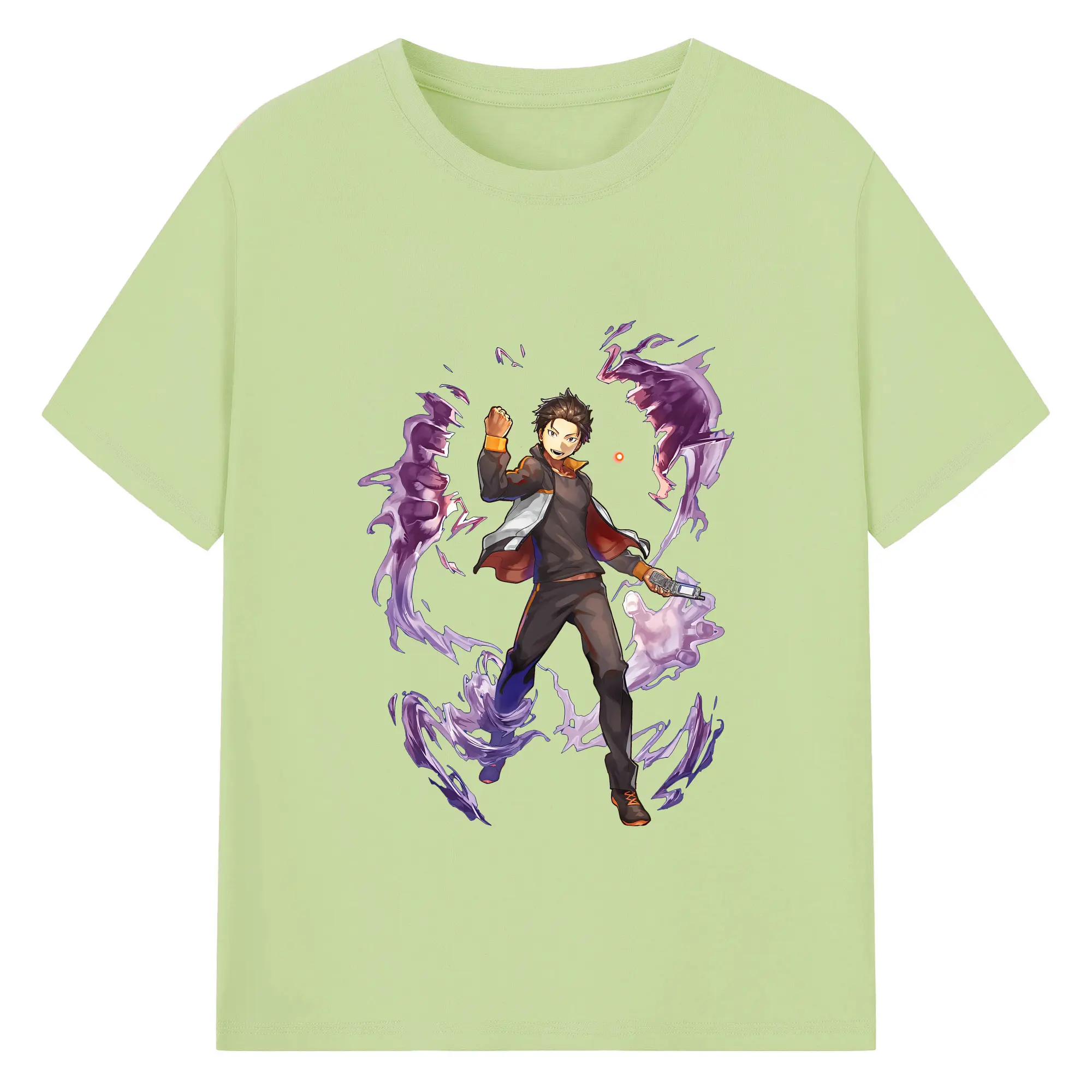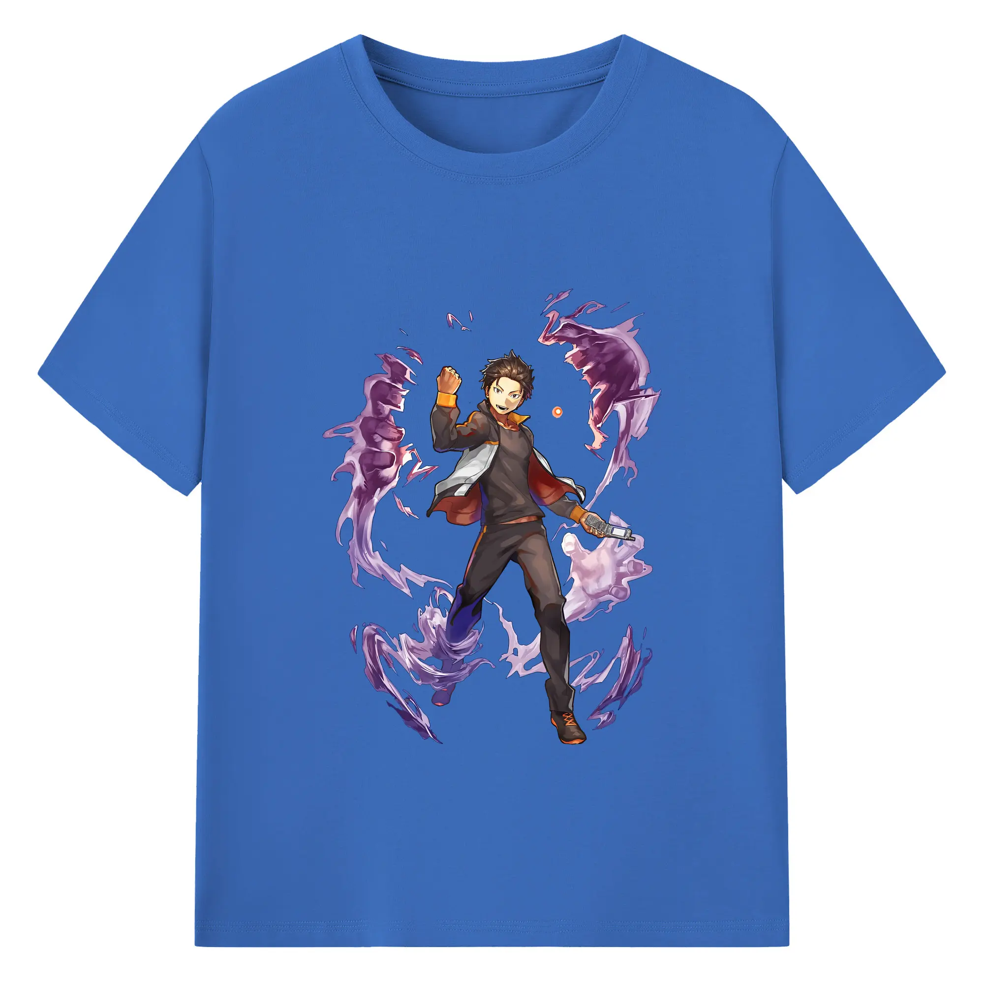 リゼロ グッズ ナツキ・スバル - 綿100% 半袖Tシャツ ・ バックプリント ・ 快適 通気性 ・ 日常使い 散歩 スポーツ用